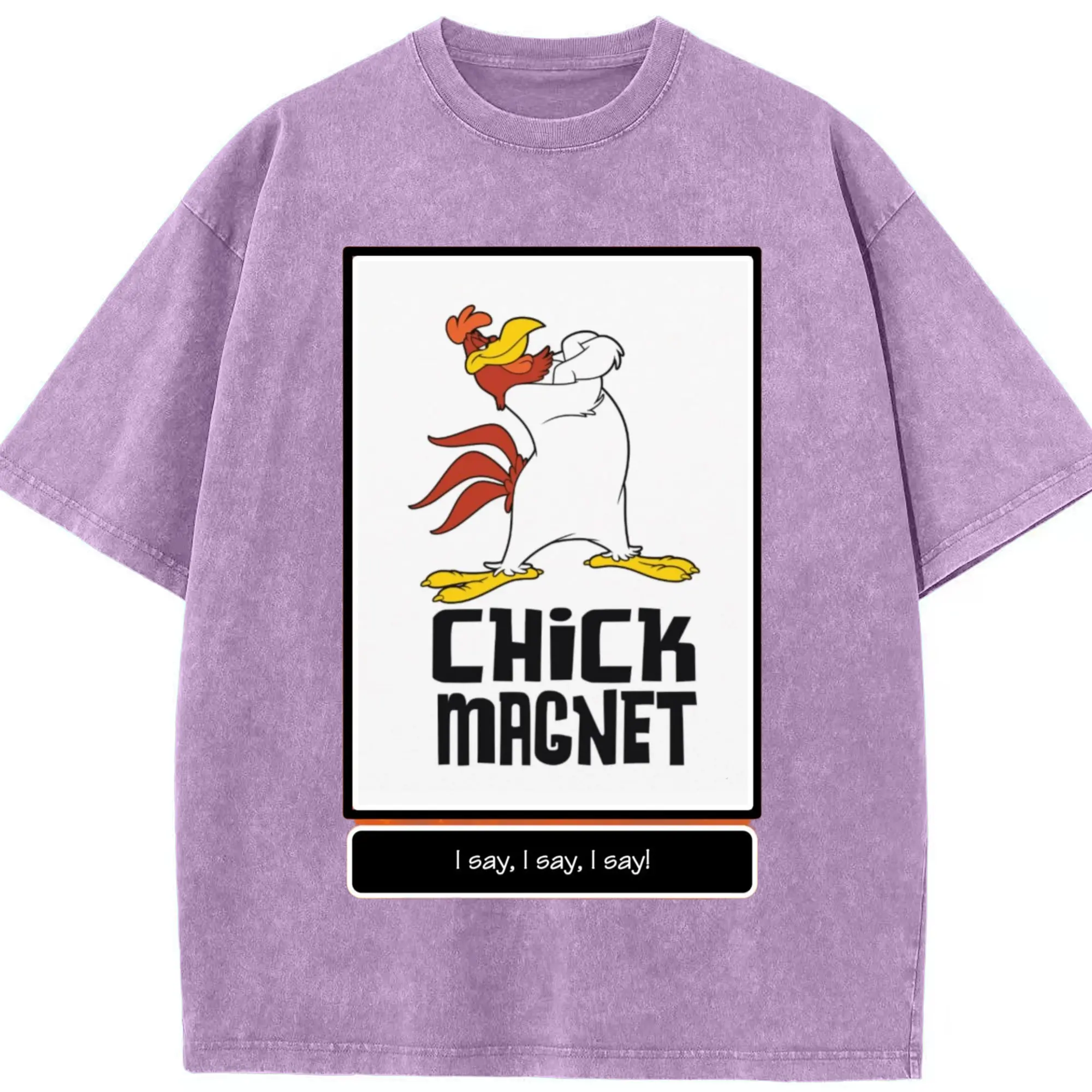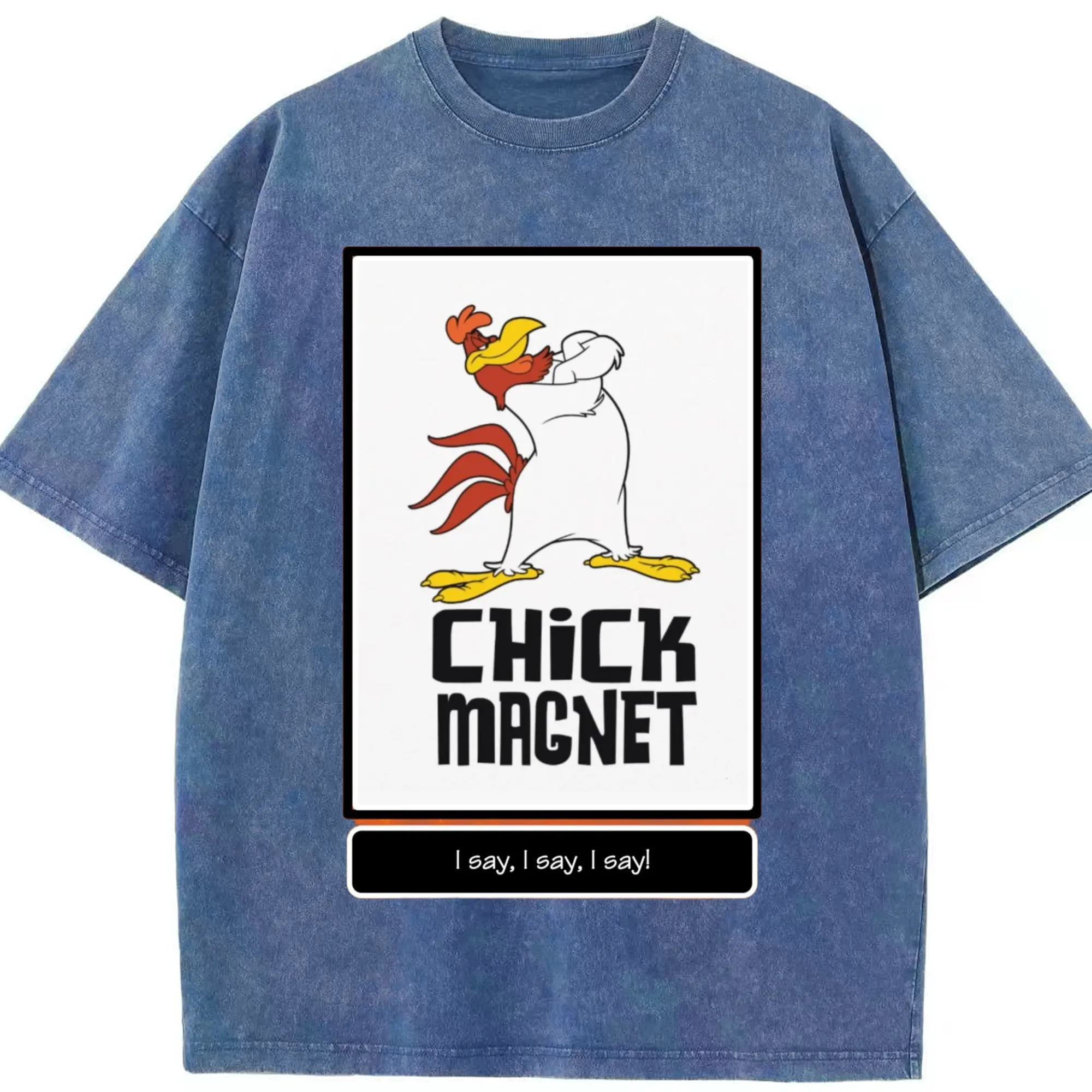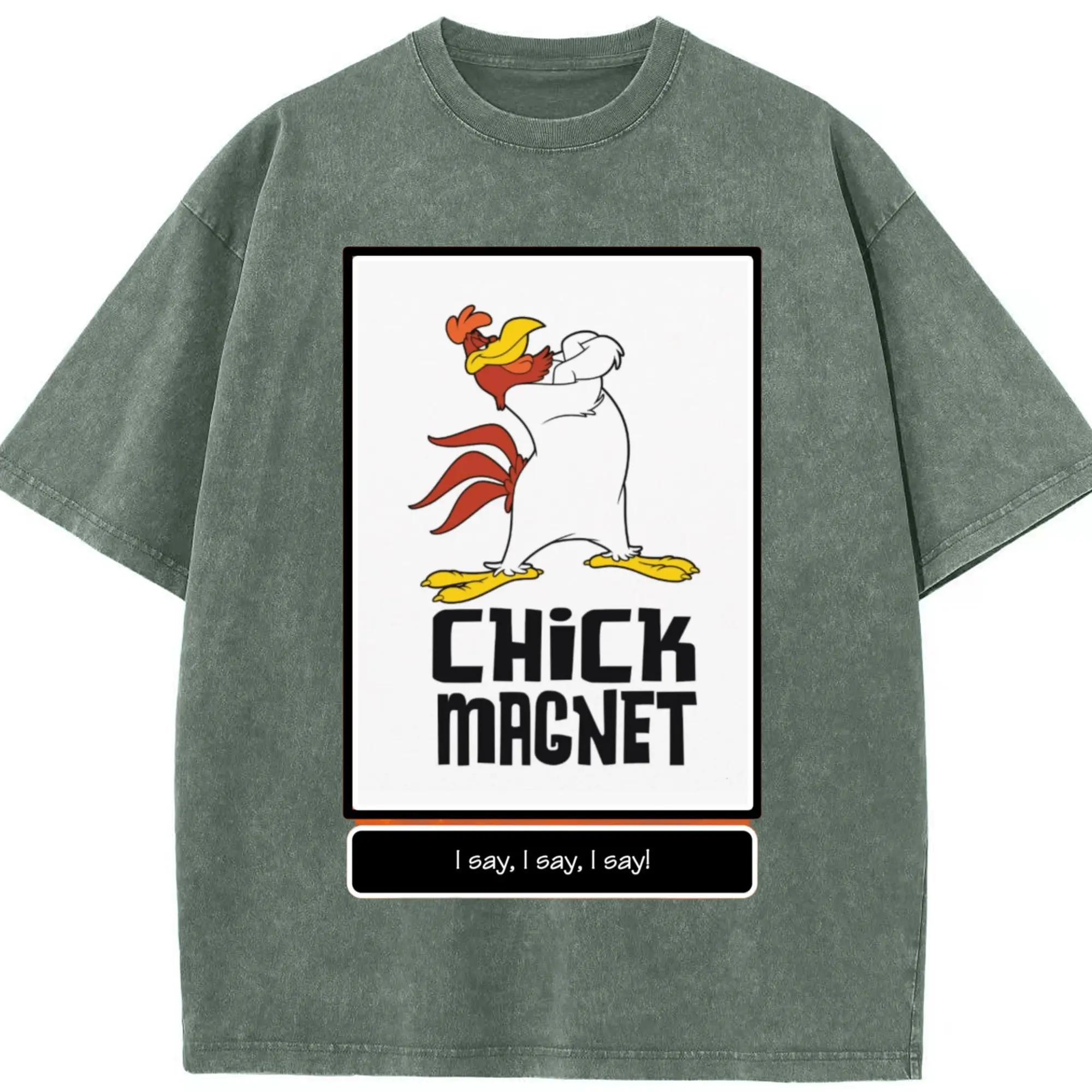 Foghorn leghorn graphic t shirt​ - Washed Vintage Look 230g Cotton Oversized T-Shirt With Front Heat Transfer Print – Soft, Lightweight, Stylish Fit – Comfortable Casual Wear For Sports & Everyday Use