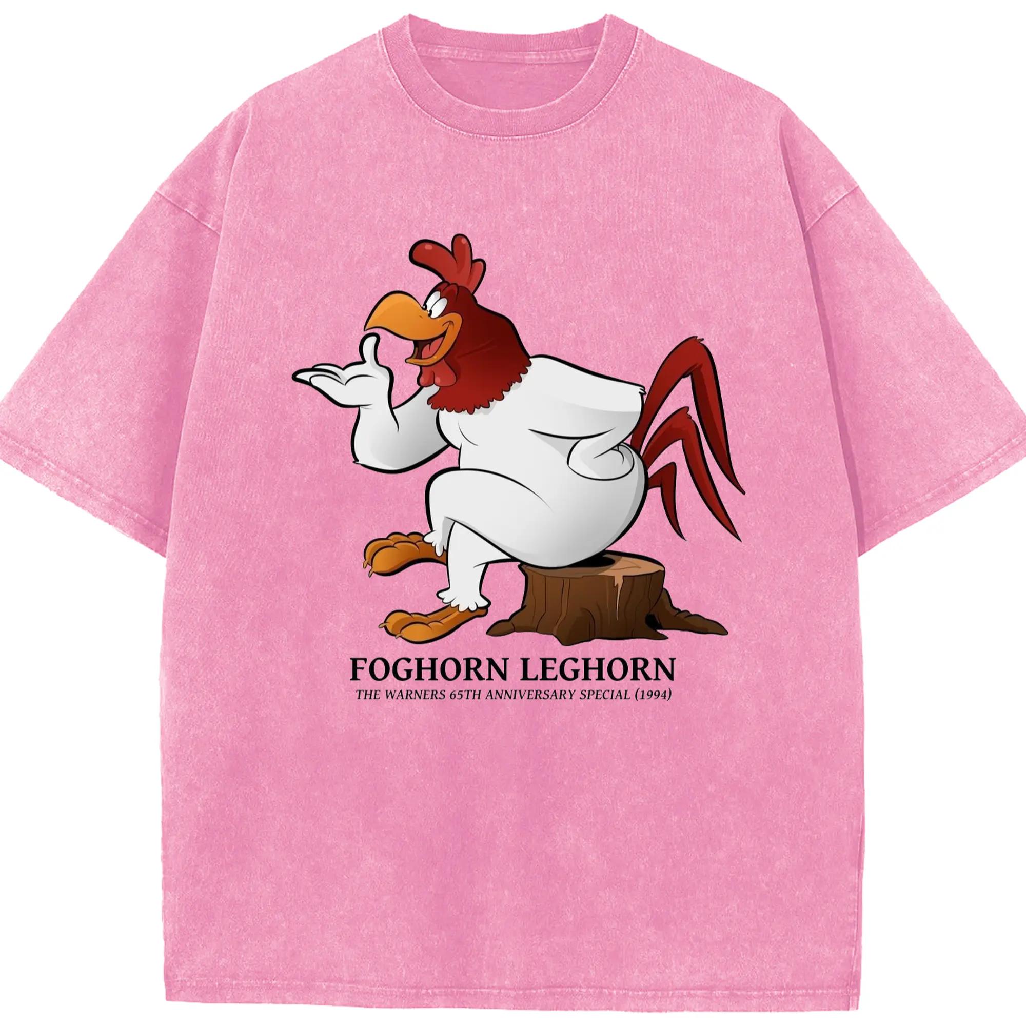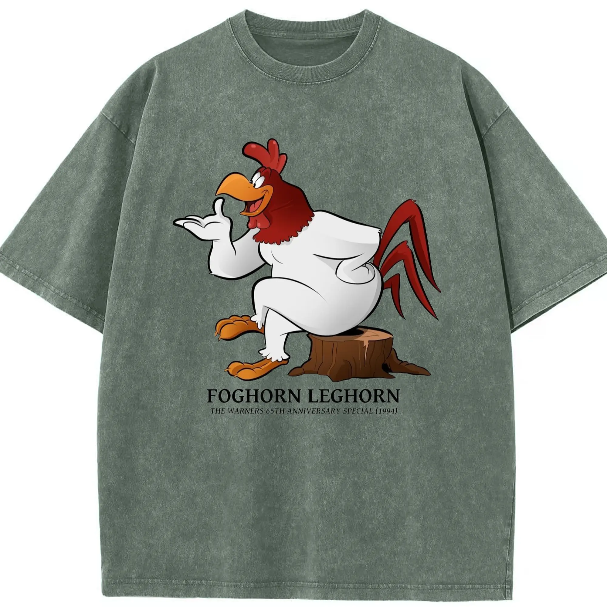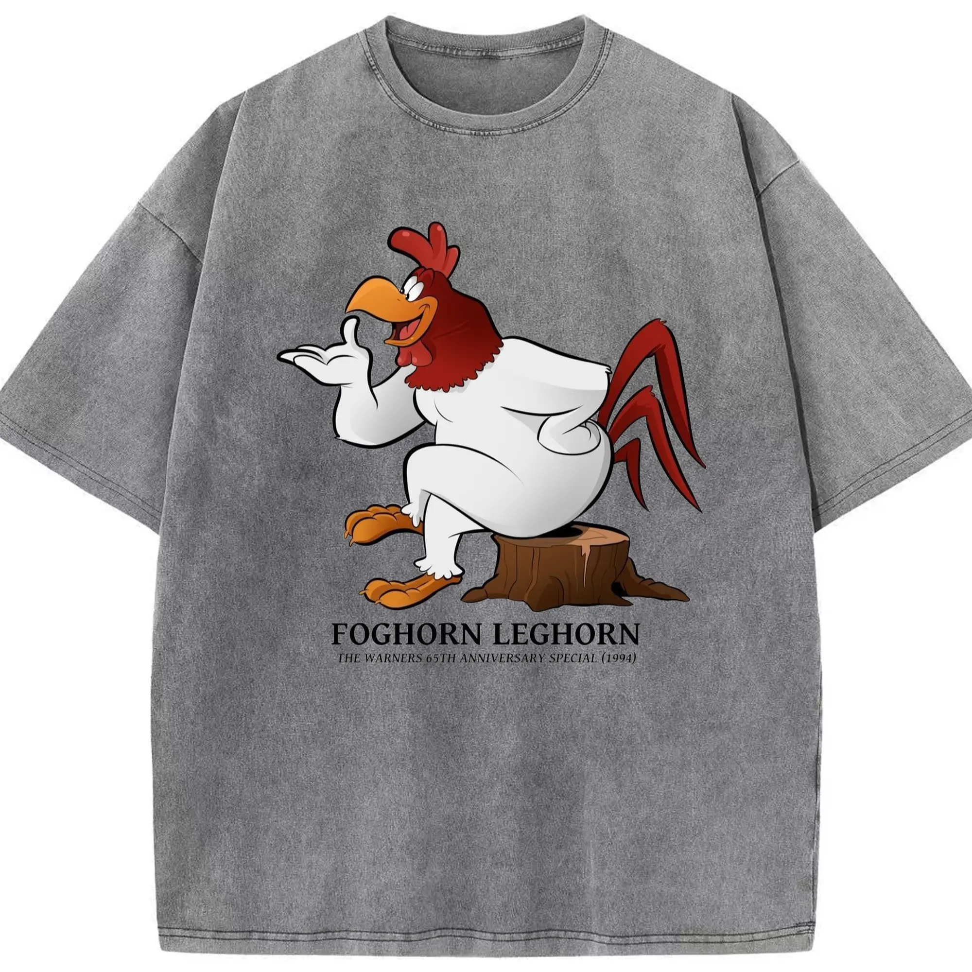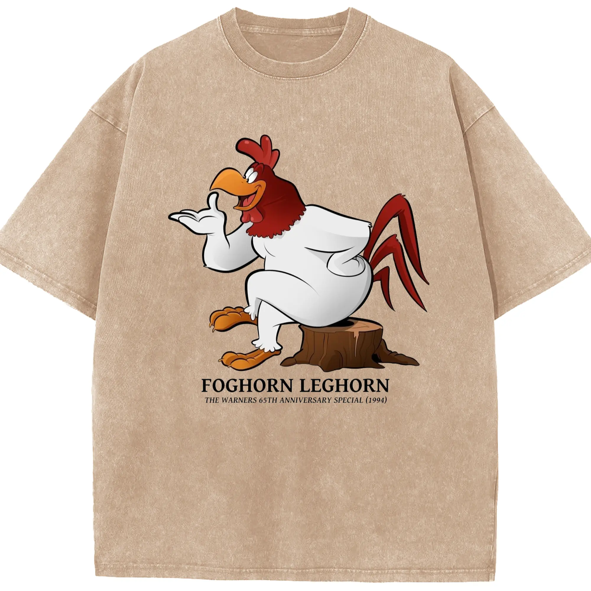 Foghorn leghorn mens shirts​ - Washed Vintage Look 230g Cotton Oversized T-Shirt With Front Heat Transfer Print – Soft, Lightweight, Stylish Fit – Comfortable Casual Wear For Sports & Everyday Use