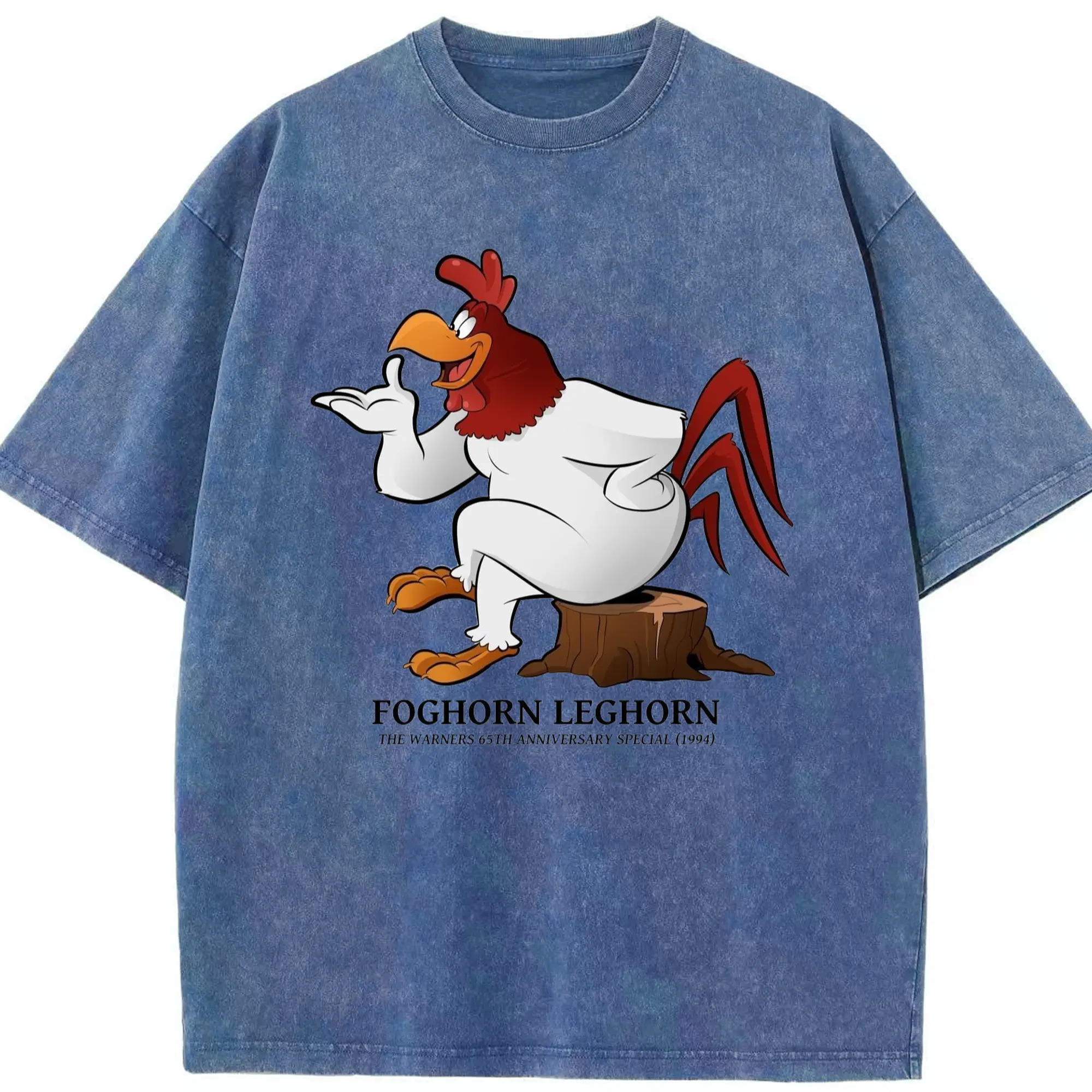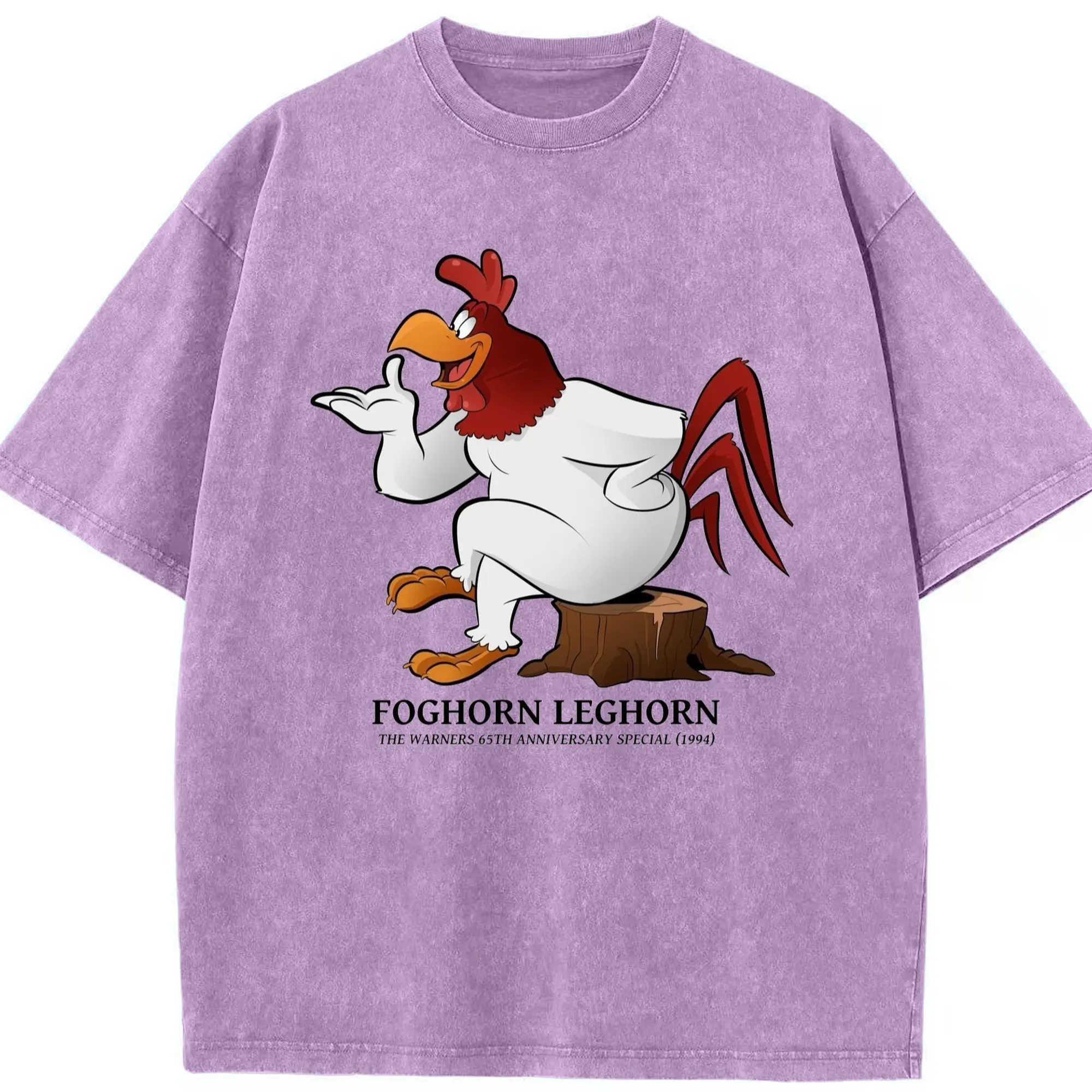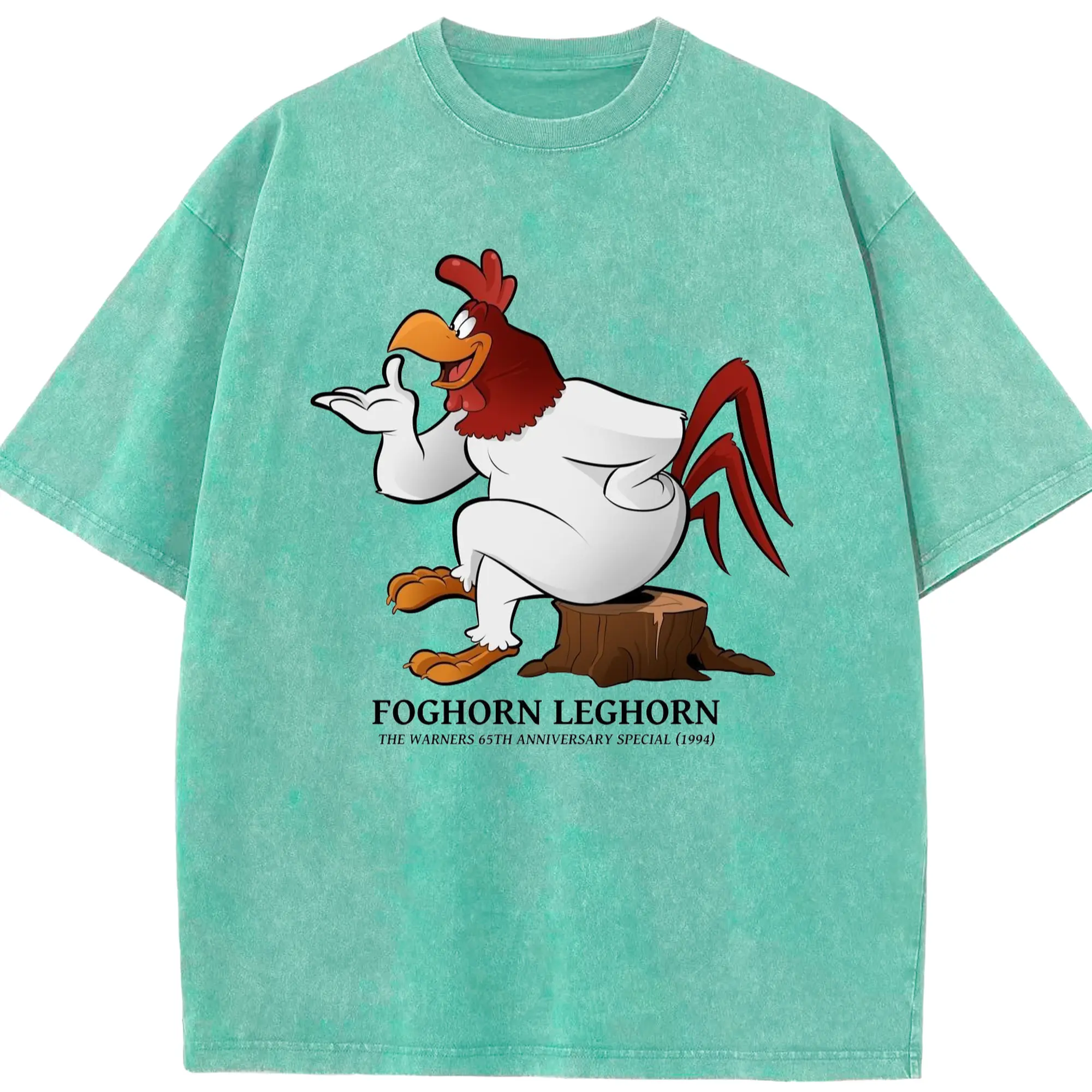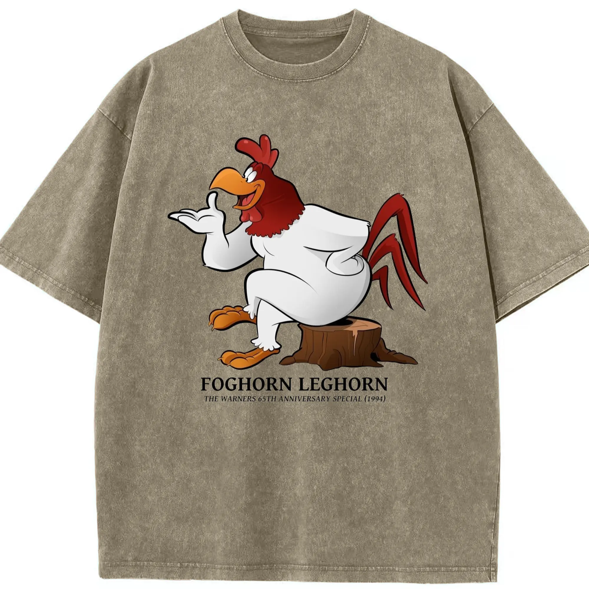 Foghorn leghorn mens shirts​ - Washed Vintage Look 230g Cotton Oversized T-Shirt With Front Heat Transfer Print – Soft, Lightweight, Stylish Fit – Comfortable Casual Wear For Sports & Everyday Use