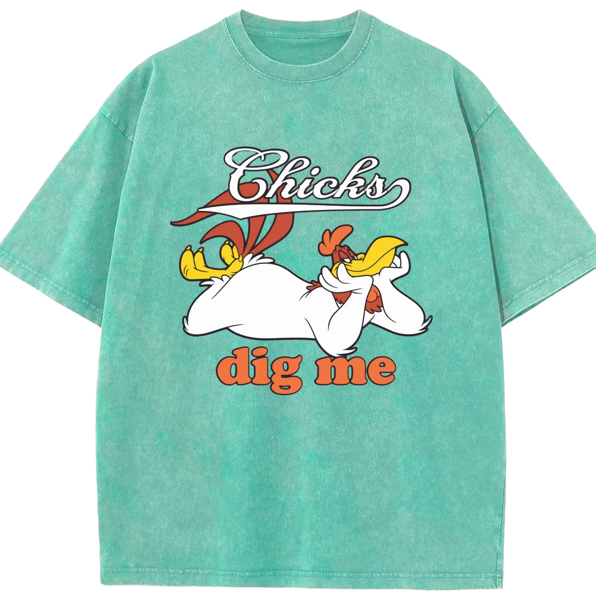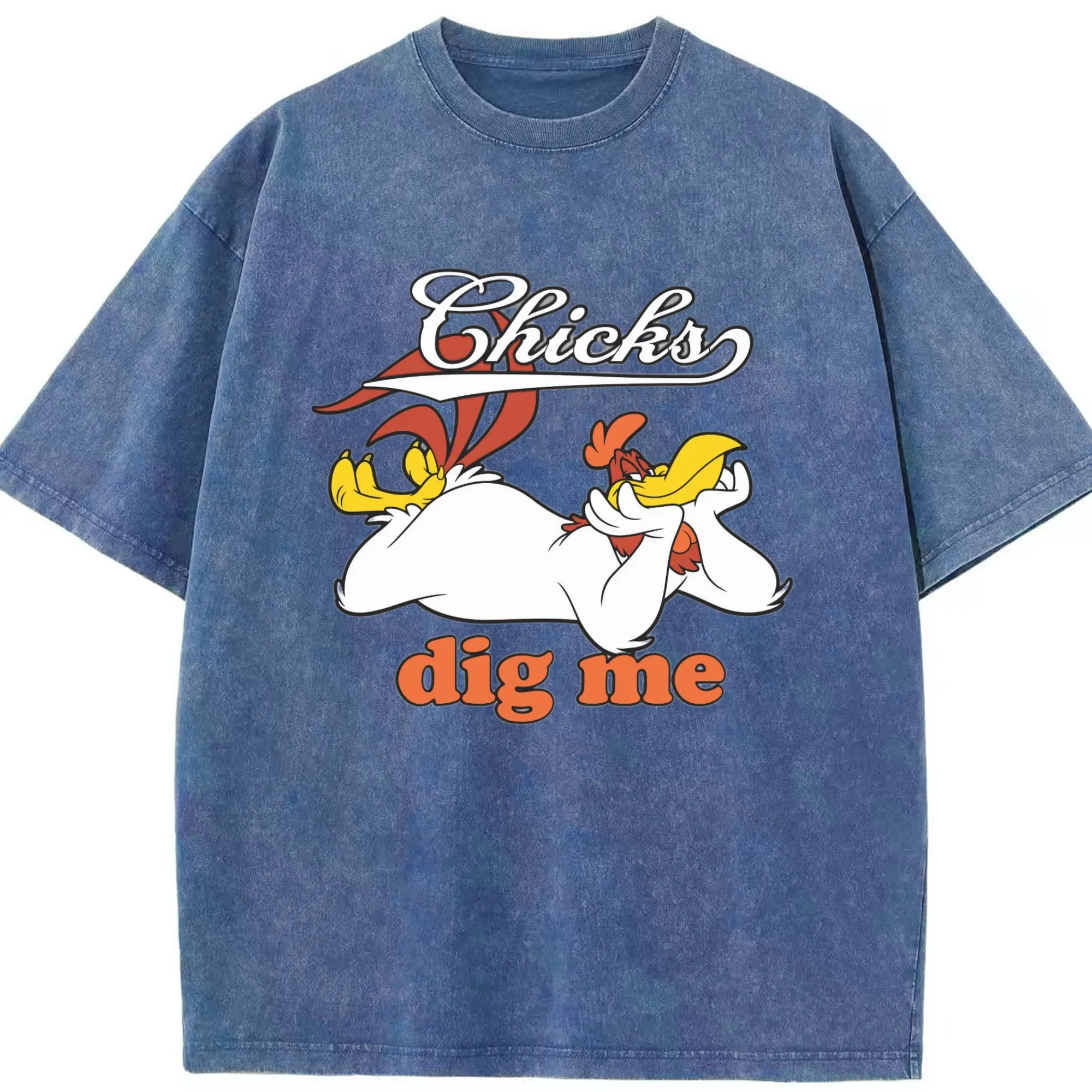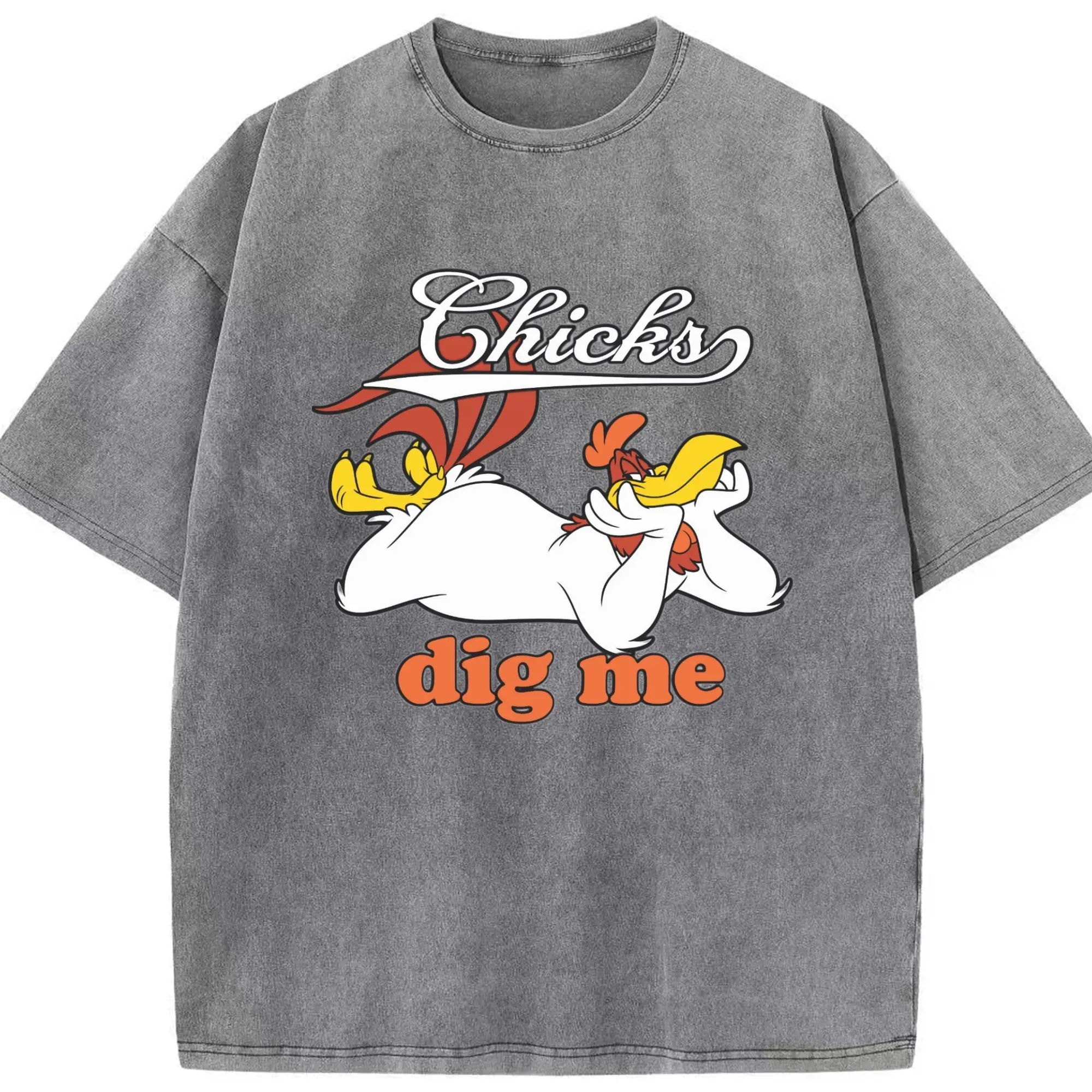 Foghorn Leghorn shirt - Washed Vintage Look 230g Cotton Oversized T-Shirt With Front Heat Transfer Print – Soft, Lightweight, Stylish Fit – Comfortable Casual Wear For Sports & Everyday Use