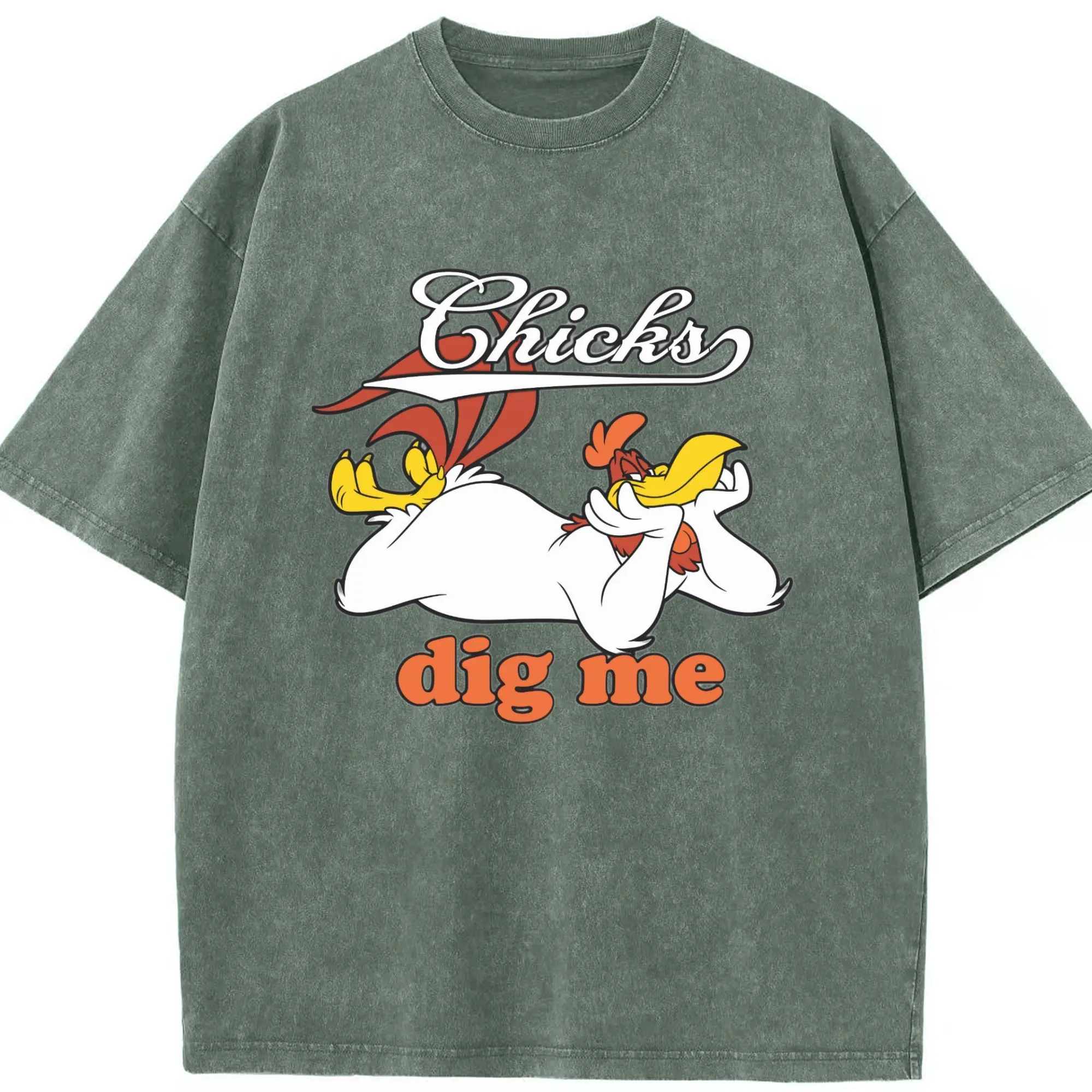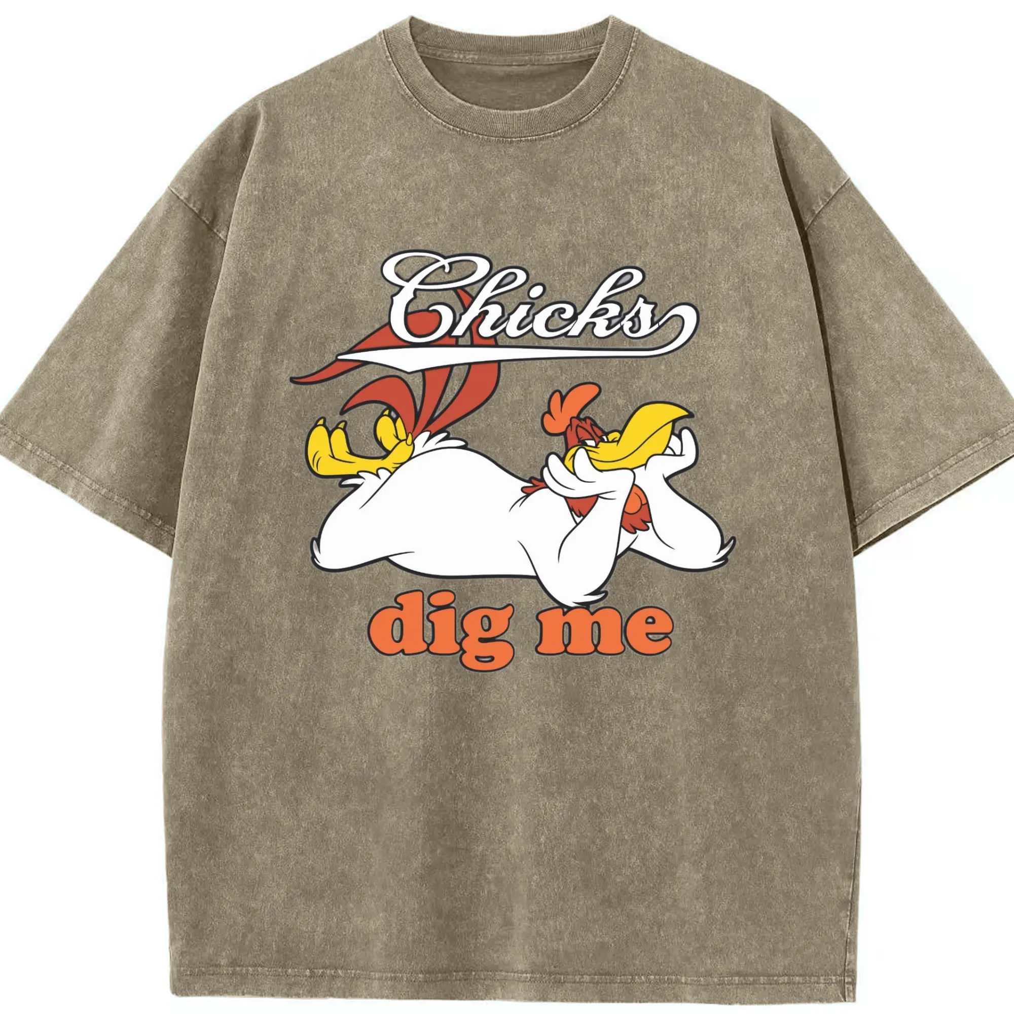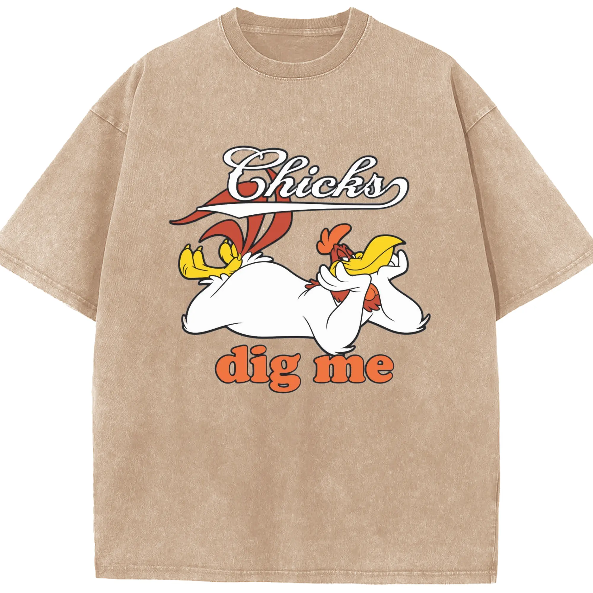 Foghorn Leghorn shirt - Washed Vintage Look 230g Cotton Oversized T-Shirt With Front Heat Transfer Print – Soft, Lightweight, Stylish Fit – Comfortable Casual Wear For Sports & Everyday Use