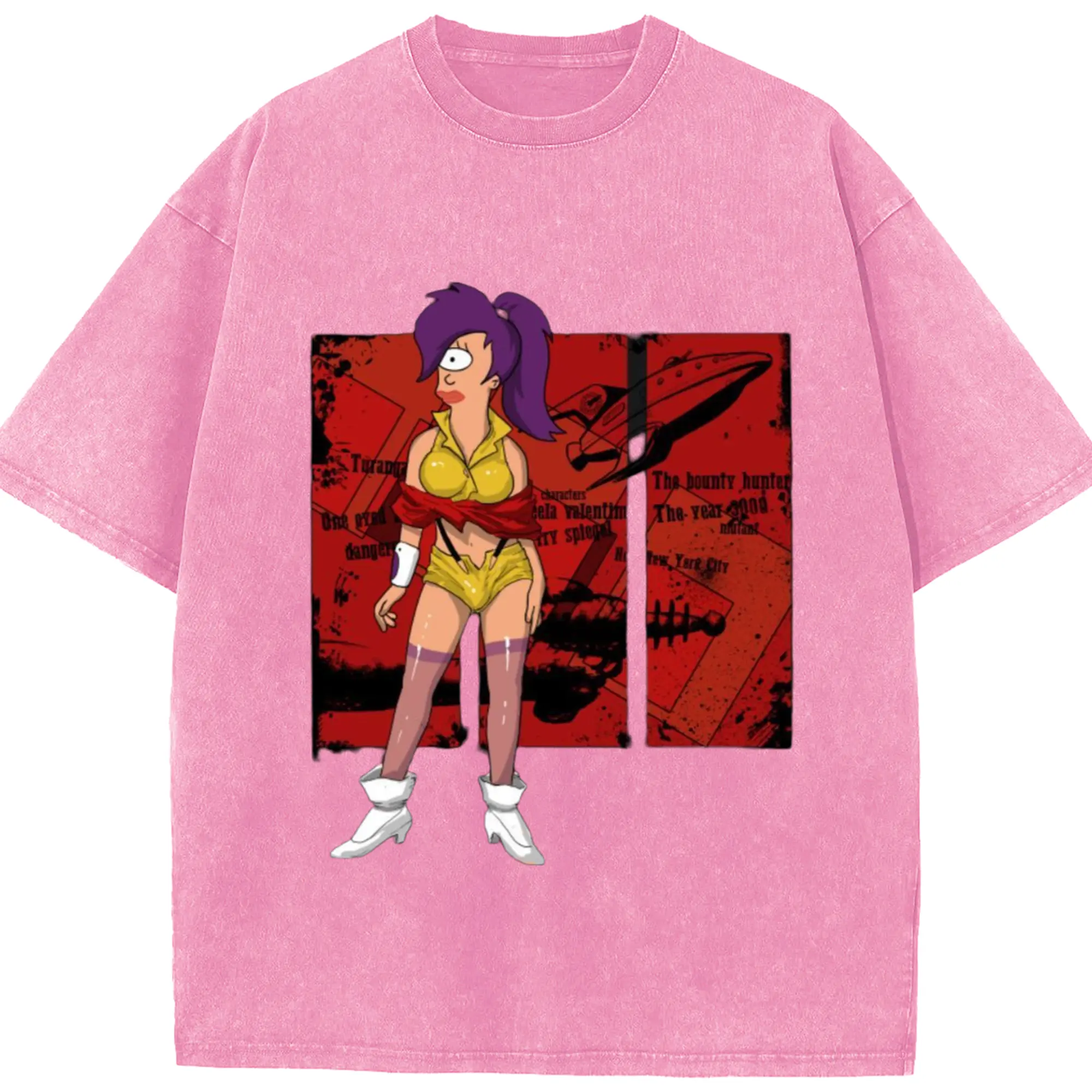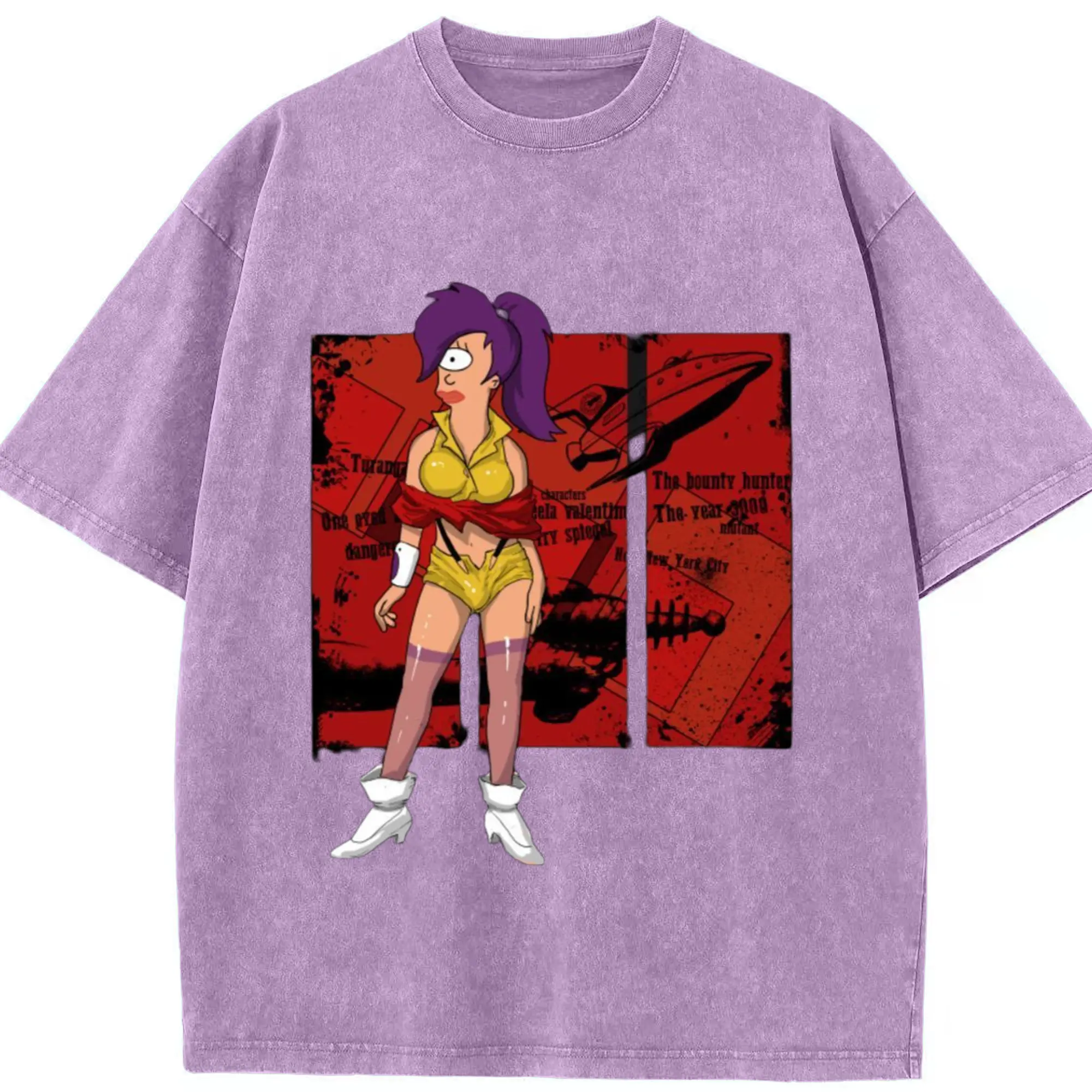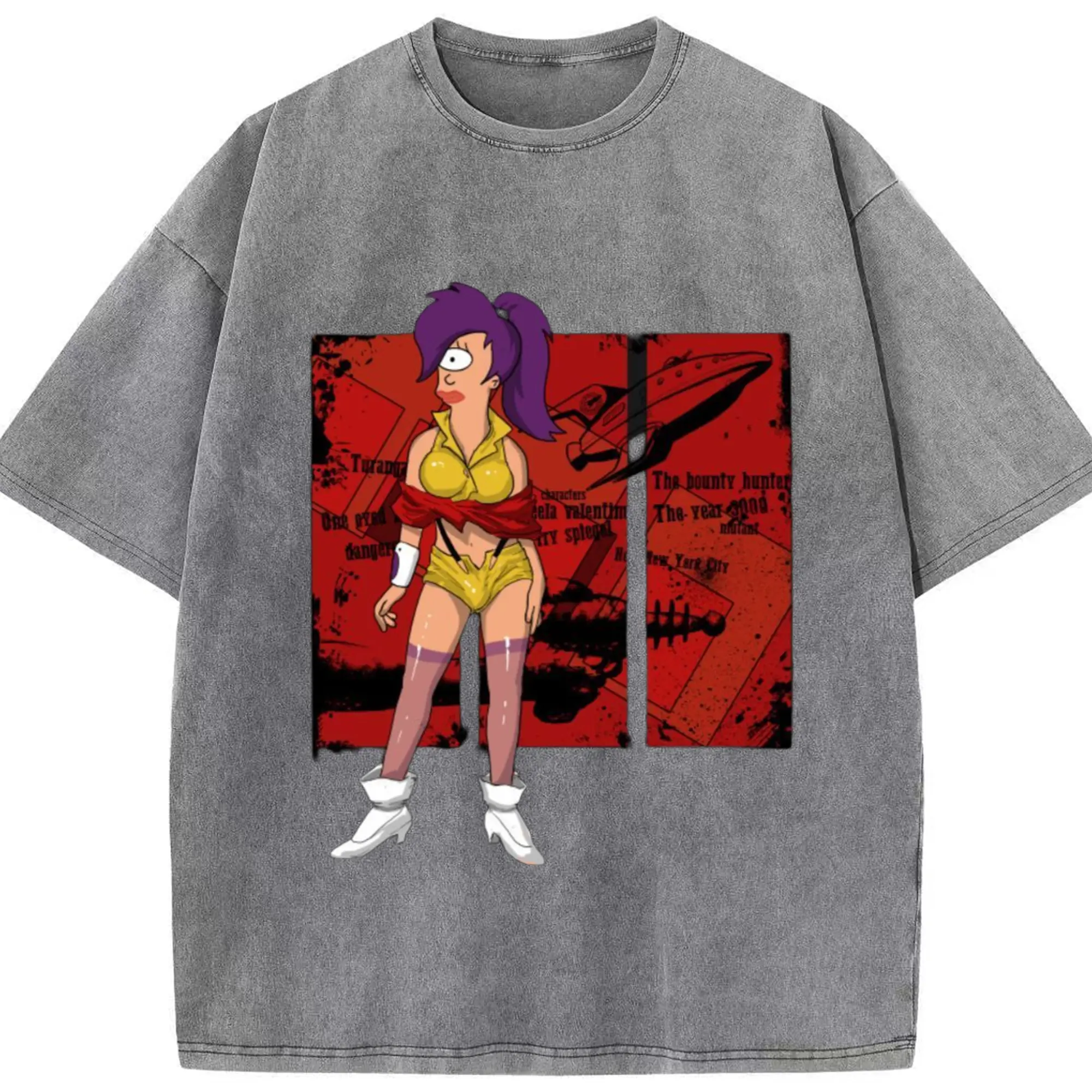Futurama Leela T-Shirt - Washed Vintage Look 230g Cotton Oversized T-Shirt With Front Heat Transfer Print – Soft, Lightweight, Stylish Fit – Comfortable Casual Wear For Sports & Everyday Use