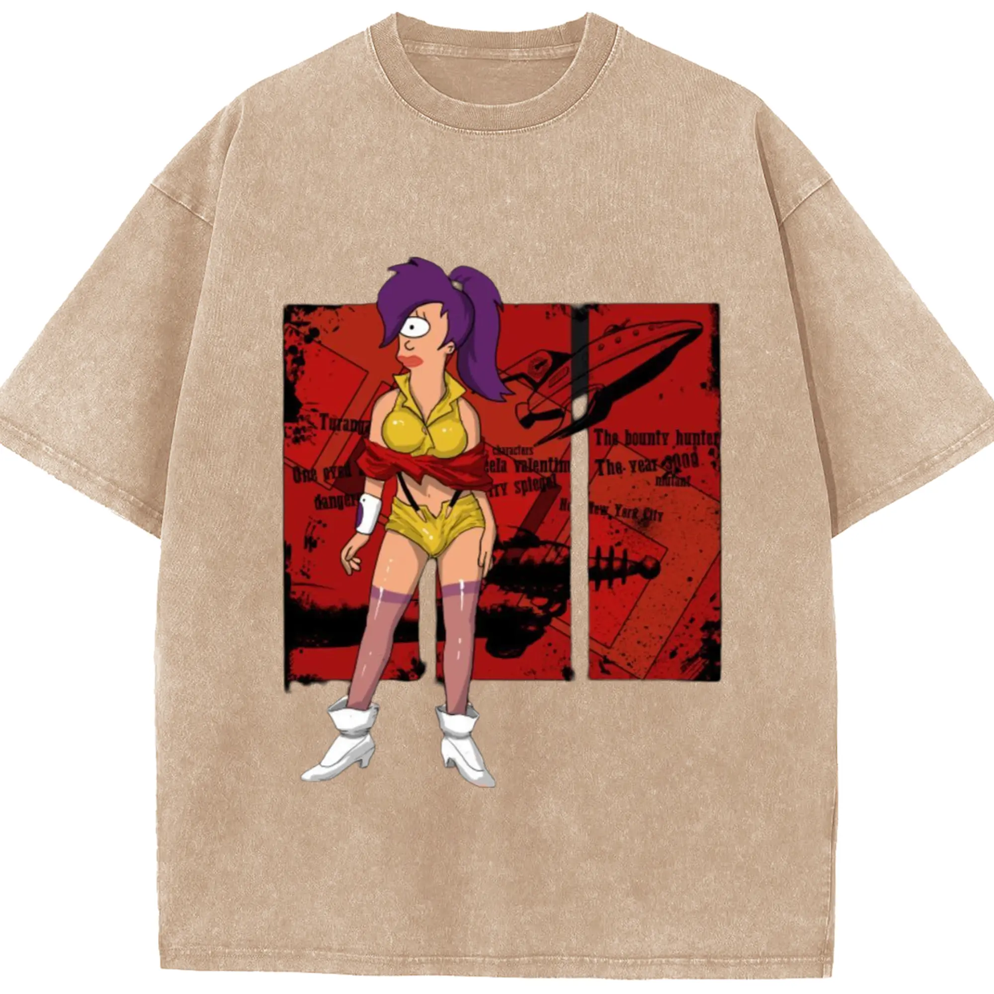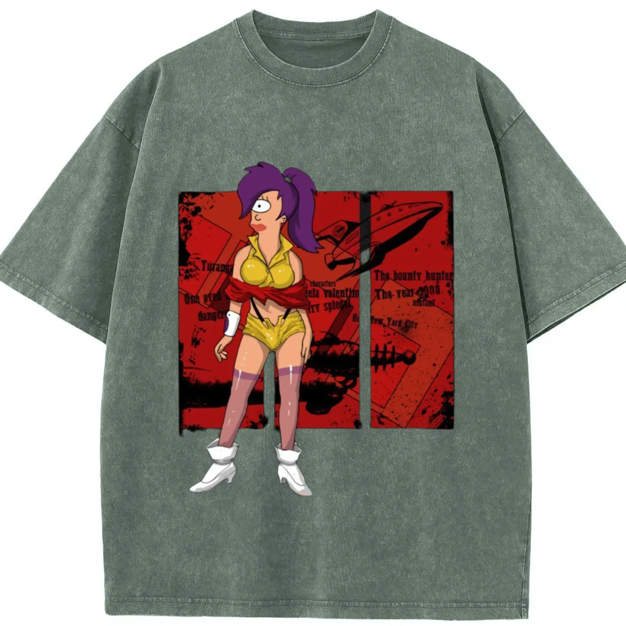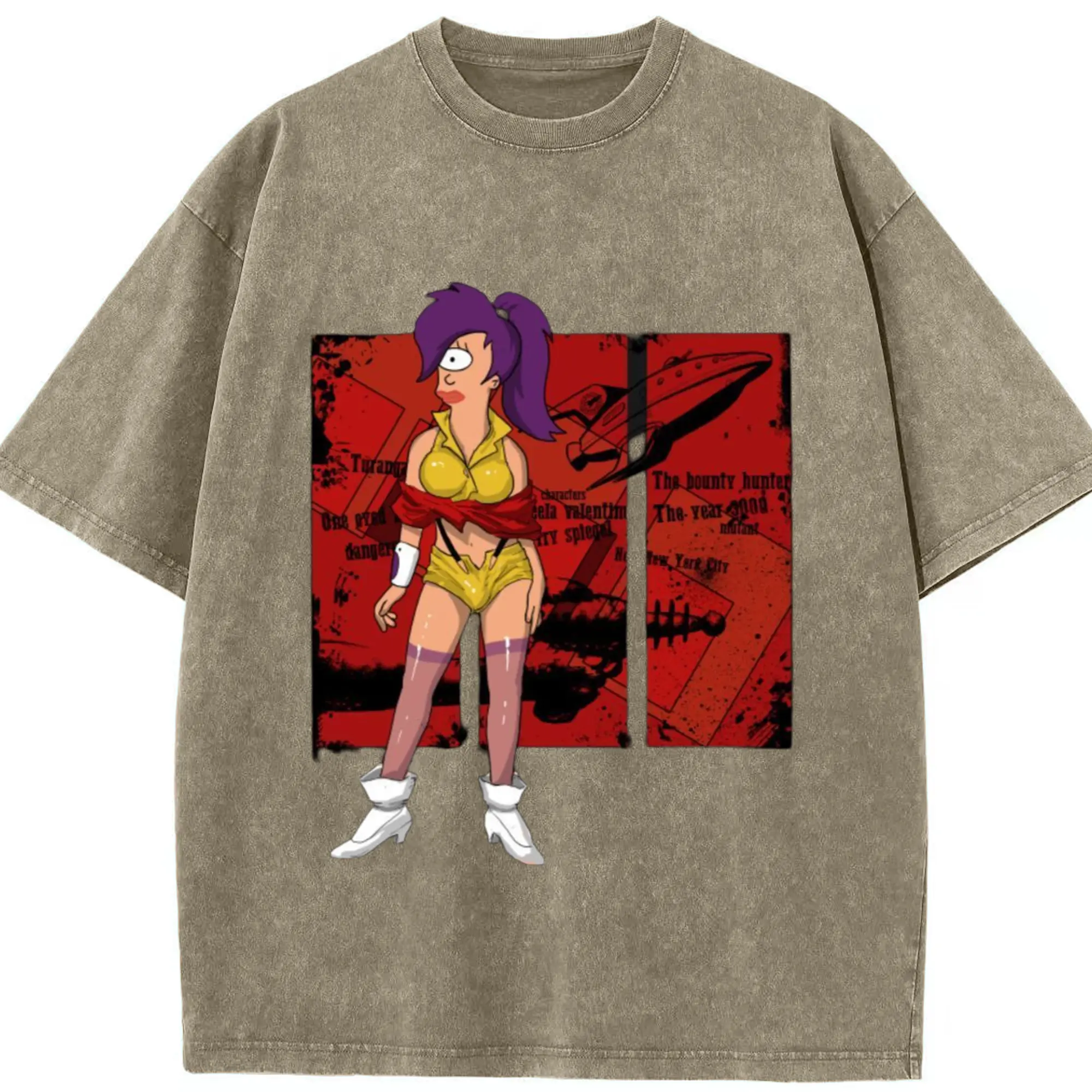 Futurama Leela T-Shirt - Washed Vintage Look 230g Cotton Oversized T-Shirt With Front Heat Transfer Print – Soft, Lightweight, Stylish Fit – Comfortable Casual Wear For Sports & Everyday Use