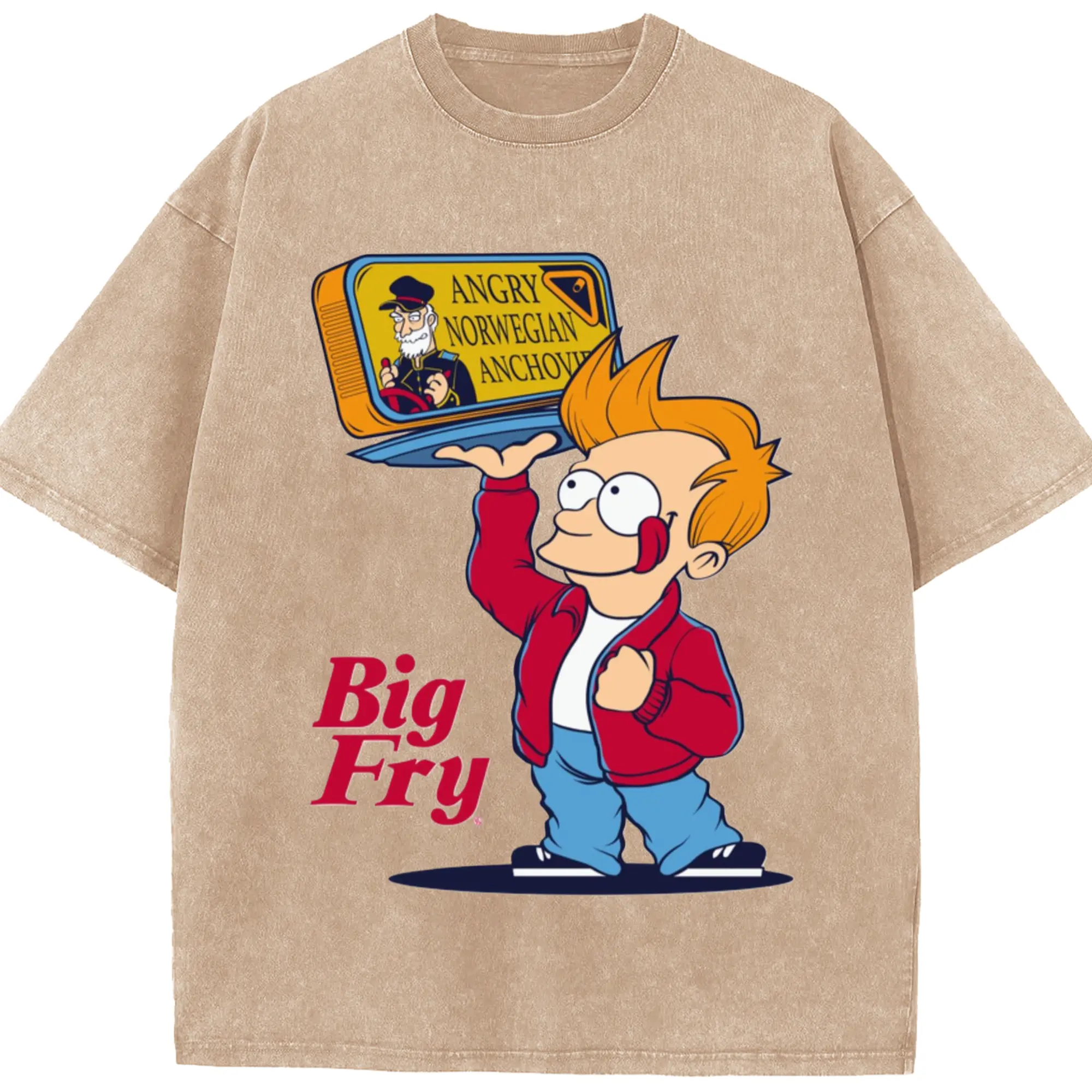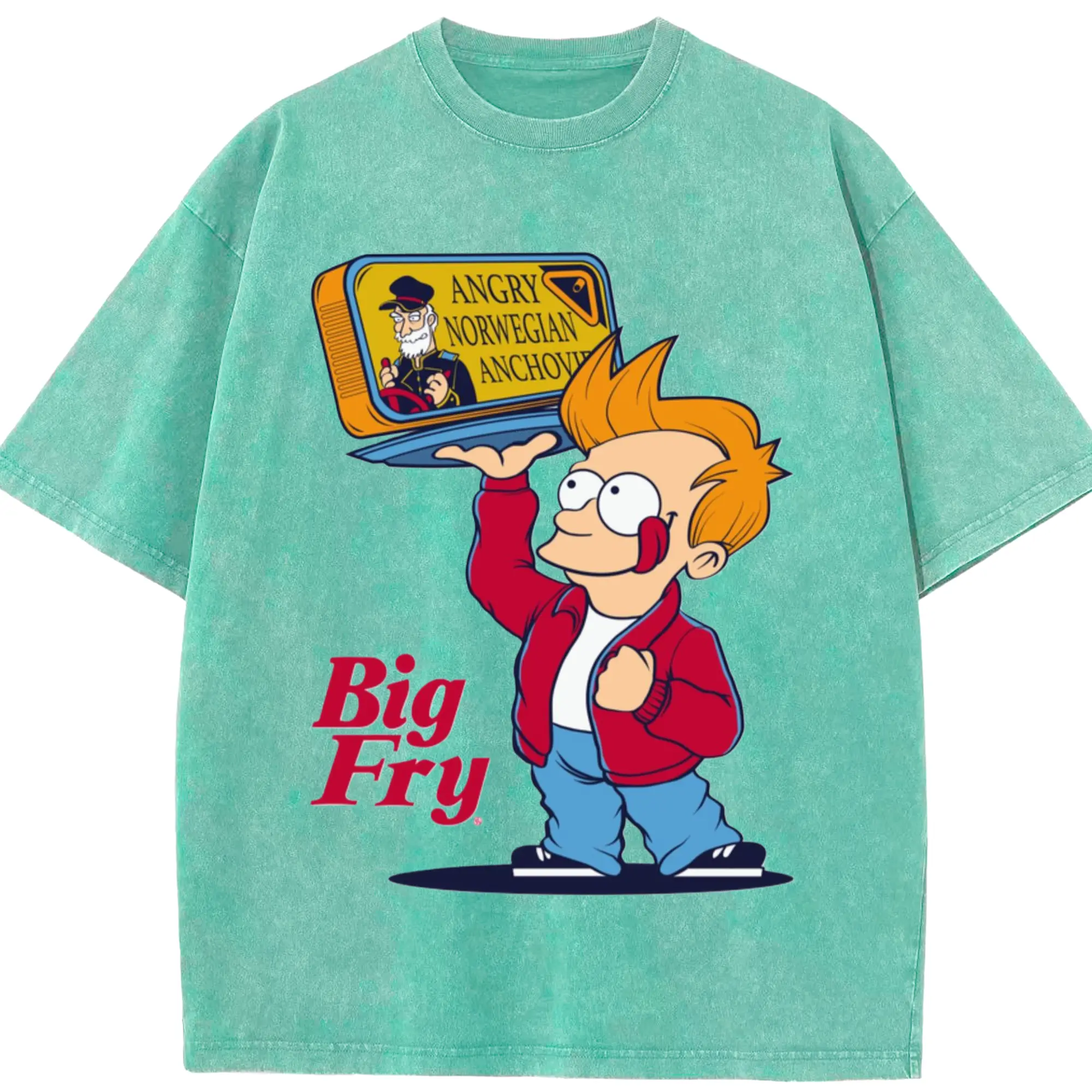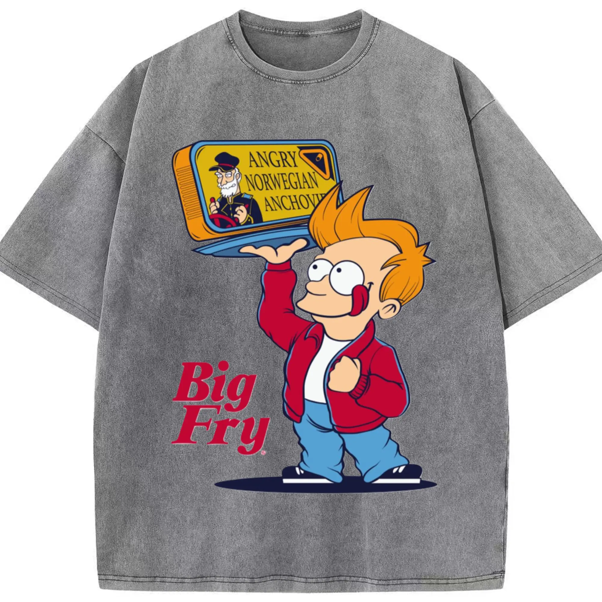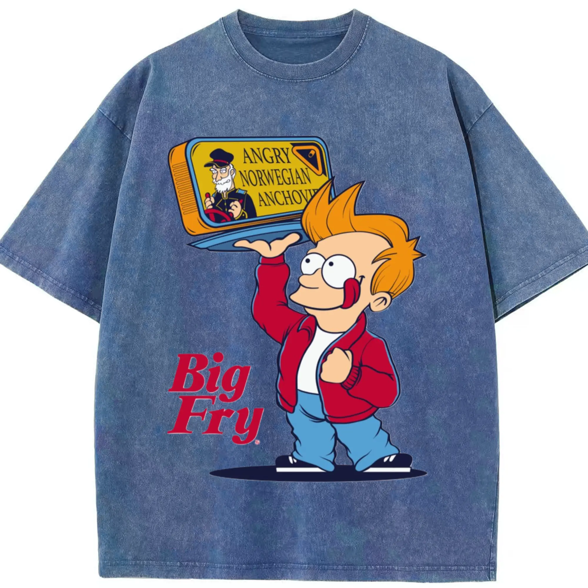 Futurama philip j fry t shirt​ - Washed Vintage Look 230g Cotton Oversized T-Shirt With Front Heat Transfer Print – Soft, Lightweight, Stylish Fit – Comfortable Casual Wear For Sports & Everyday Use