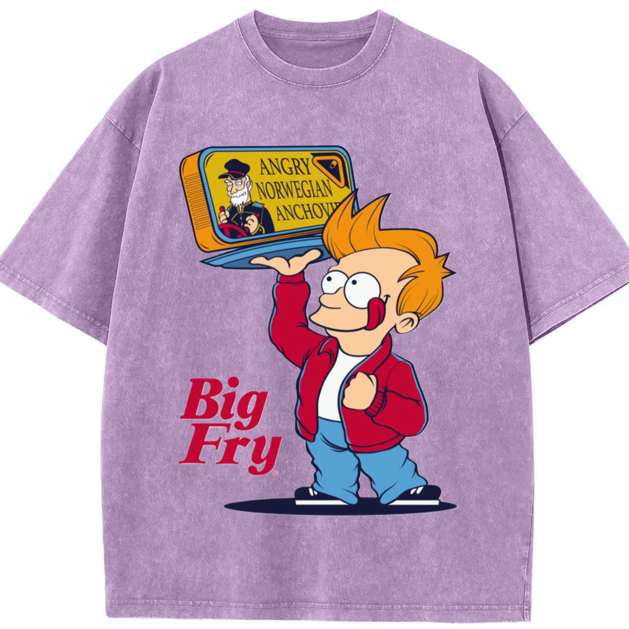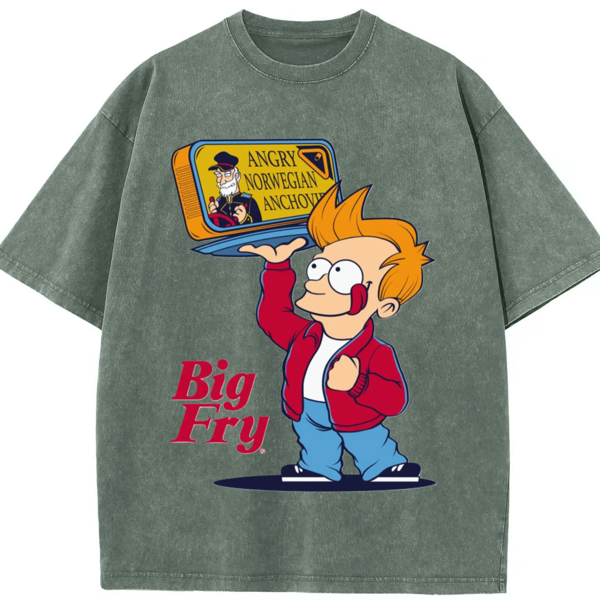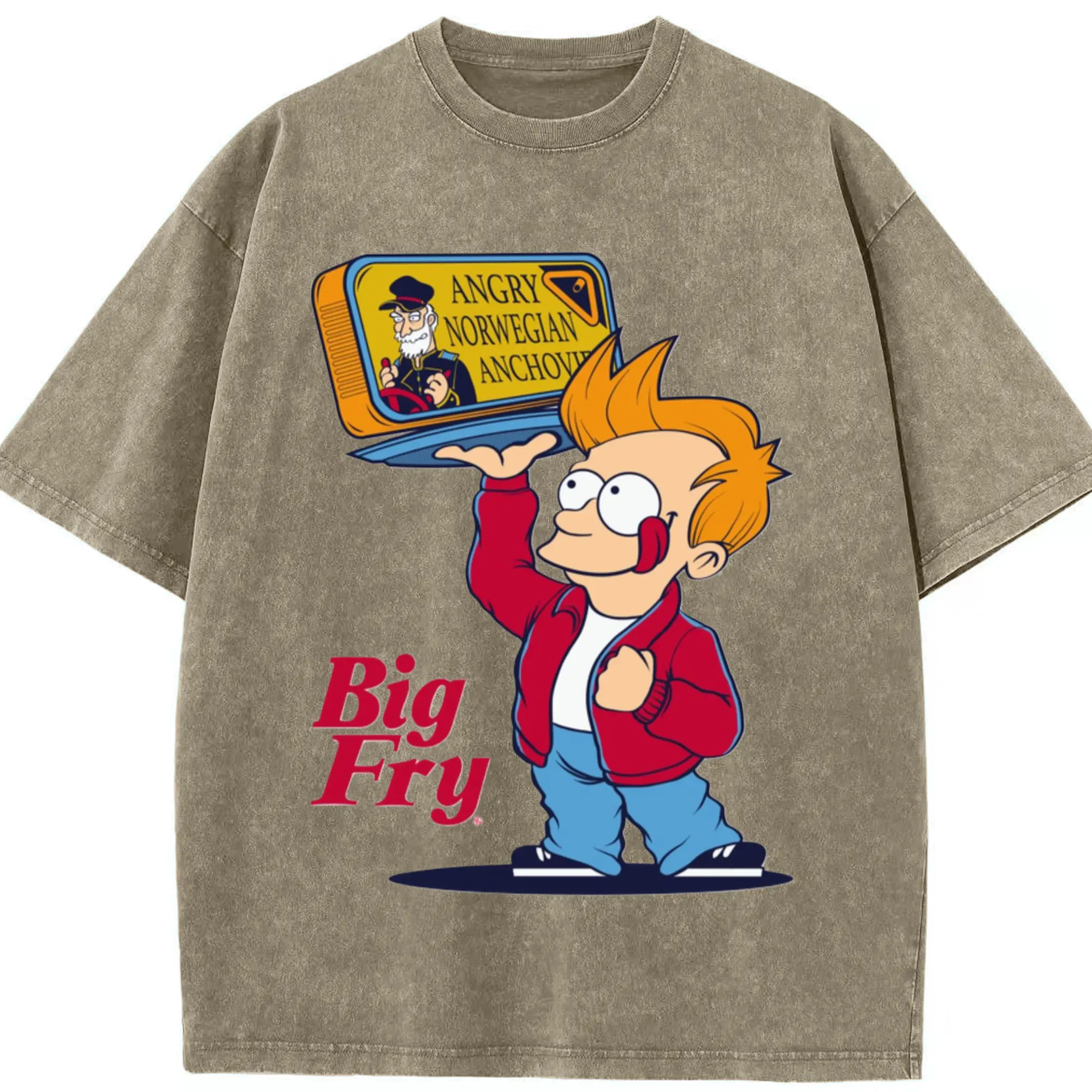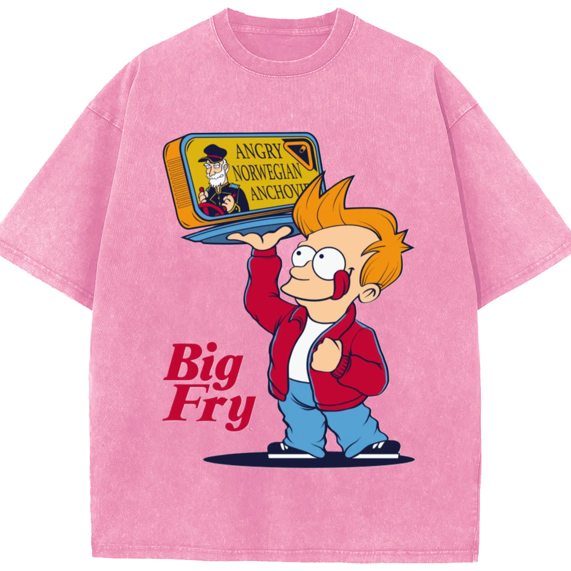 Futurama philip j fry t shirt​ - Washed Vintage Look 230g Cotton Oversized T-Shirt With Front Heat Transfer Print – Soft, Lightweight, Stylish Fit – Comfortable Casual Wear For Sports & Everyday Use