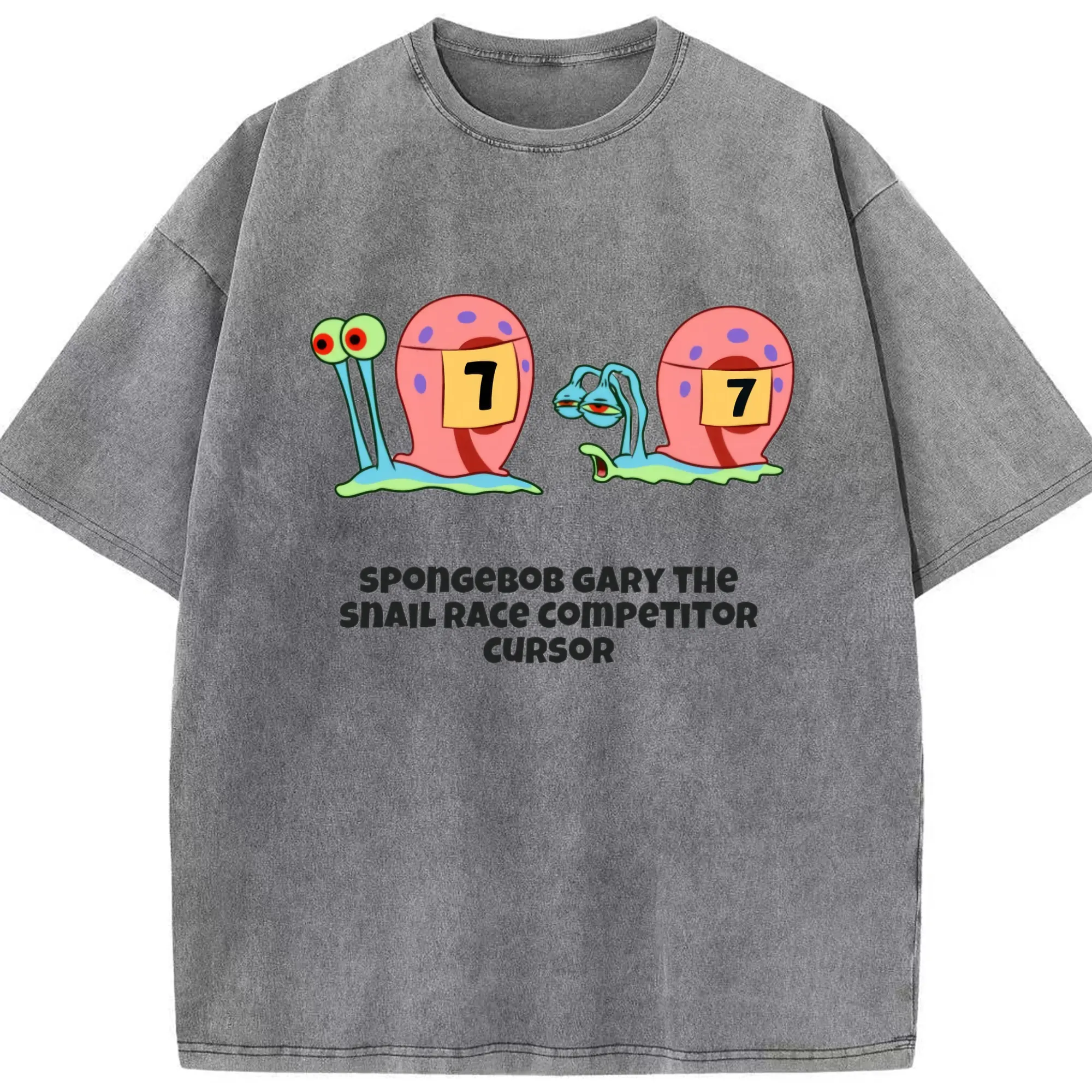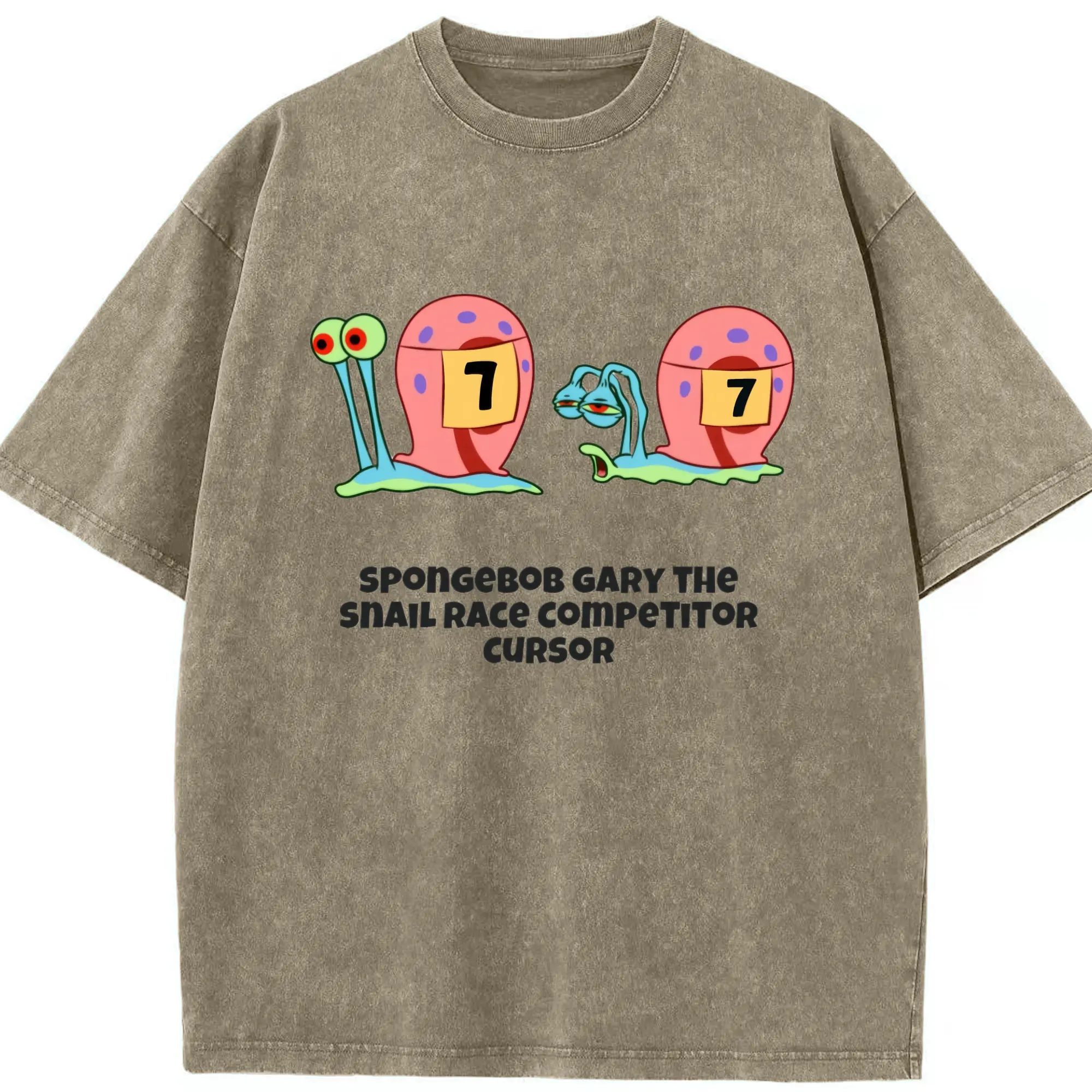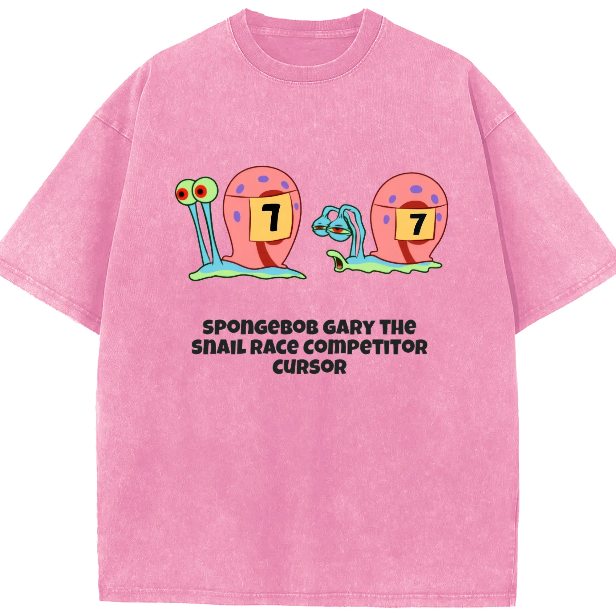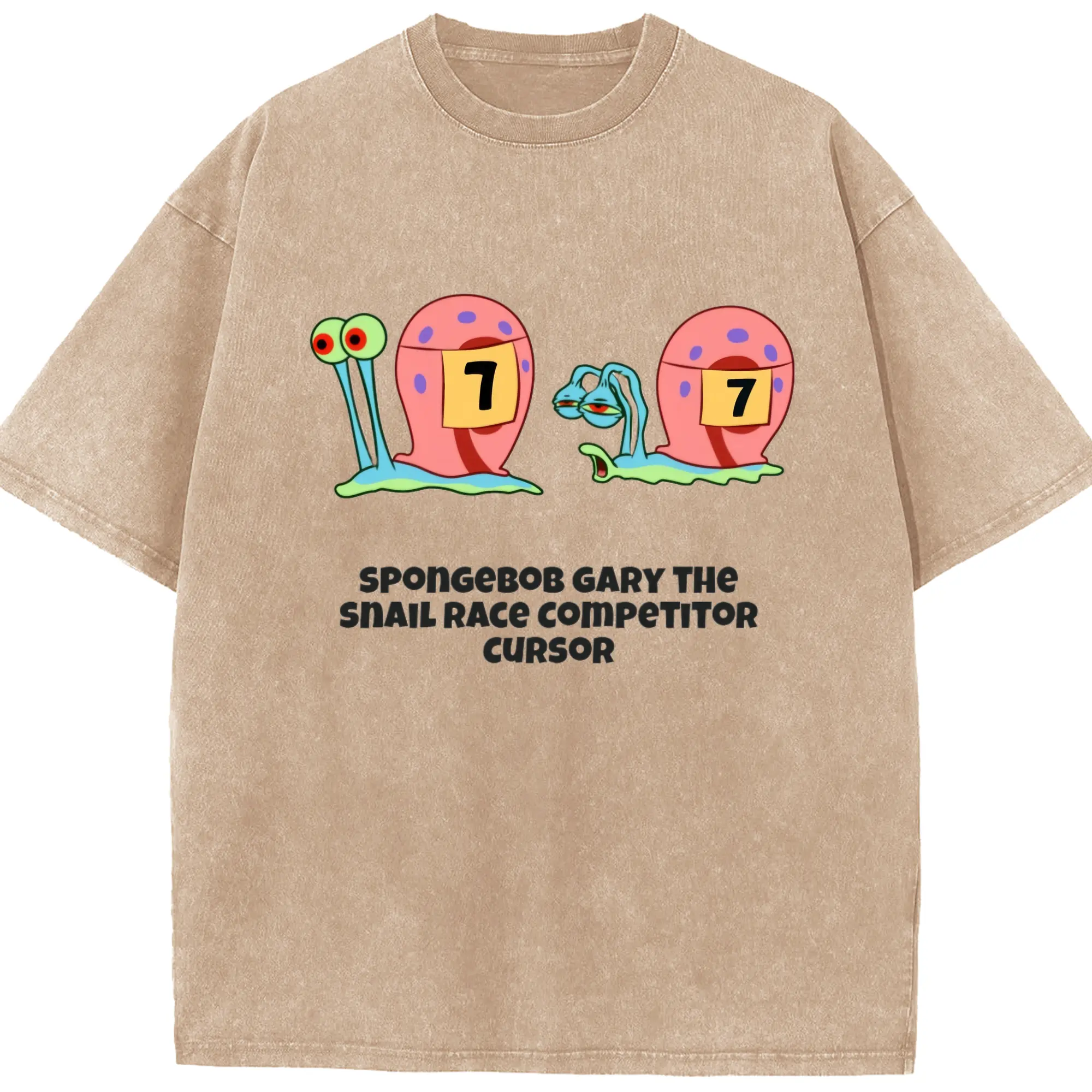 Gary The Snail Short Sleeve race Graphic T-Shirt - Washed Vintage Look 230g Cotton Oversized T-Shirt With Front Heat Transfer Print – Soft, Lightweight, Stylish Fit – Comfortable Casual Wear For Sports & Everyday Use