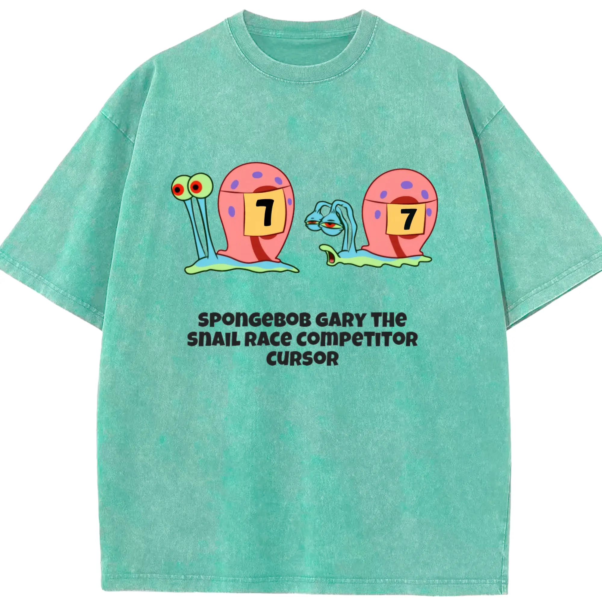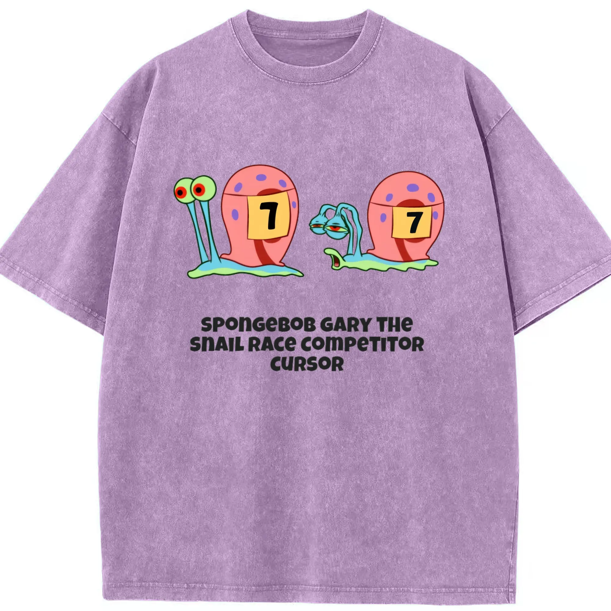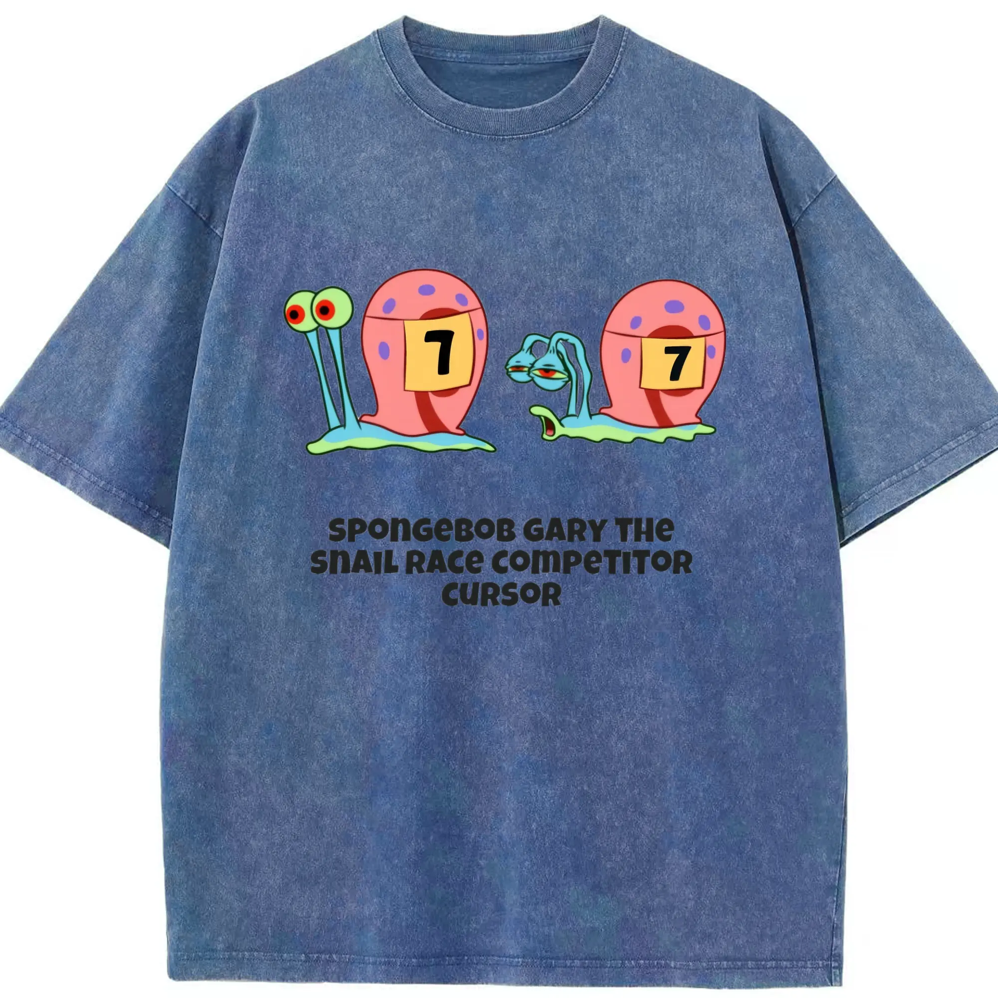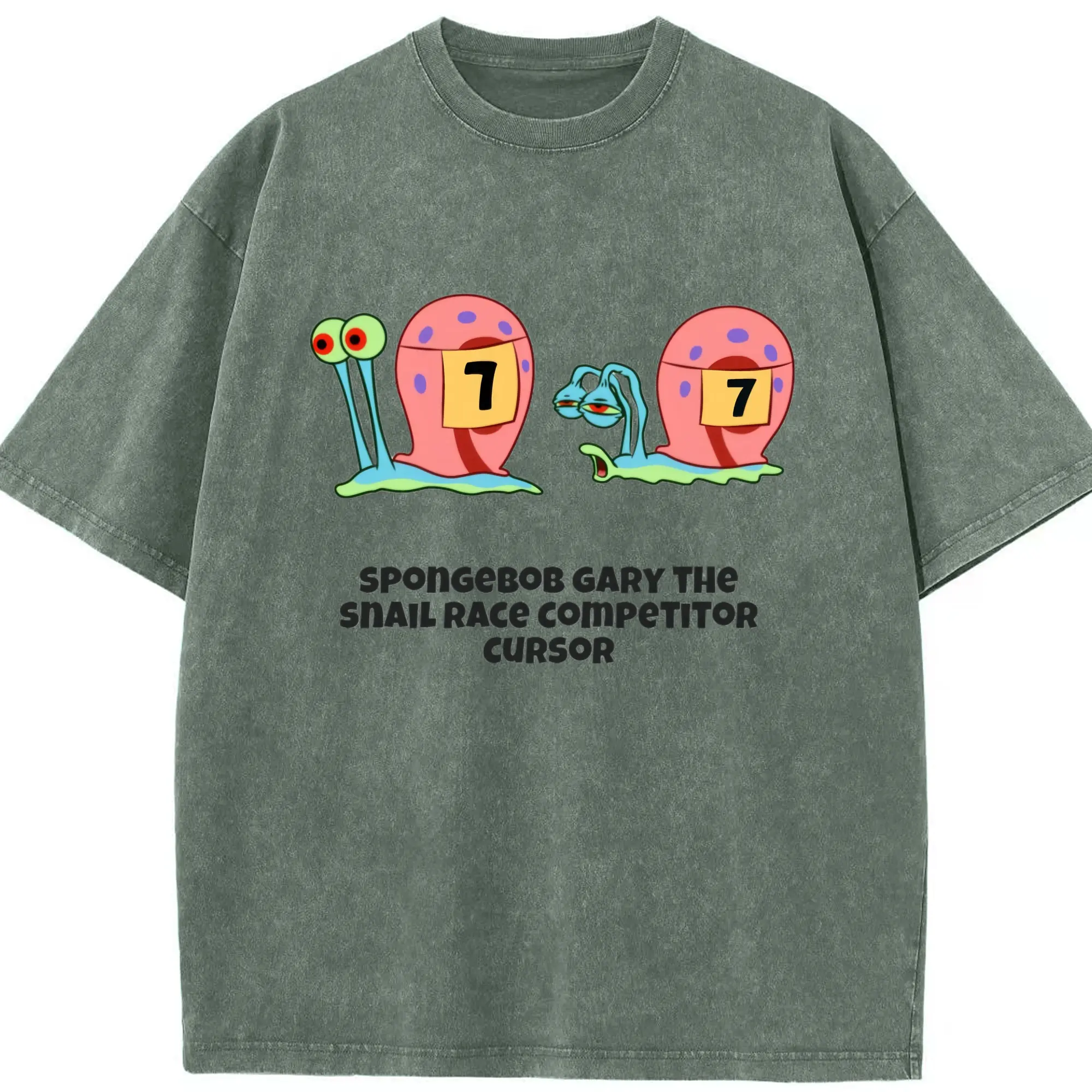 Gary The Snail Short Sleeve race Graphic T-Shirt - Washed Vintage Look 230g Cotton Oversized T-Shirt With Front Heat Transfer Print – Soft, Lightweight, Stylish Fit – Comfortable Casual Wear For Sports & Everyday Use