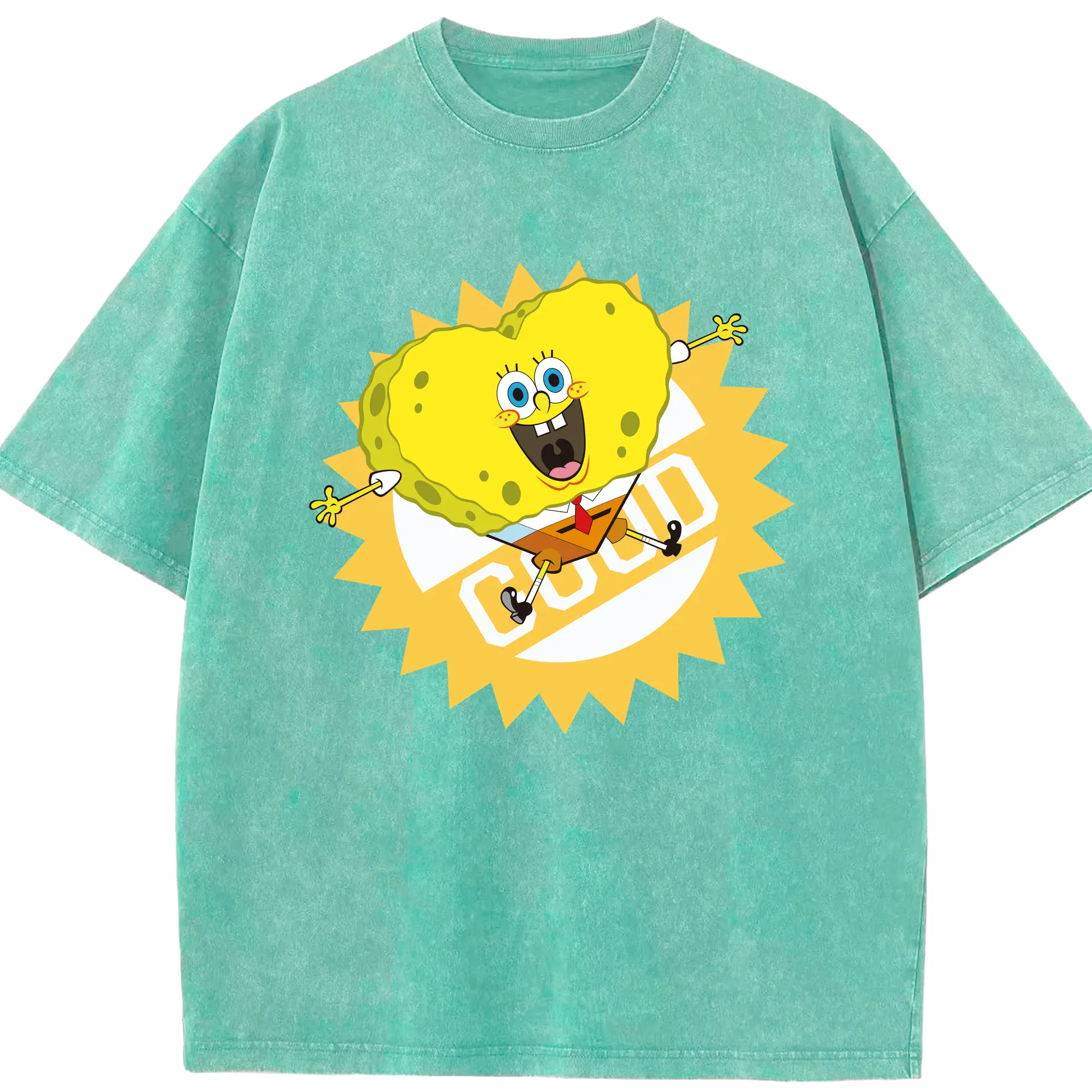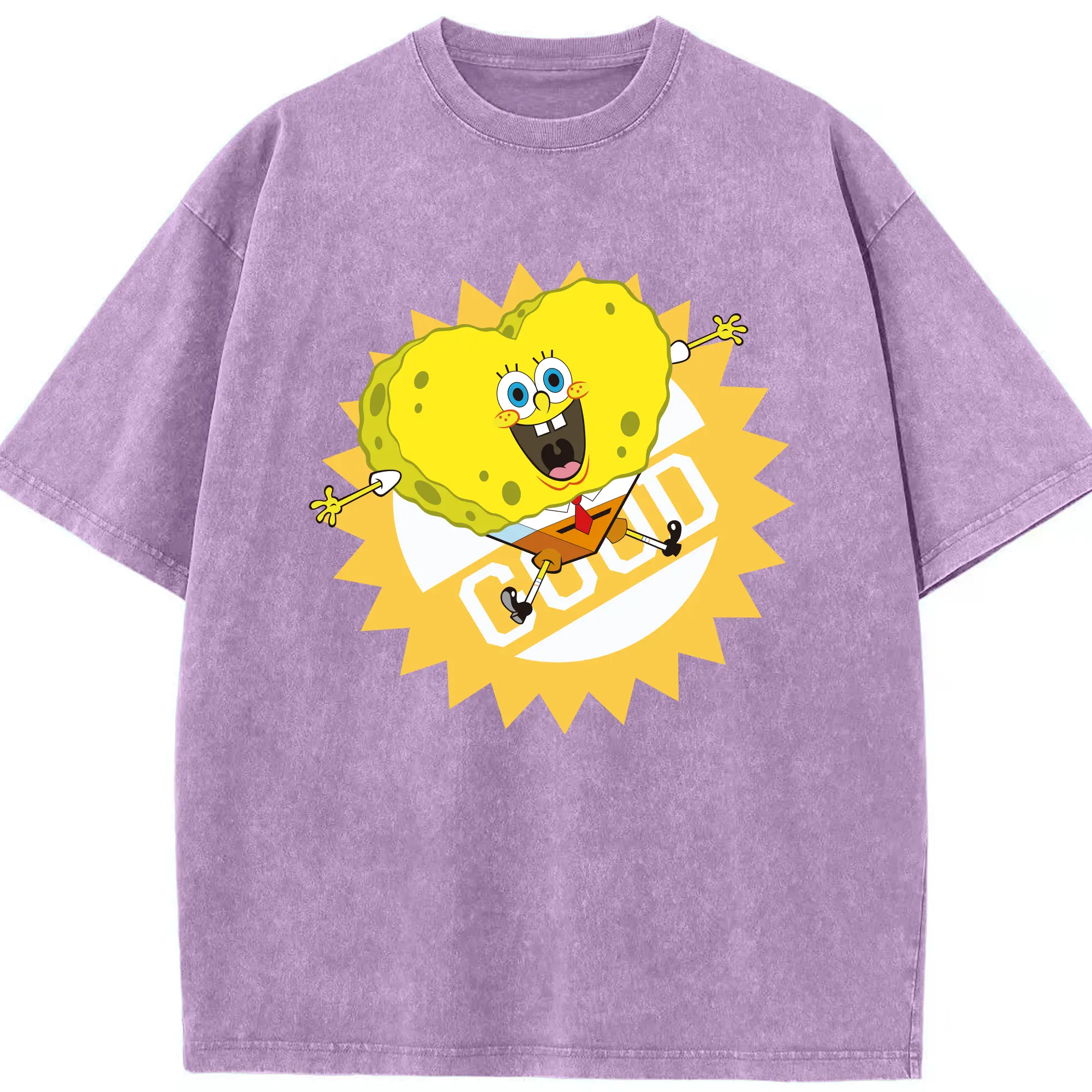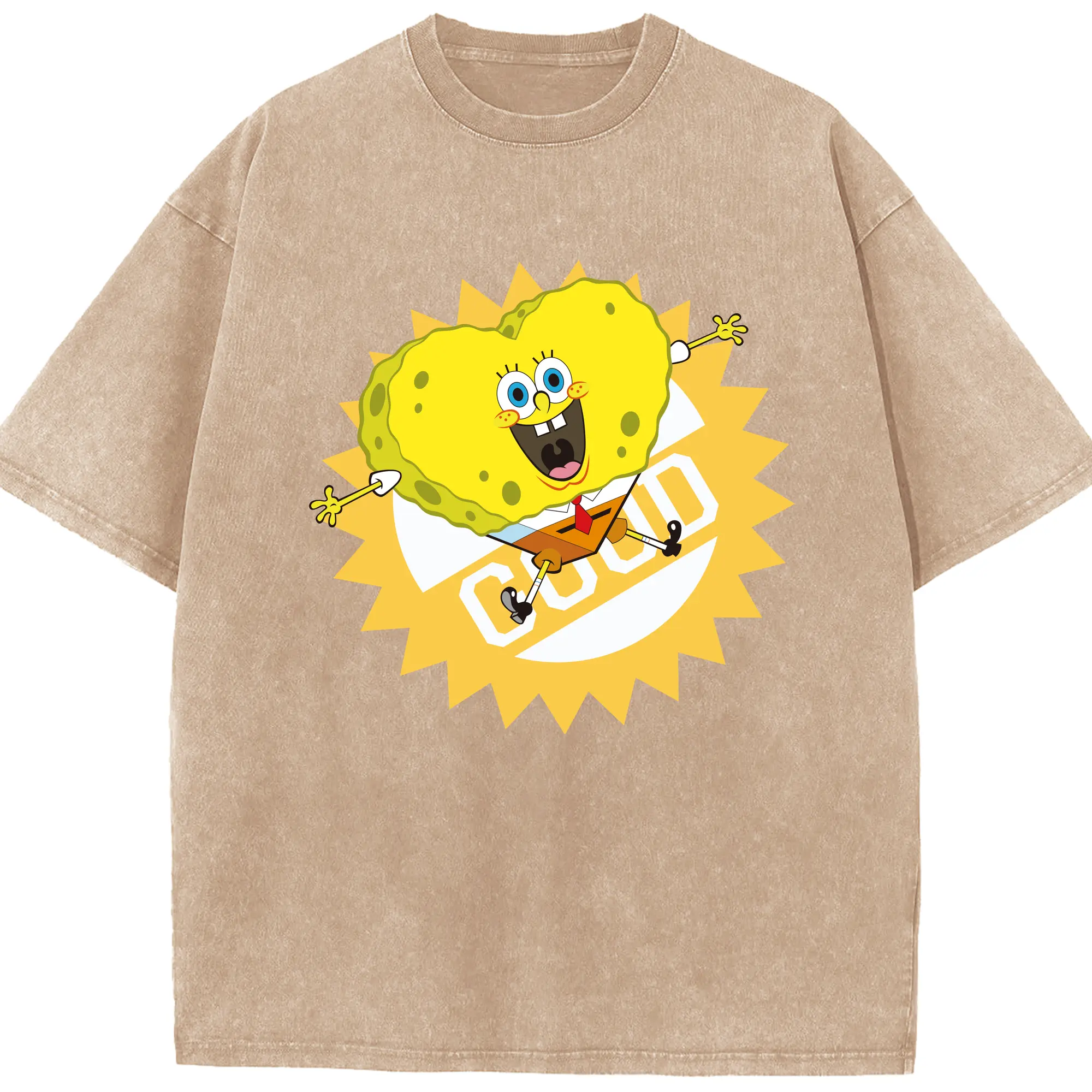 Heart-shaped spongebob squarepants t shirt - Washed Vintage Look 230g Cotton Oversized T-Shirt With Front Heat Transfer Print – Soft, Lightweight, Stylish Fit – Comfortable Casual Wear For Sports & Everyday Use