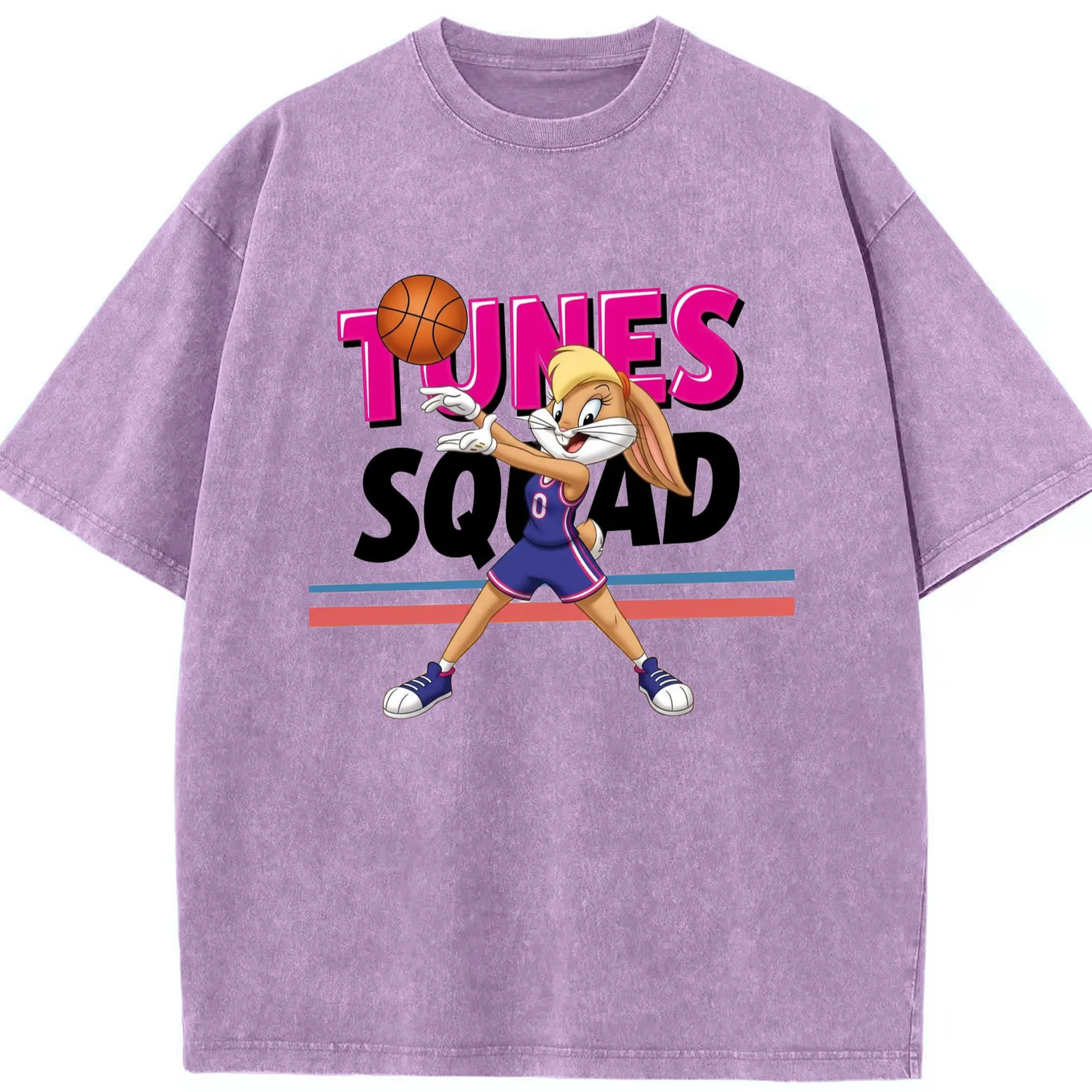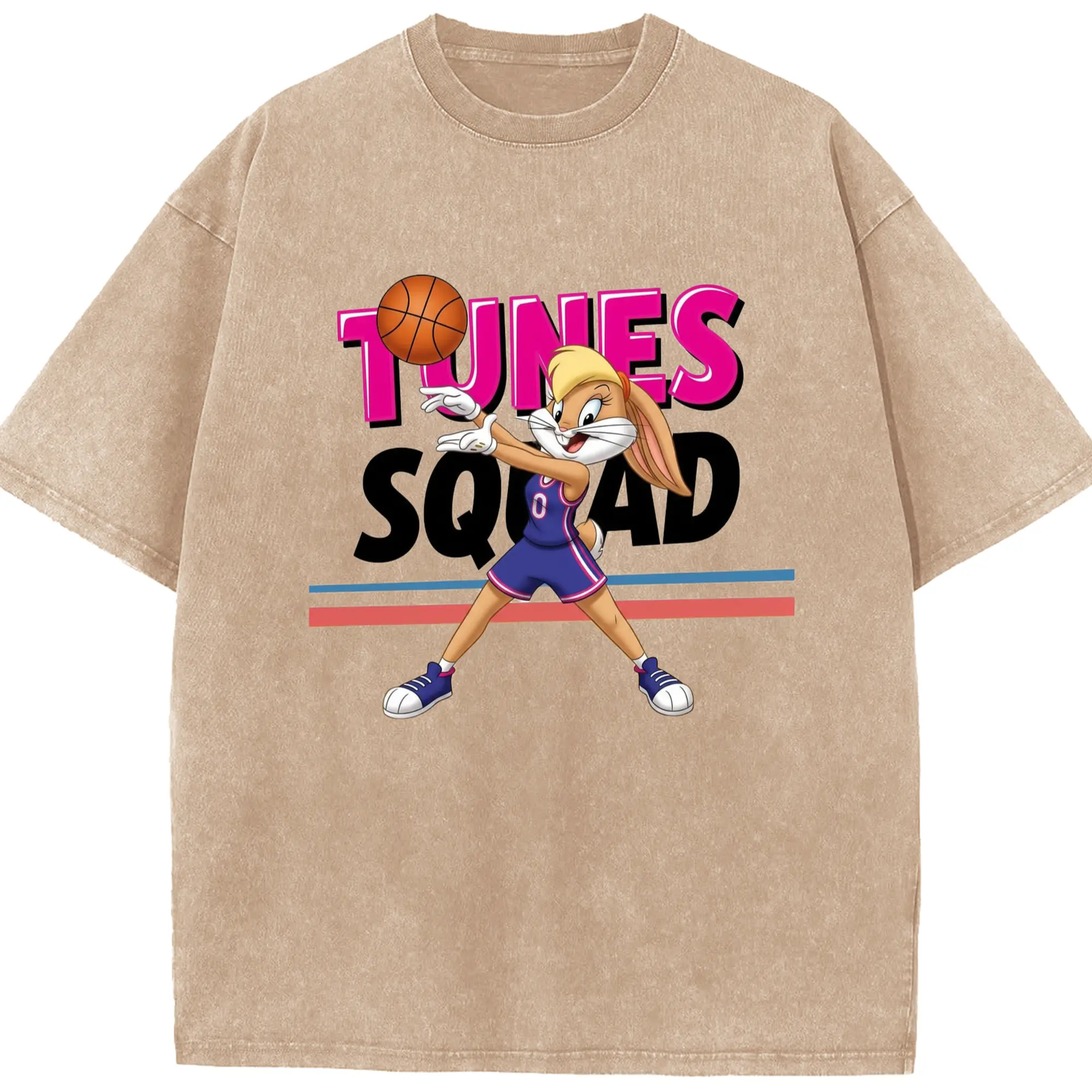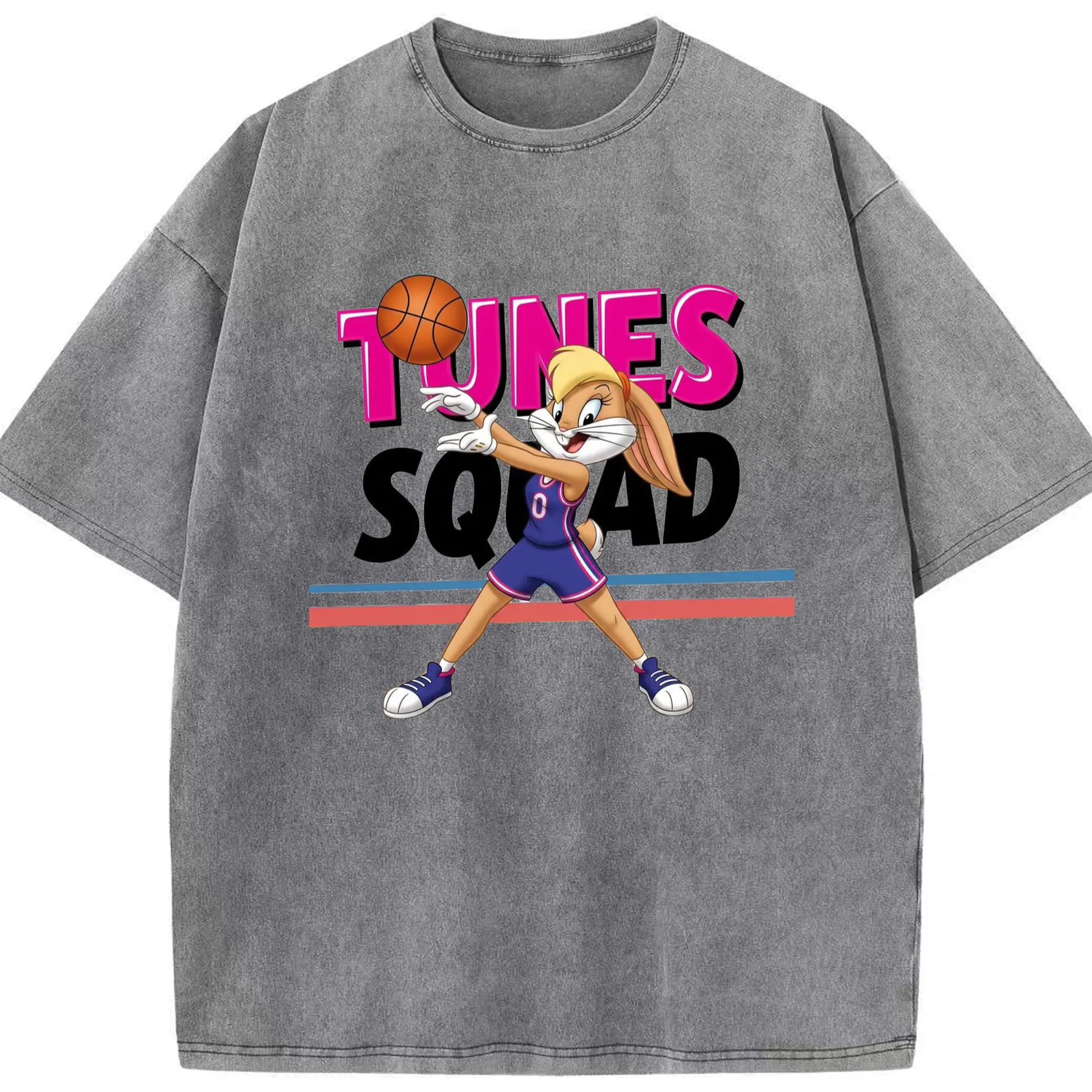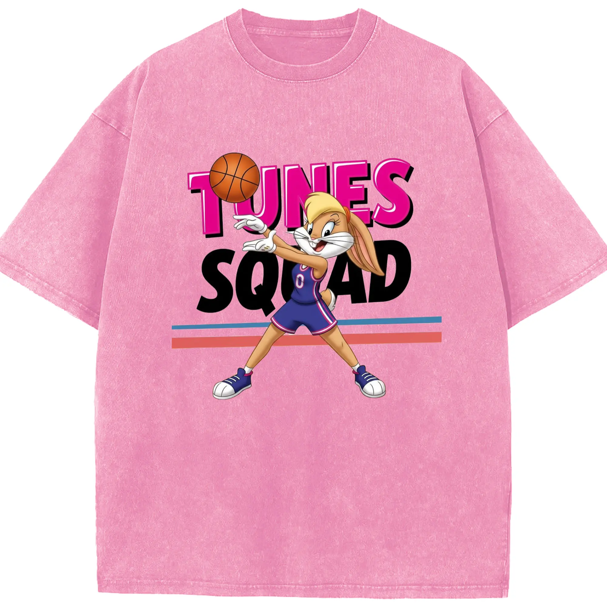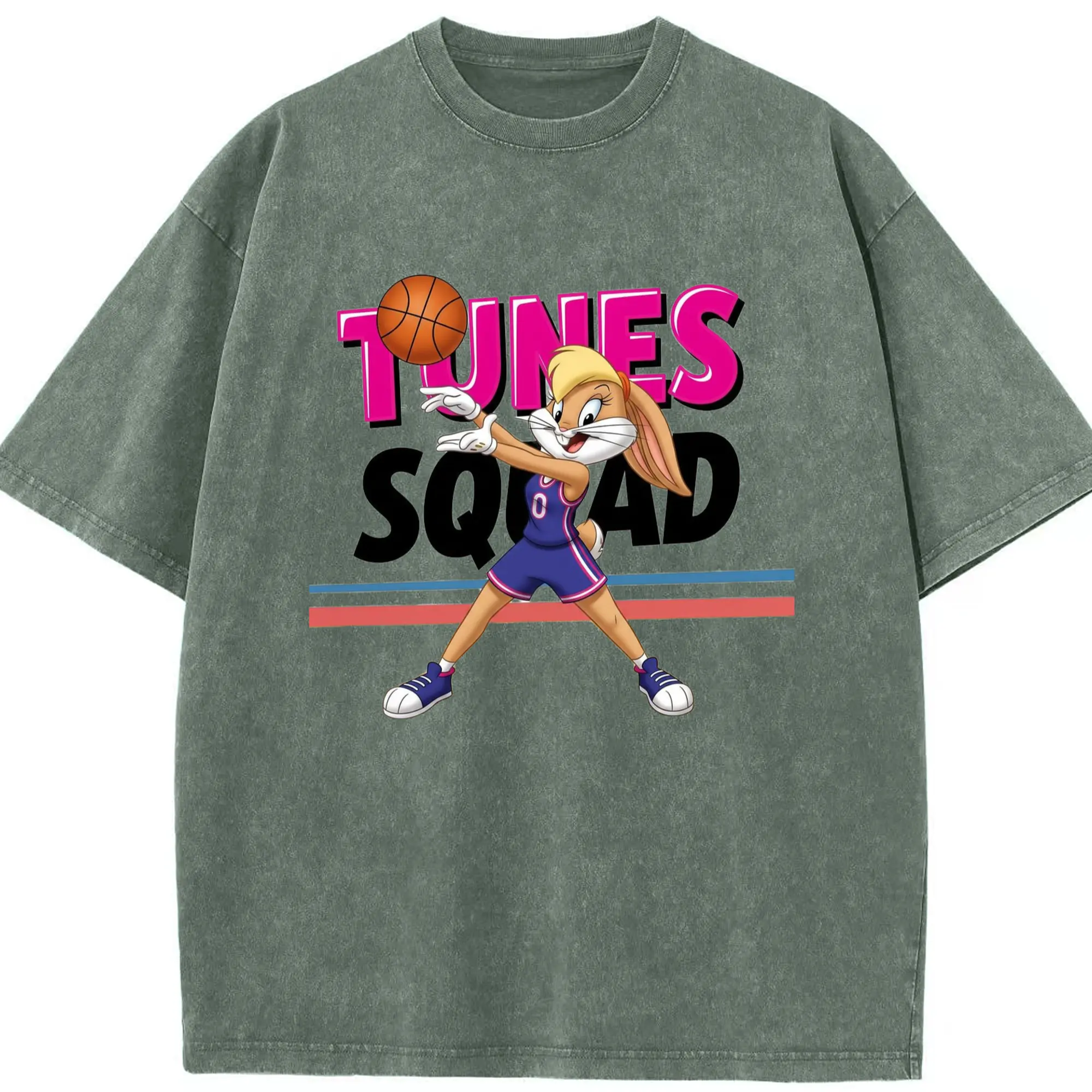Lola bunny graphic shirt​ - Washed Vintage Look 230g Cotton Oversized T-Shirt With Front Heat Transfer Print – Soft, Lightweight, Stylish Fit – Comfortable Casual Wear For Sports & Everyday Use