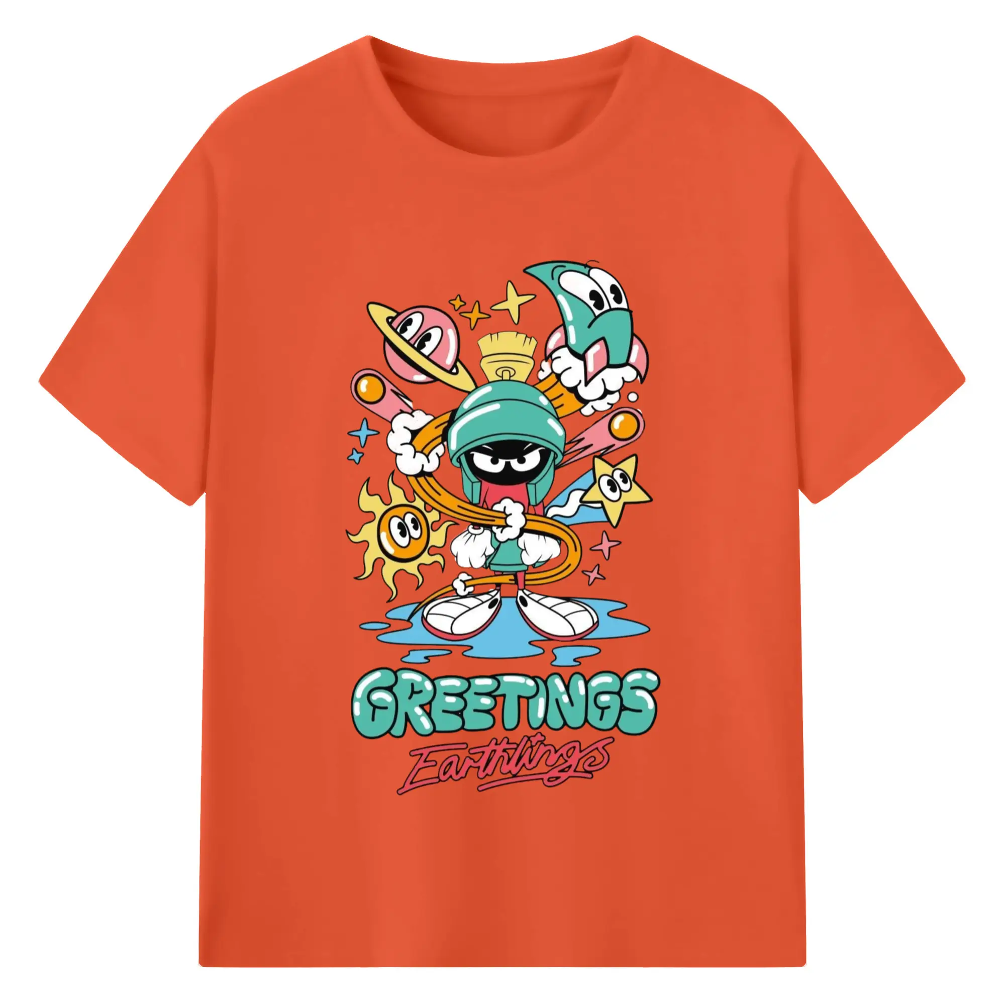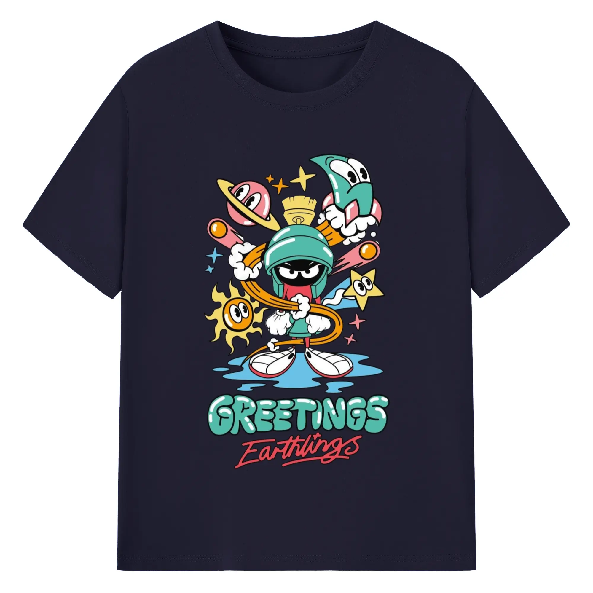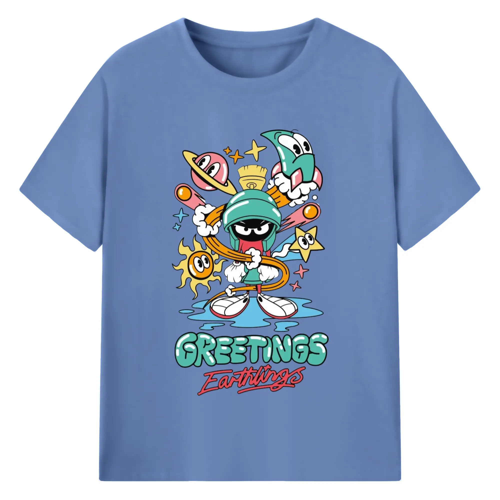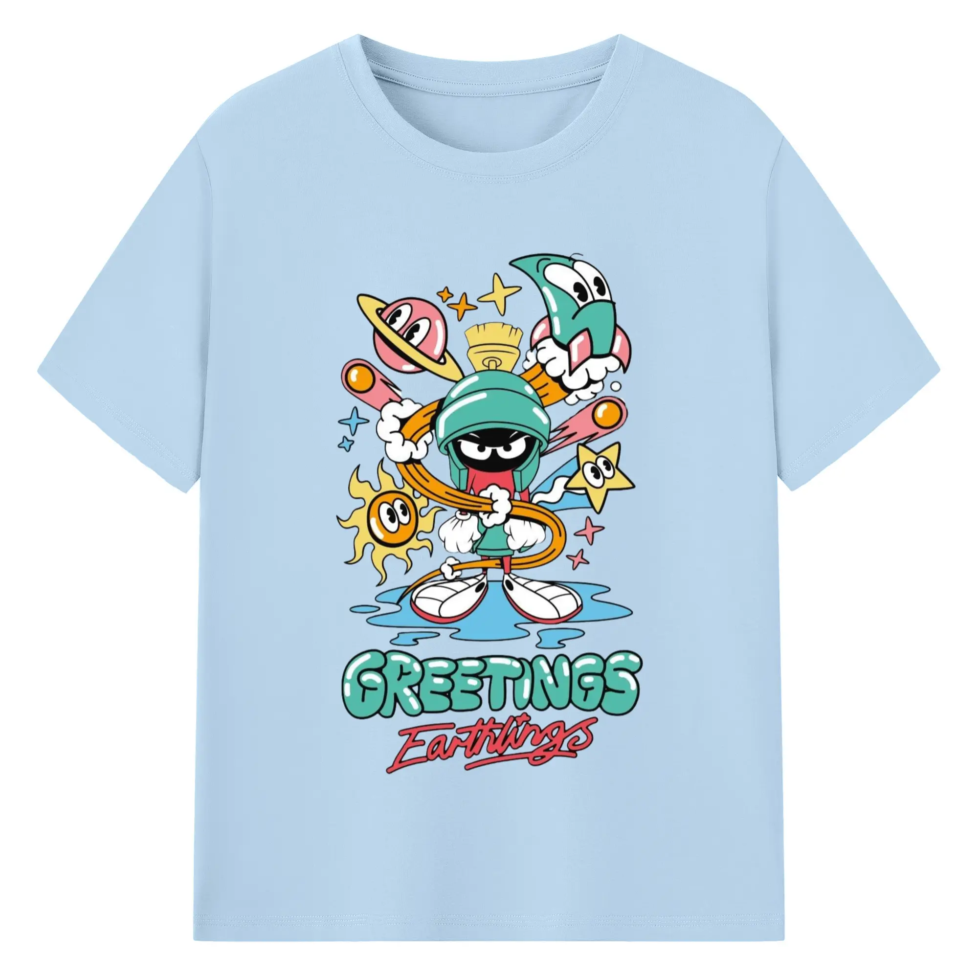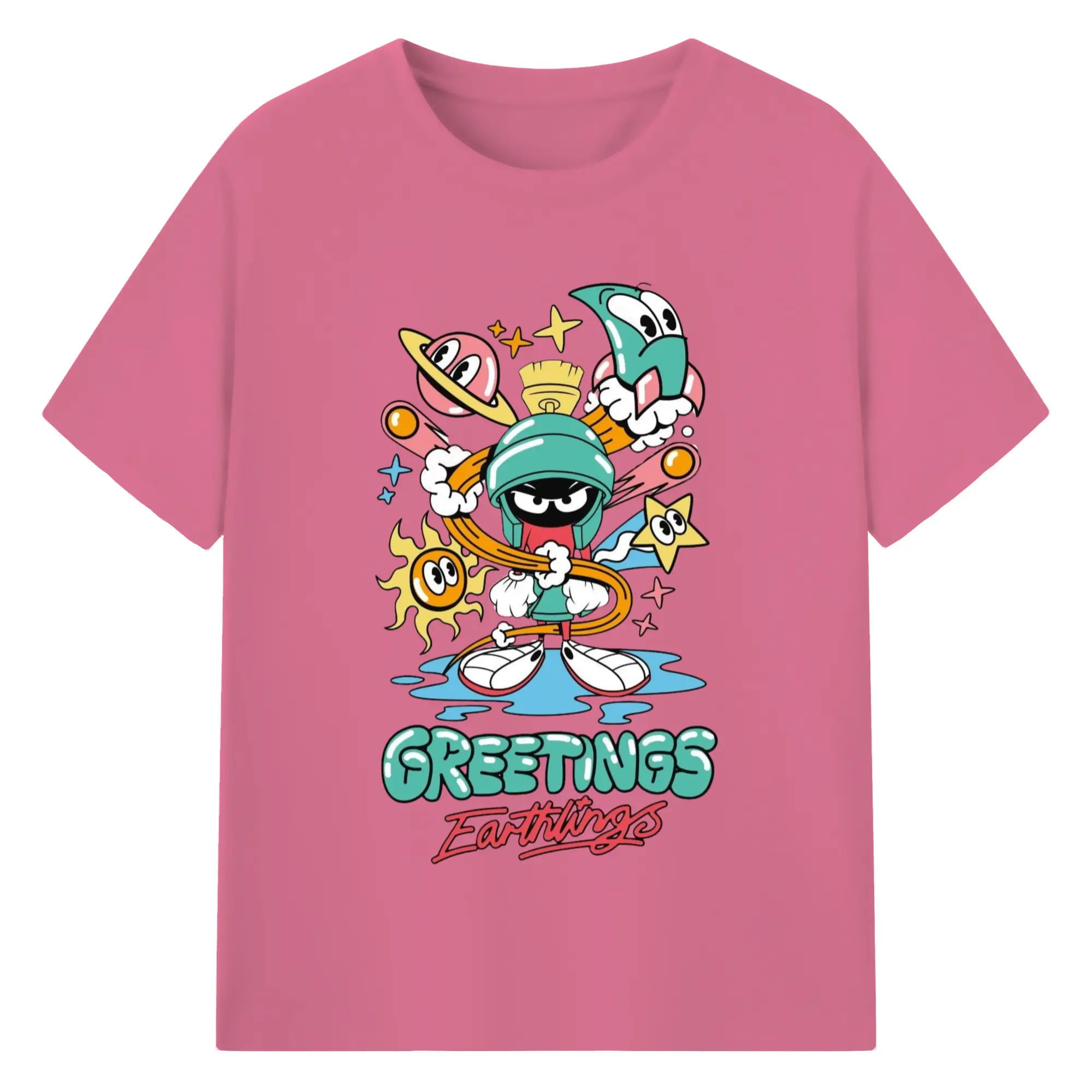 Marvin the martian cartoon t shirt - 180g Cotton T-Shirt With Front Heat Transfer Print – Soft, Lightweight, Fitted Design – Comfortable Casual Wear For Sports & Everyday Use