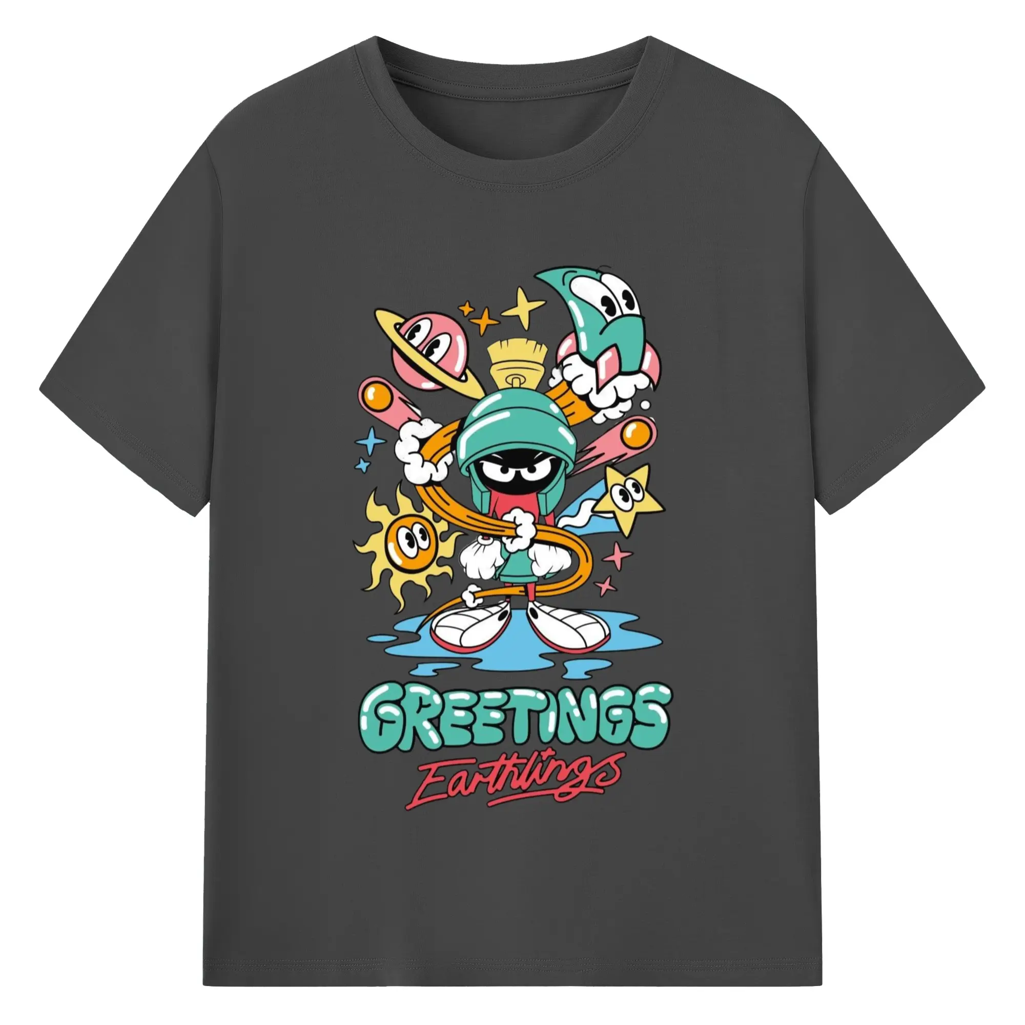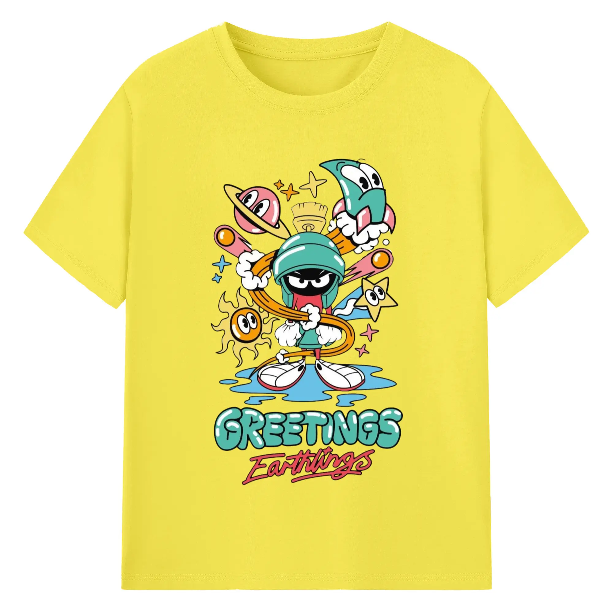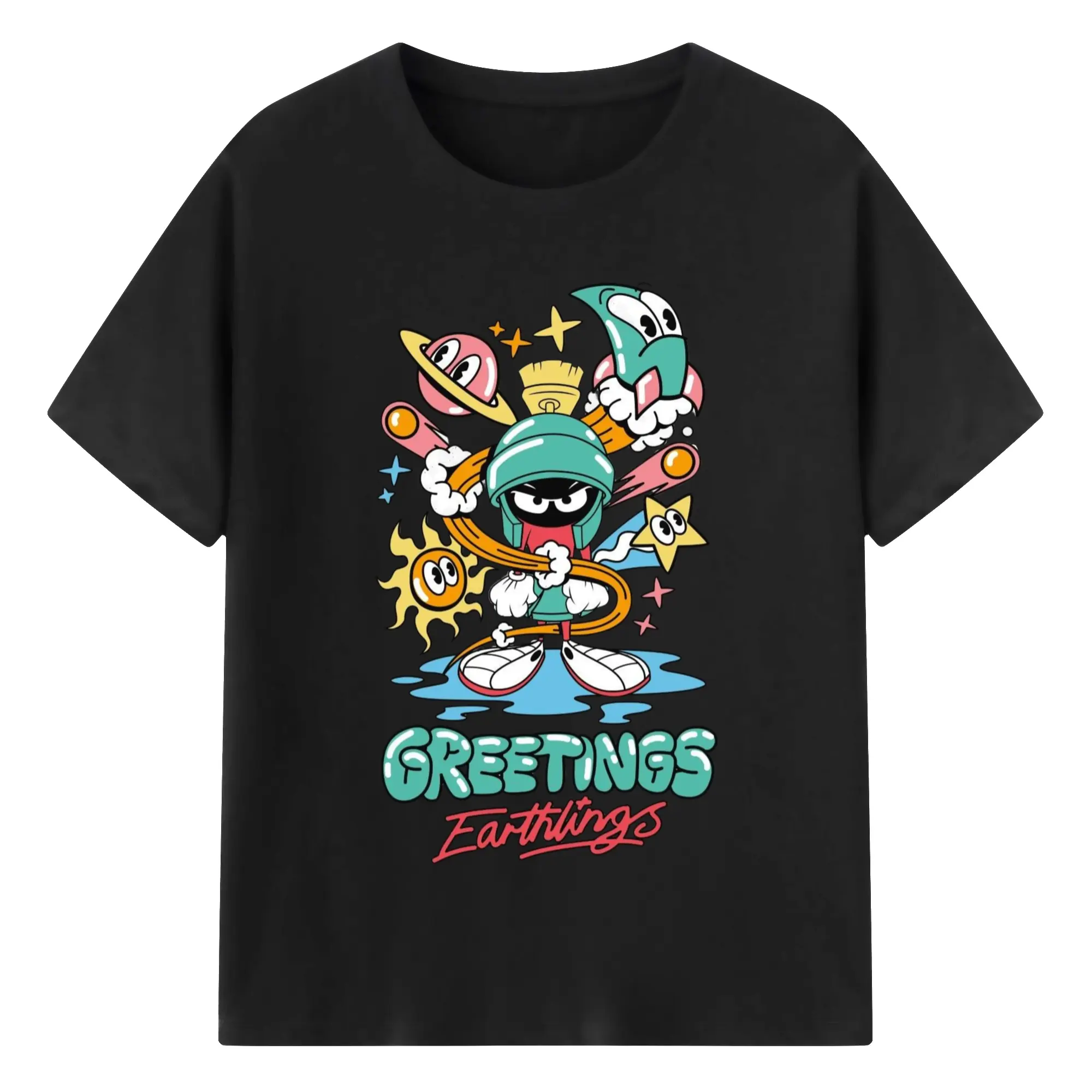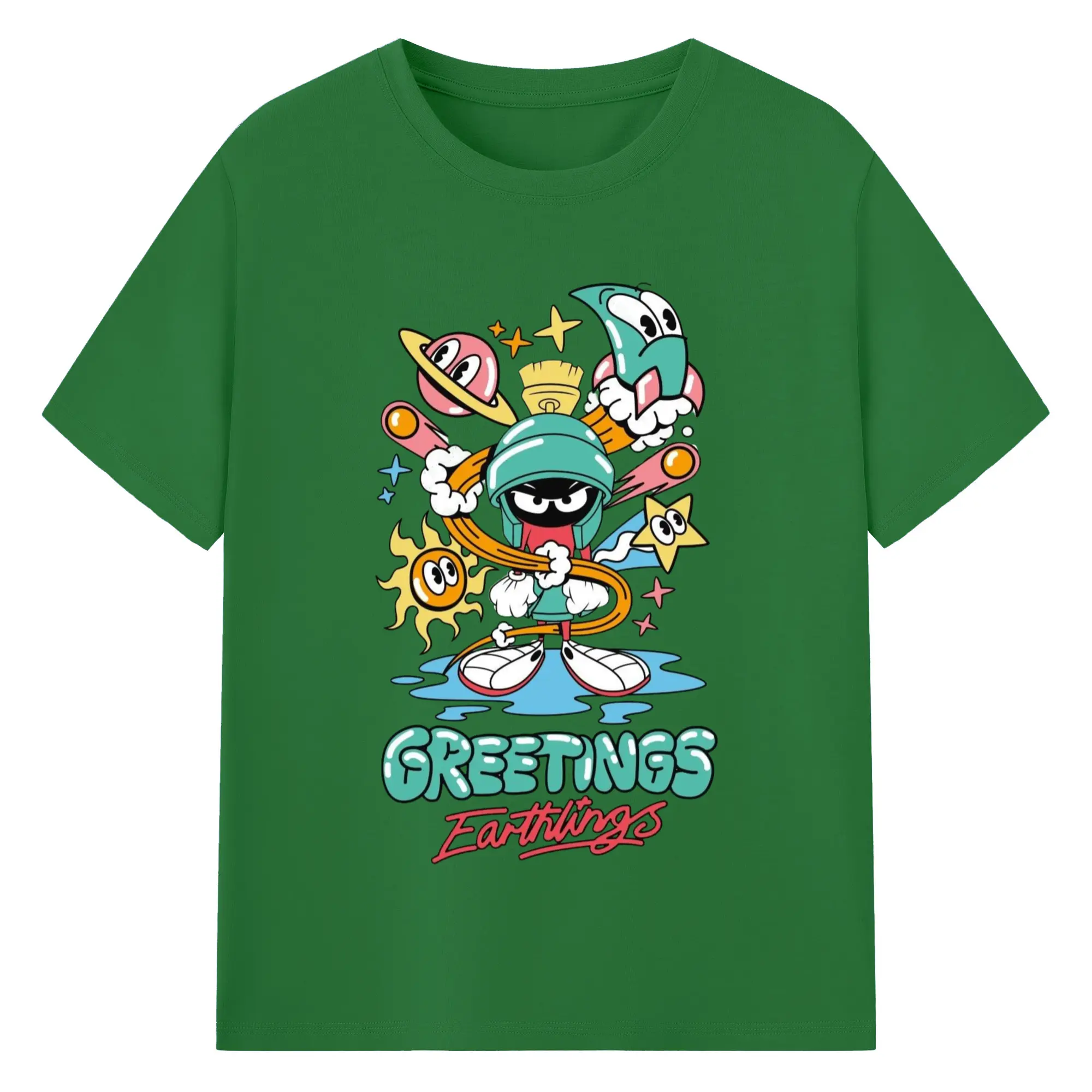 Marvin the martian cartoon t shirt - 180g Cotton T-Shirt With Front Heat Transfer Print – Soft, Lightweight, Fitted Design – Comfortable Casual Wear For Sports & Everyday Use