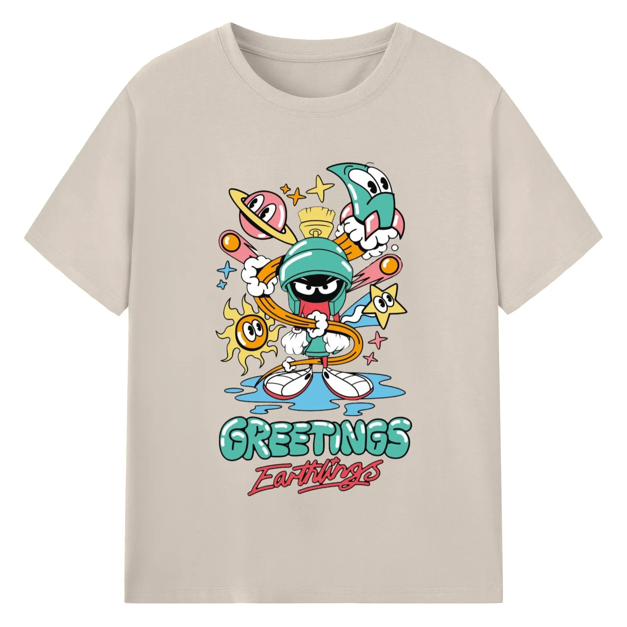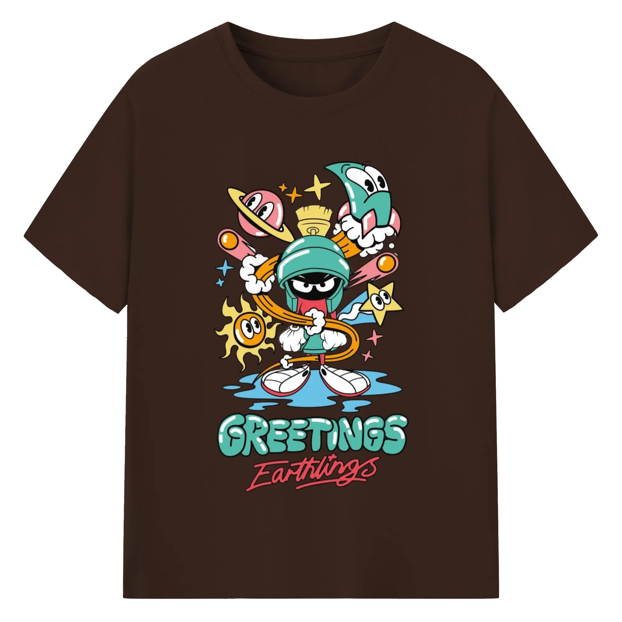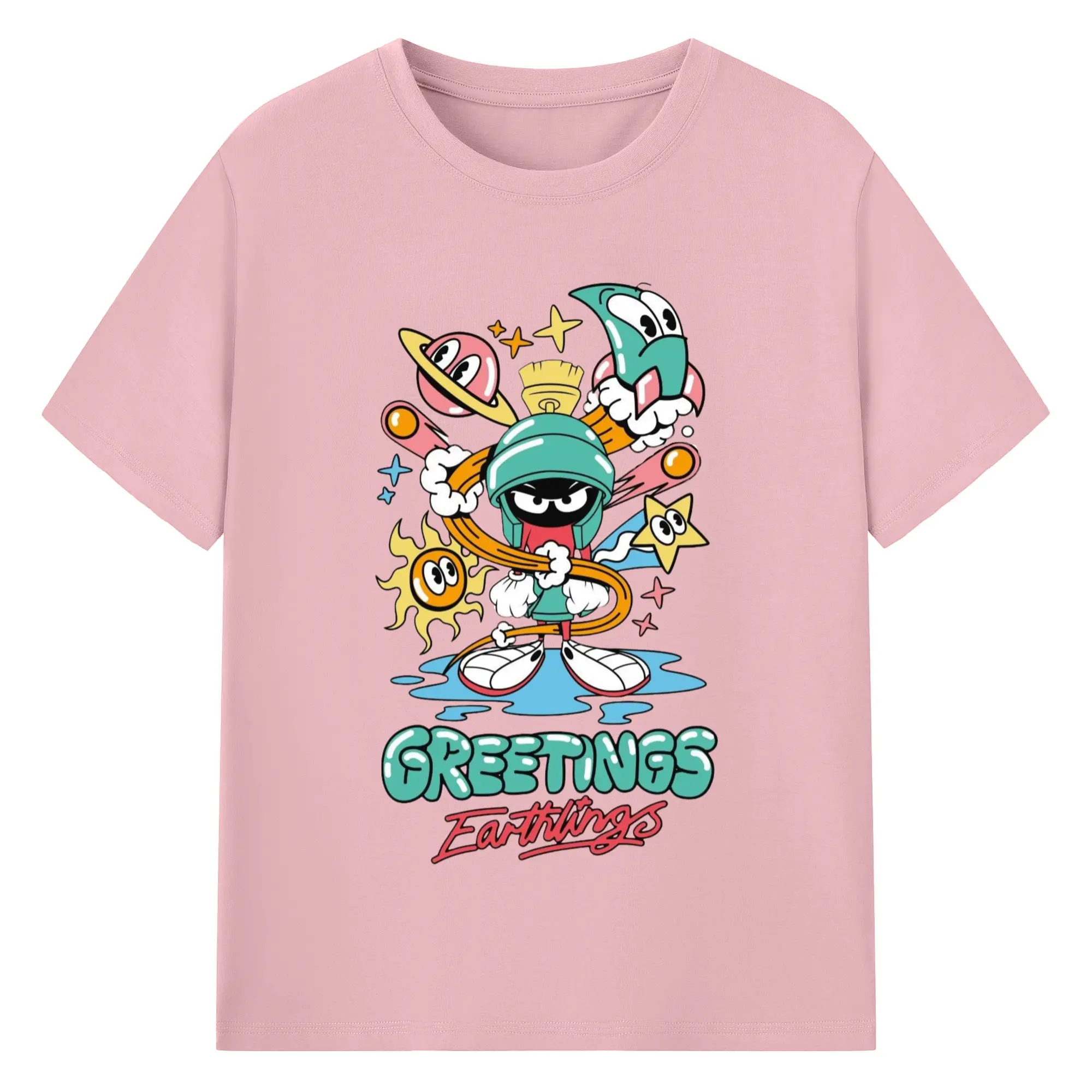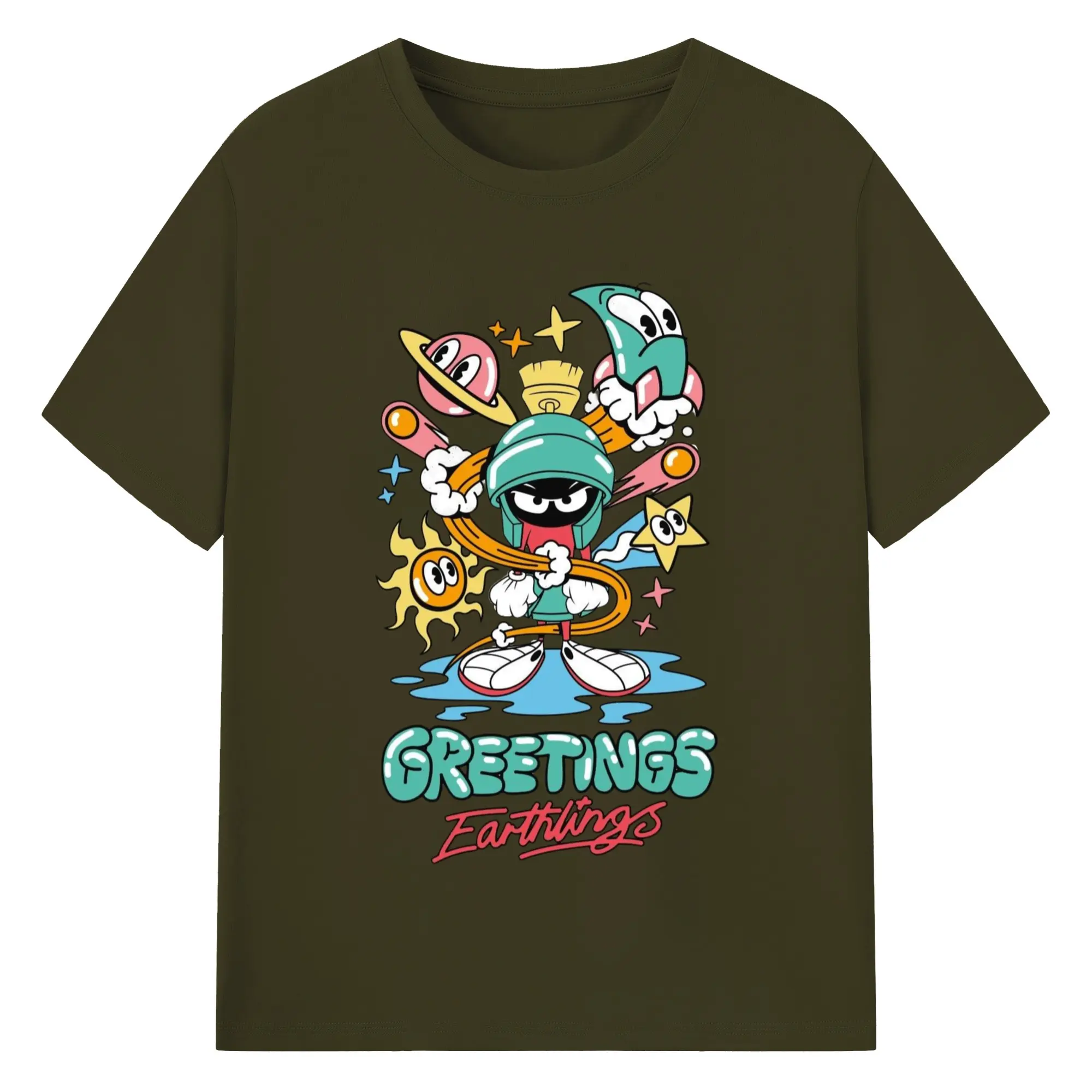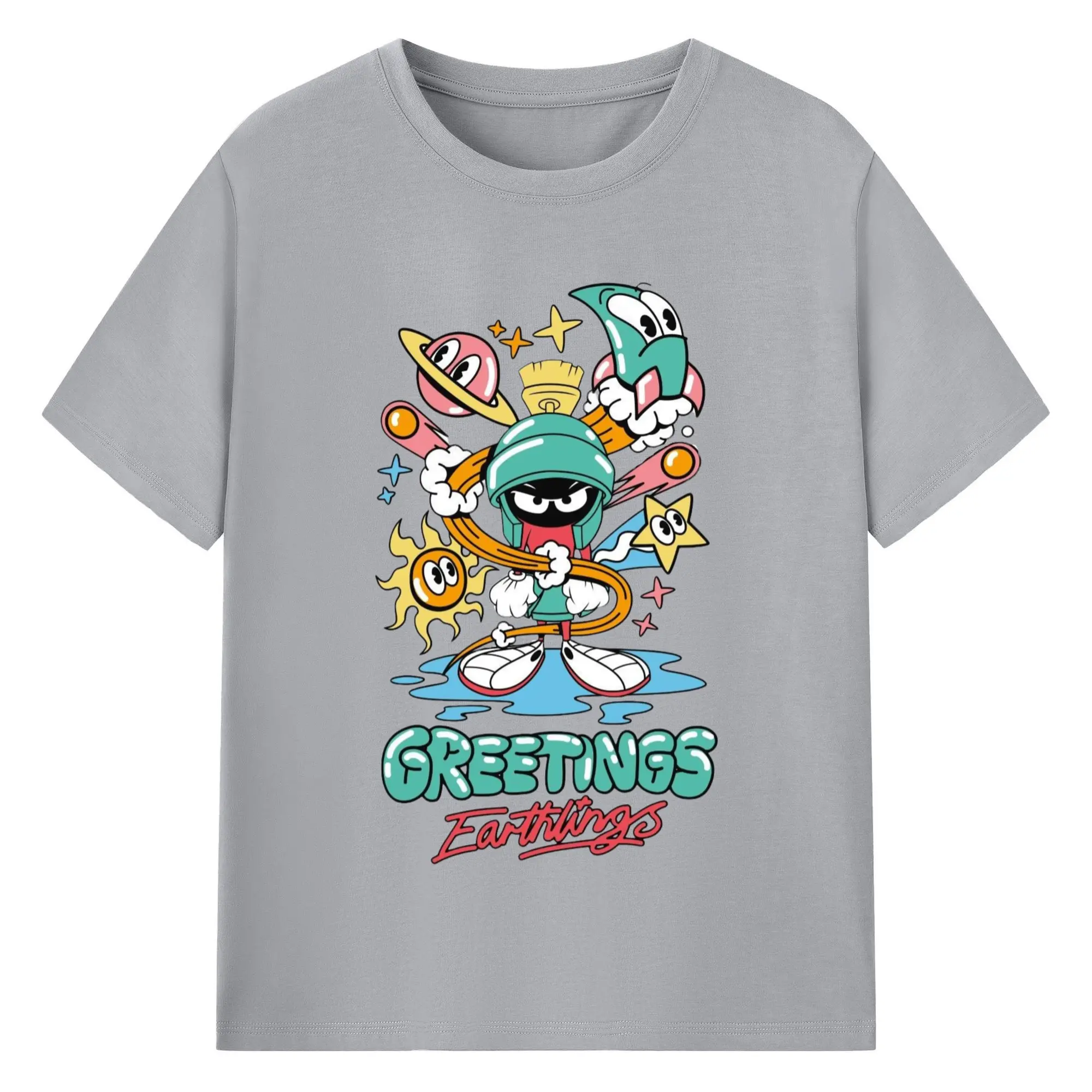 Marvin the martian cartoon t shirt - 180g Cotton T-Shirt With Front Heat Transfer Print – Soft, Lightweight, Fitted Design – Comfortable Casual Wear For Sports & Everyday Use