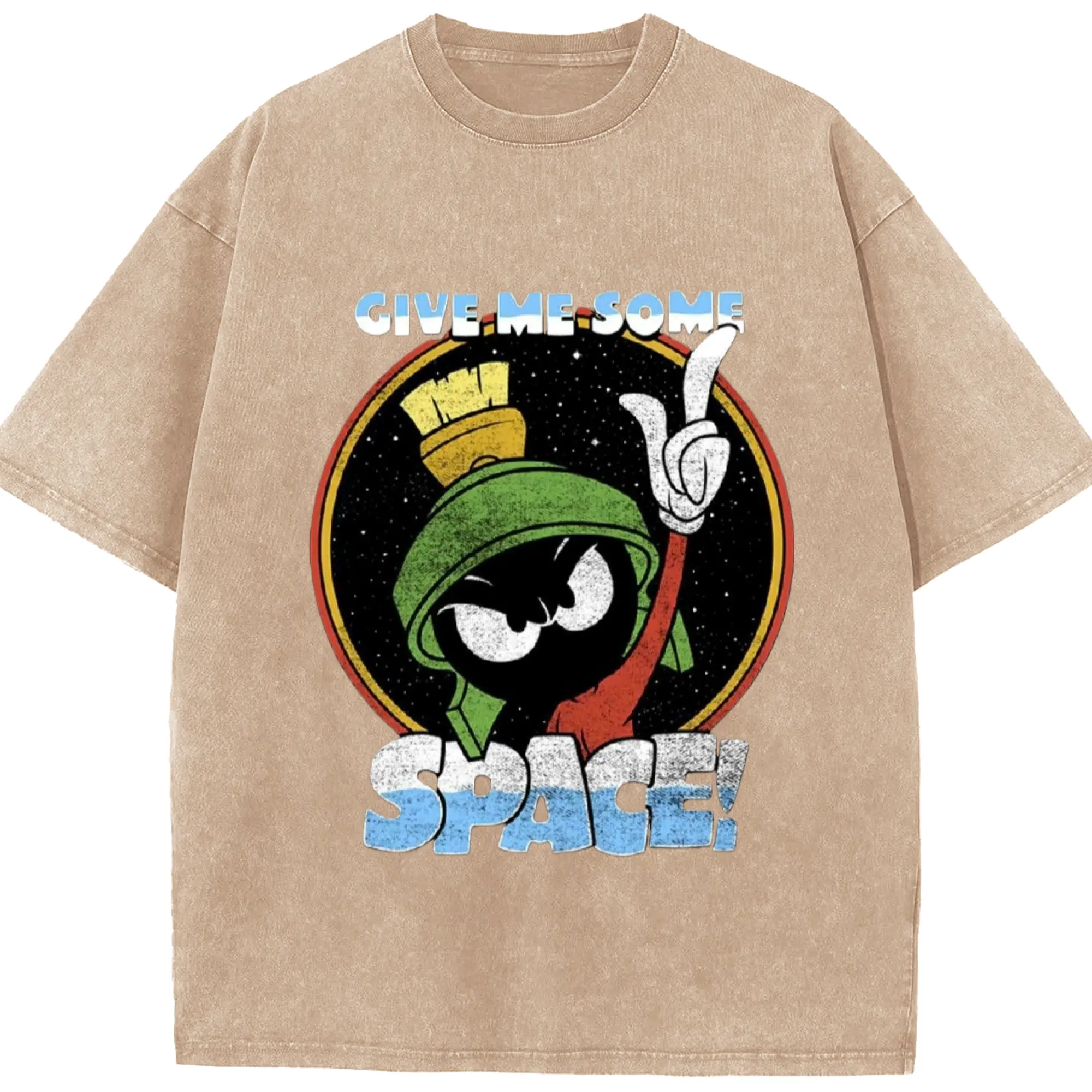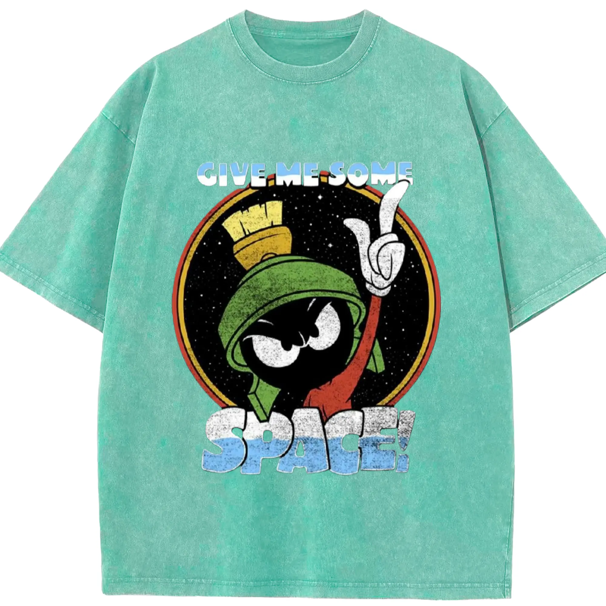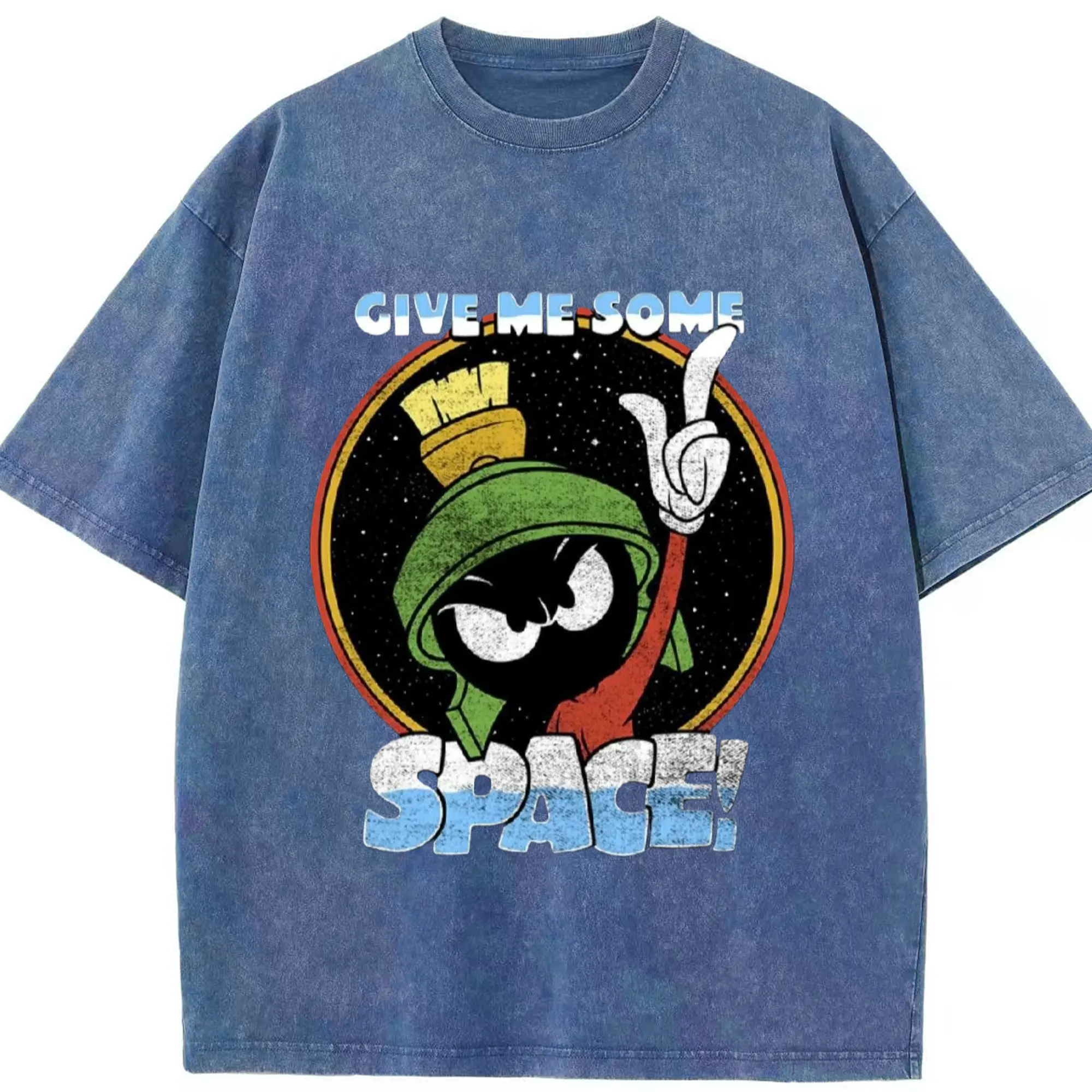 Marvin the martian space jam shirt - Washed Vintage Look 230g Cotton Oversized T-Shirt With Front Heat Transfer Print – Soft, Lightweight, Stylish Fit – Comfortable Casual Wear For Sports & Everyday Use