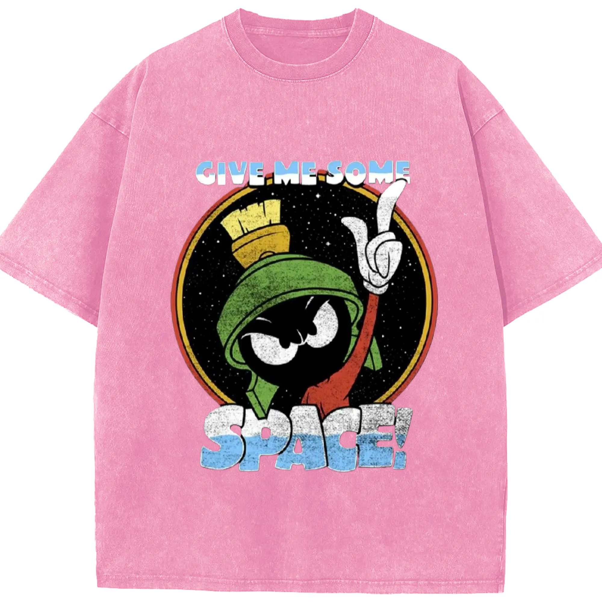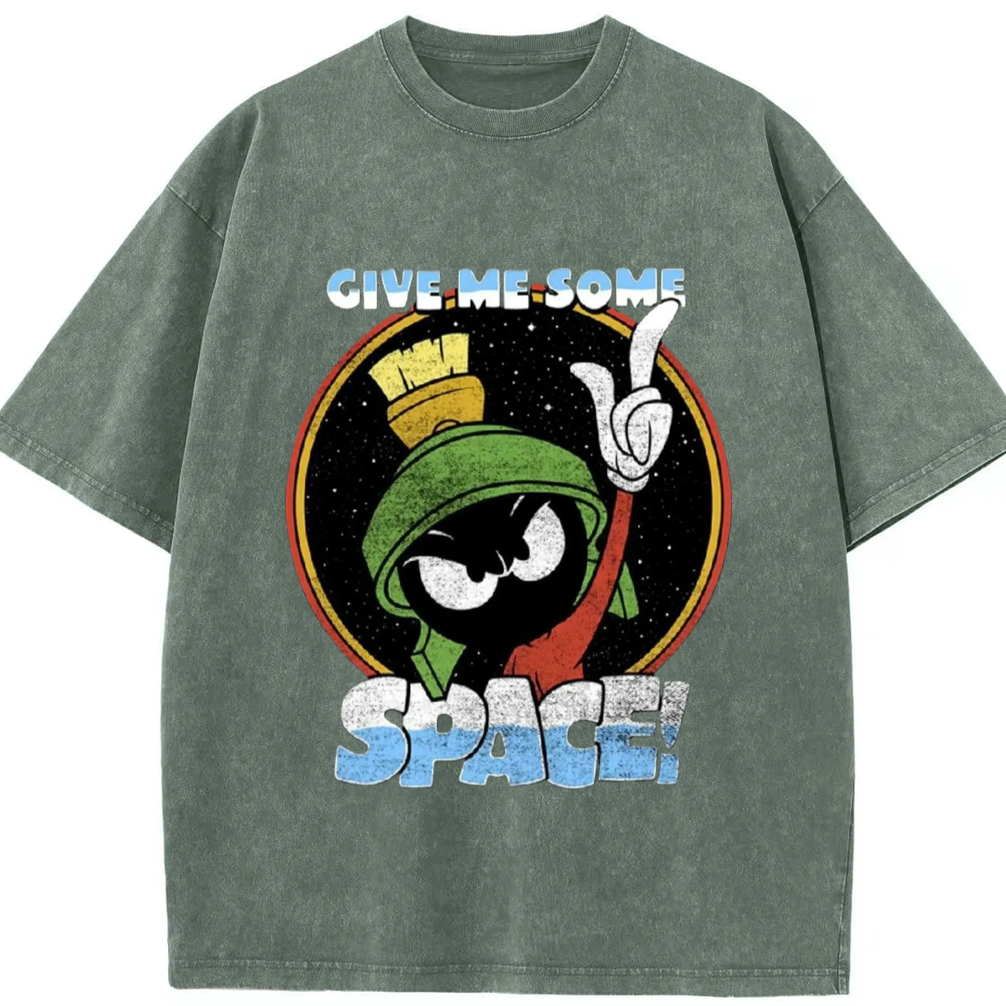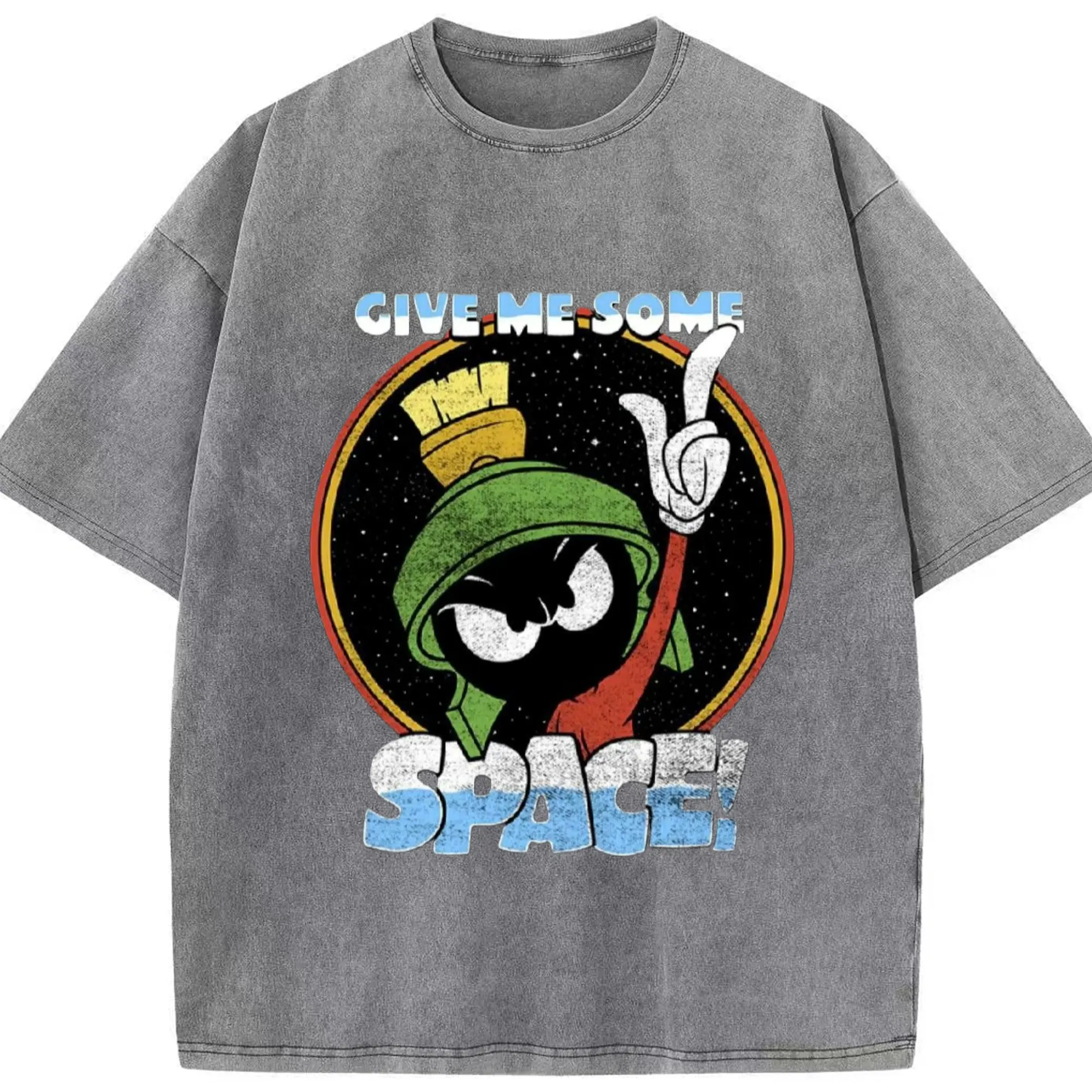 Marvin the martian space jam shirt - Washed Vintage Look 230g Cotton Oversized T-Shirt With Front Heat Transfer Print – Soft, Lightweight, Stylish Fit – Comfortable Casual Wear For Sports & Everyday Use