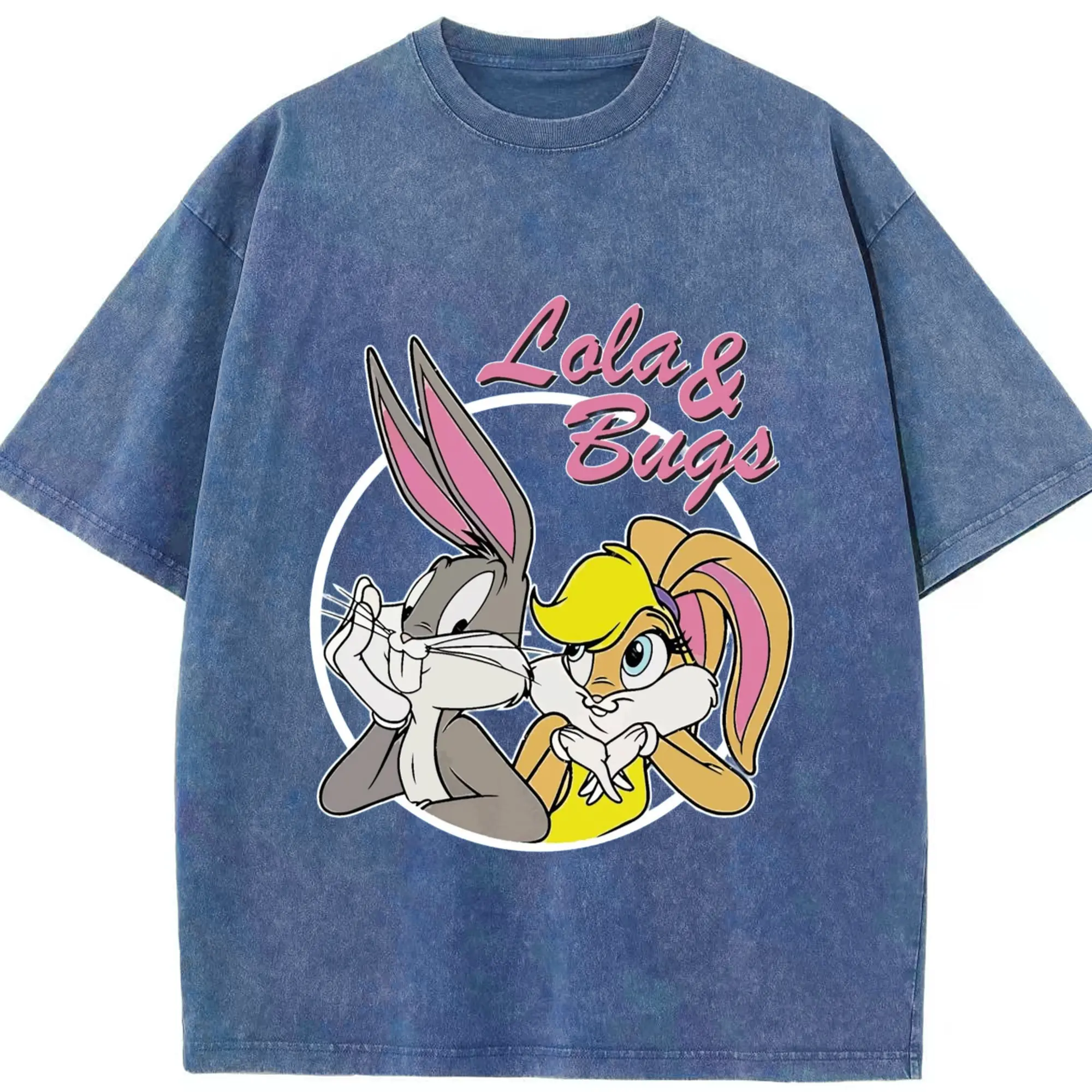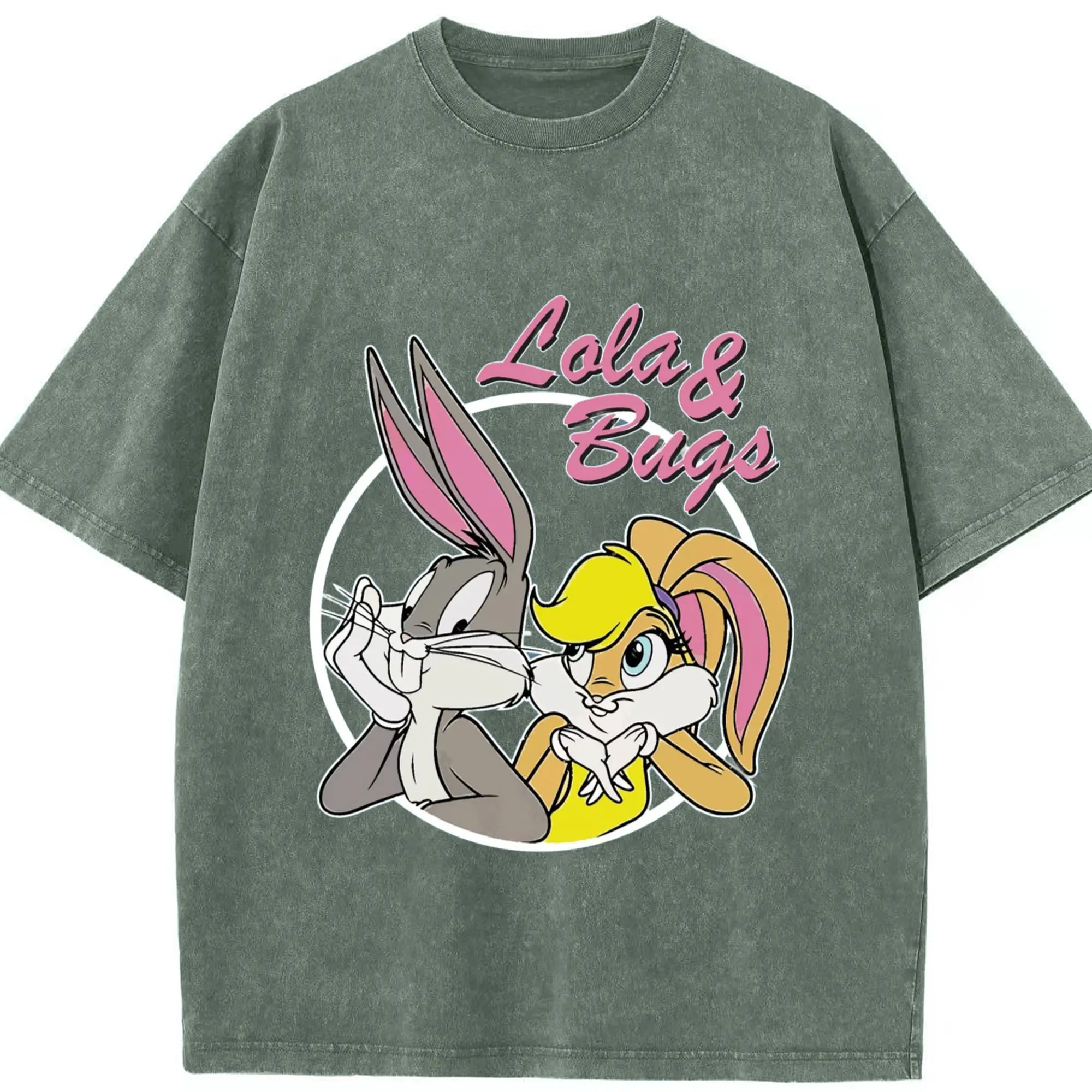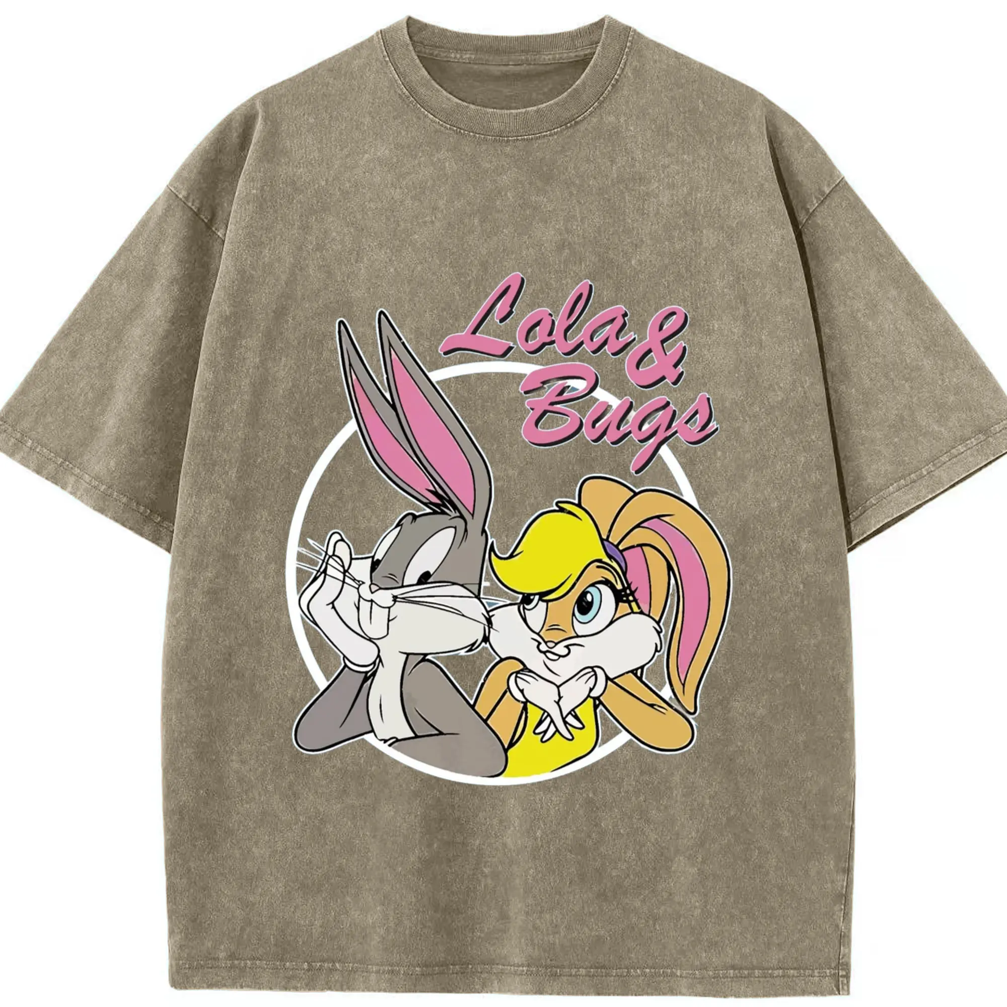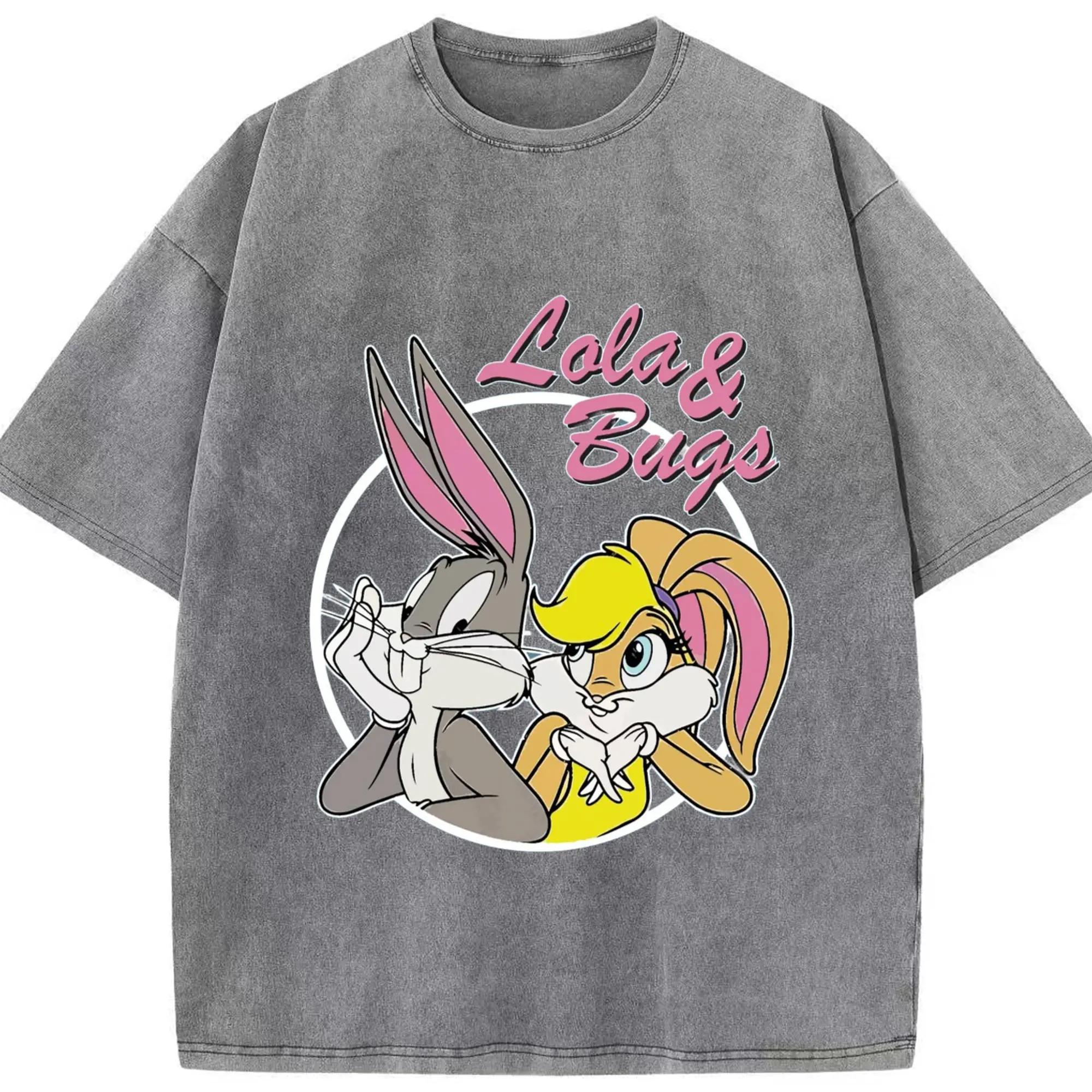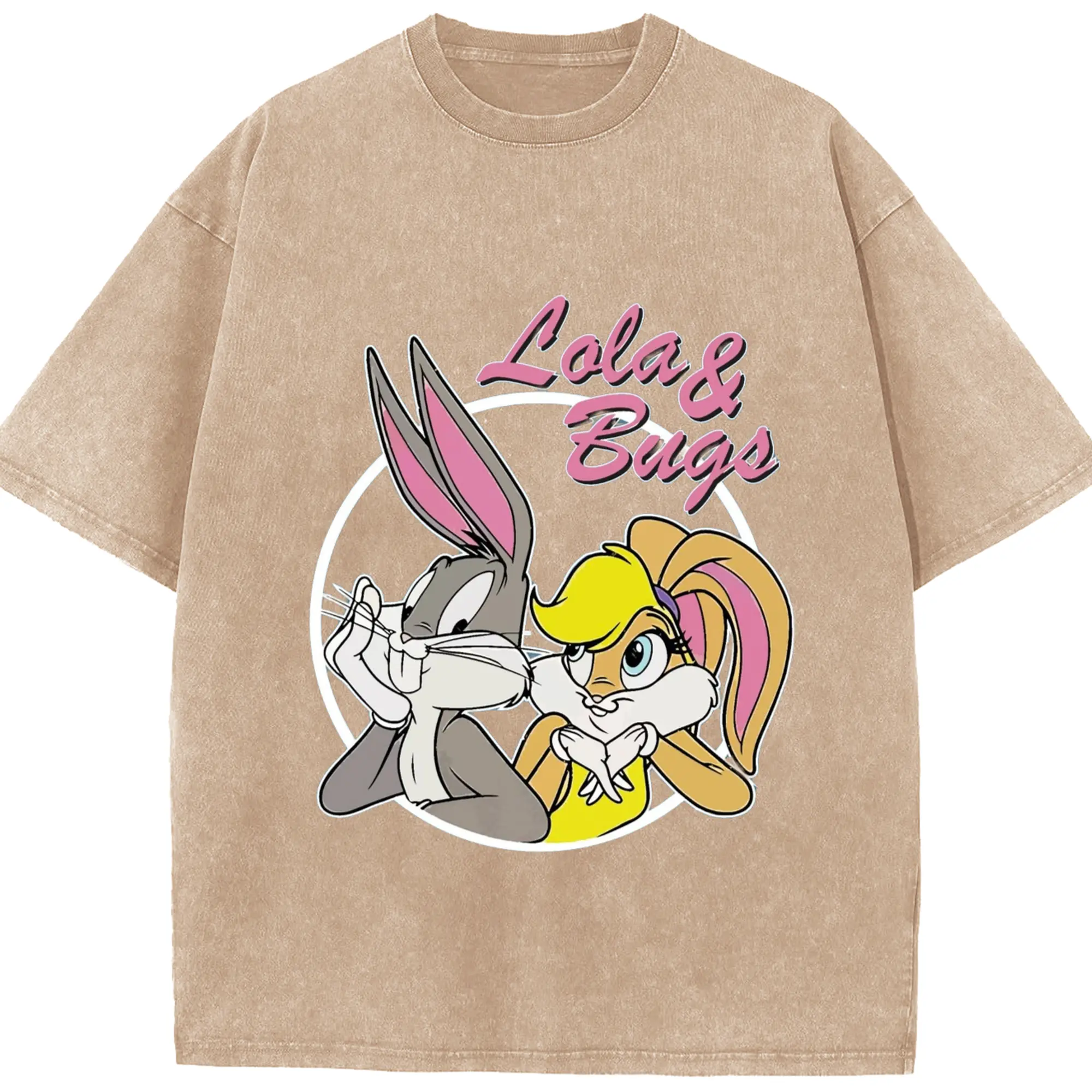 Men's bugs bunny t shirt​ - Washed Vintage Look 230g Cotton Oversized T-Shirt With Front Heat Transfer Print – Soft, Lightweight, Stylish Fit – Comfortable Casual Wear For Sports & Everyday Use