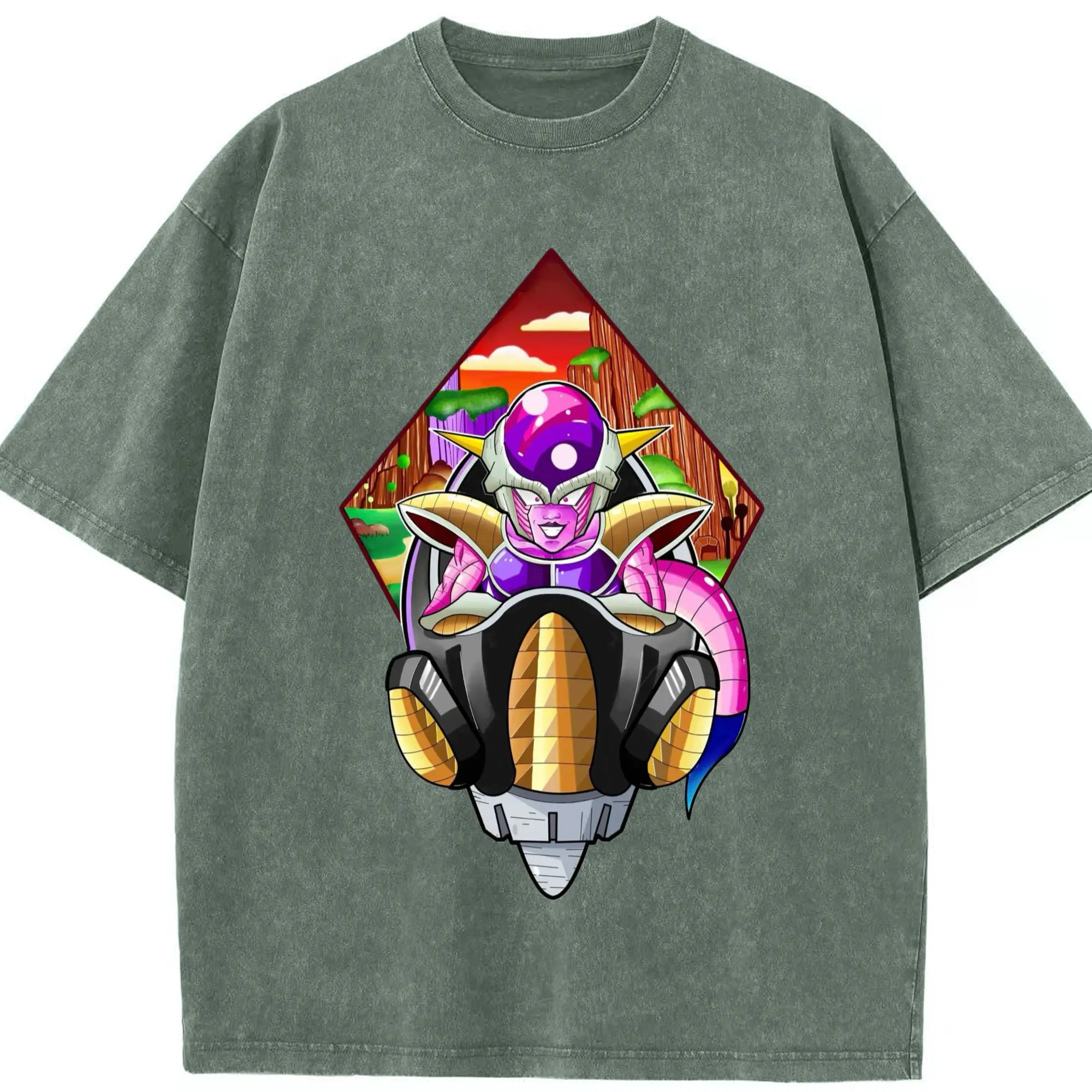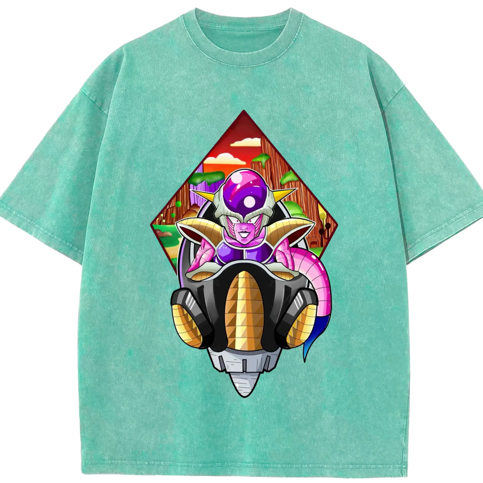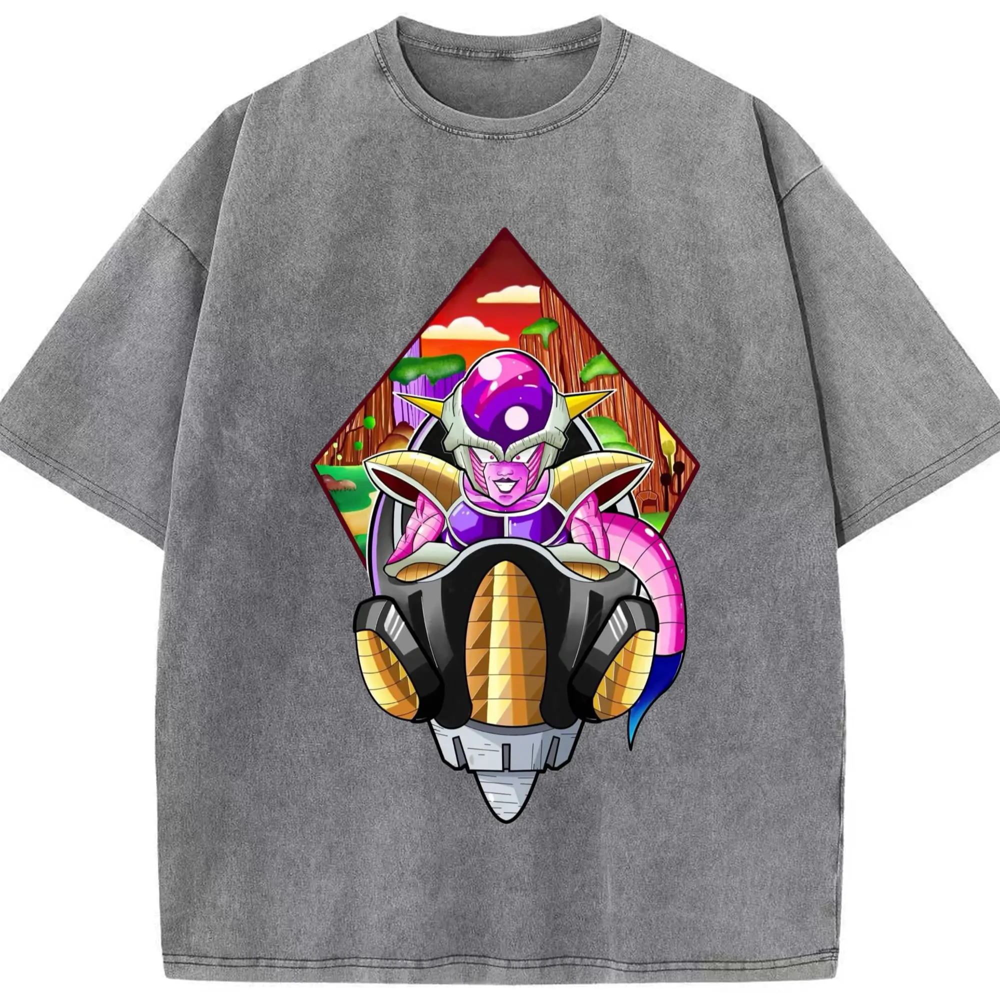 Men's Dragon Ball Freeza t-shirt - Washed Vintage Look 230g Cotton Oversized T-Shirt With Front Heat Transfer Print – Soft, Lightweight, Stylish Fit – Comfortable Casual Wear For Sports & Everyday Use