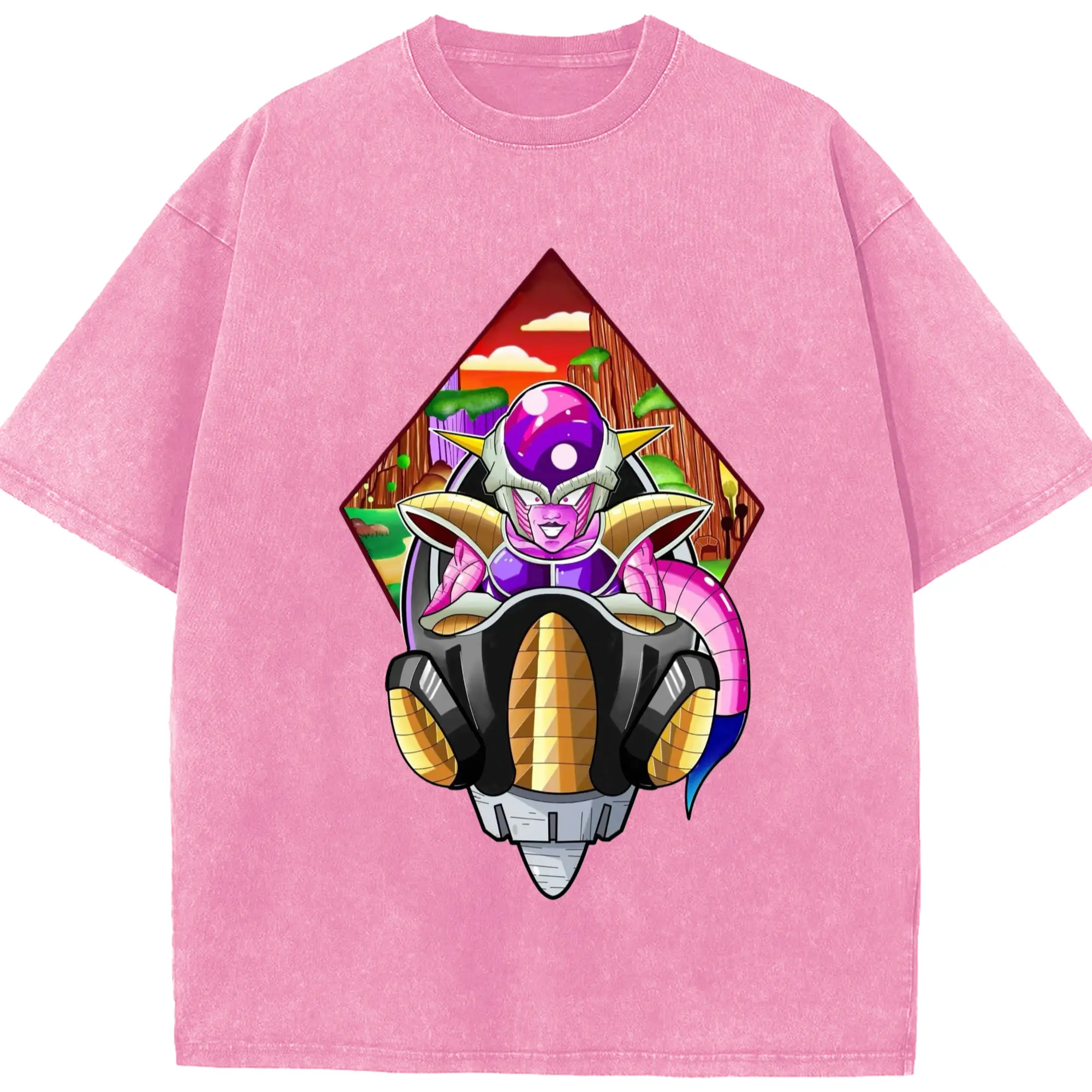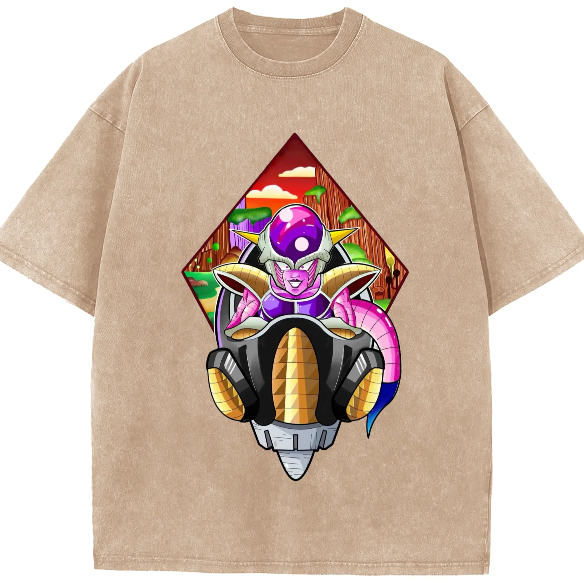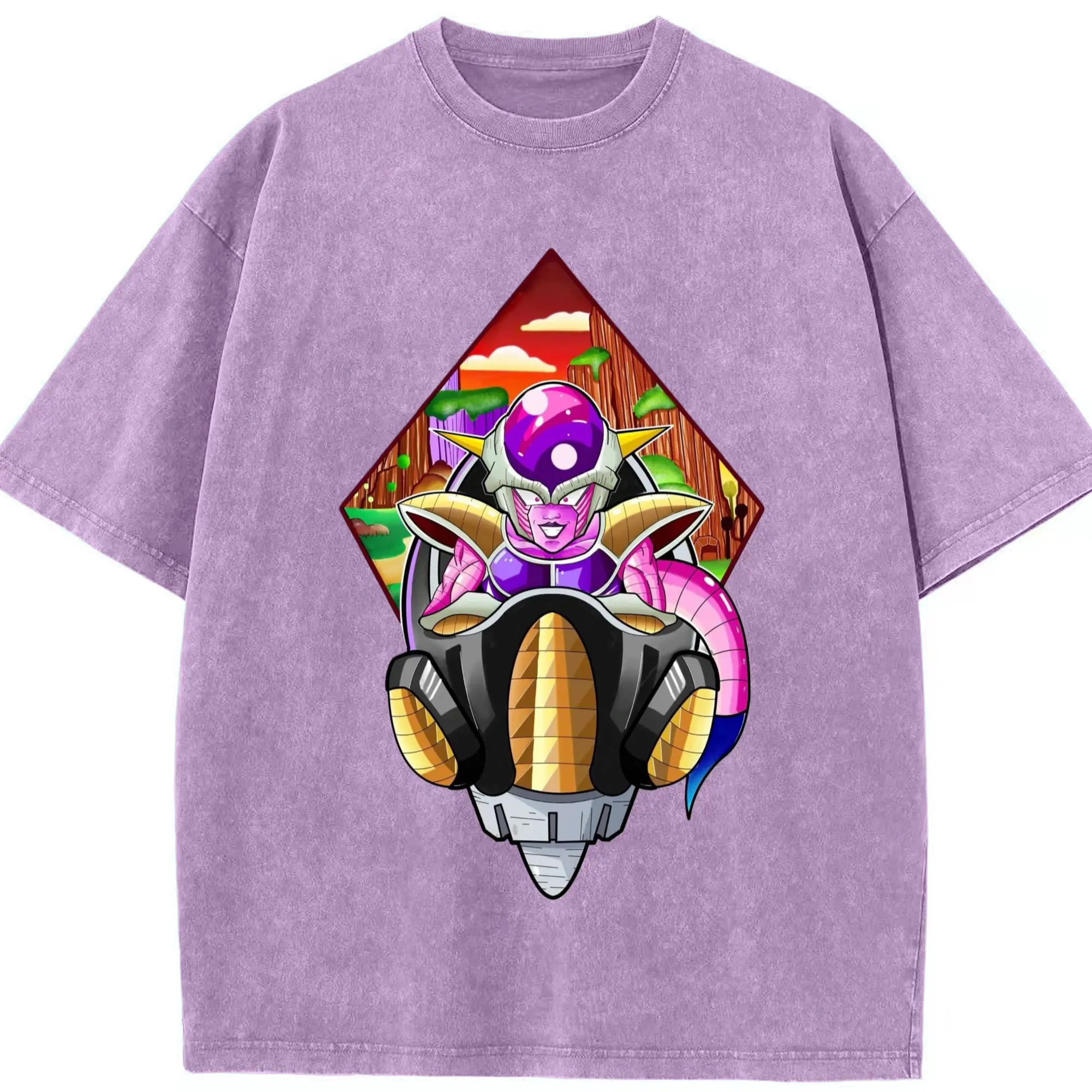 Men's Dragon Ball Freeza t-shirt - Washed Vintage Look 230g Cotton Oversized T-Shirt With Front Heat Transfer Print – Soft, Lightweight, Stylish Fit – Comfortable Casual Wear For Sports & Everyday Use