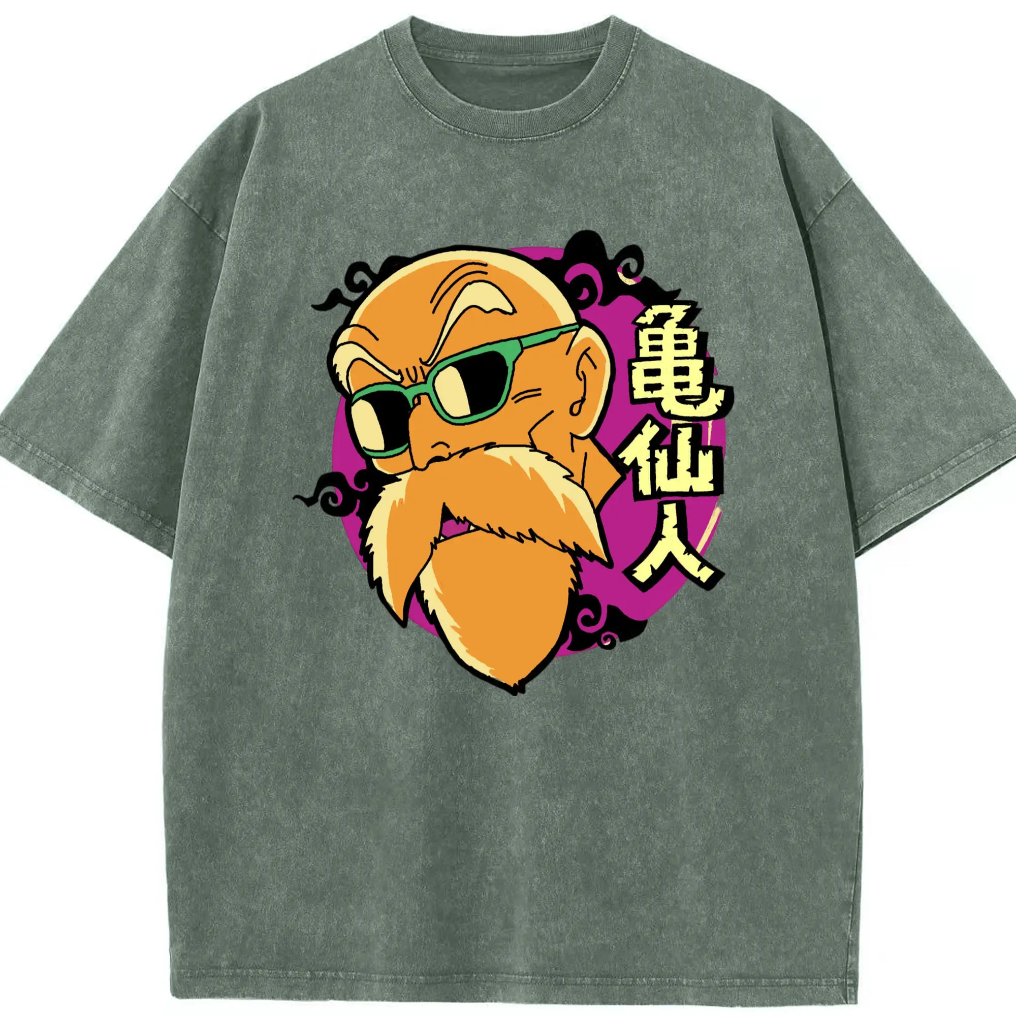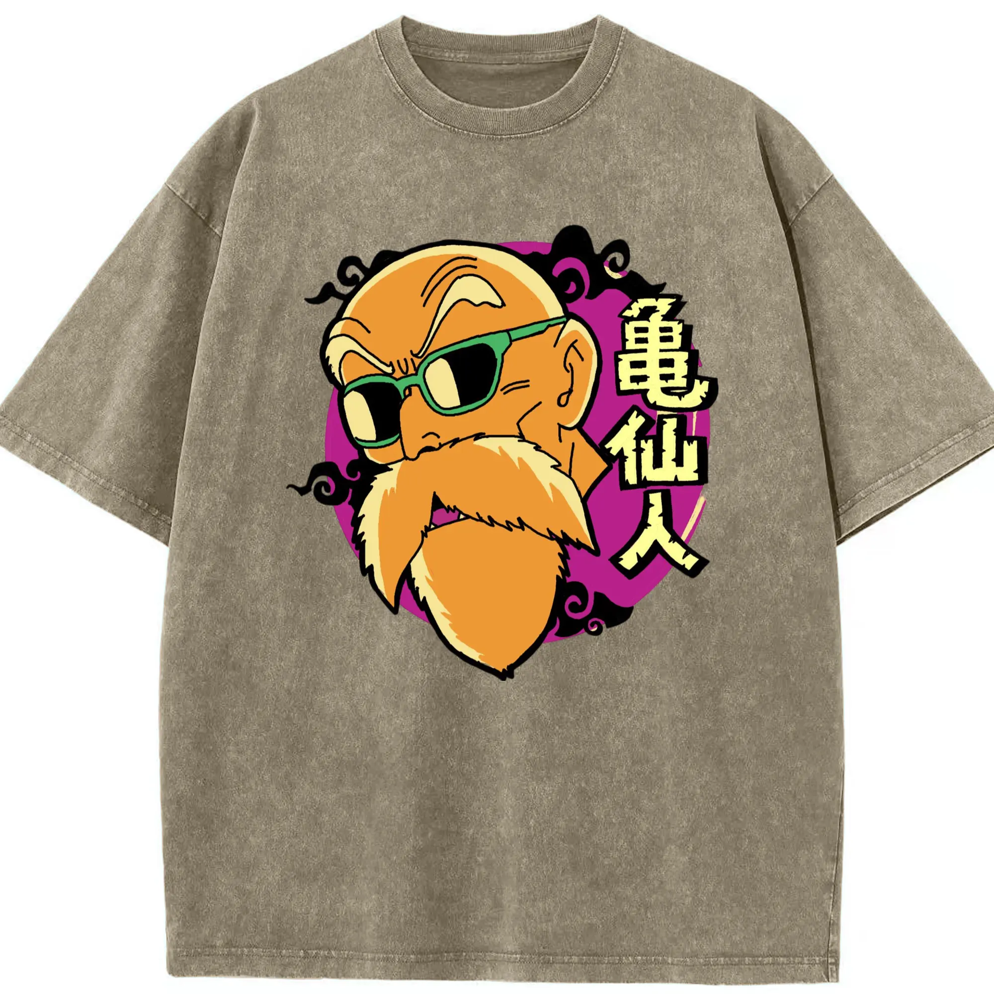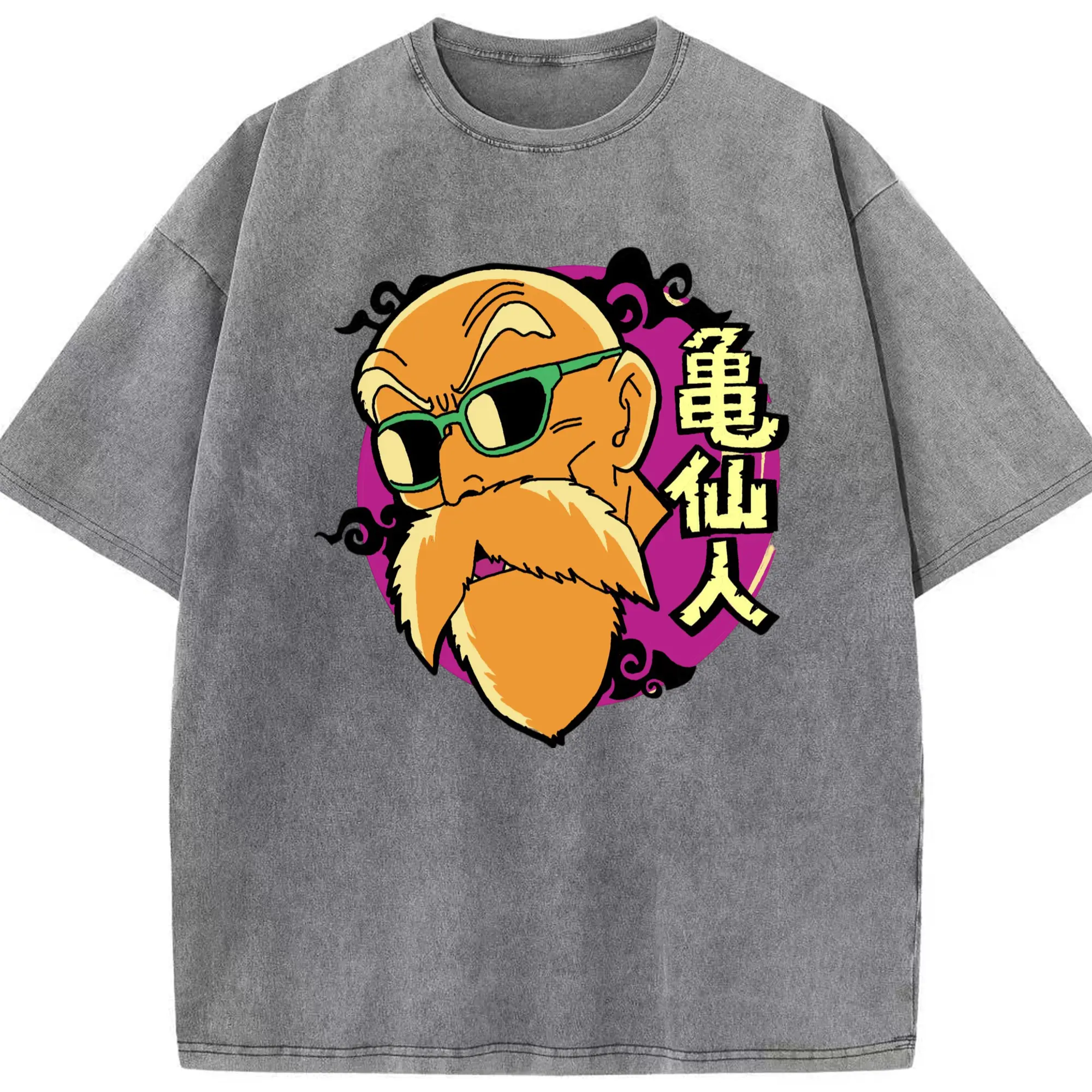 Men's Dragon Ball Master Roshi T-Shirt - Washed Vintage Look 230g Cotton Oversized T-Shirt With Front Heat Transfer Print – Soft, Lightweight, Stylish Fit – Comfortable Casual Wear For Sports & Everyday Use