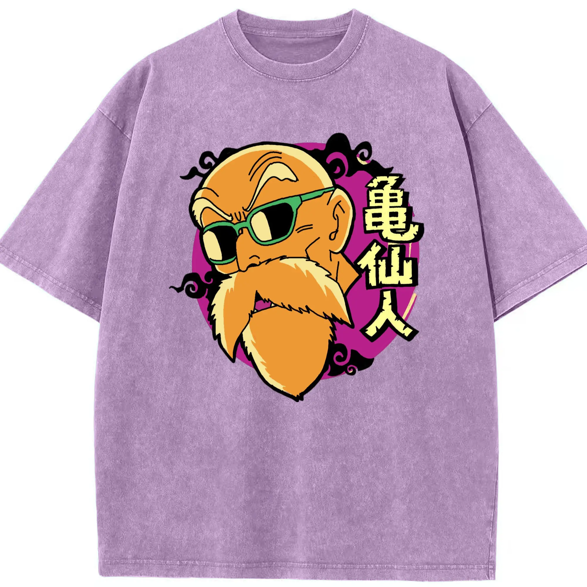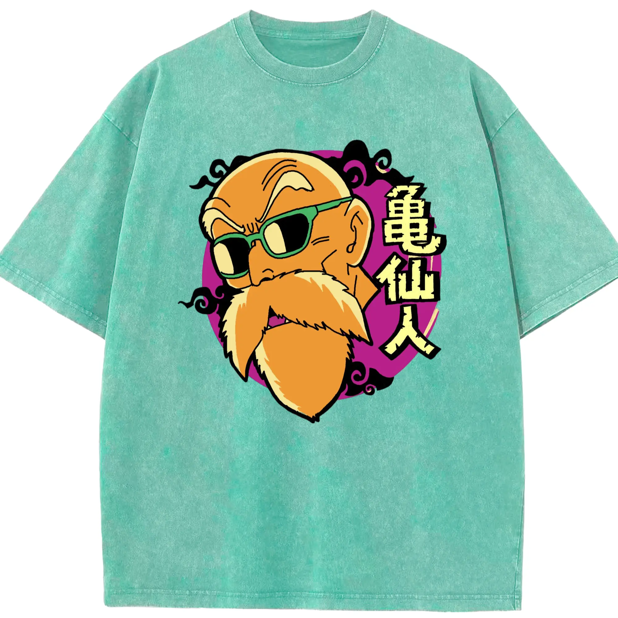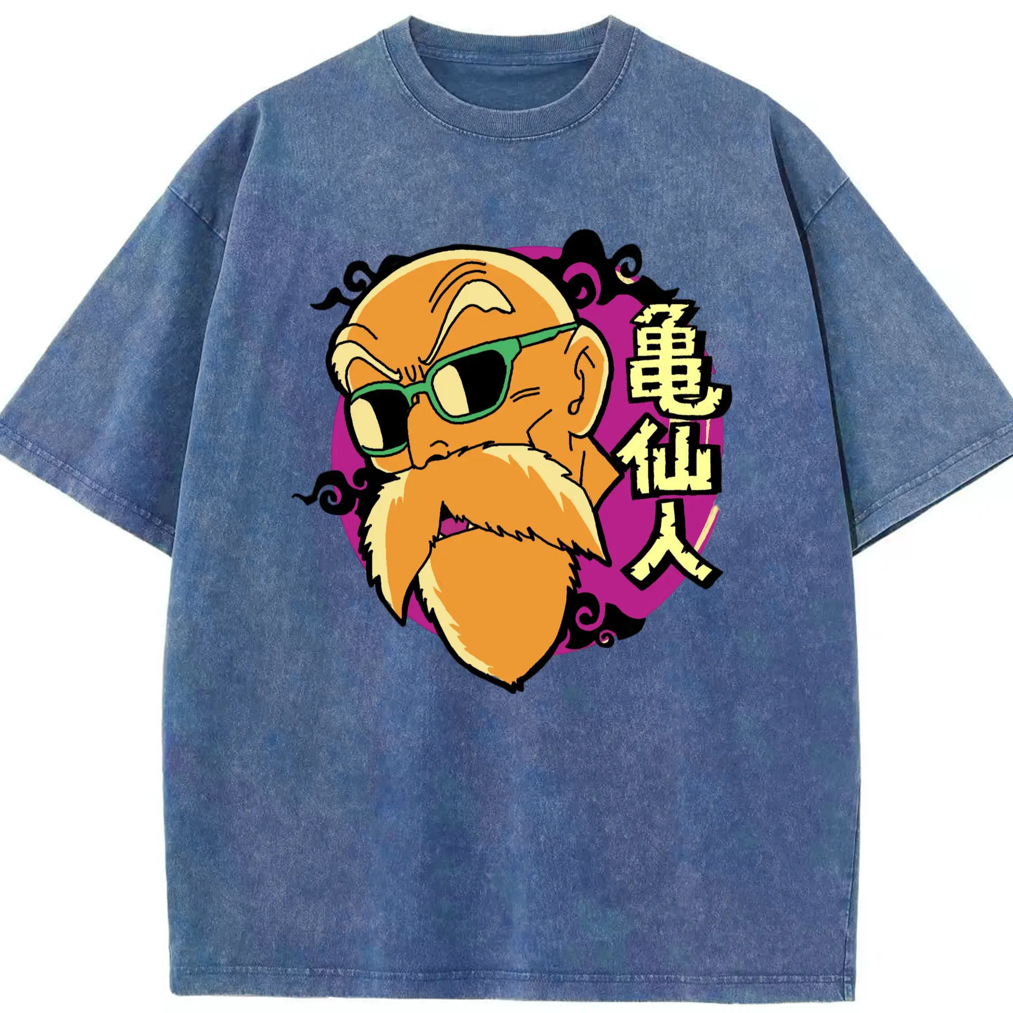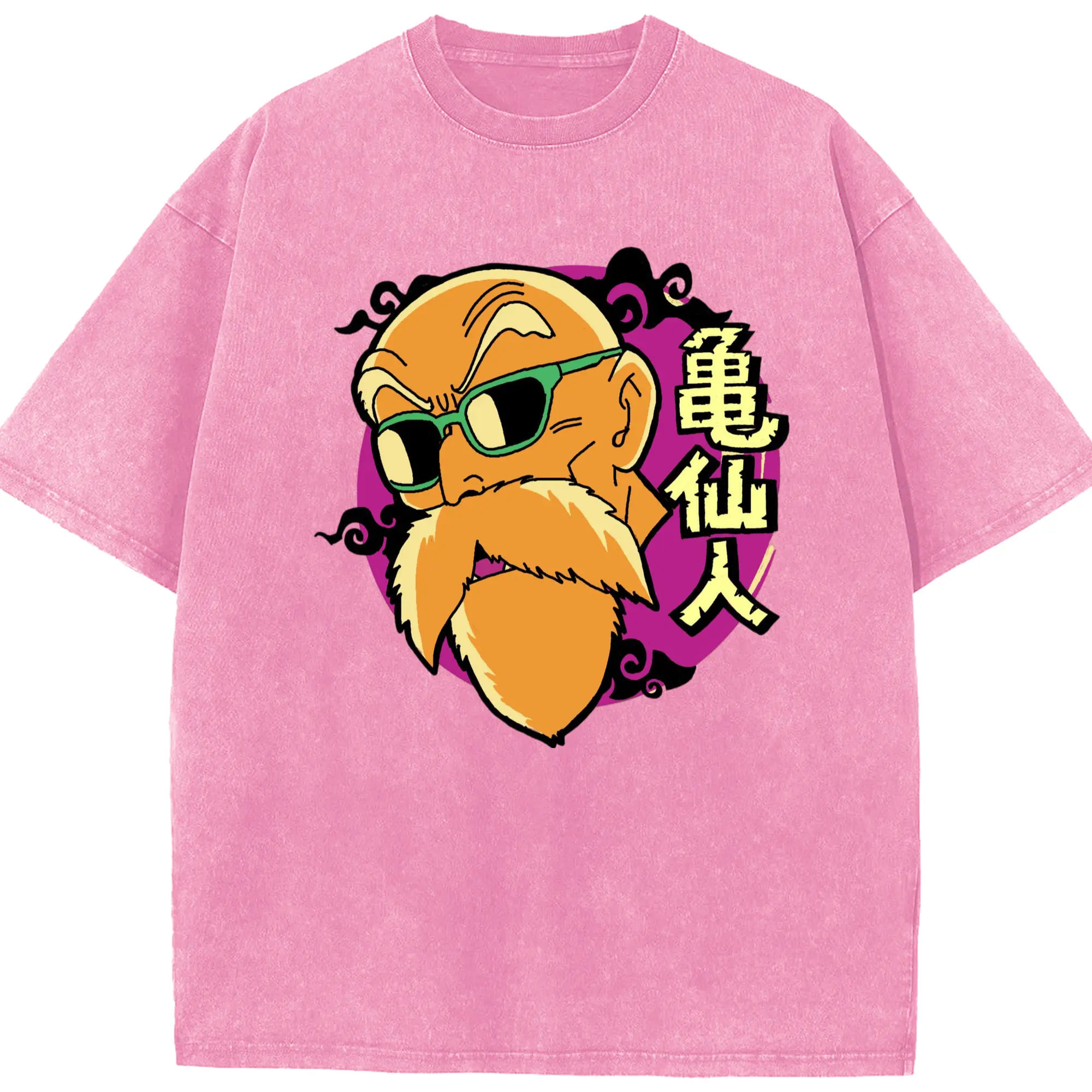 Men's Dragon Ball Master Roshi T-Shirt - Washed Vintage Look 230g Cotton Oversized T-Shirt With Front Heat Transfer Print – Soft, Lightweight, Stylish Fit – Comfortable Casual Wear For Sports & Everyday Use