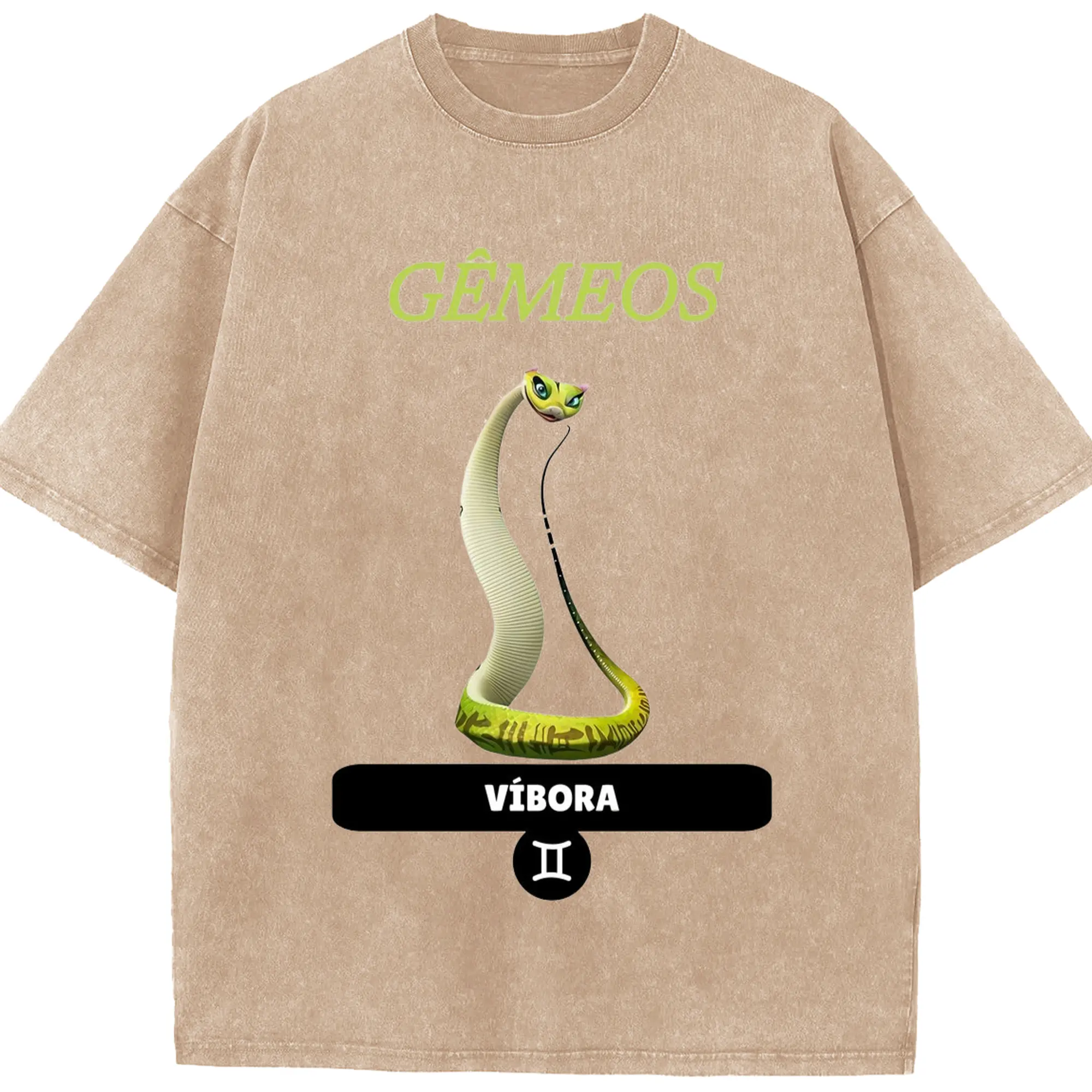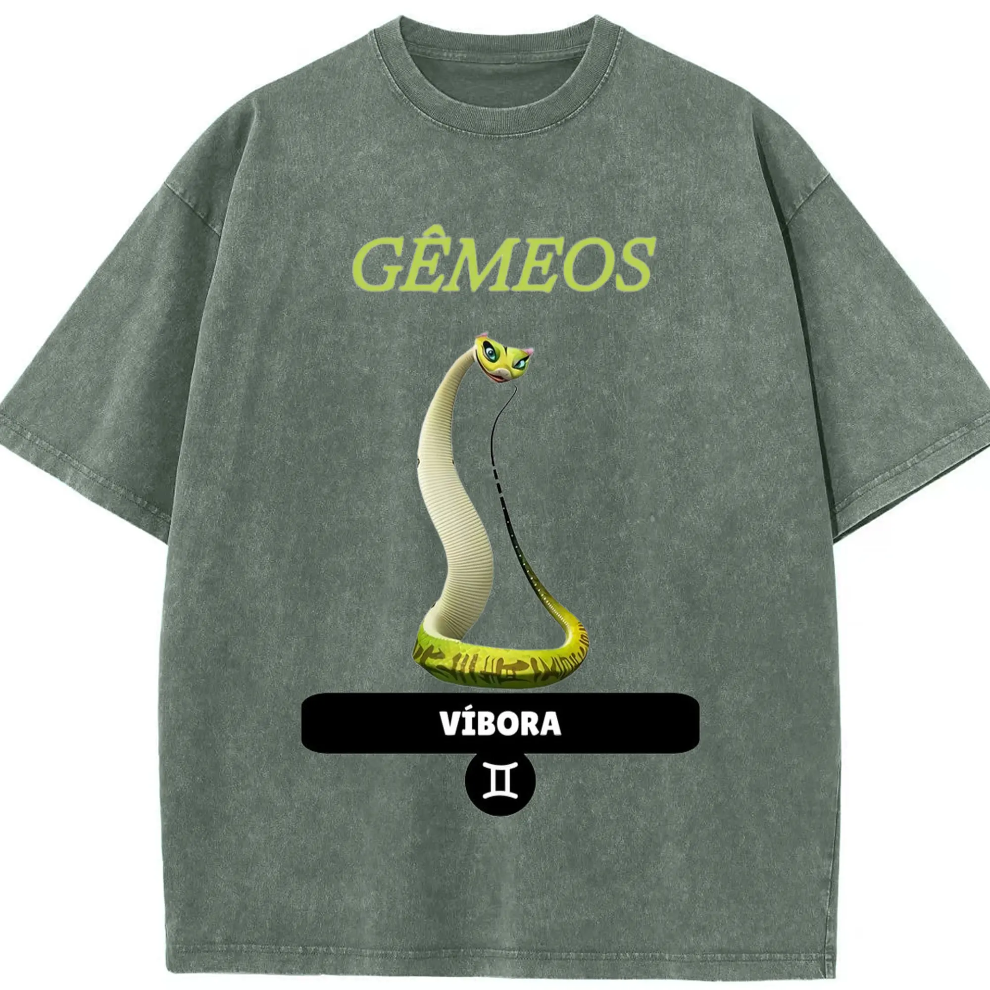 Men's Kung Fu Panda ‌Viper‌ shirt - Washed Vintage Look 230g Cotton Oversized T-Shirt With Front Heat Transfer Print – Soft, Lightweight, Stylish Fit – Comfortable Casual Wear For Sports & Everyday Use