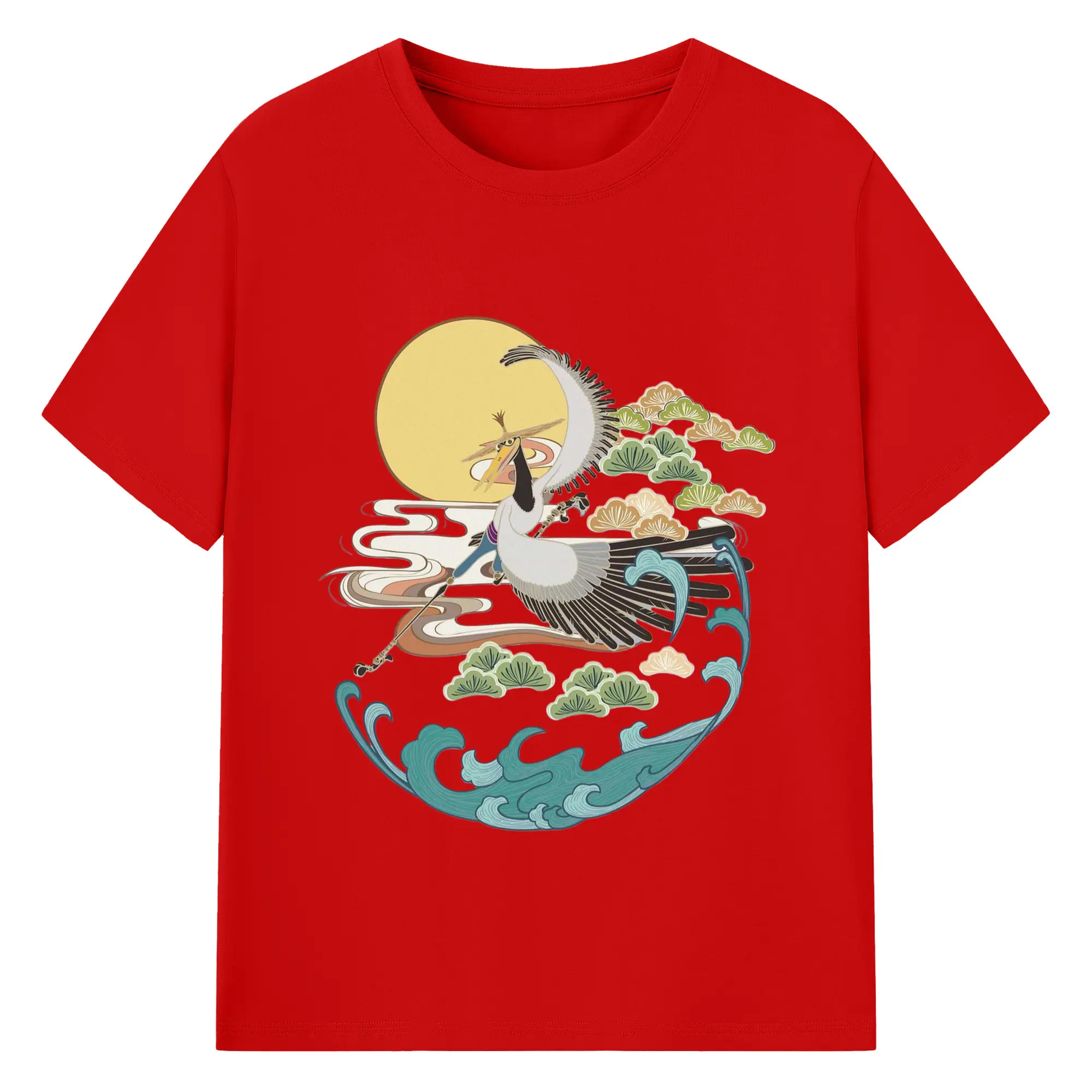 Men's Kung Fu Panda Crane‌ t-shirt - 180g Cotton T-Shirt With Front Heat Transfer Print – Soft, Lightweight, Fitted Design – Comfortable Casual Wear For Sports & Everyday Use