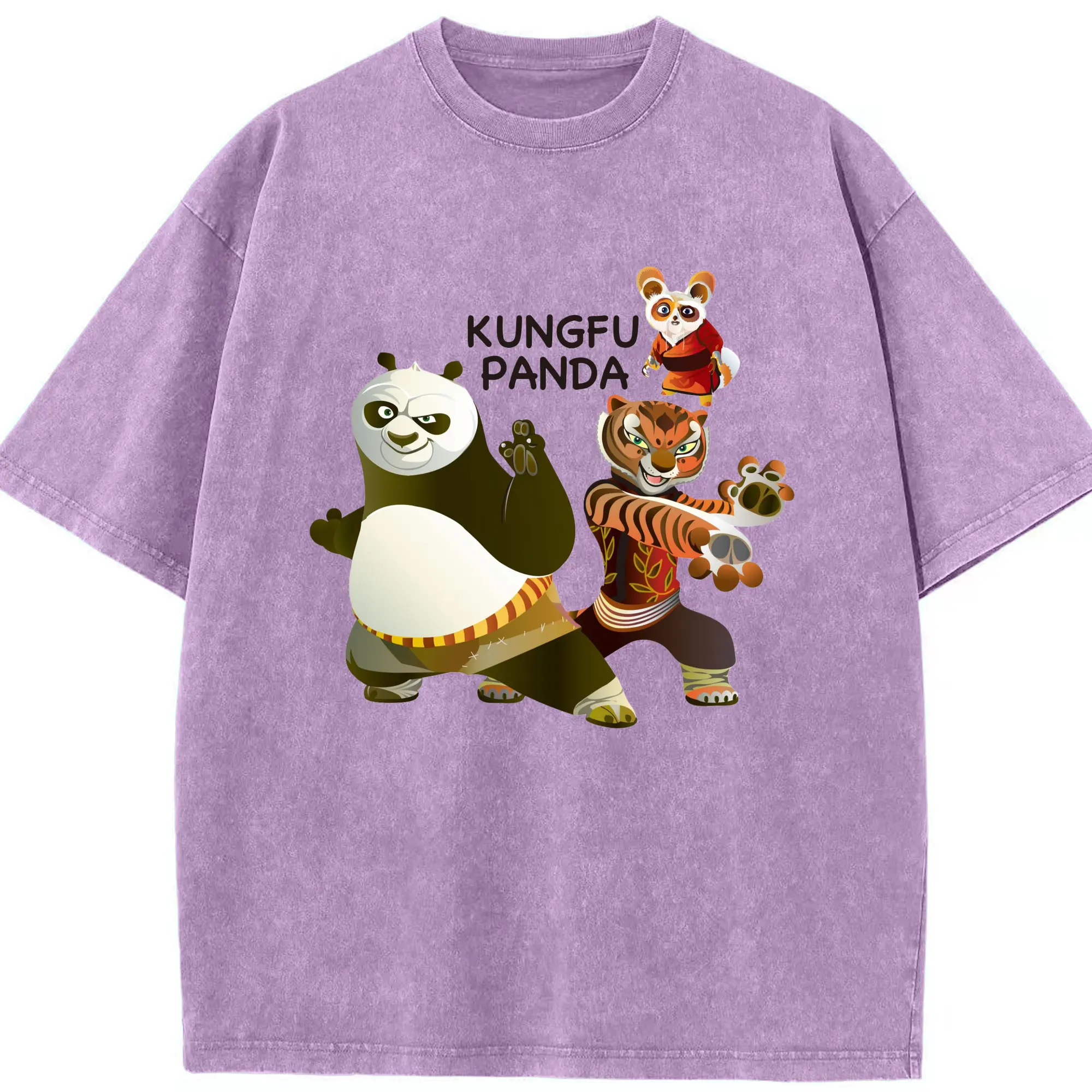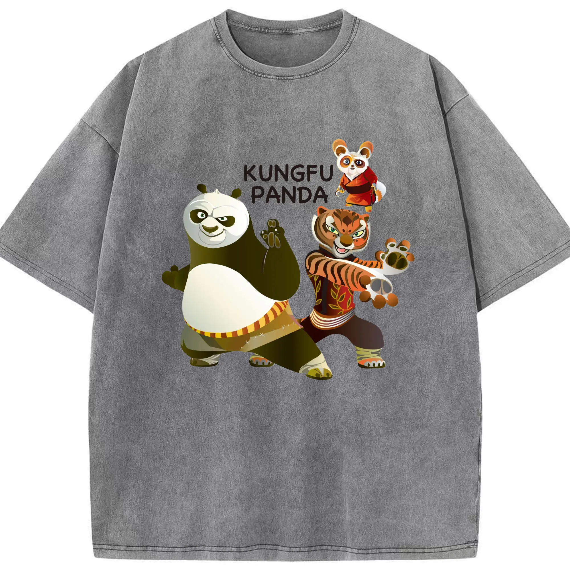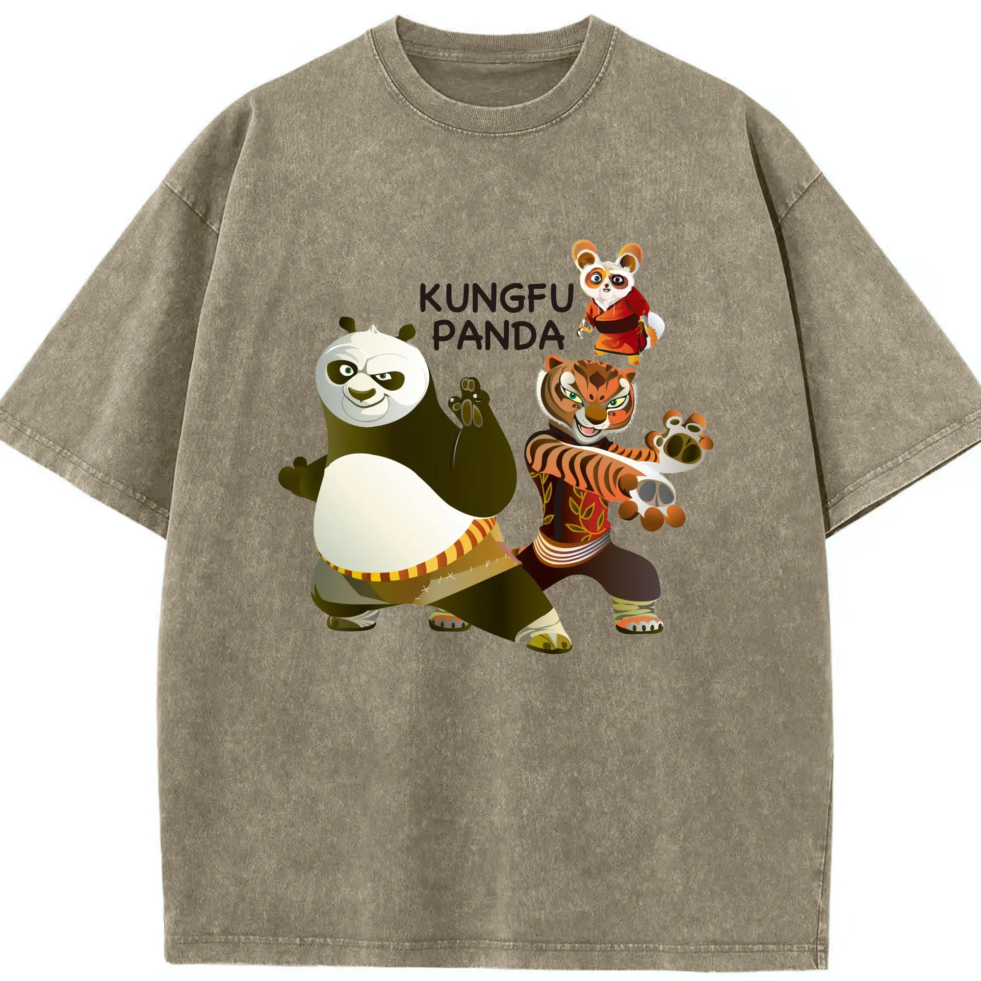 Men's kung fu panda po t-shirt - Washed Vintage Look 230g Cotton Oversized T-Shirt With Front Heat Transfer Print – Soft, Lightweight, Stylish Fit – Comfortable Casual Wear For Sports & Everyday Use