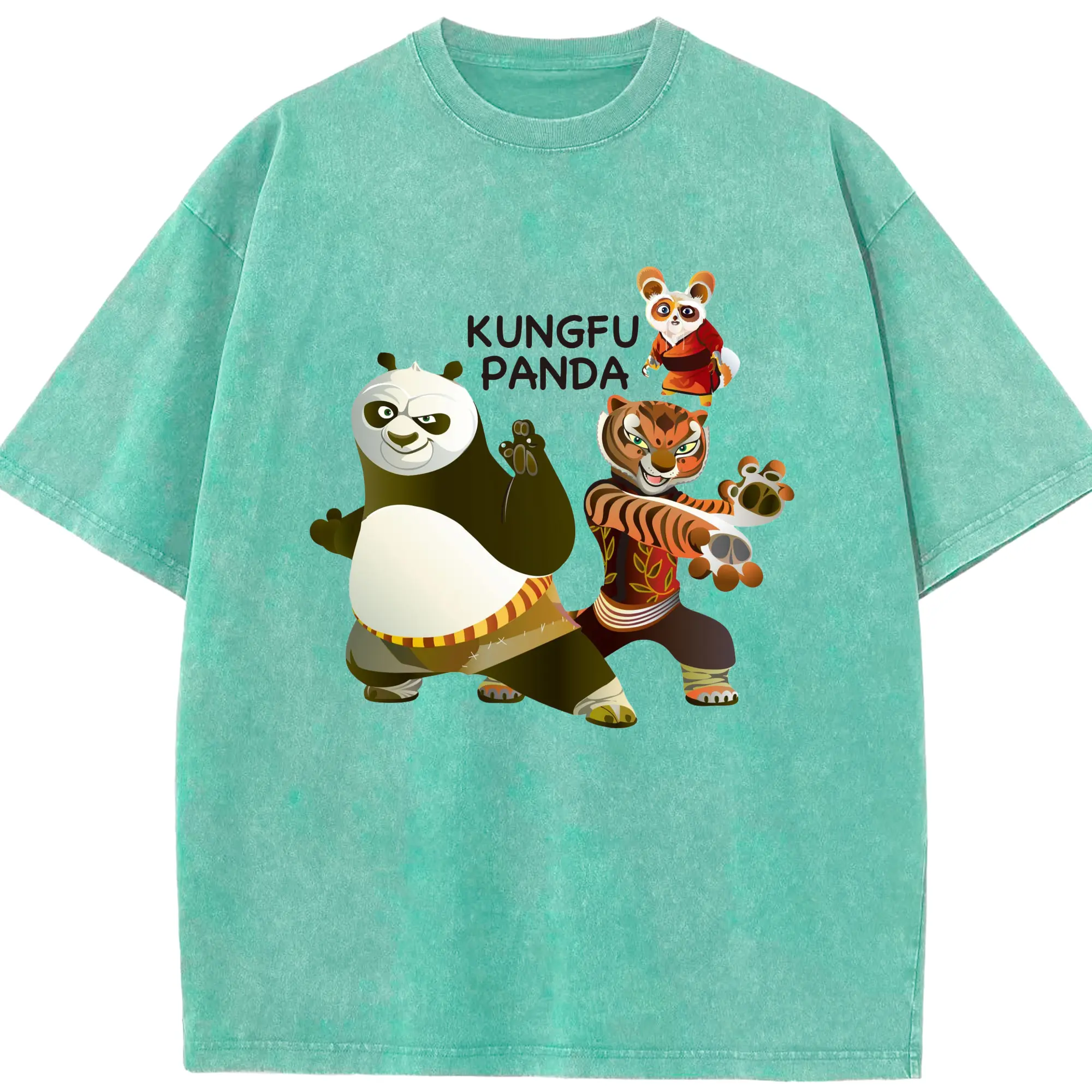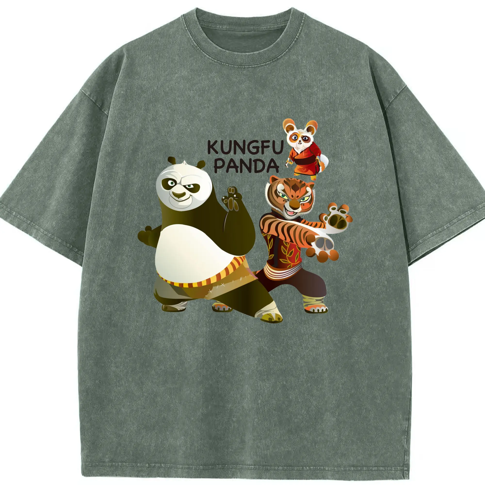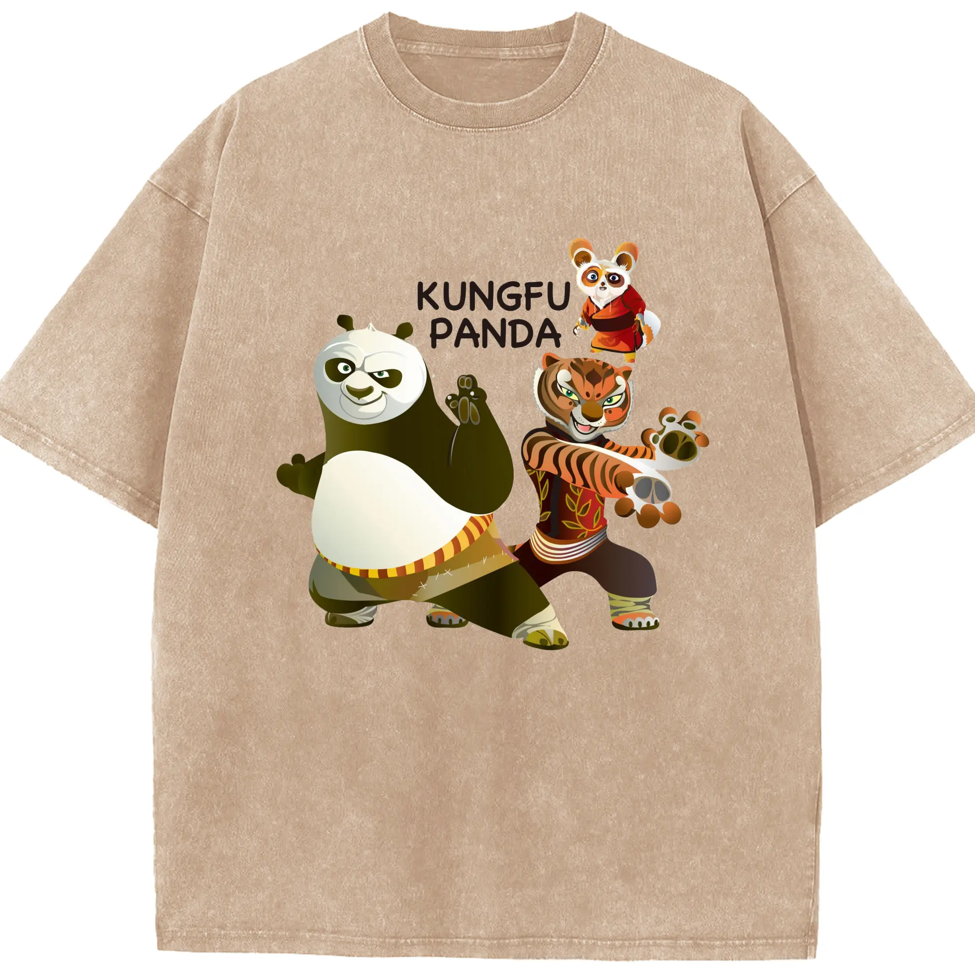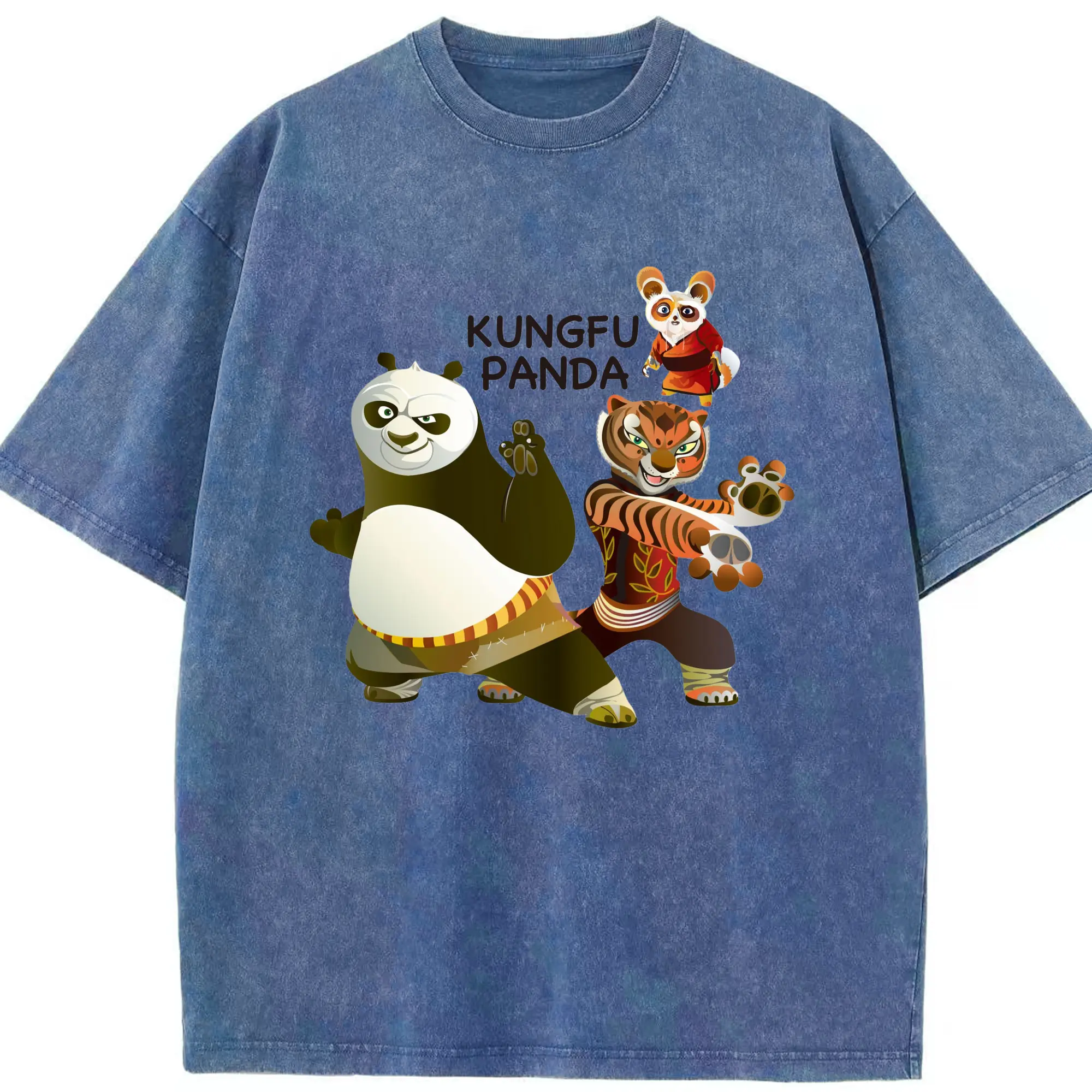 Men's kung fu panda po t-shirt - Washed Vintage Look 230g Cotton Oversized T-Shirt With Front Heat Transfer Print – Soft, Lightweight, Stylish Fit – Comfortable Casual Wear For Sports & Everyday Use