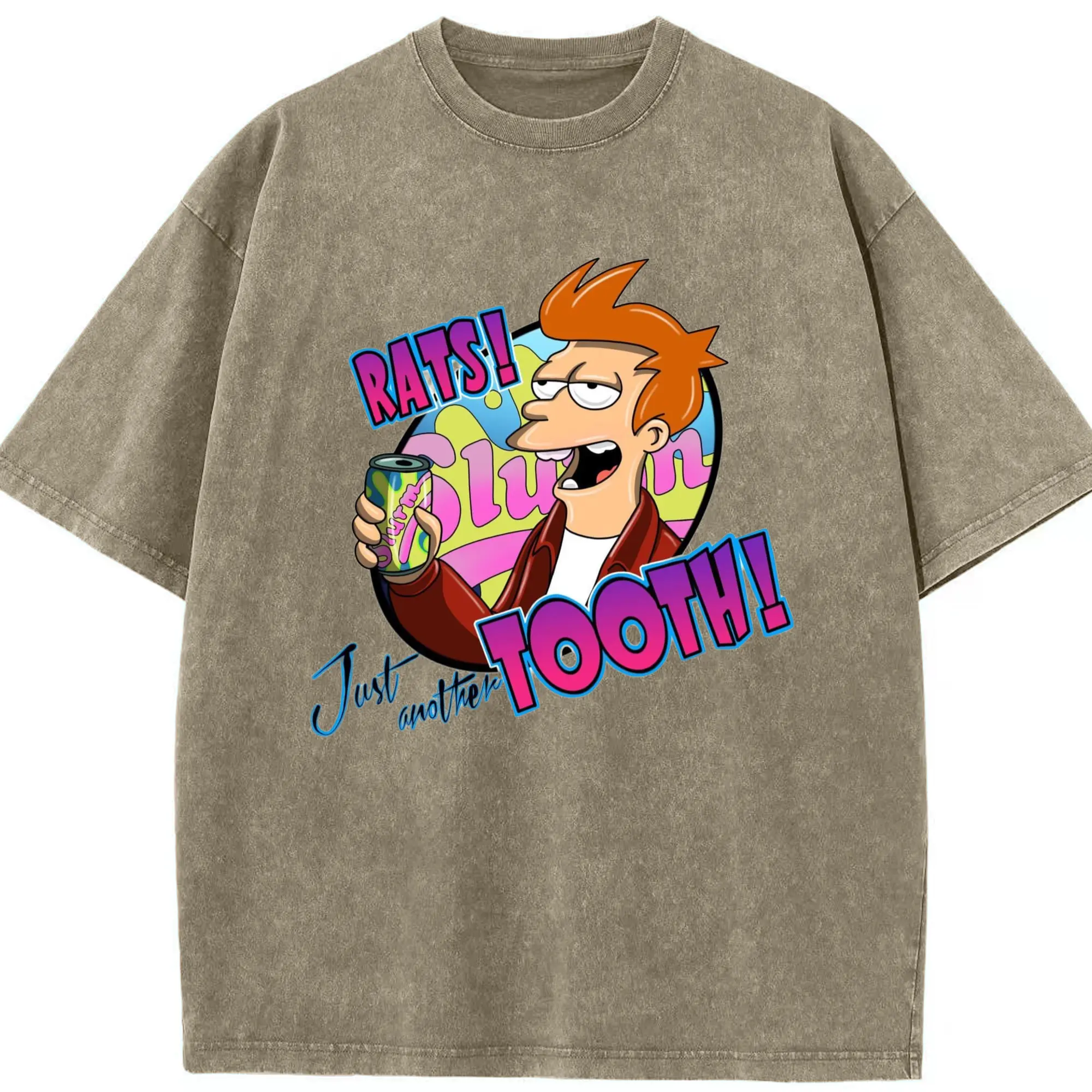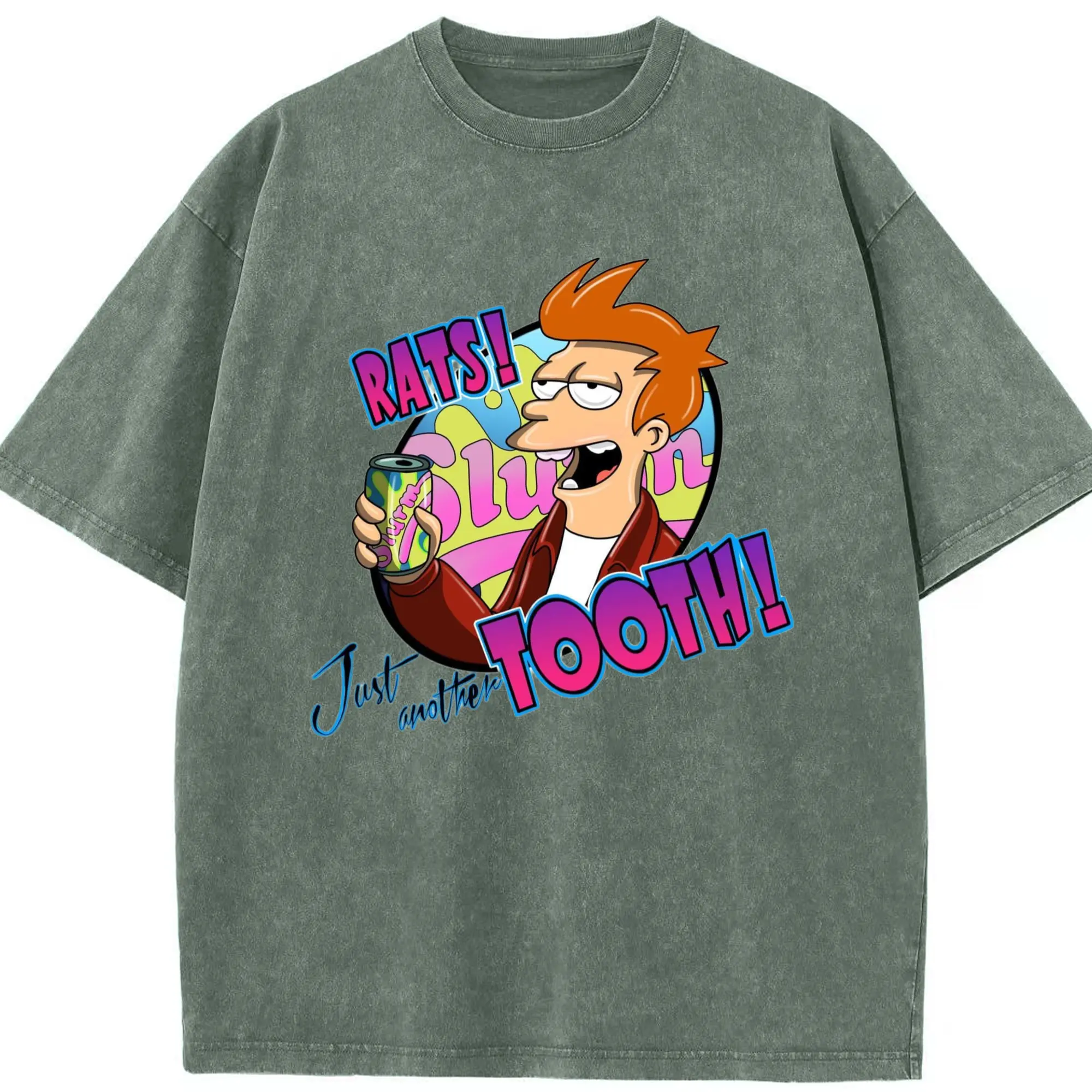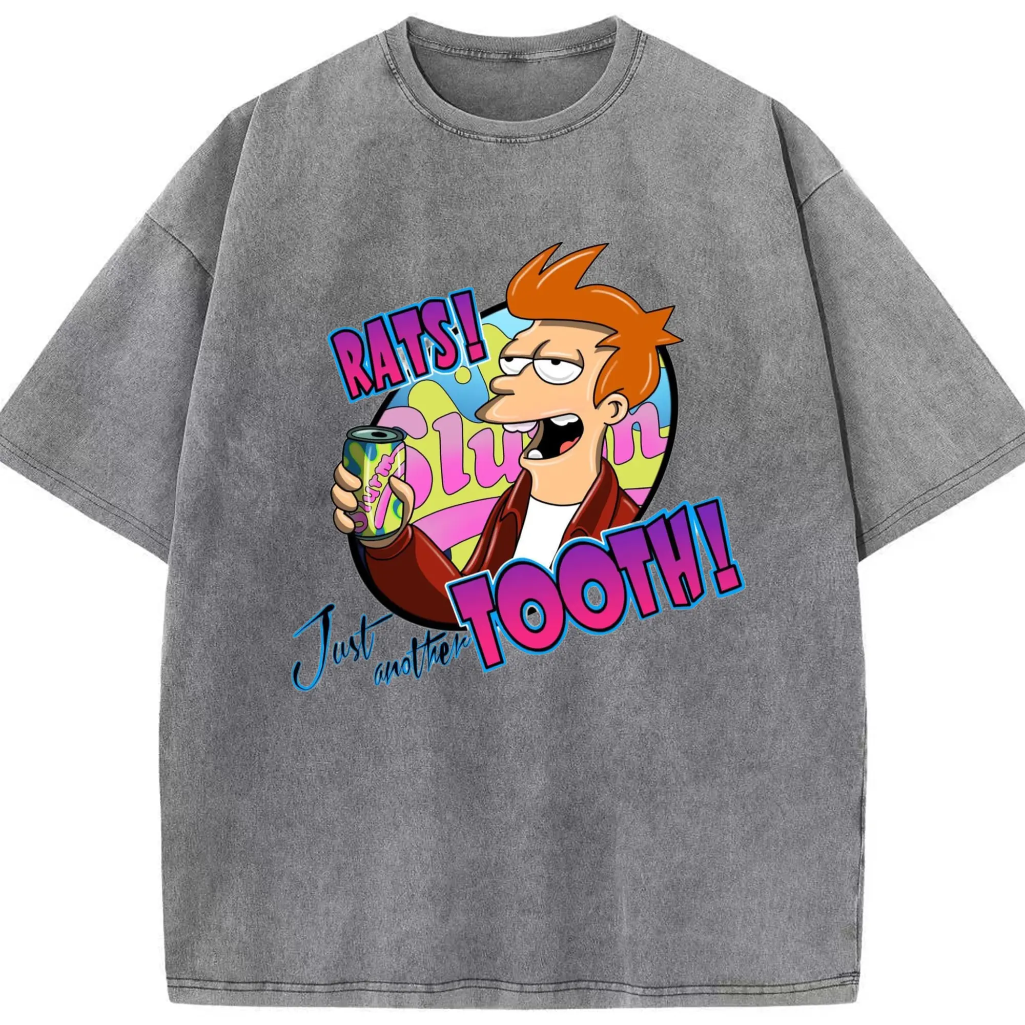 Men's Philip J. Fry shirt - Washed Vintage Look 230g Cotton Oversized T-Shirt With Front Heat Transfer Print – Soft, Lightweight, Stylish Fit – Comfortable Casual Wear For Sports & Everyday Use