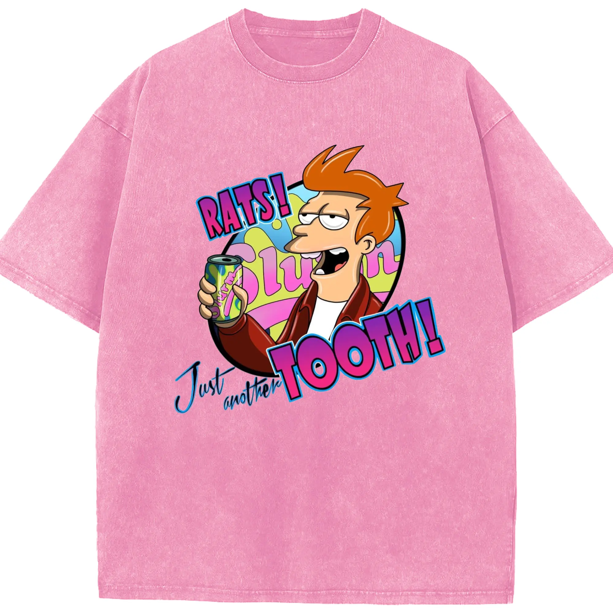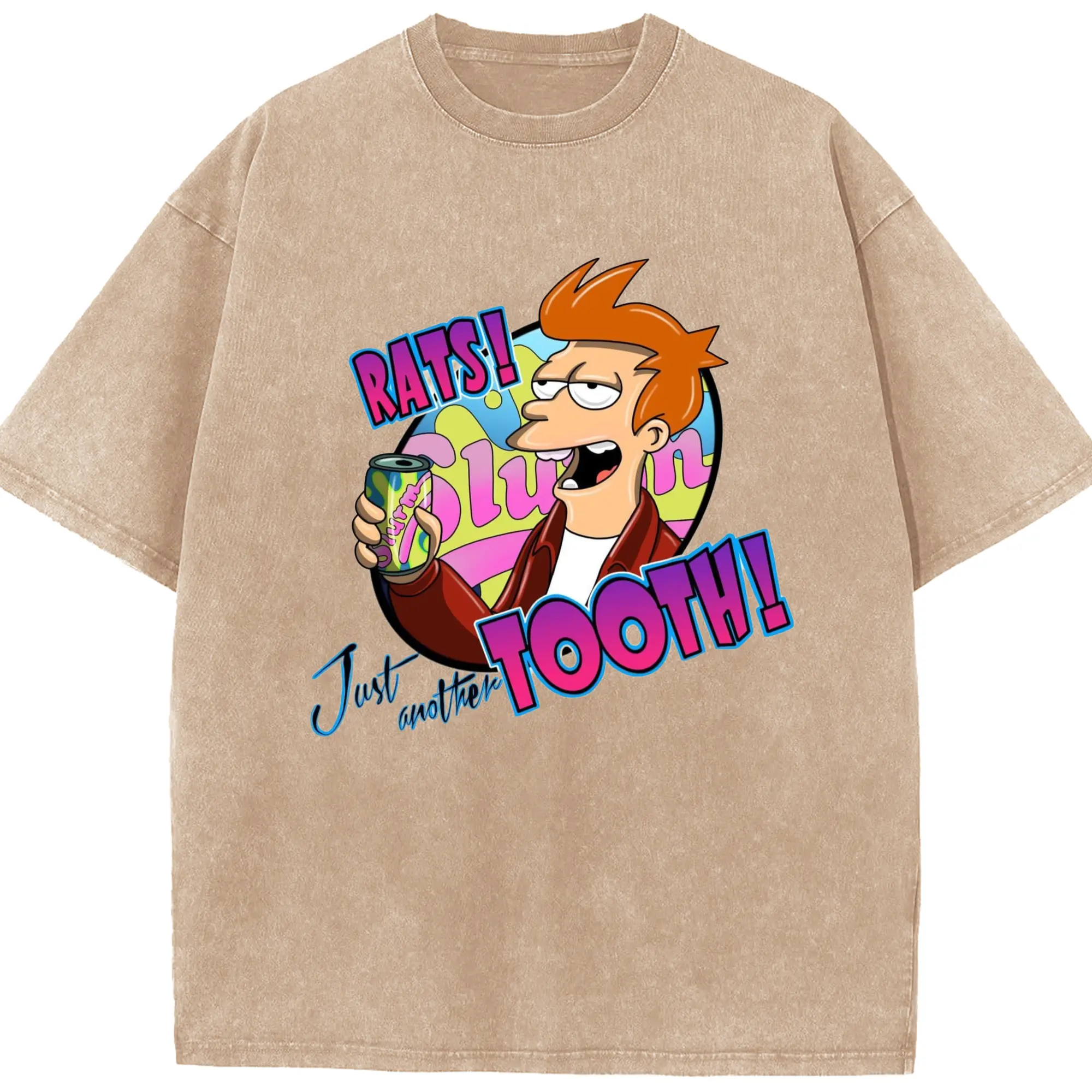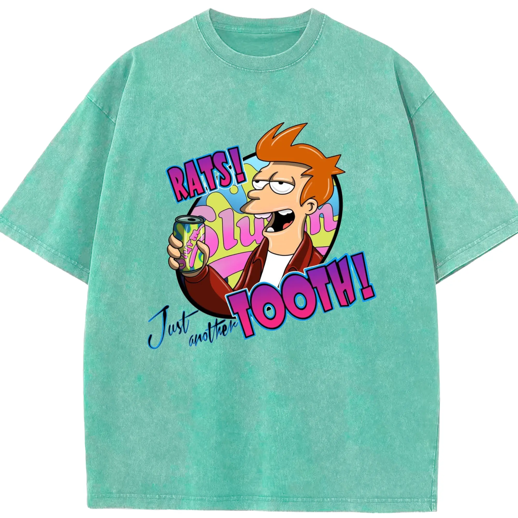 Men's Philip J. Fry shirt - Washed Vintage Look 230g Cotton Oversized T-Shirt With Front Heat Transfer Print – Soft, Lightweight, Stylish Fit – Comfortable Casual Wear For Sports & Everyday Use