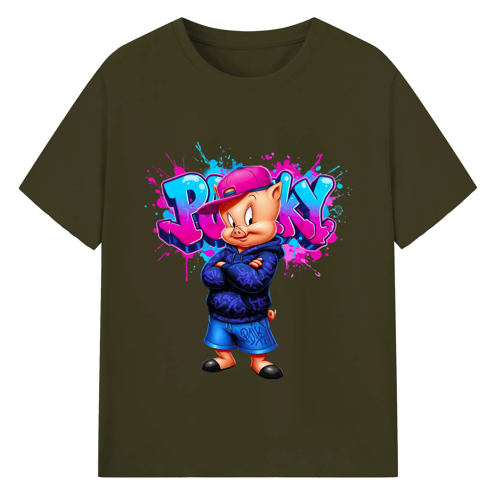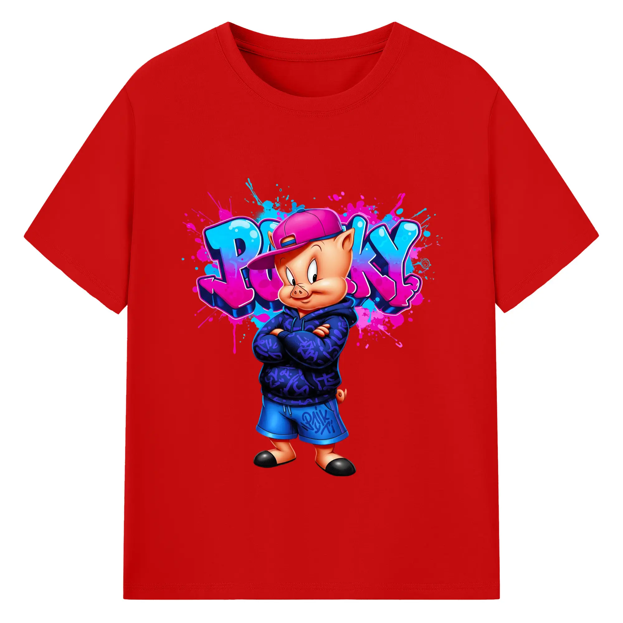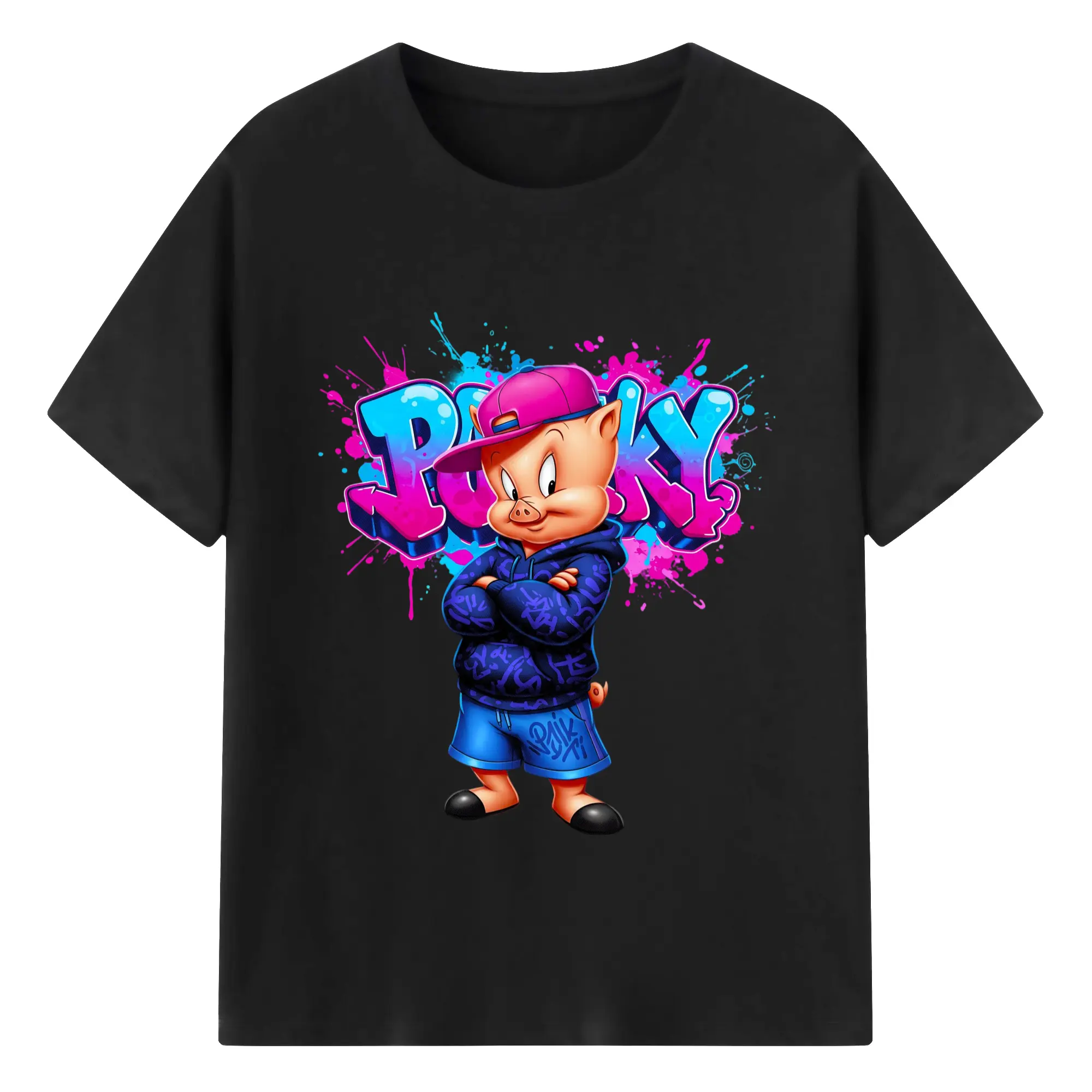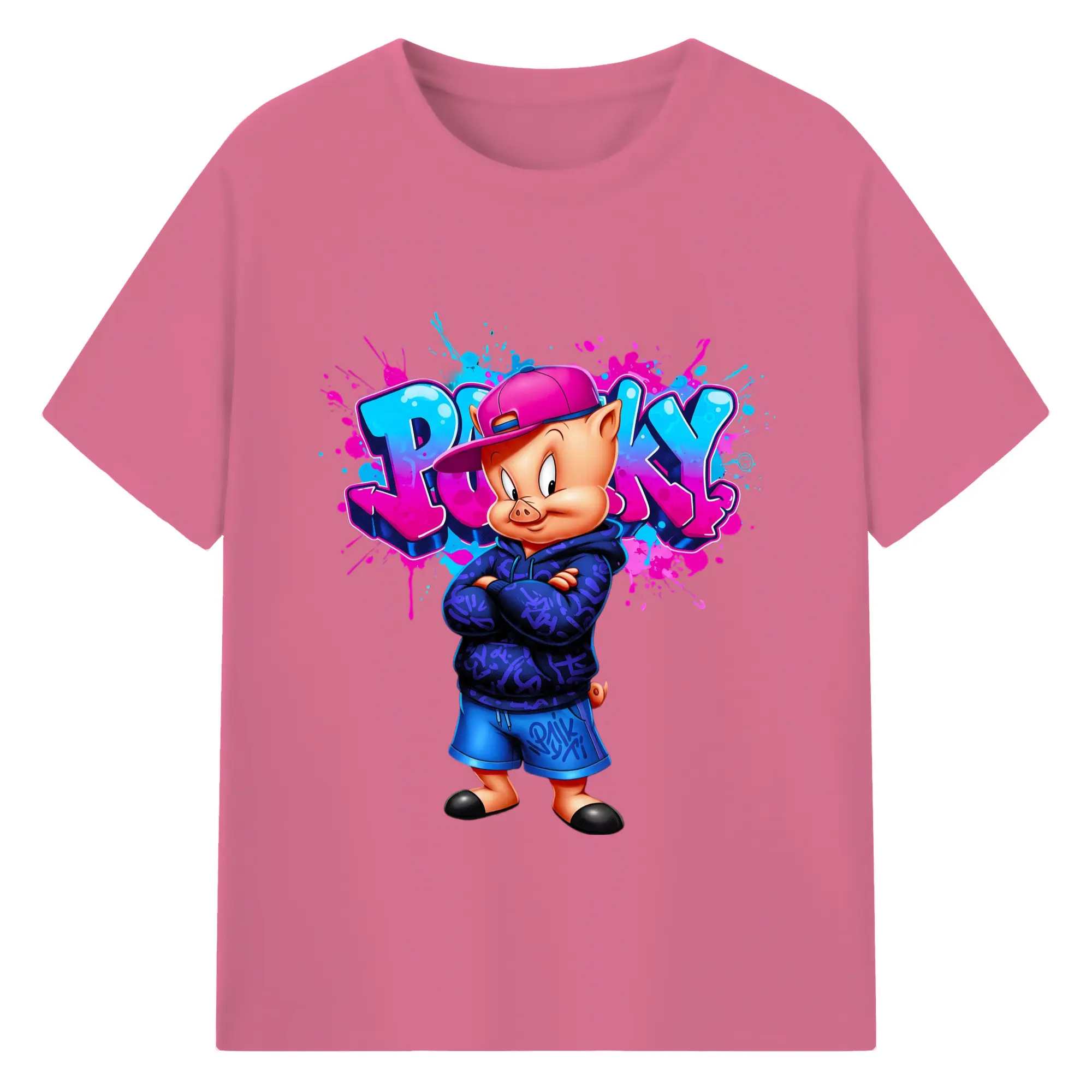 Men's Porky Pig tee - 180g Cotton T-Shirt With Front Heat Transfer Print – Soft, Lightweight, Fitted Design – Comfortable Casual Wear For Sports & Everyday Use