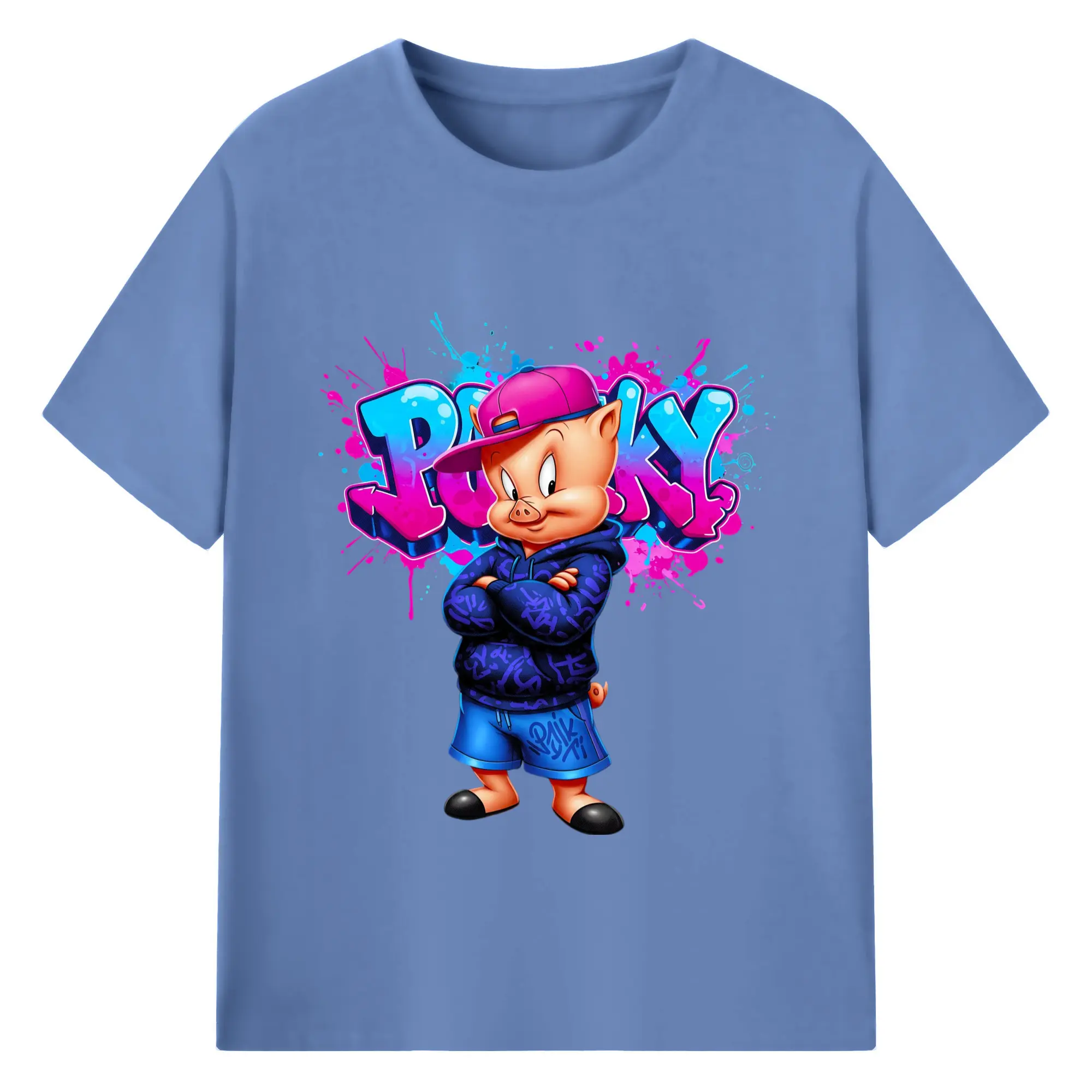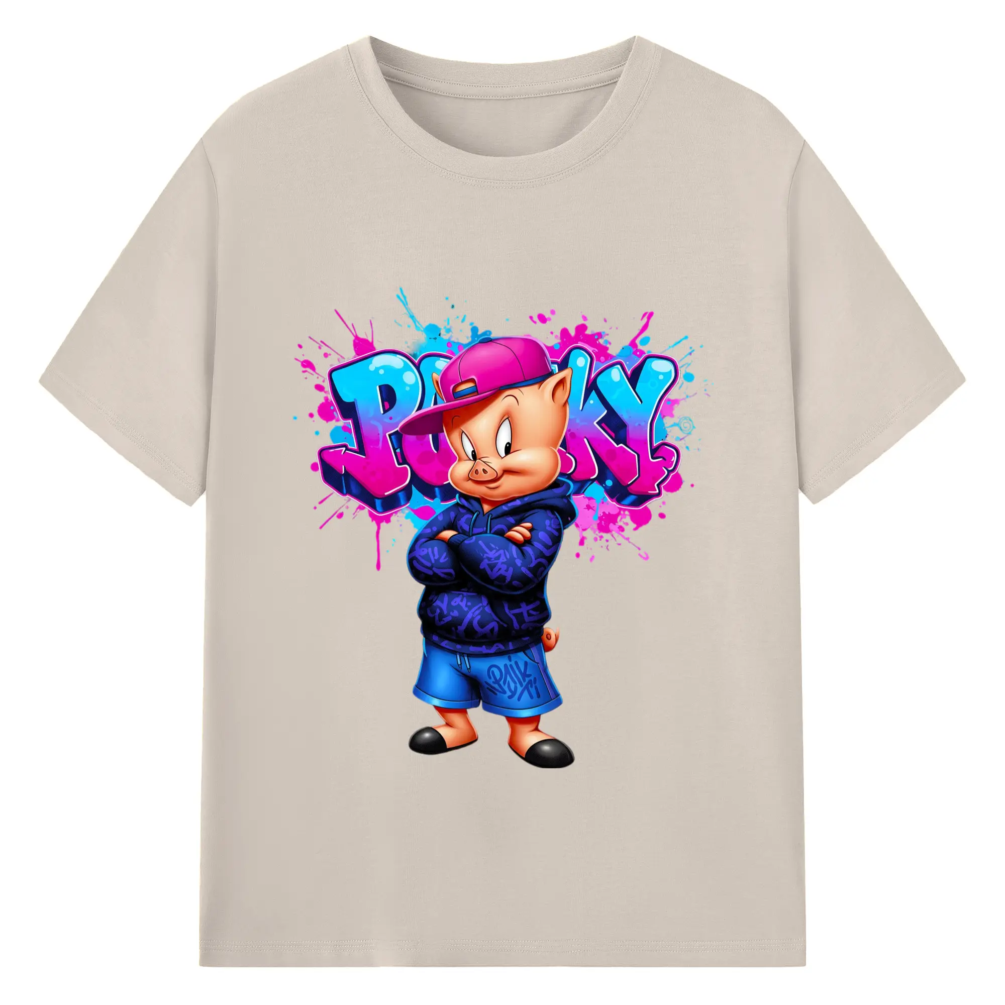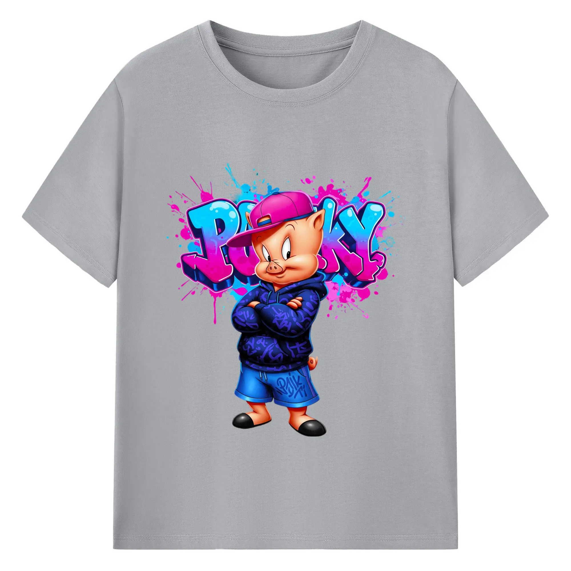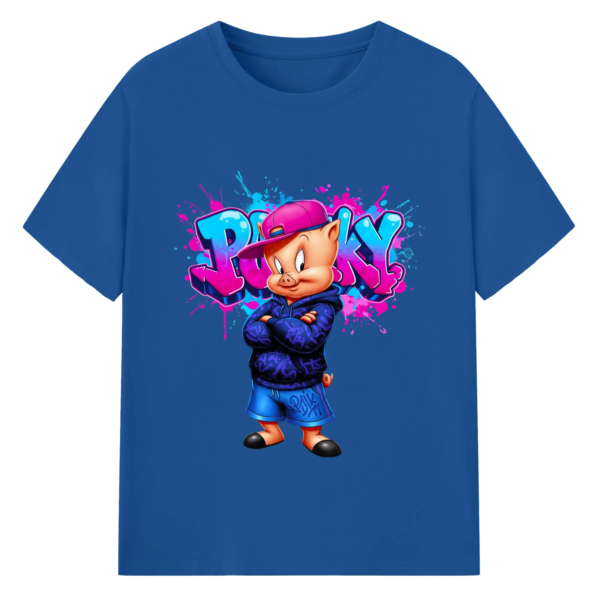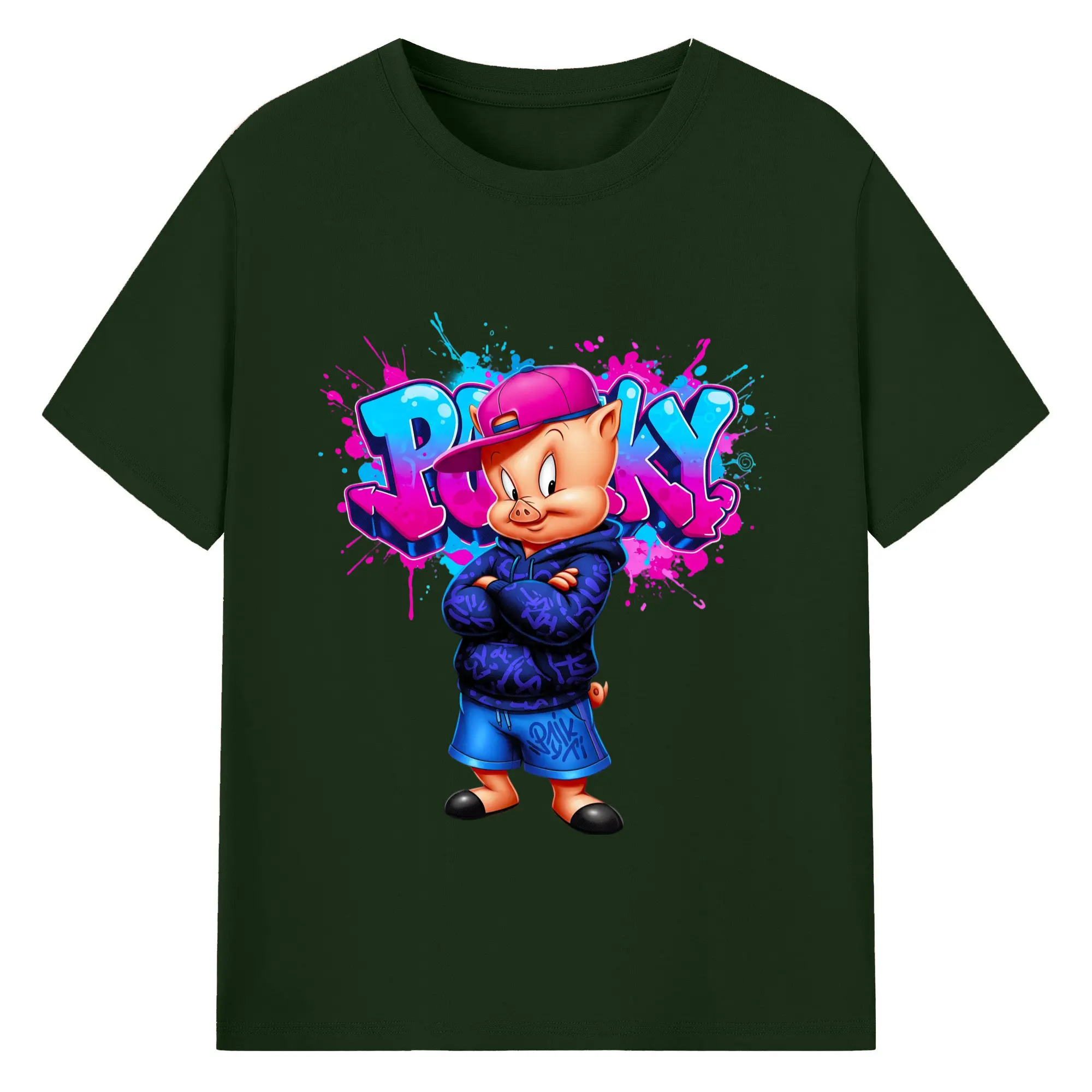 Men's Porky Pig tee - 180g Cotton T-Shirt With Front Heat Transfer Print – Soft, Lightweight, Fitted Design – Comfortable Casual Wear For Sports & Everyday Use