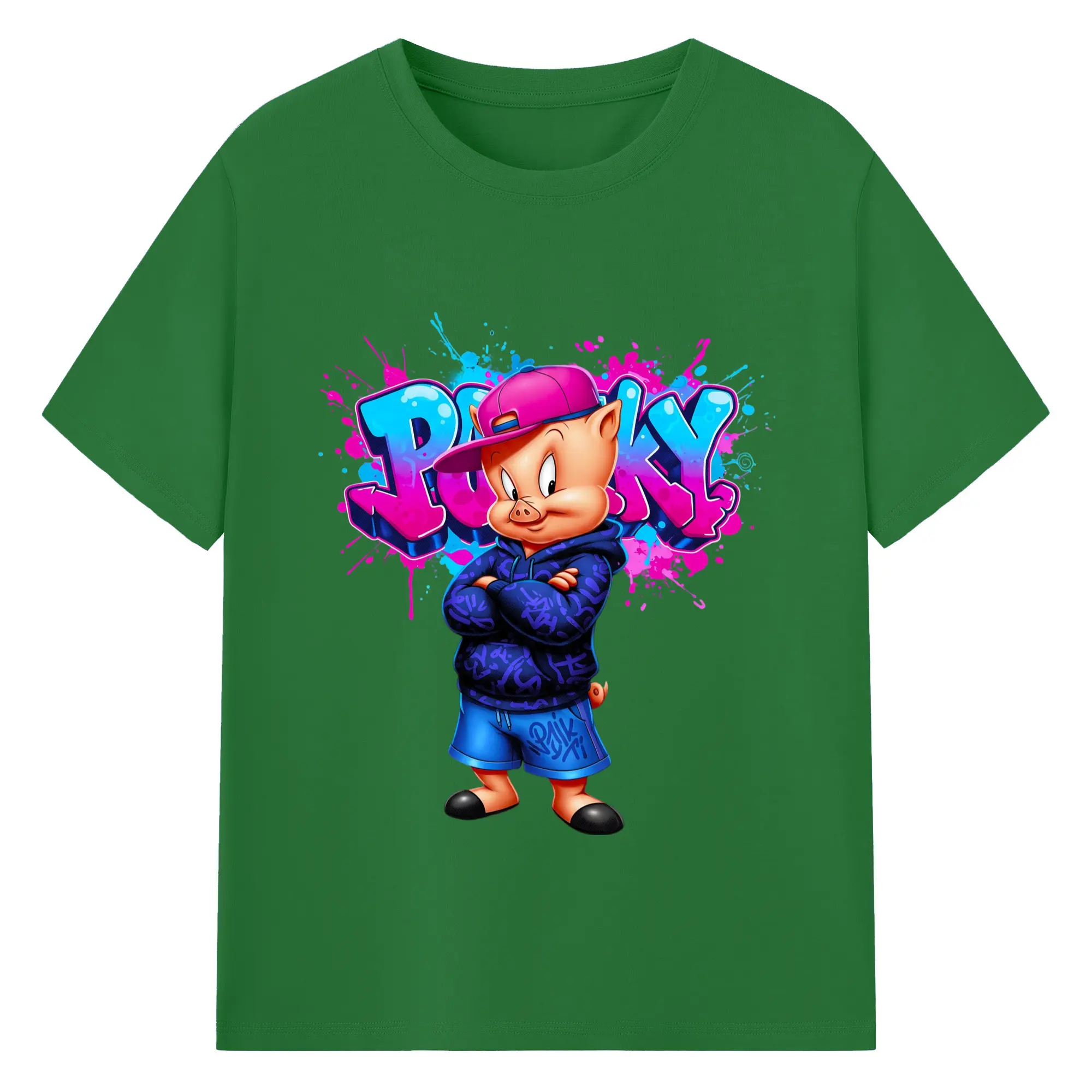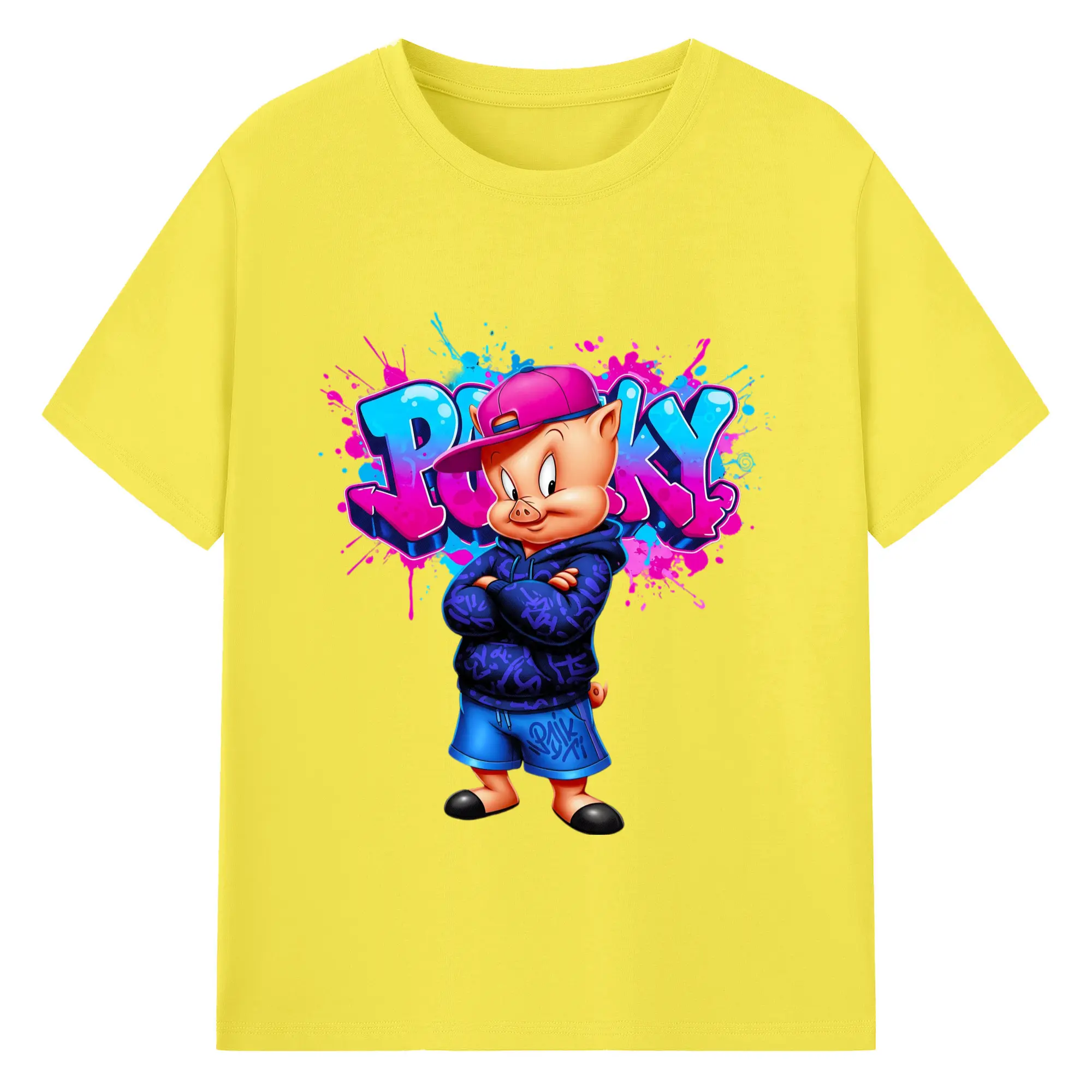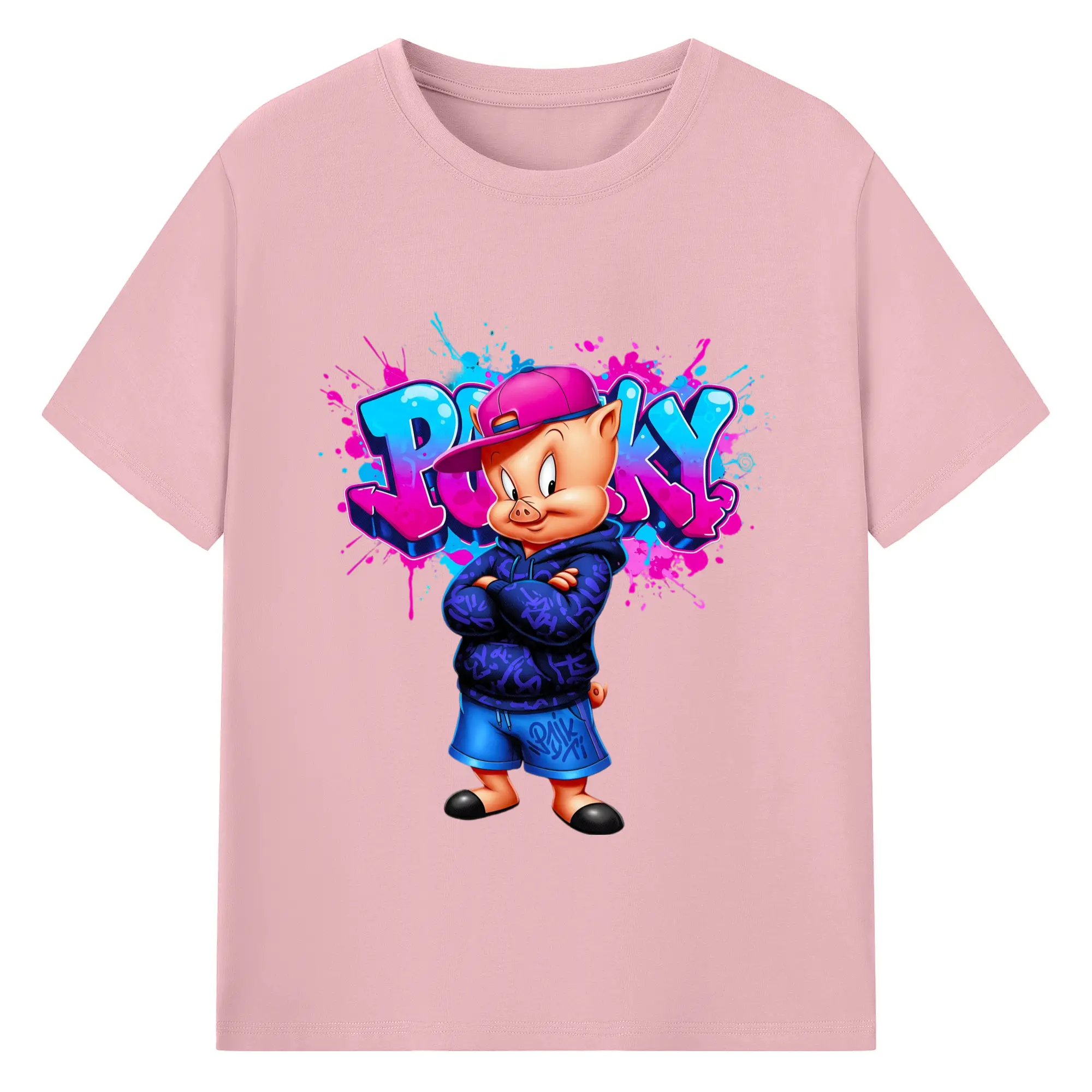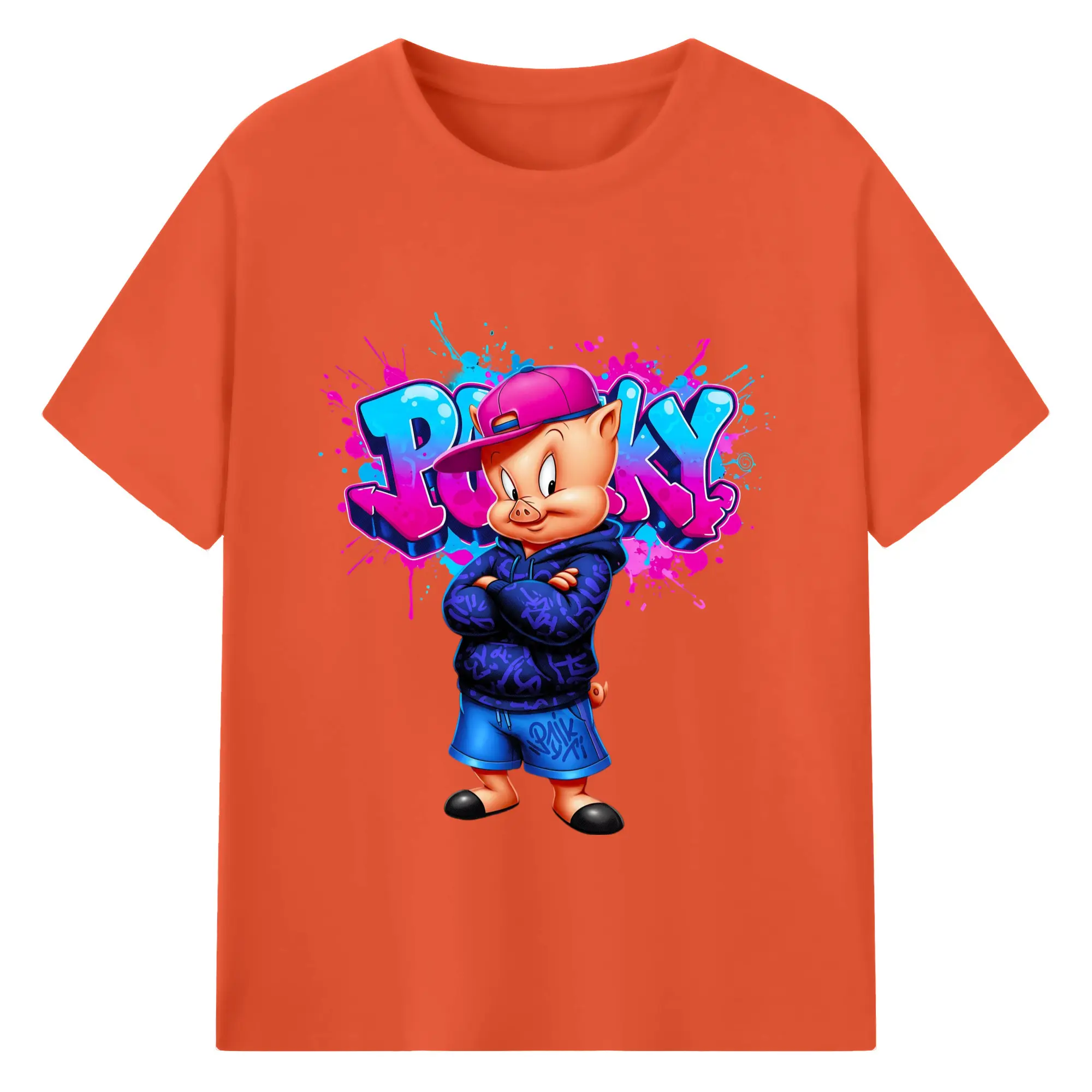 Men's Porky Pig tee - 180g Cotton T-Shirt With Front Heat Transfer Print – Soft, Lightweight, Fitted Design – Comfortable Casual Wear For Sports & Everyday Use
