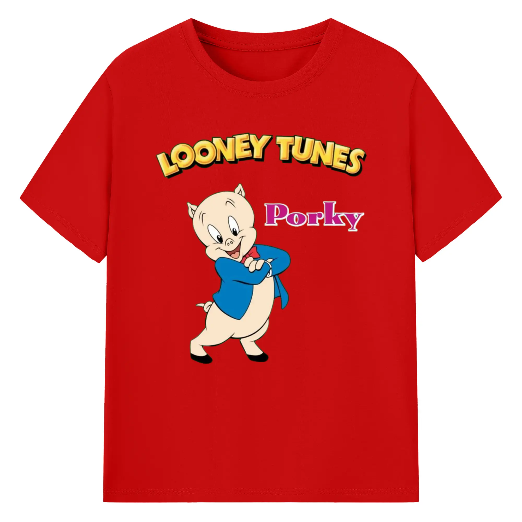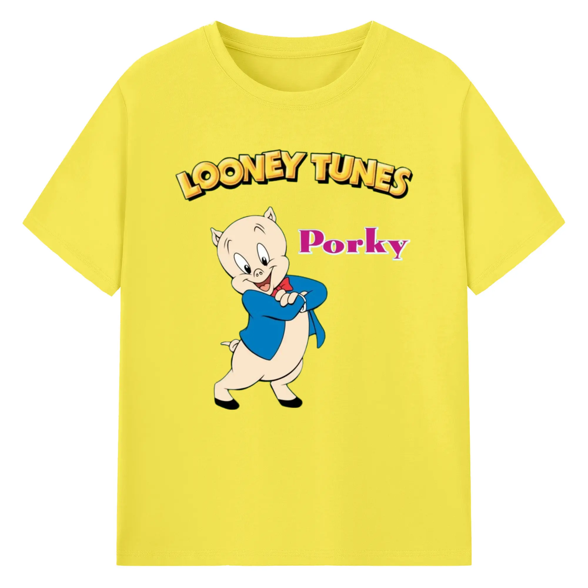 Men's Porky Pig t-shirt - 180g Cotton T-Shirt With Front Heat Transfer Print – Soft, Lightweight, Fitted Design – Comfortable Casual Wear For Sports & Everyday Use