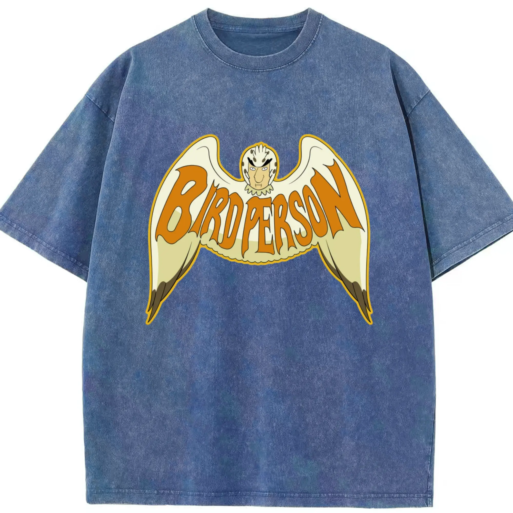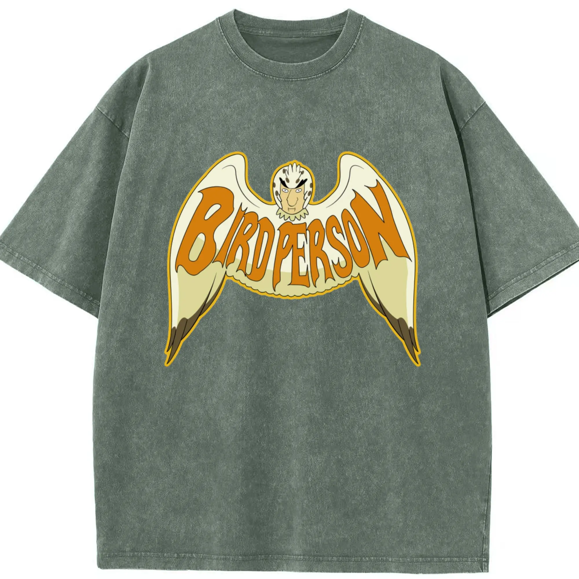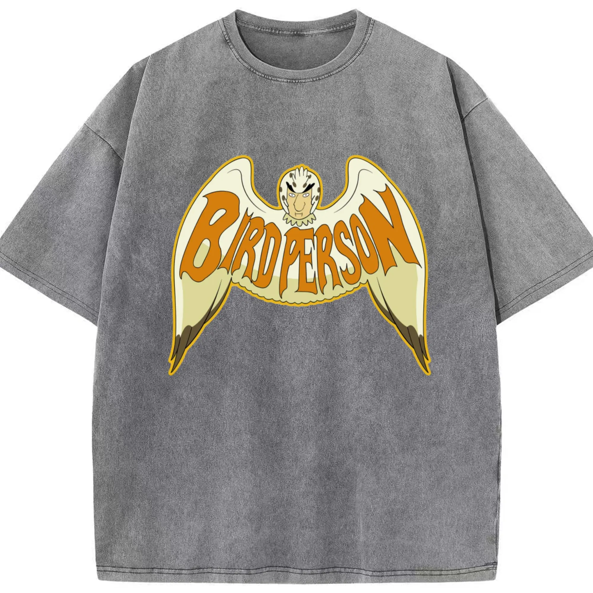 Men's Rick And Morty Bird Person graphic T-Shirt - Washed Vintage Look 230g Cotton Oversized T-Shirt With Front Heat Transfer Print – Soft, Lightweight, Stylish Fit – Comfortable Casual Wear For Sports & Everyday Use
