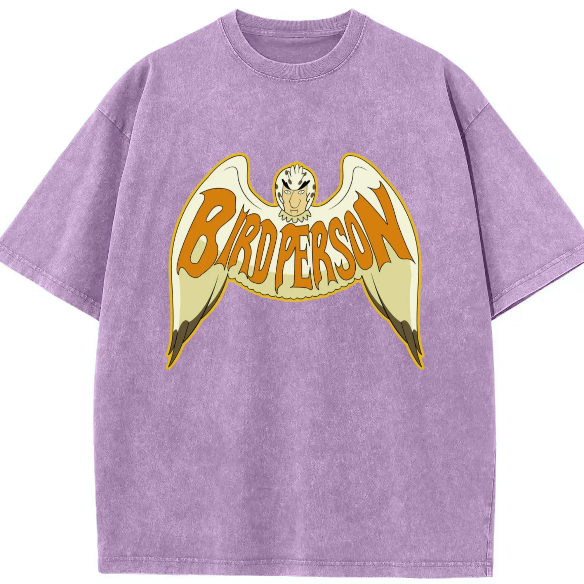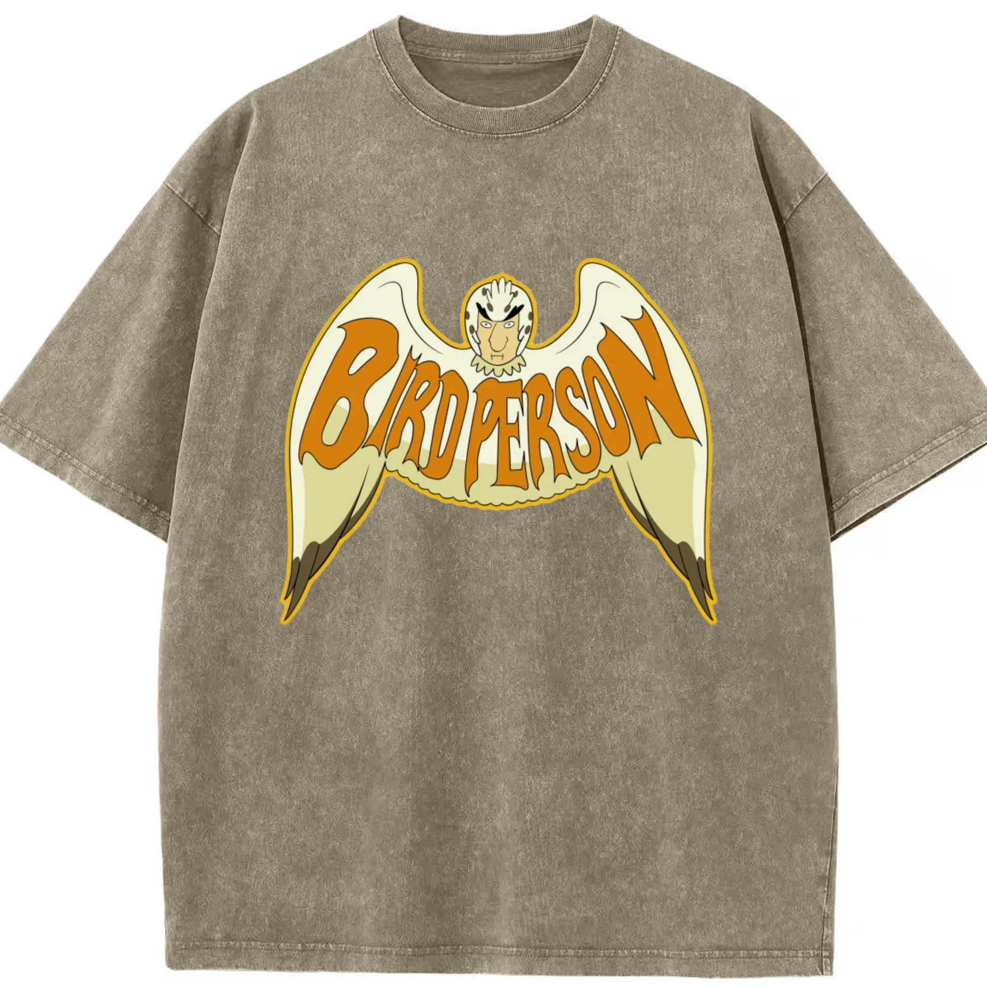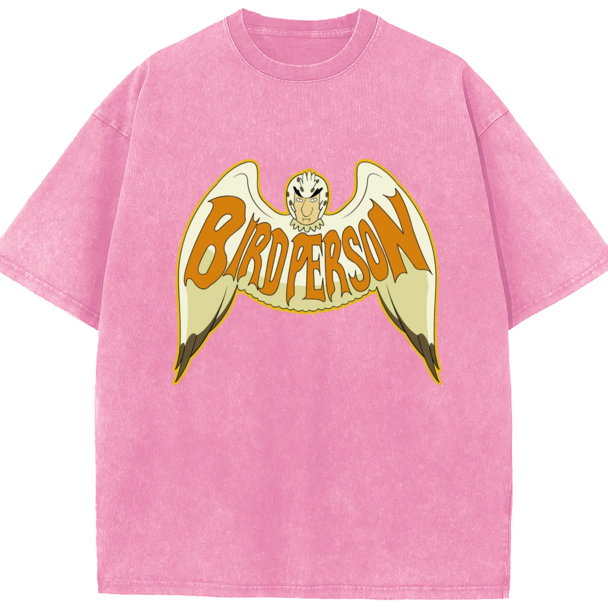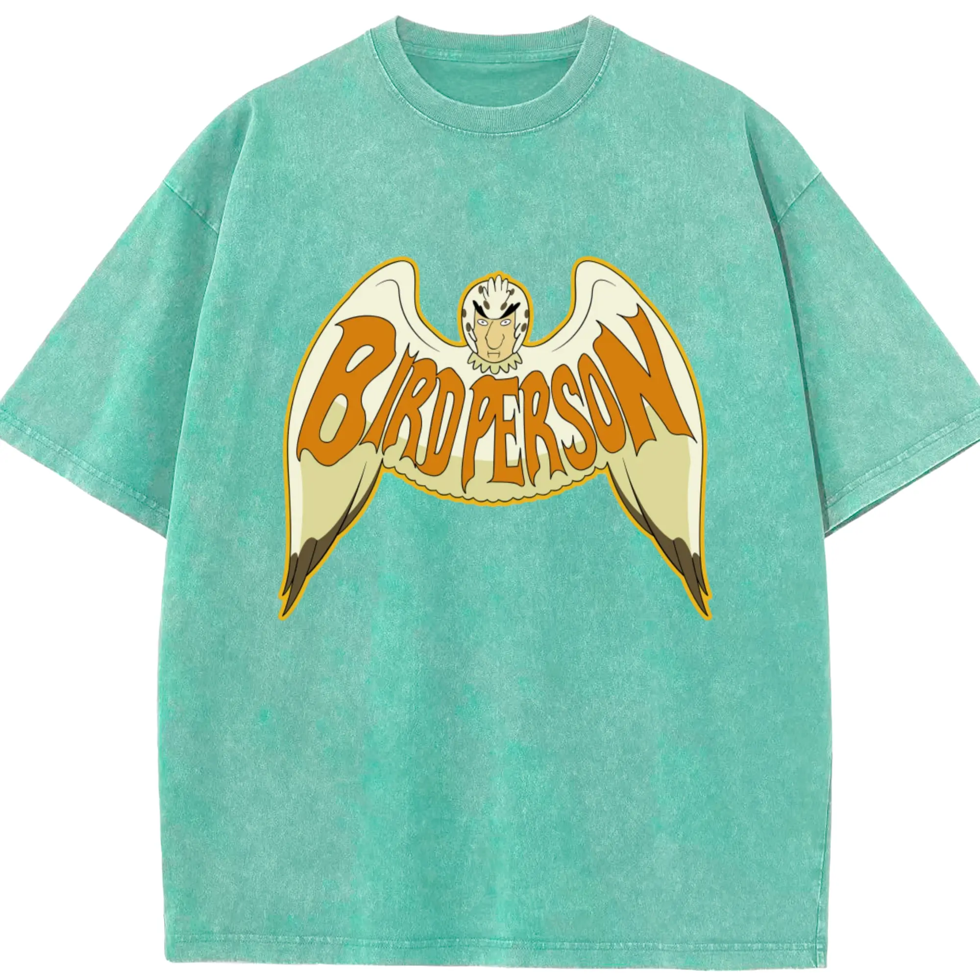 Men's Rick And Morty Bird Person graphic T-Shirt - Washed Vintage Look 230g Cotton Oversized T-Shirt With Front Heat Transfer Print – Soft, Lightweight, Stylish Fit – Comfortable Casual Wear For Sports & Everyday Use