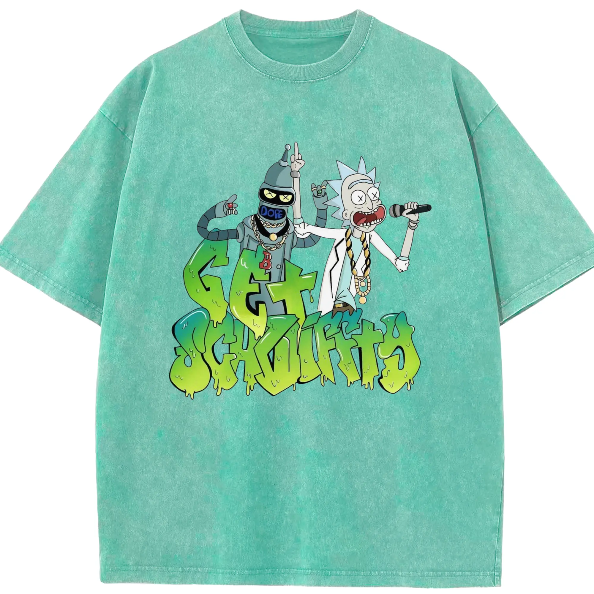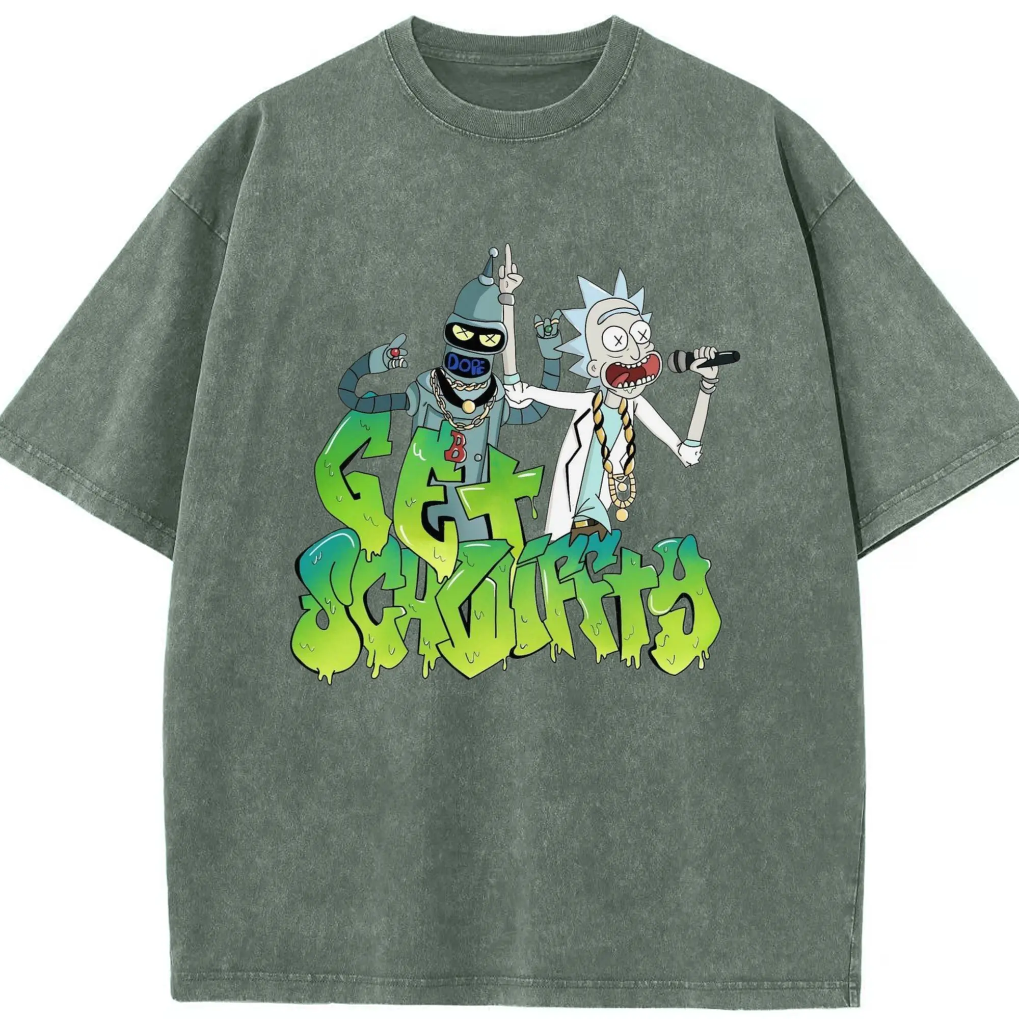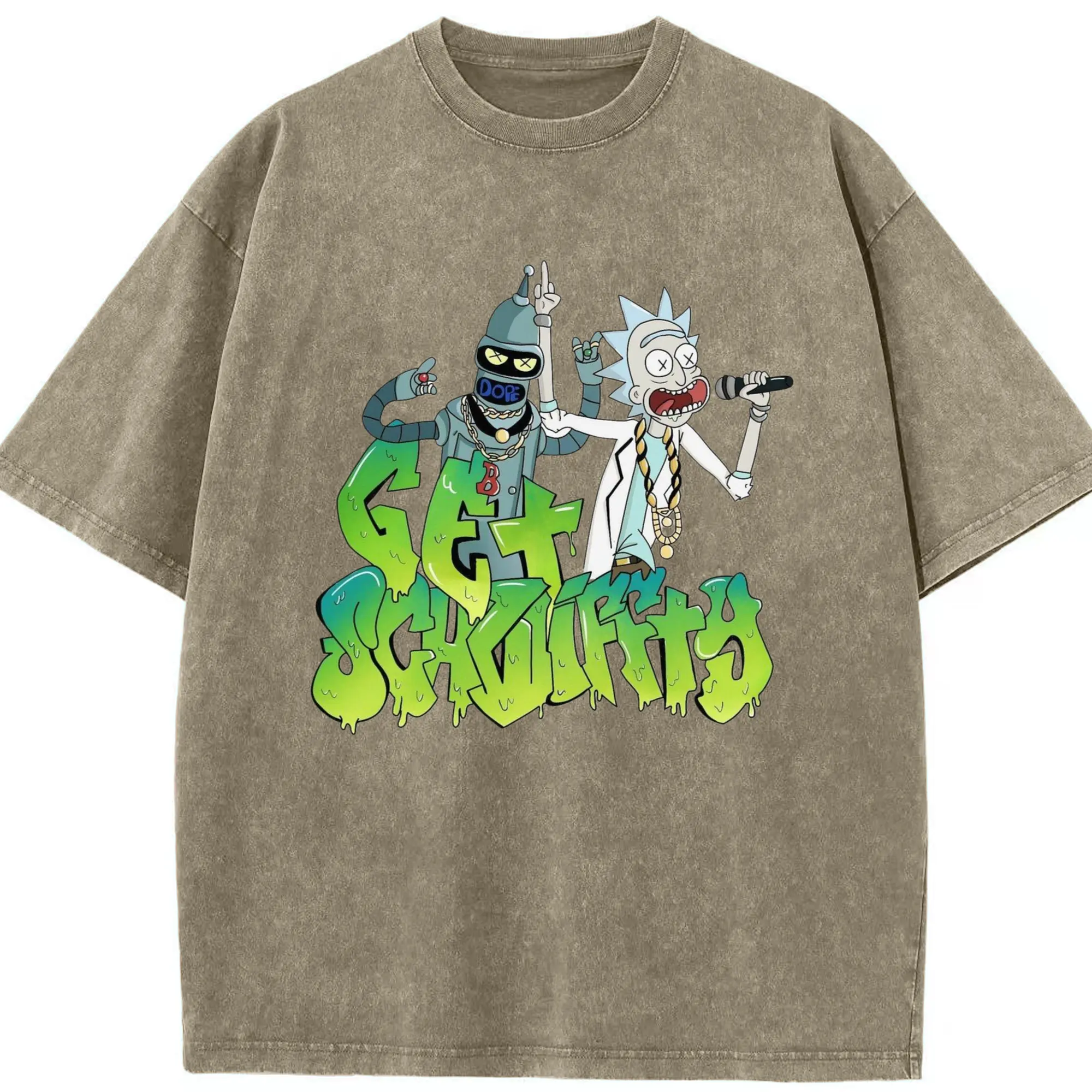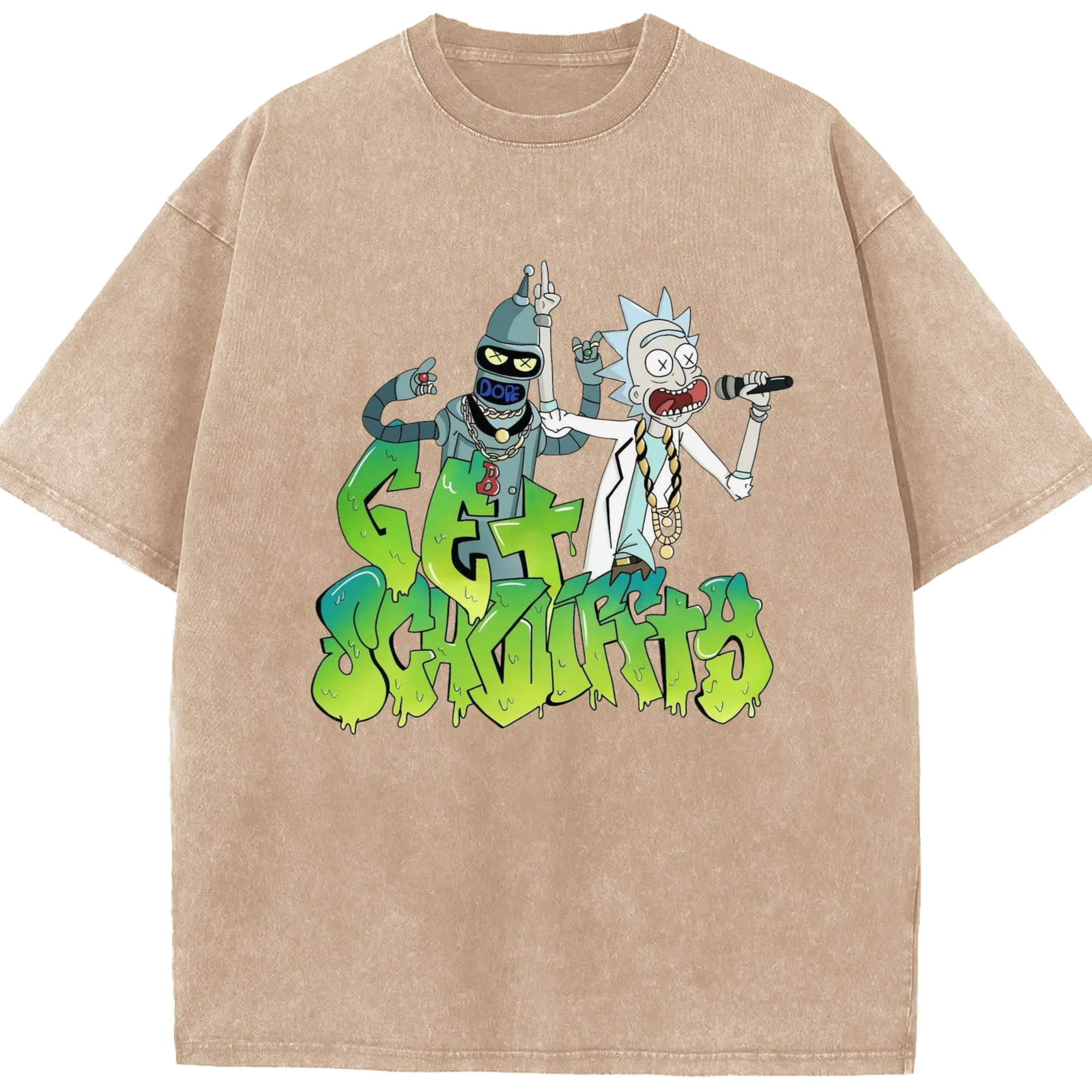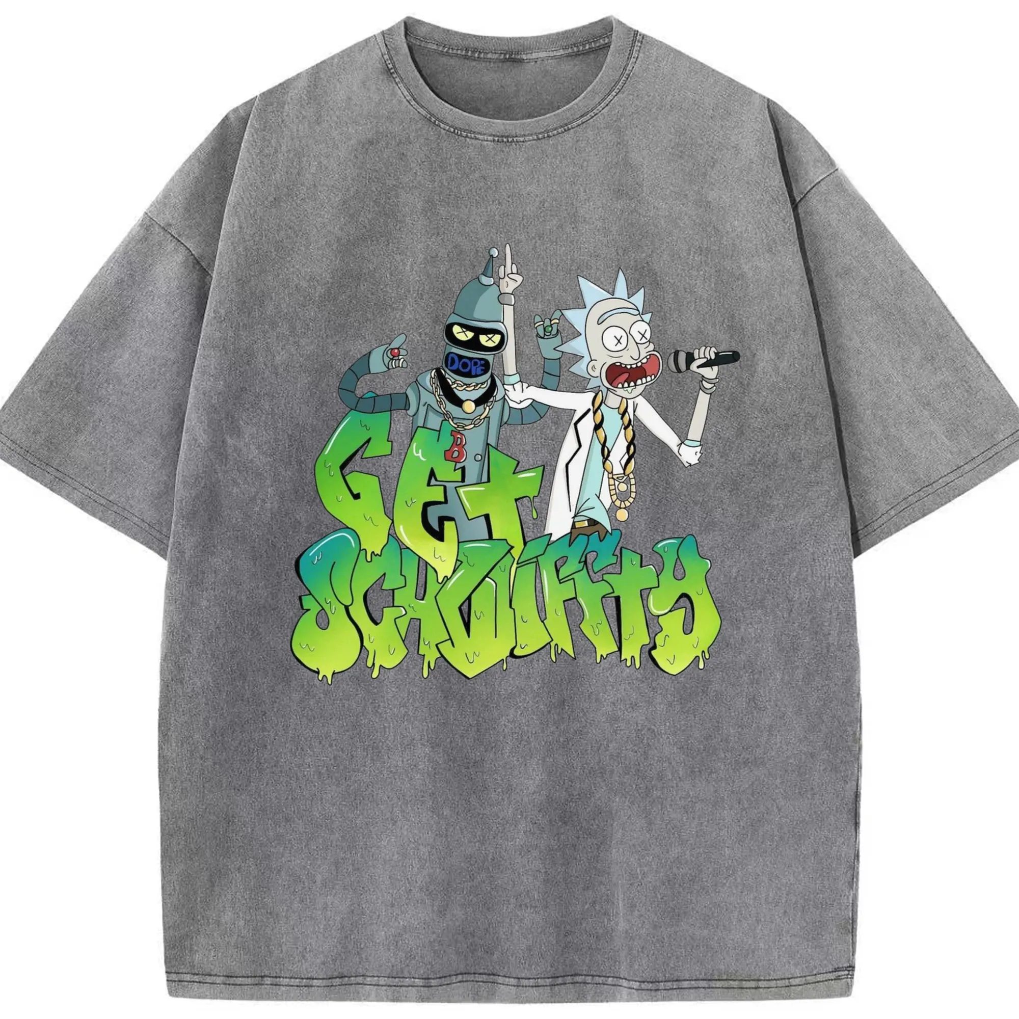 Men's Rick Sanchez retro tee - Washed Vintage Look 230g Cotton Oversized T-Shirt With Front Heat Transfer Print – Soft, Lightweight, Stylish Fit – Comfortable Casual Wear For Sports & Everyday Use