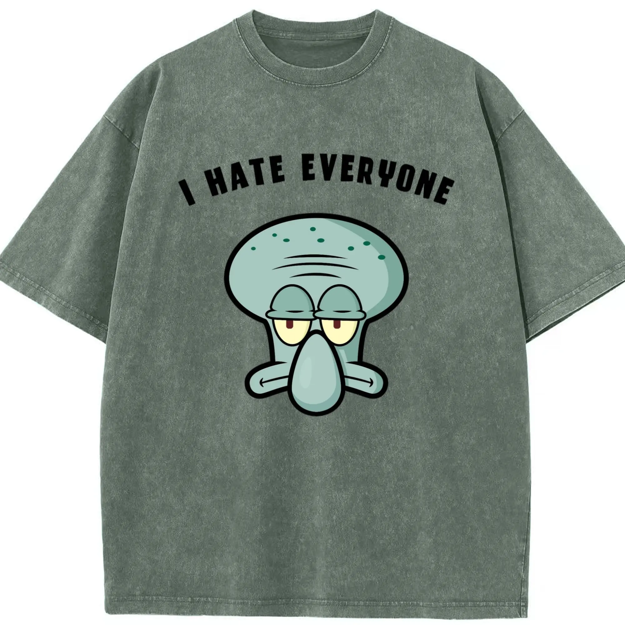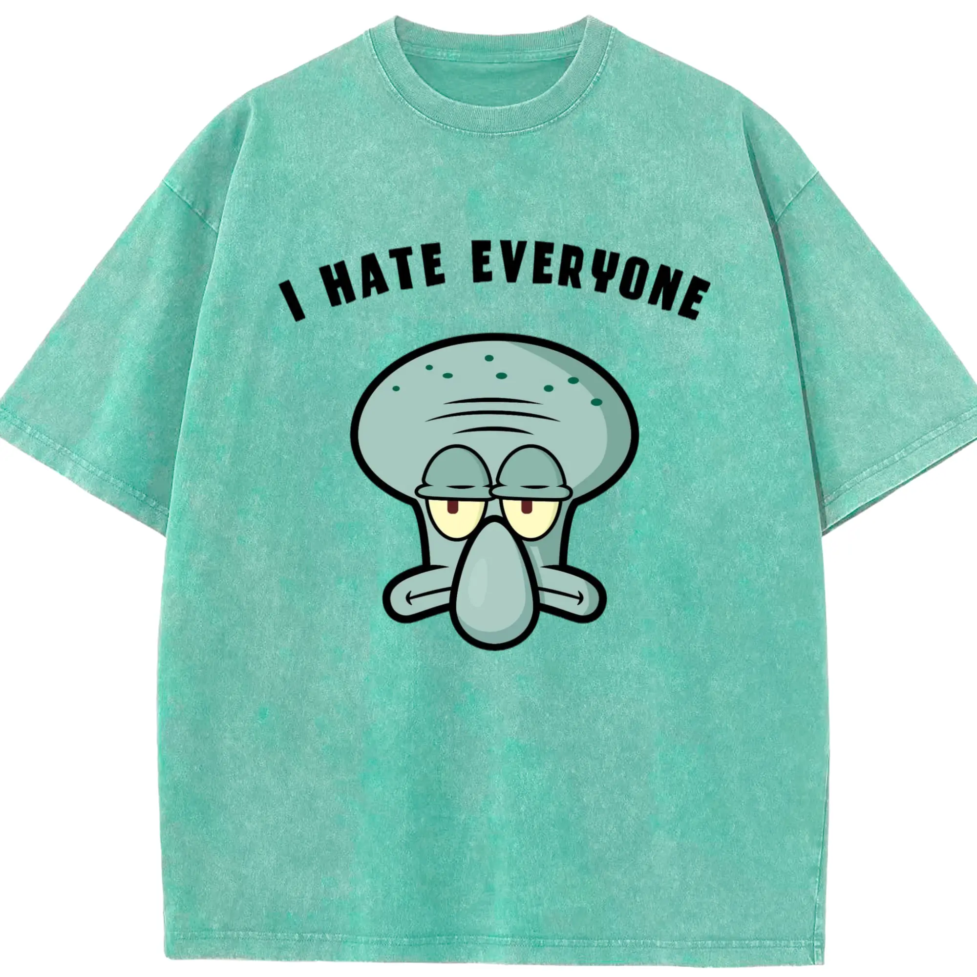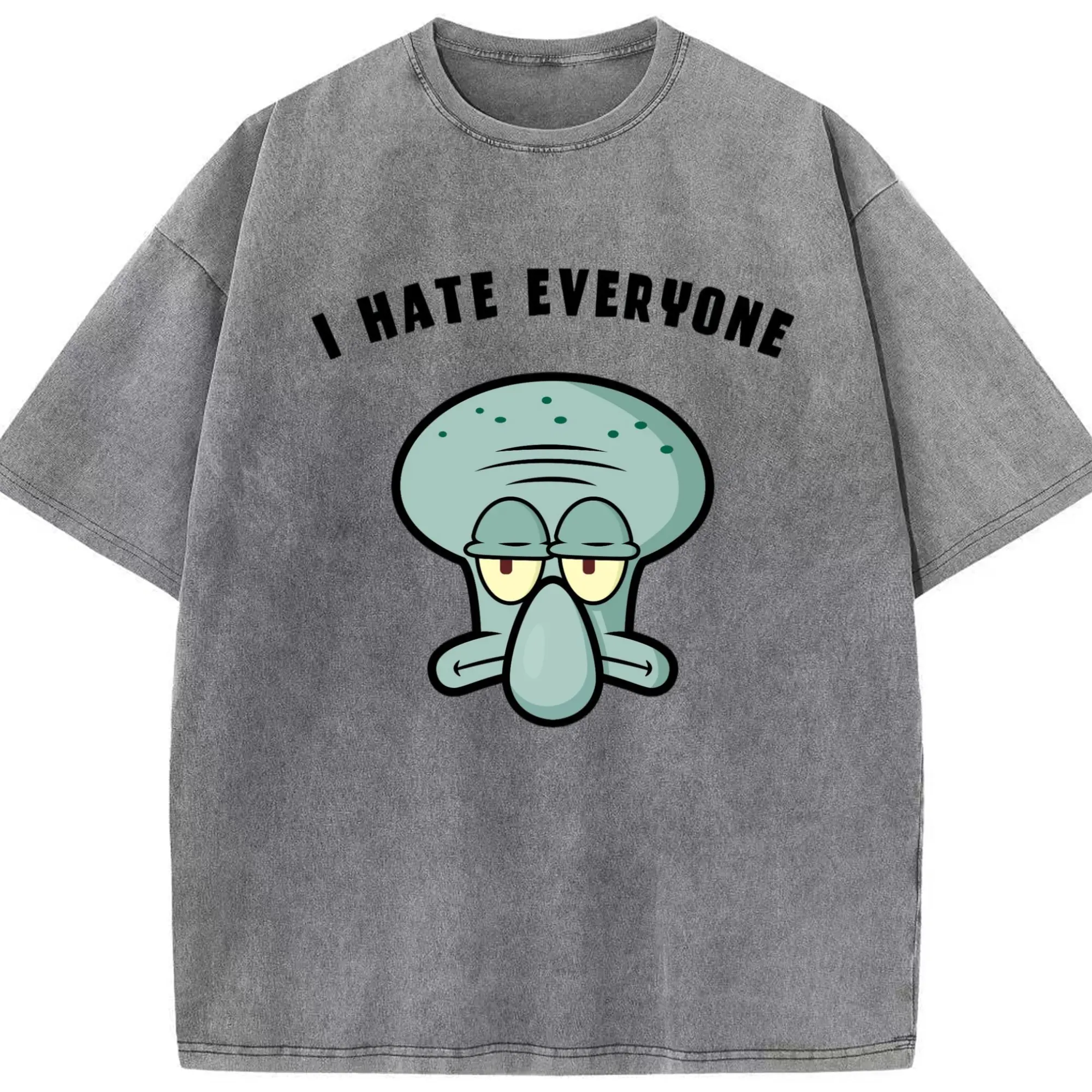 Men's Spongebob Squidward l Hate Everyone Tee - Washed Vintage Look 230g Cotton Oversized T-Shirt With Front Heat Transfer Print – Soft, Lightweight, Stylish Fit – Comfortable Casual Wear For Sports & Everyday Use