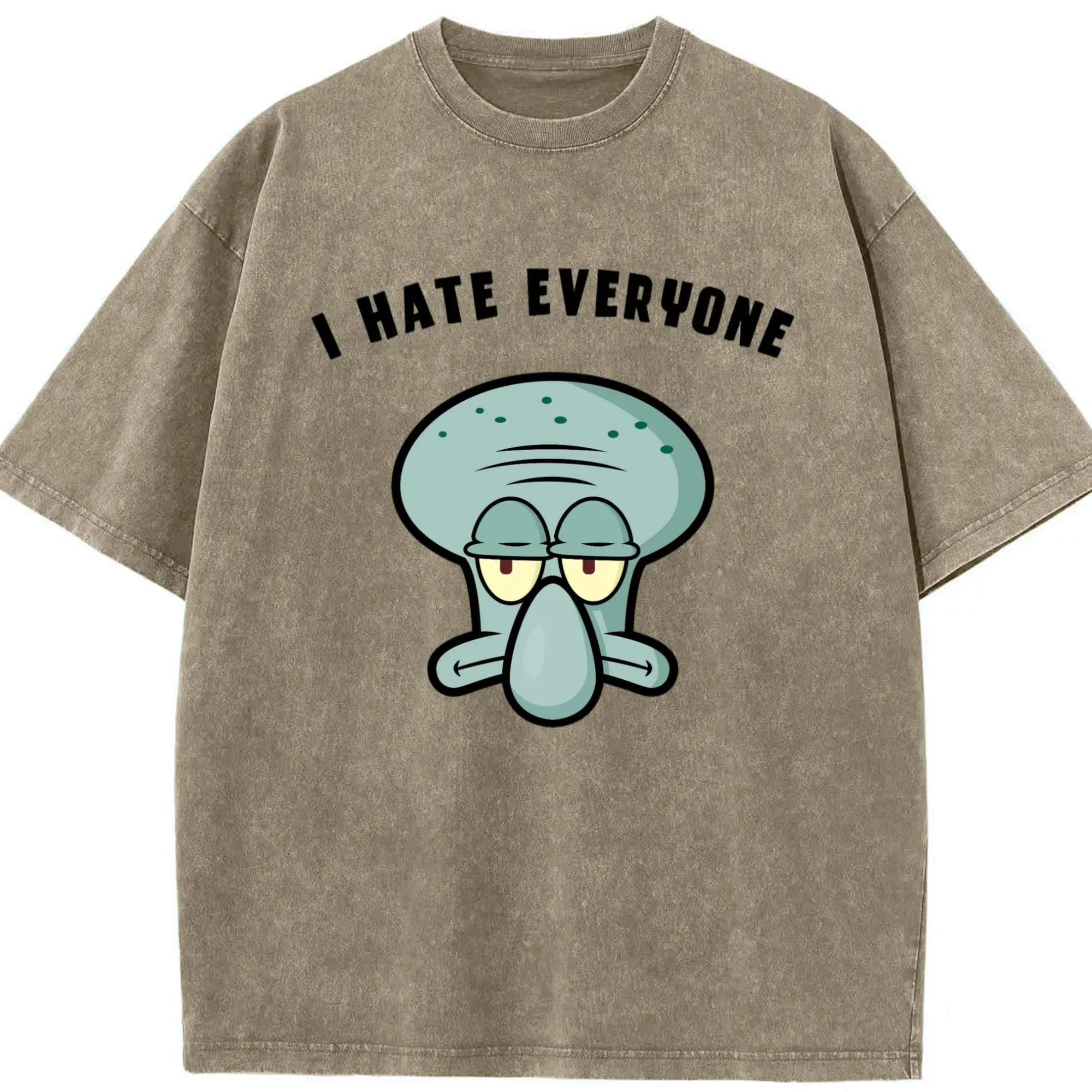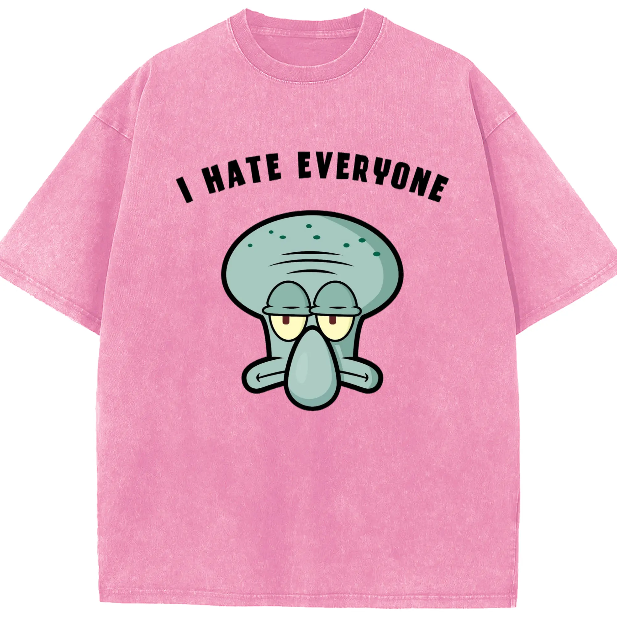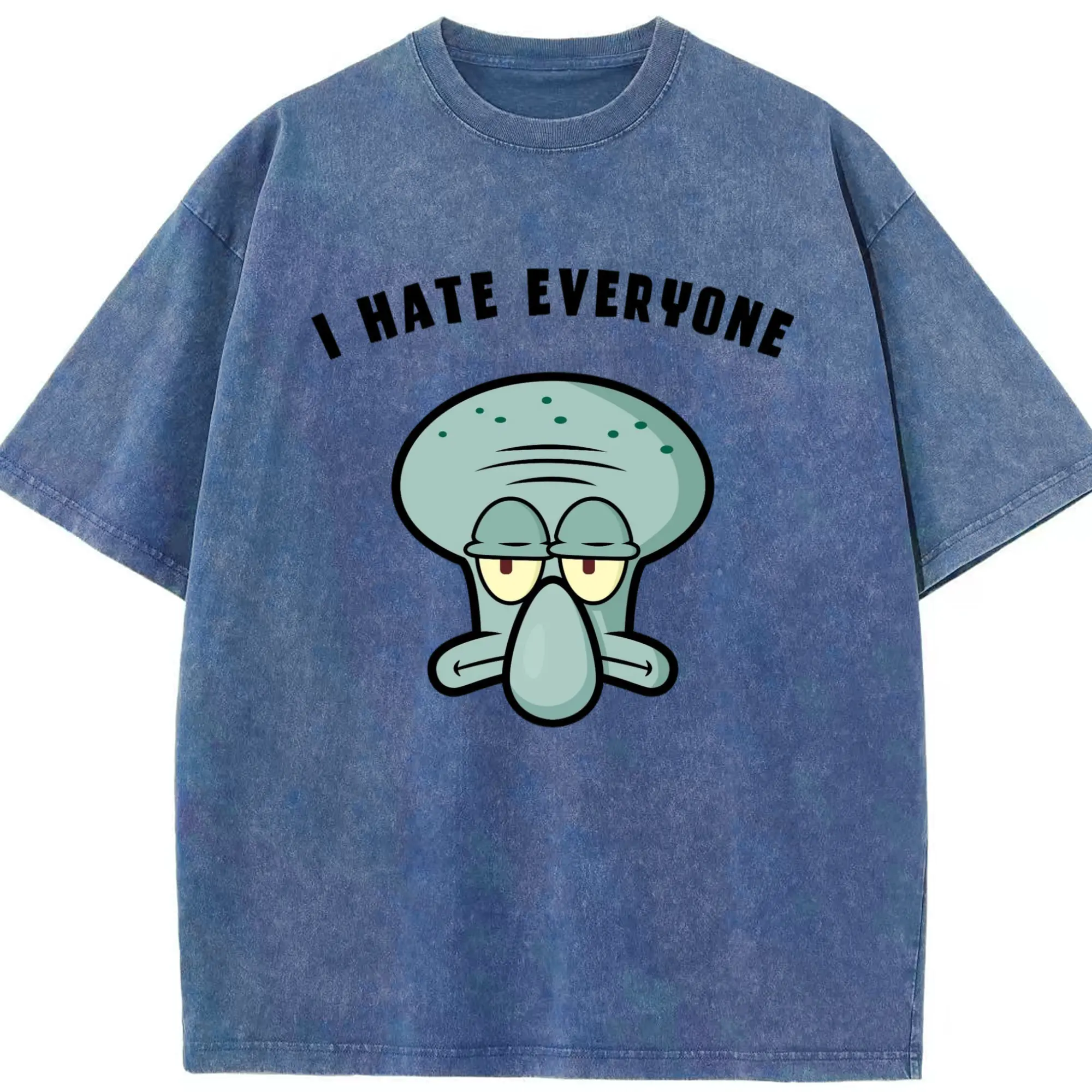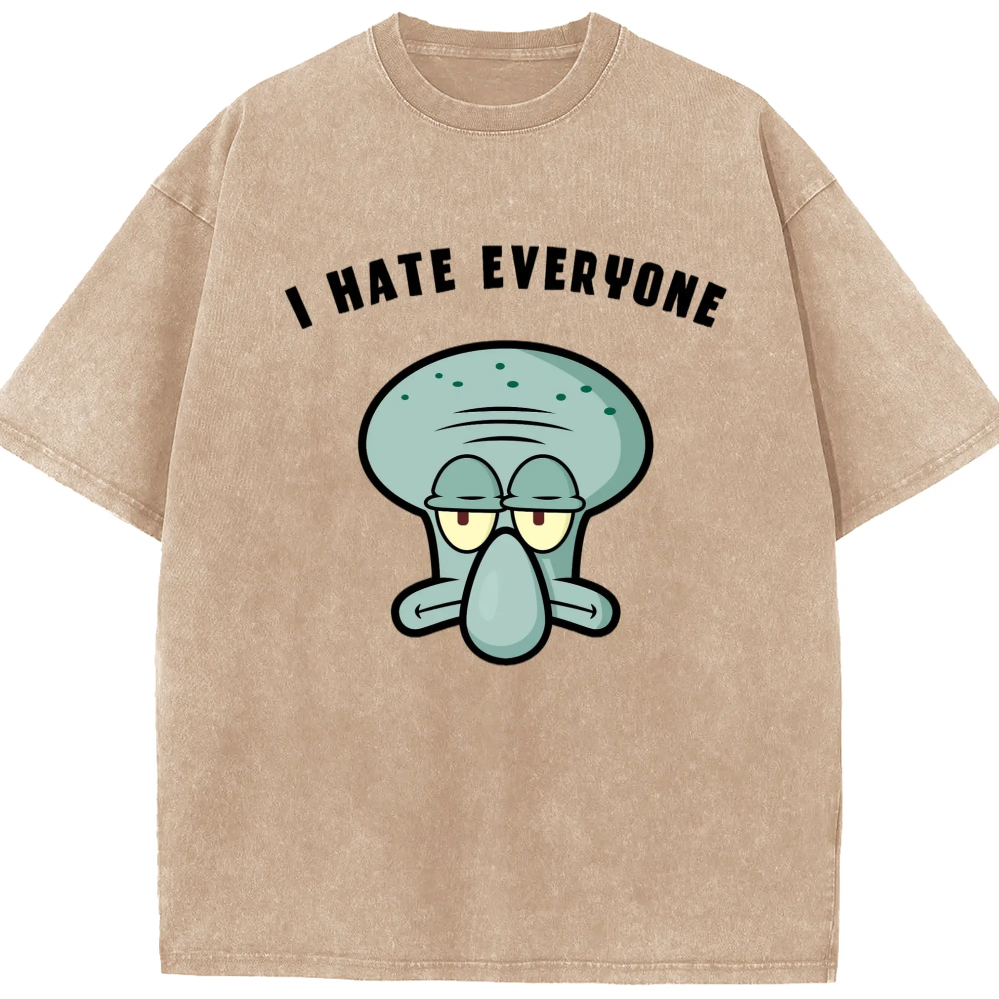 Men's Spongebob Squidward l Hate Everyone Tee - Washed Vintage Look 230g Cotton Oversized T-Shirt With Front Heat Transfer Print – Soft, Lightweight, Stylish Fit – Comfortable Casual Wear For Sports & Everyday Use