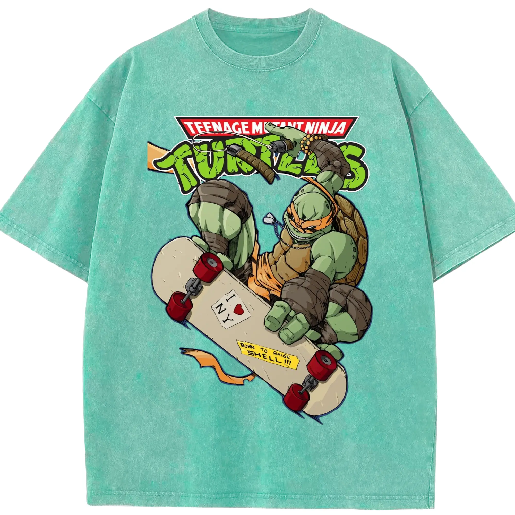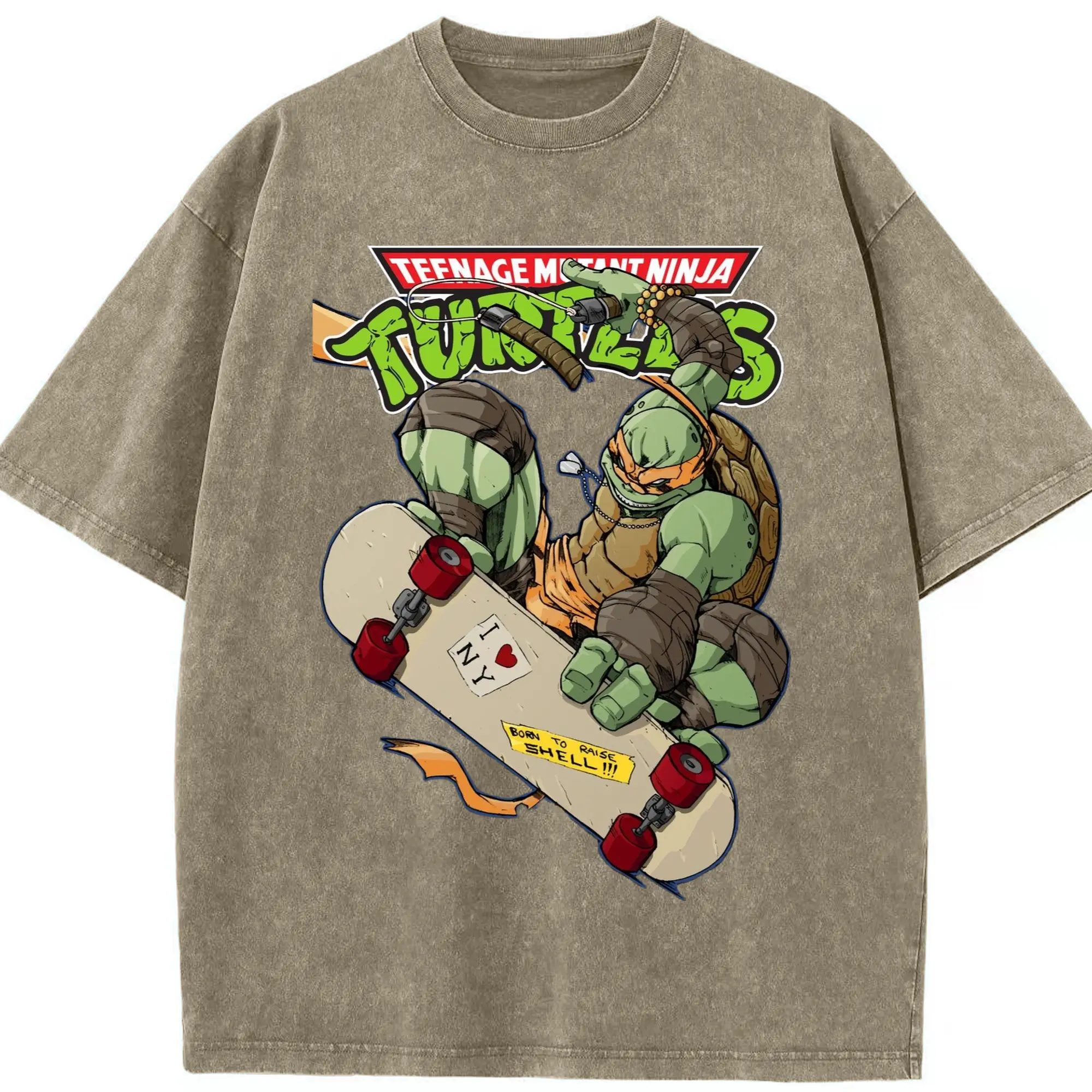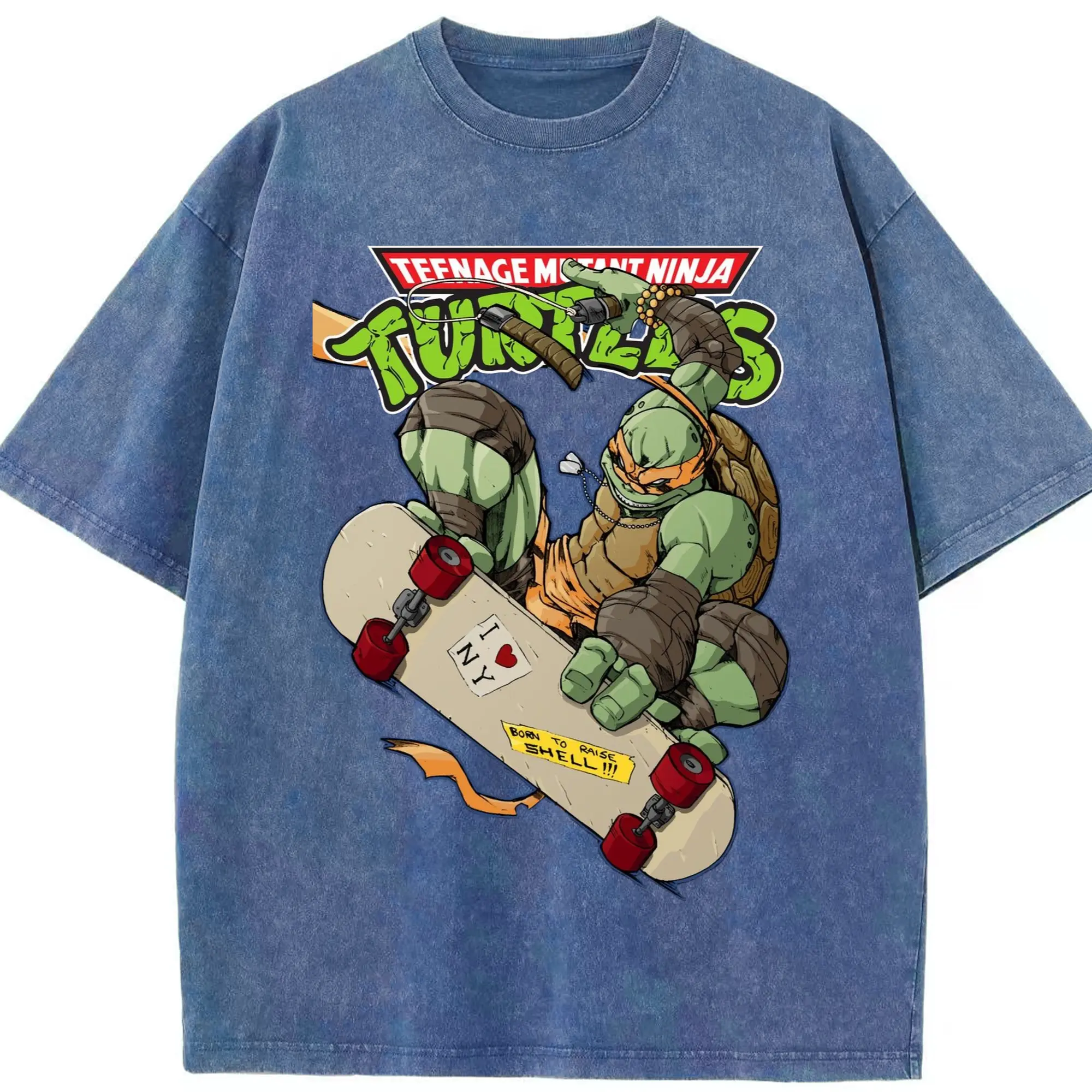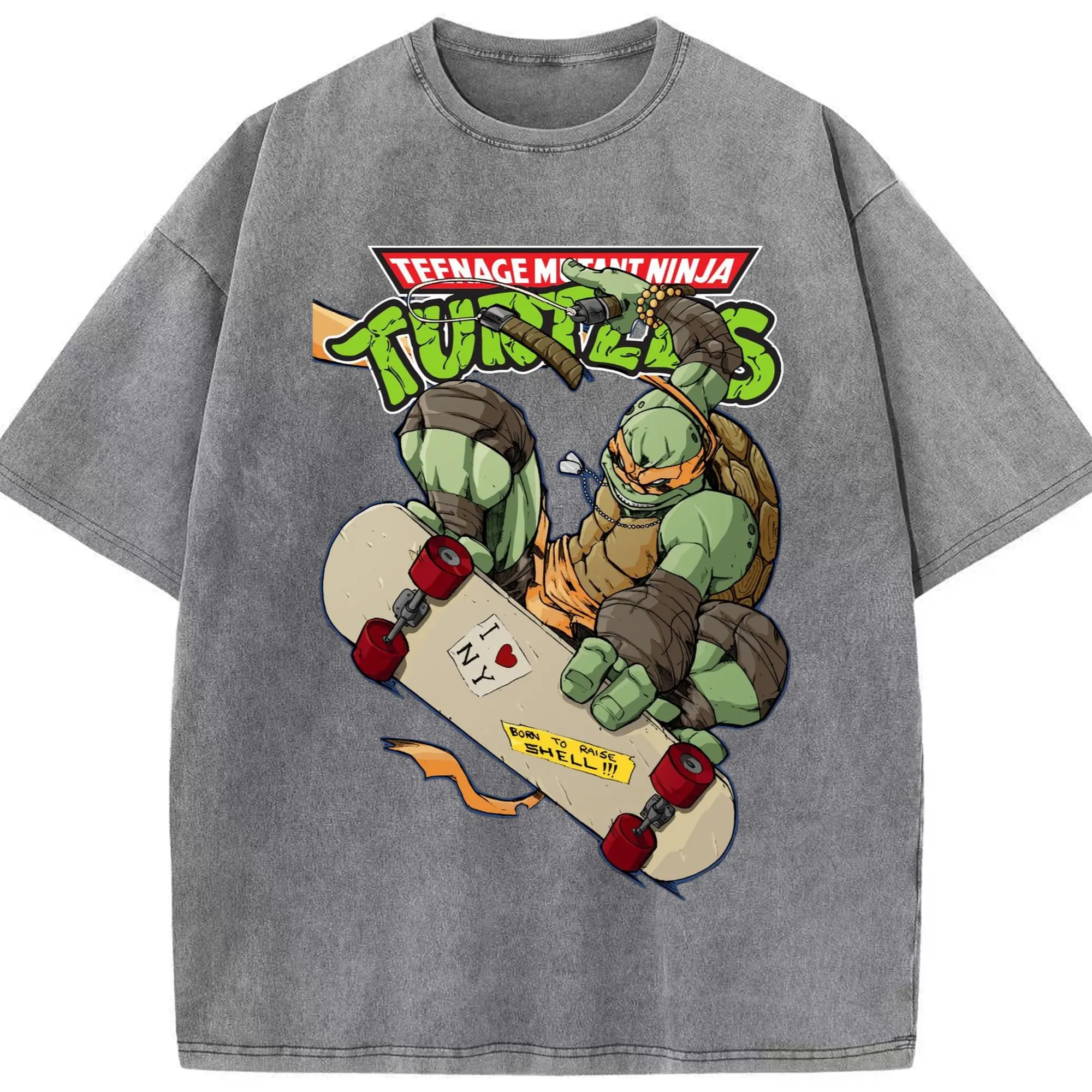 Men's Teenage Mutant Ninja Turtles Michelangelo graphic tee - Washed Vintage Look 230g Cotton Oversized T-Shirt With Front Heat Transfer Print – Soft, Lightweight, Stylish Fit – Comfortable Casual Wear For Sports & Everyday Use