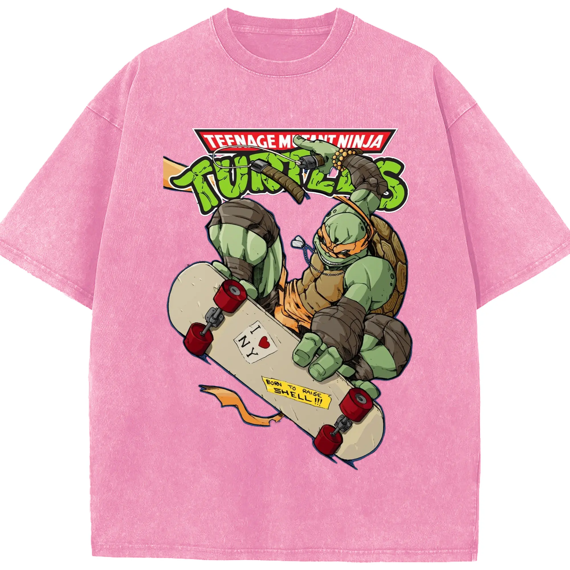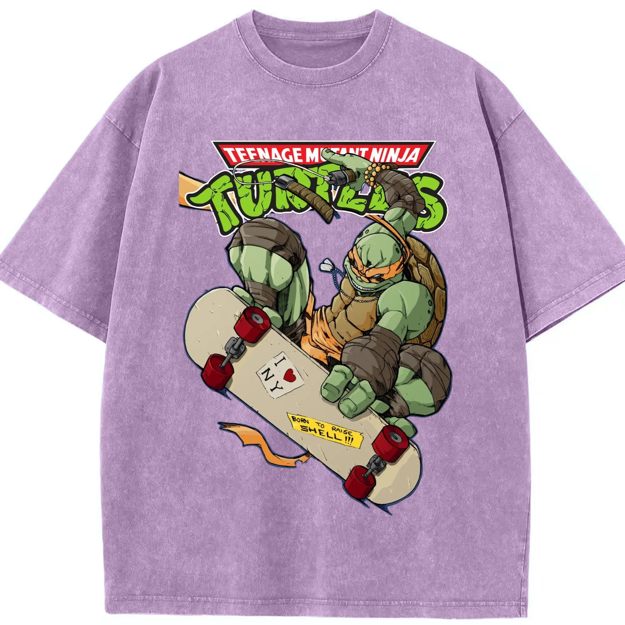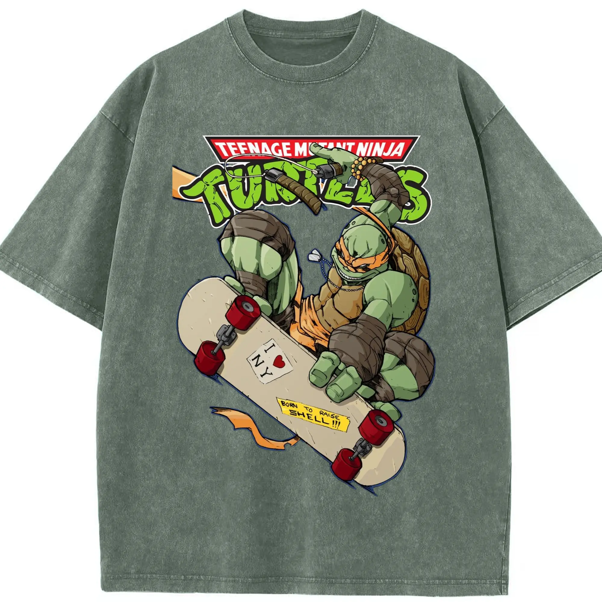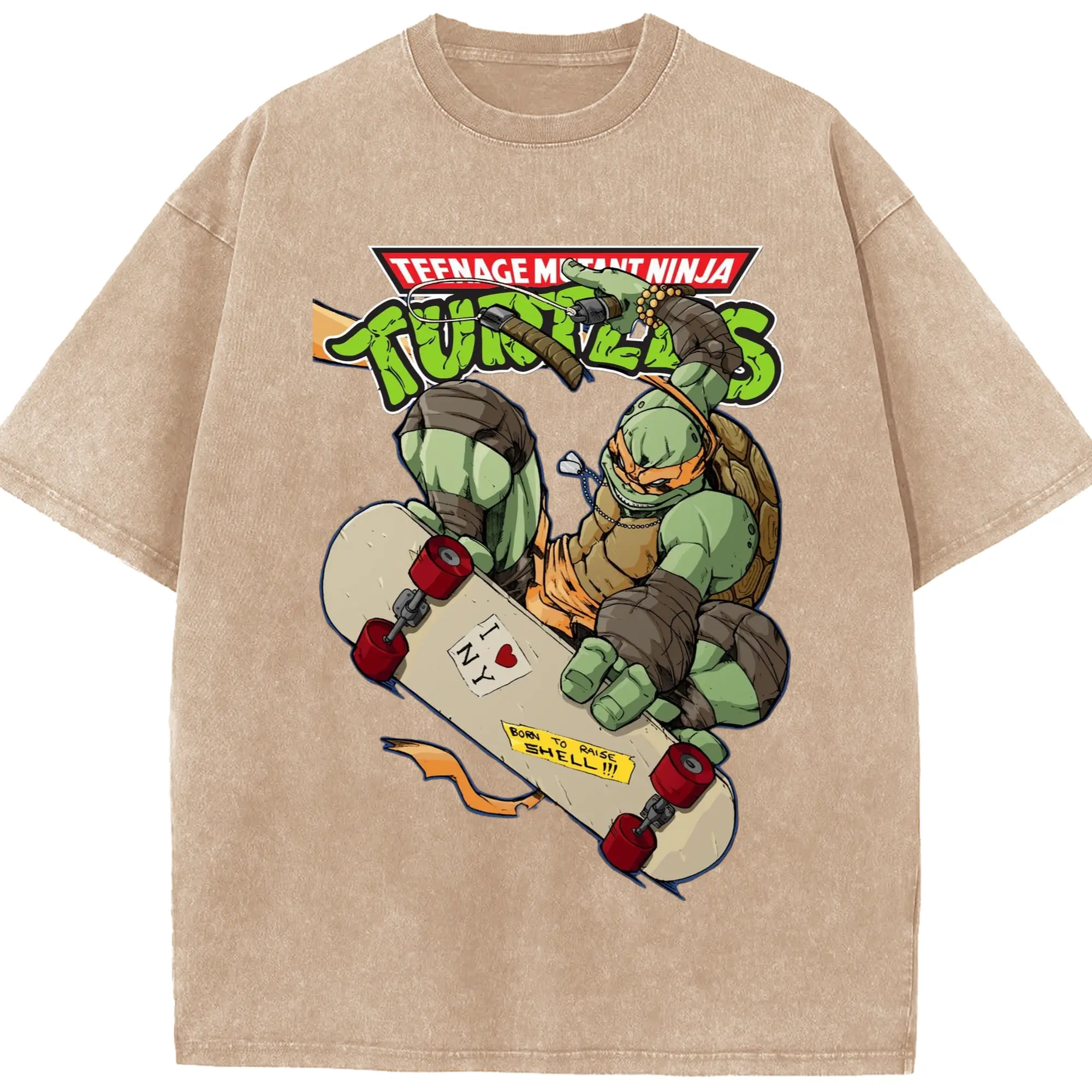 Men's Teenage Mutant Ninja Turtles Michelangelo graphic tee - Washed Vintage Look 230g Cotton Oversized T-Shirt With Front Heat Transfer Print – Soft, Lightweight, Stylish Fit – Comfortable Casual Wear For Sports & Everyday Use