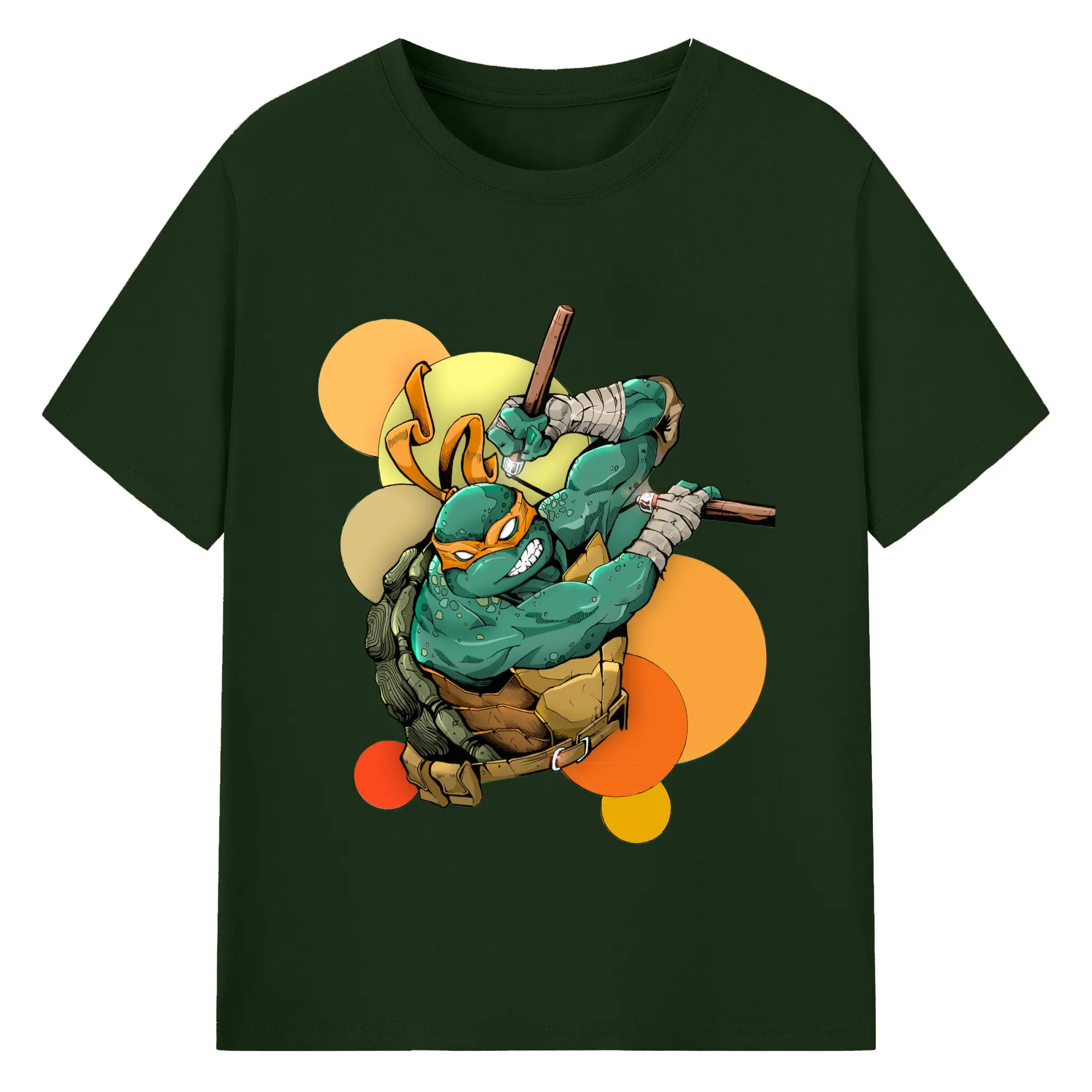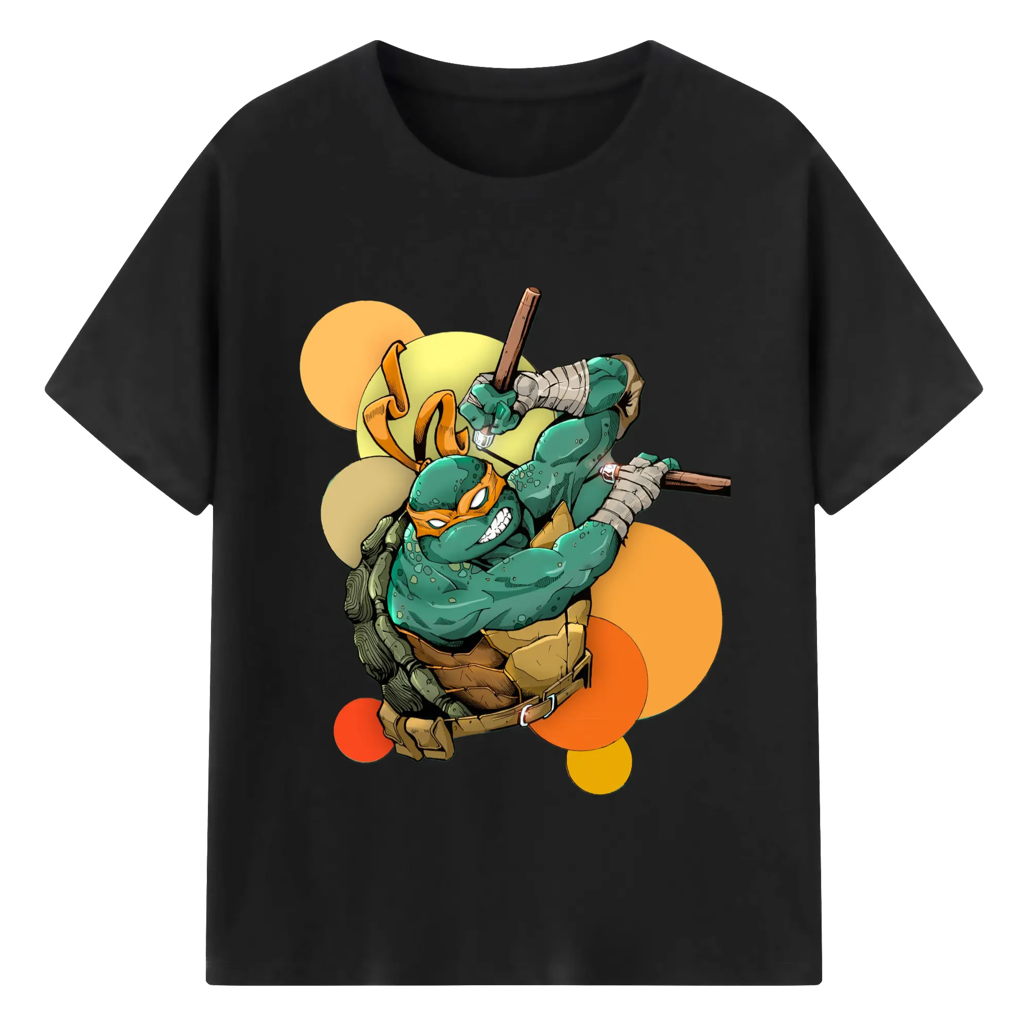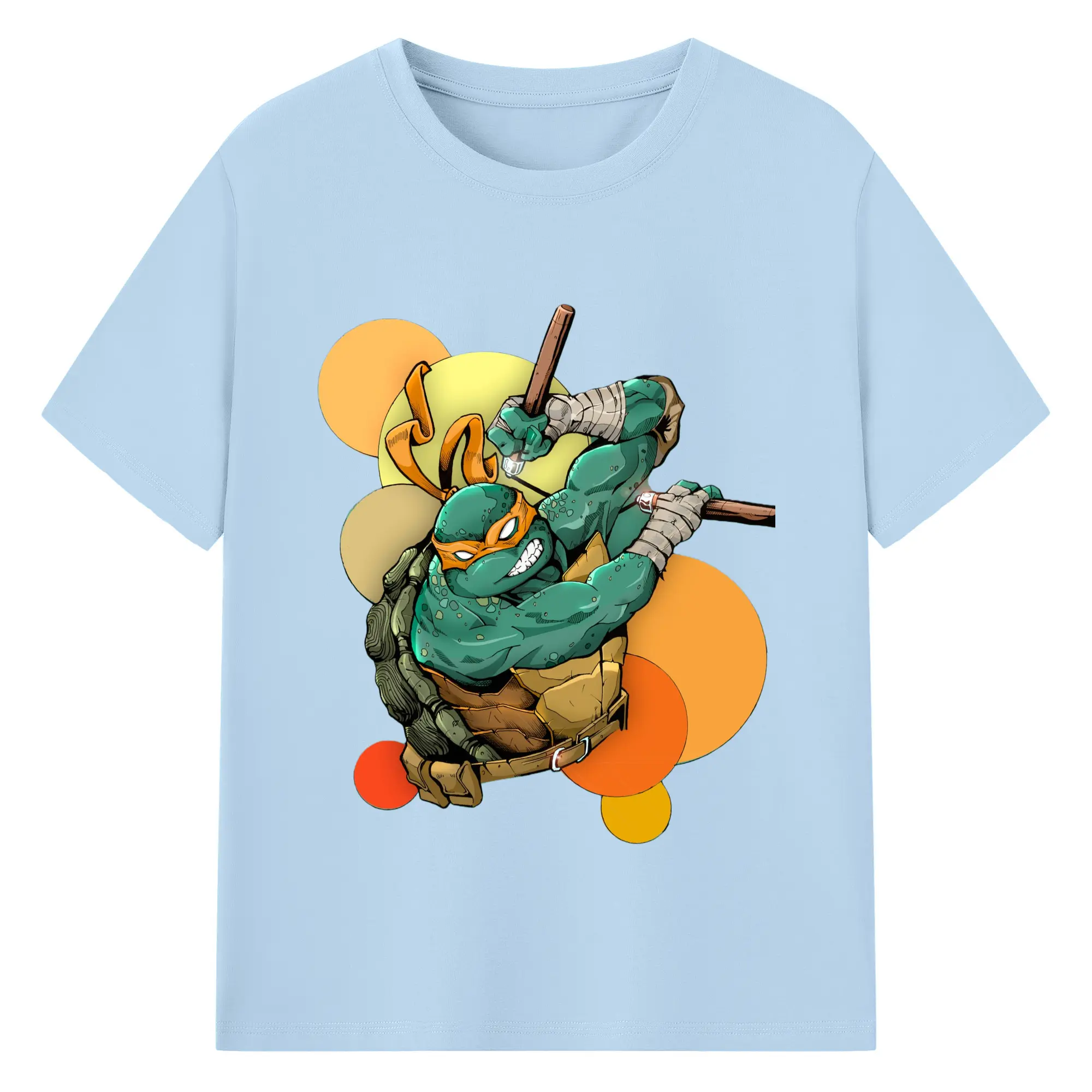 Men's Teenage Mutant Ninja Turtles Michelangelo T-Shirt - 180g Cotton T-Shirt With Front Heat Transfer Print – Soft, Lightweight, Fitted Design – Comfortable Casual Wear For Sports & Everyday Use