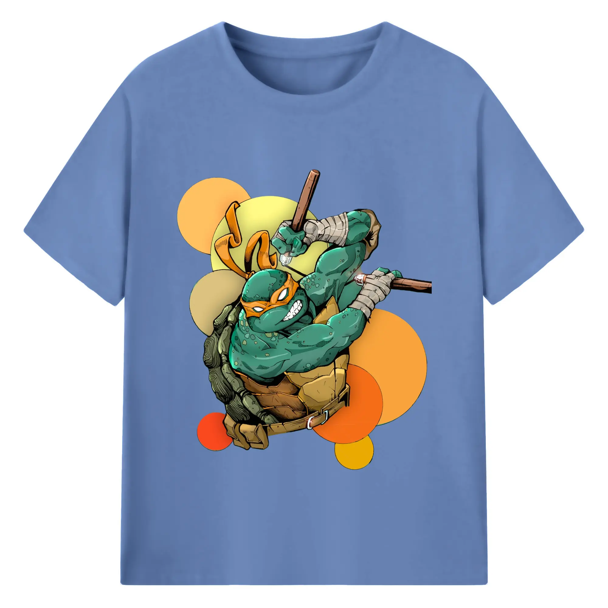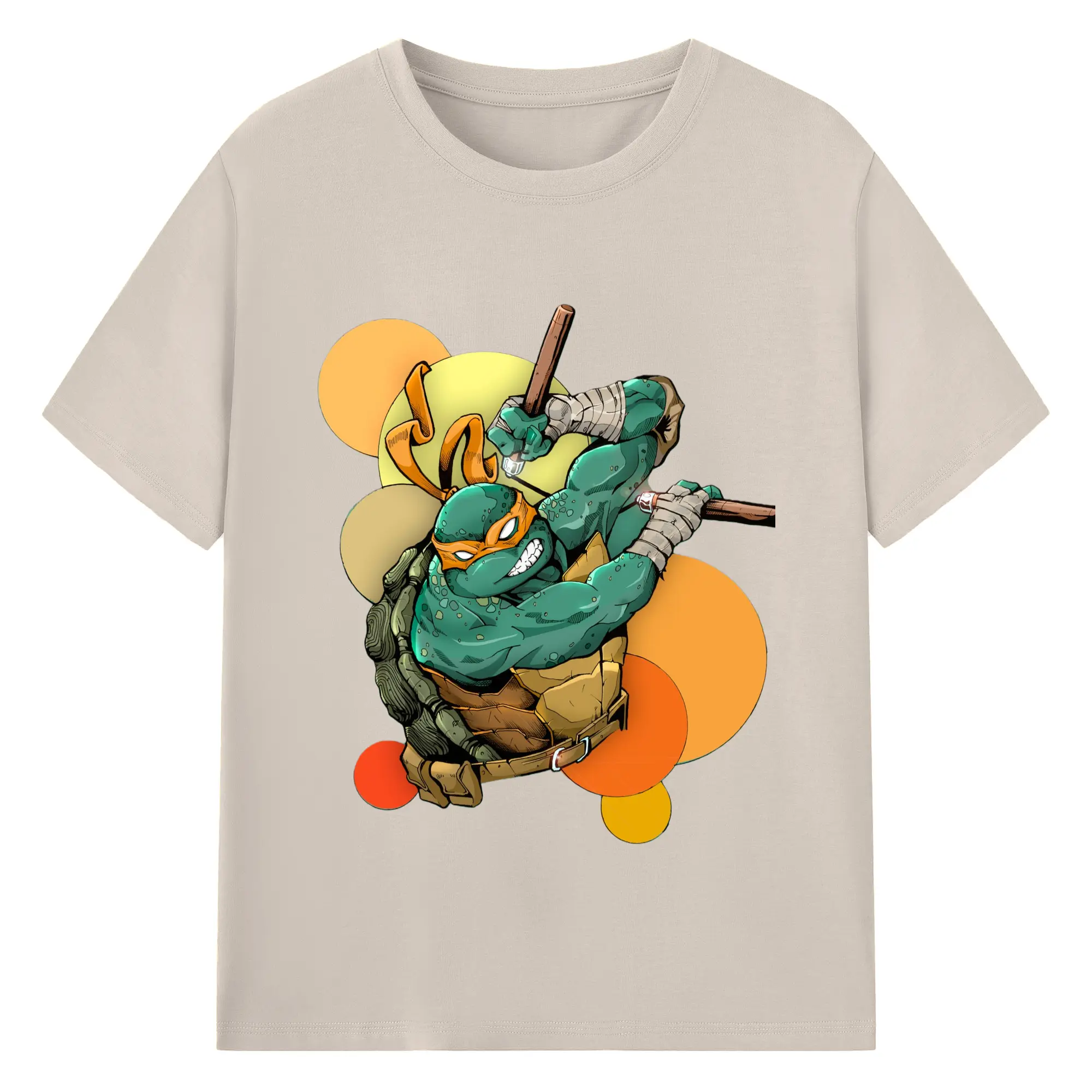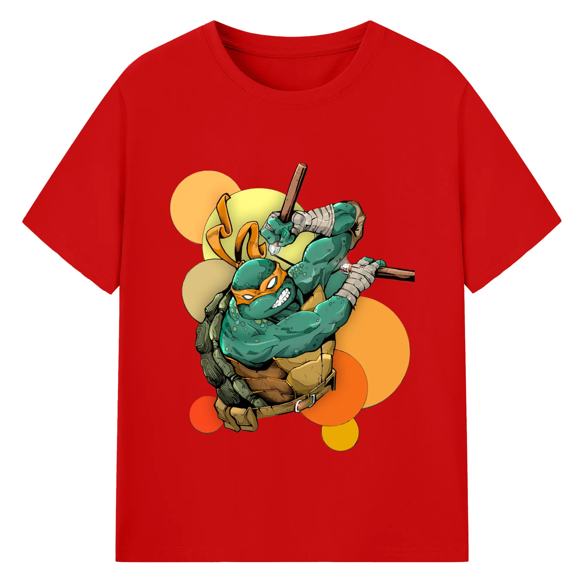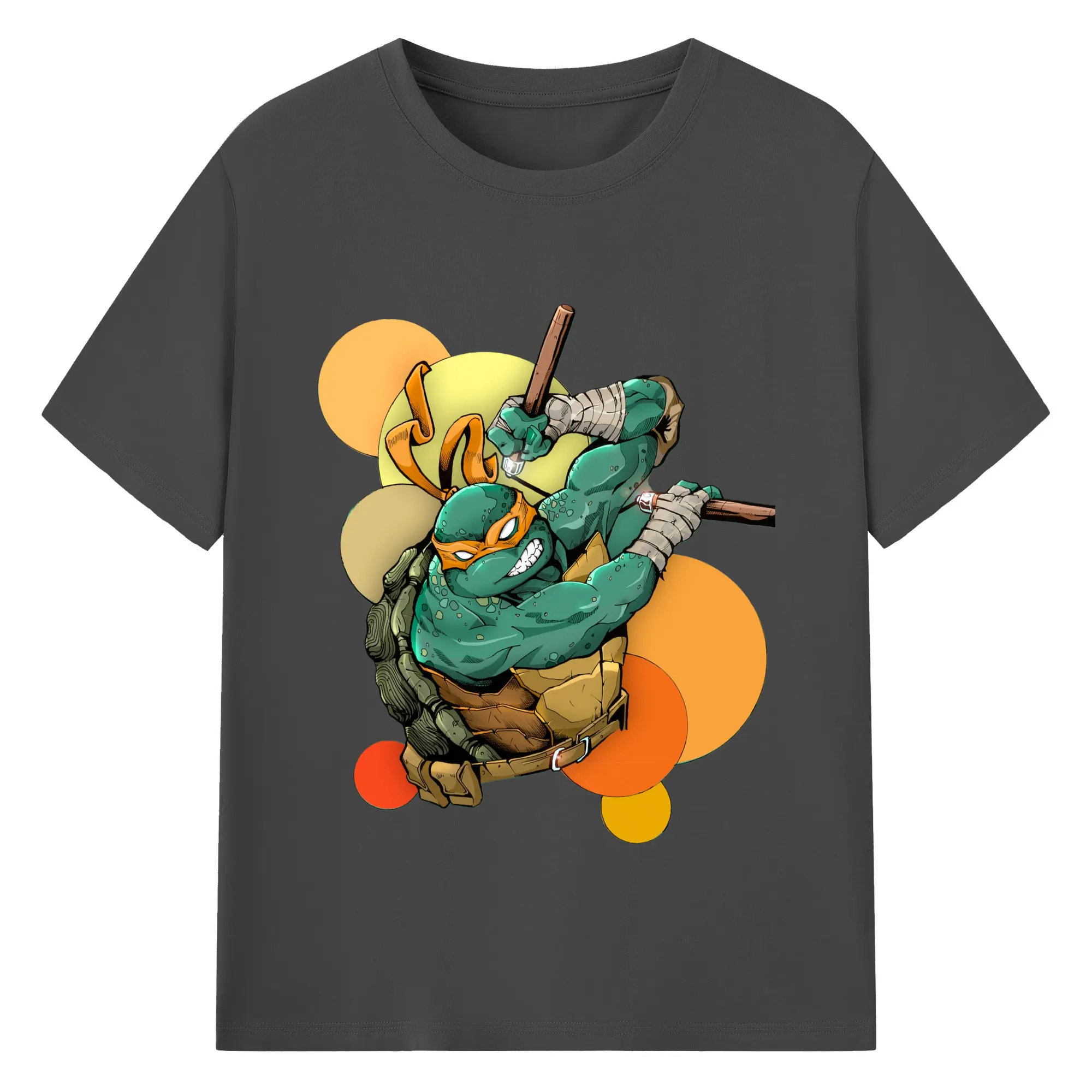 Men's Teenage Mutant Ninja Turtles Michelangelo T-Shirt - 180g Cotton T-Shirt With Front Heat Transfer Print – Soft, Lightweight, Fitted Design – Comfortable Casual Wear For Sports & Everyday Use