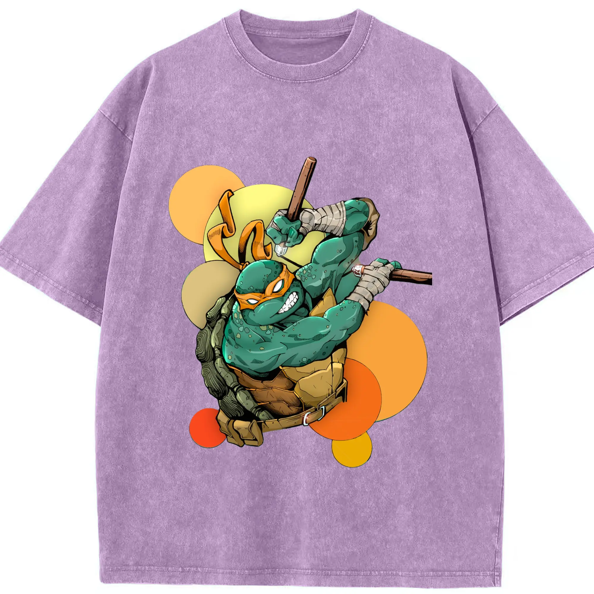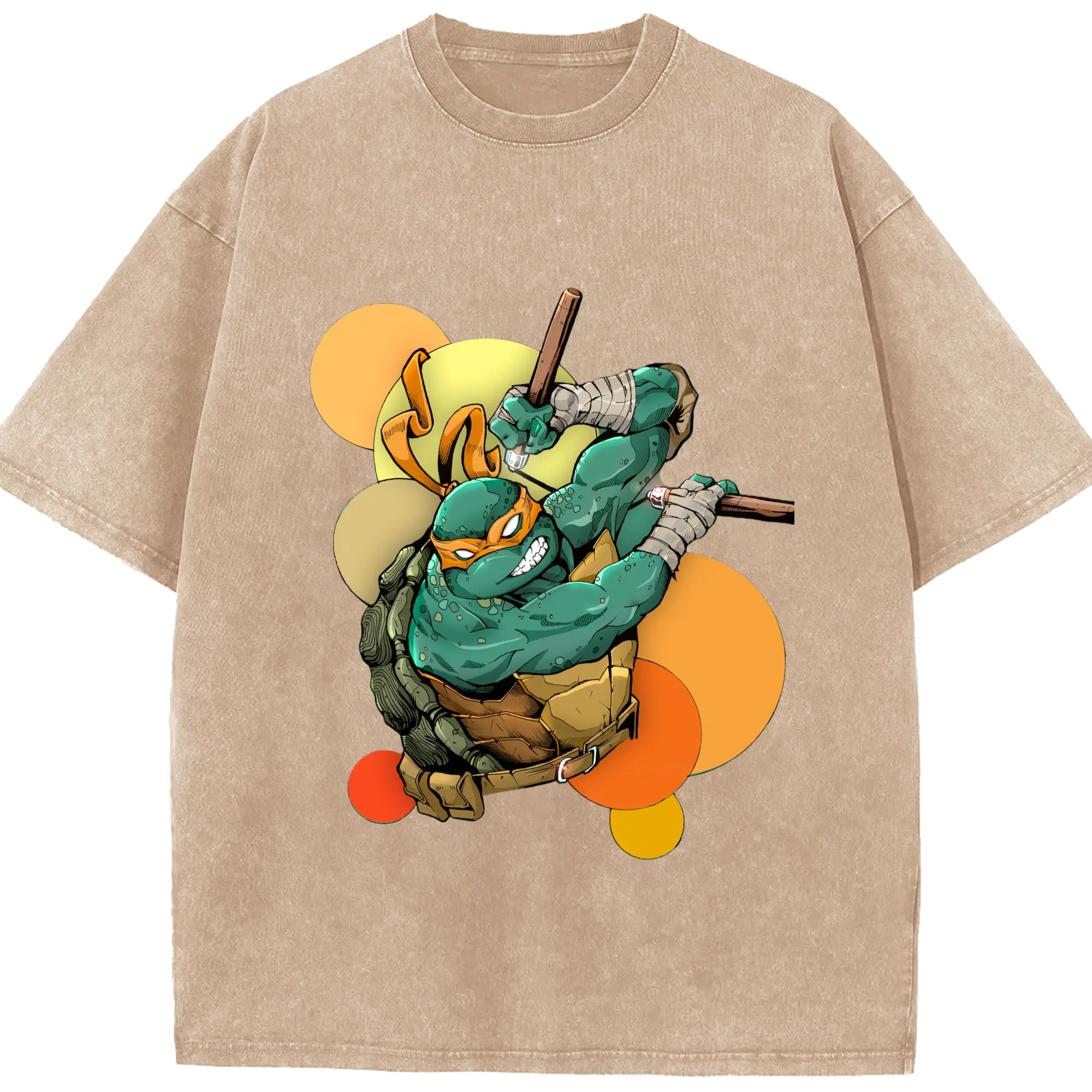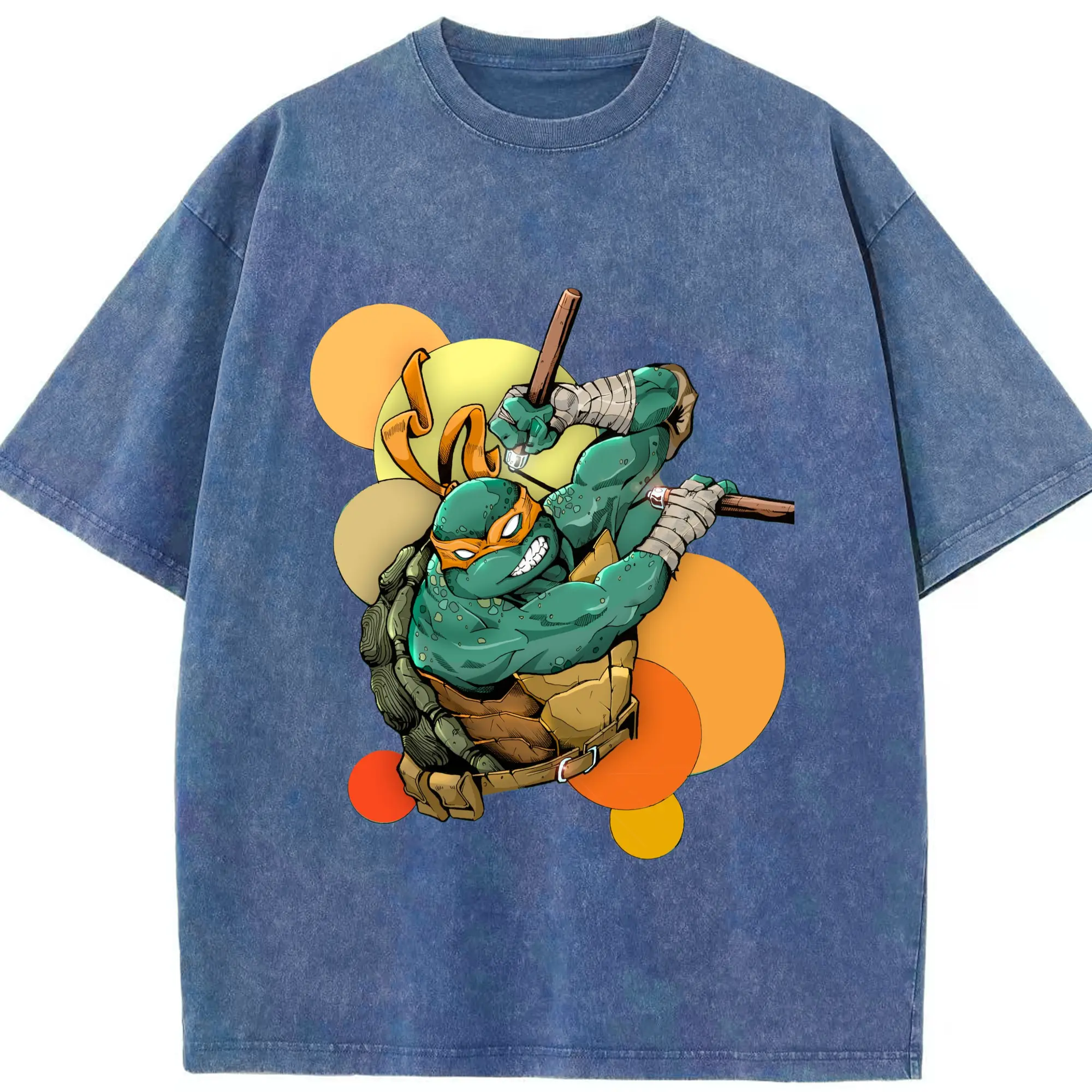 Men's Teenage Mutant Ninja Turtles Michelangelo T-Shirt - Washed Vintage Look 230g Cotton Oversized T-Shirt With Front Heat Transfer Print – Soft, Lightweight, Stylish Fit – Comfortable Casual Wear For Sports & Everyday Use