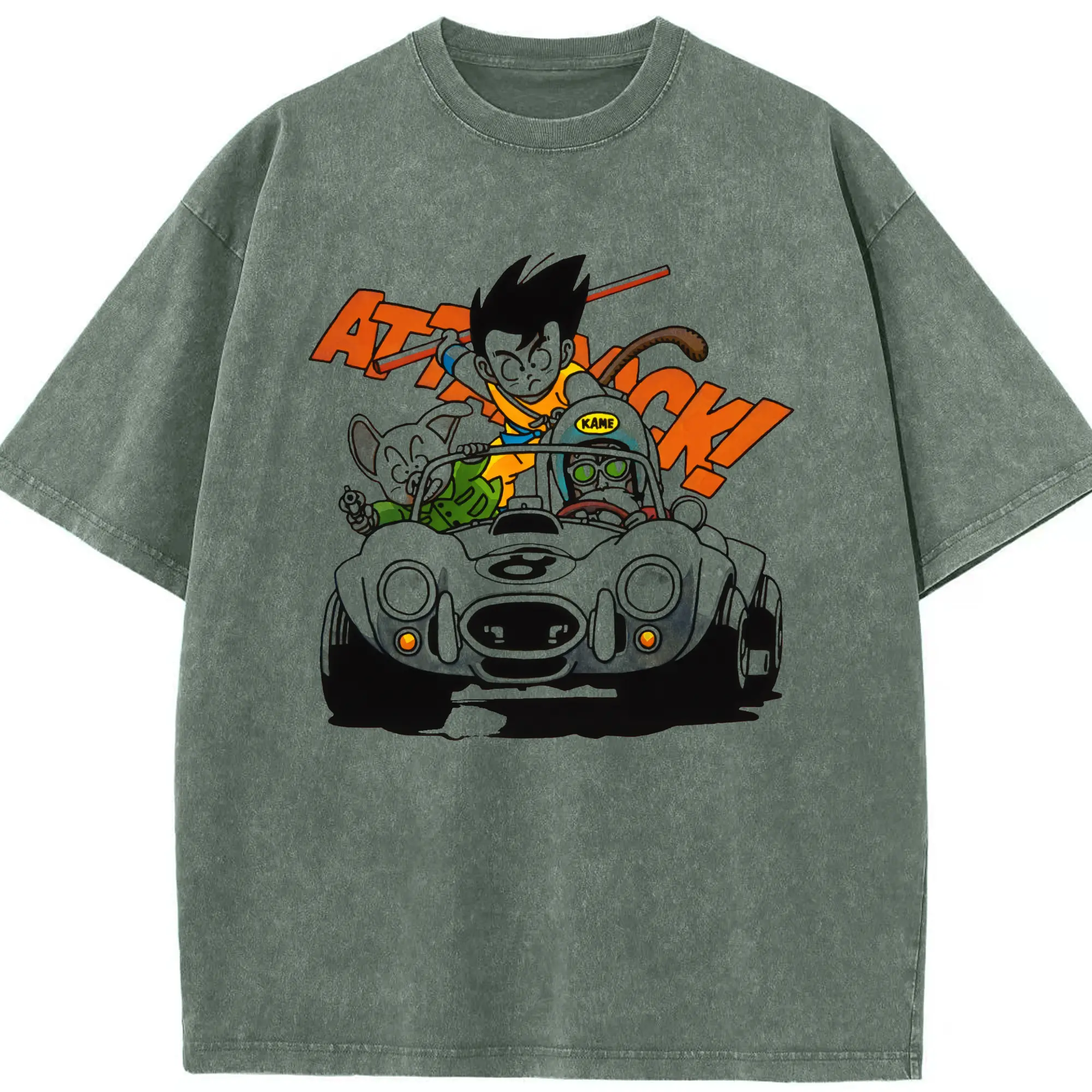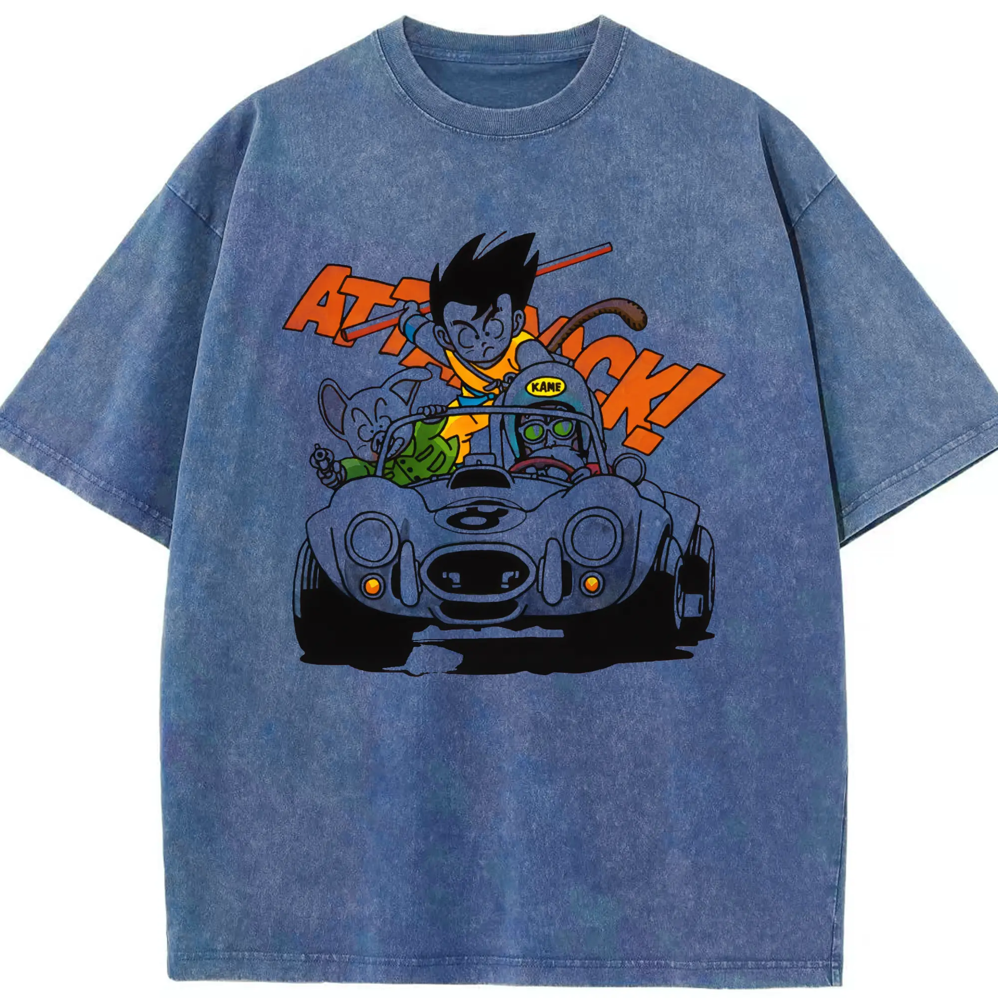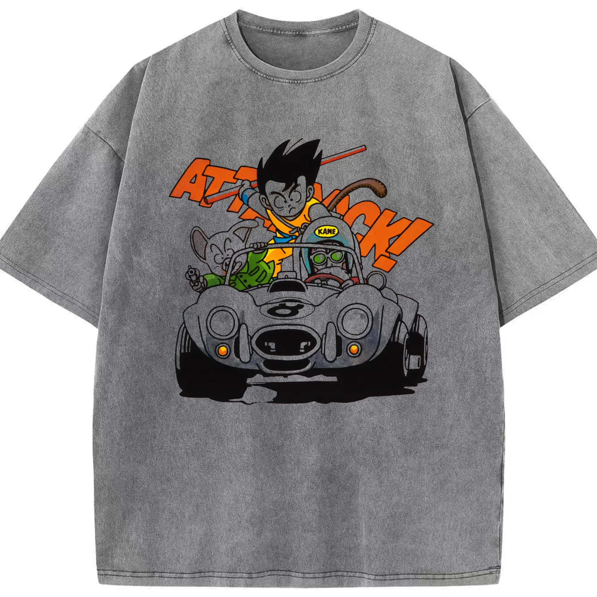 Men's dragon ball Son Goku graphic shirt - Washed Vintage Look 230g Cotton Oversized T-Shirt With Front Heat Transfer Print – Soft, Lightweight, Stylish Fit – Comfortable Casual Wear For Sports & Everyday Use