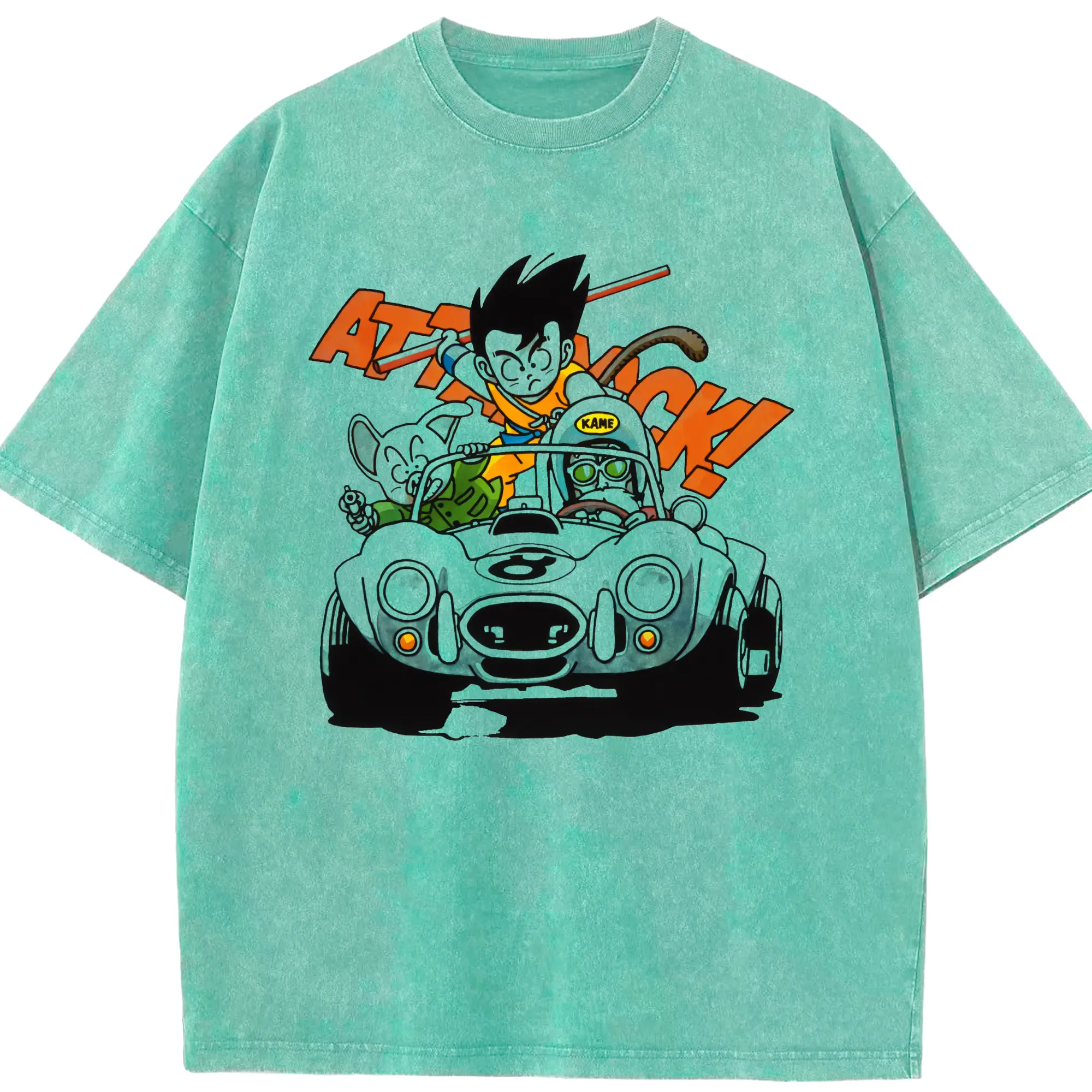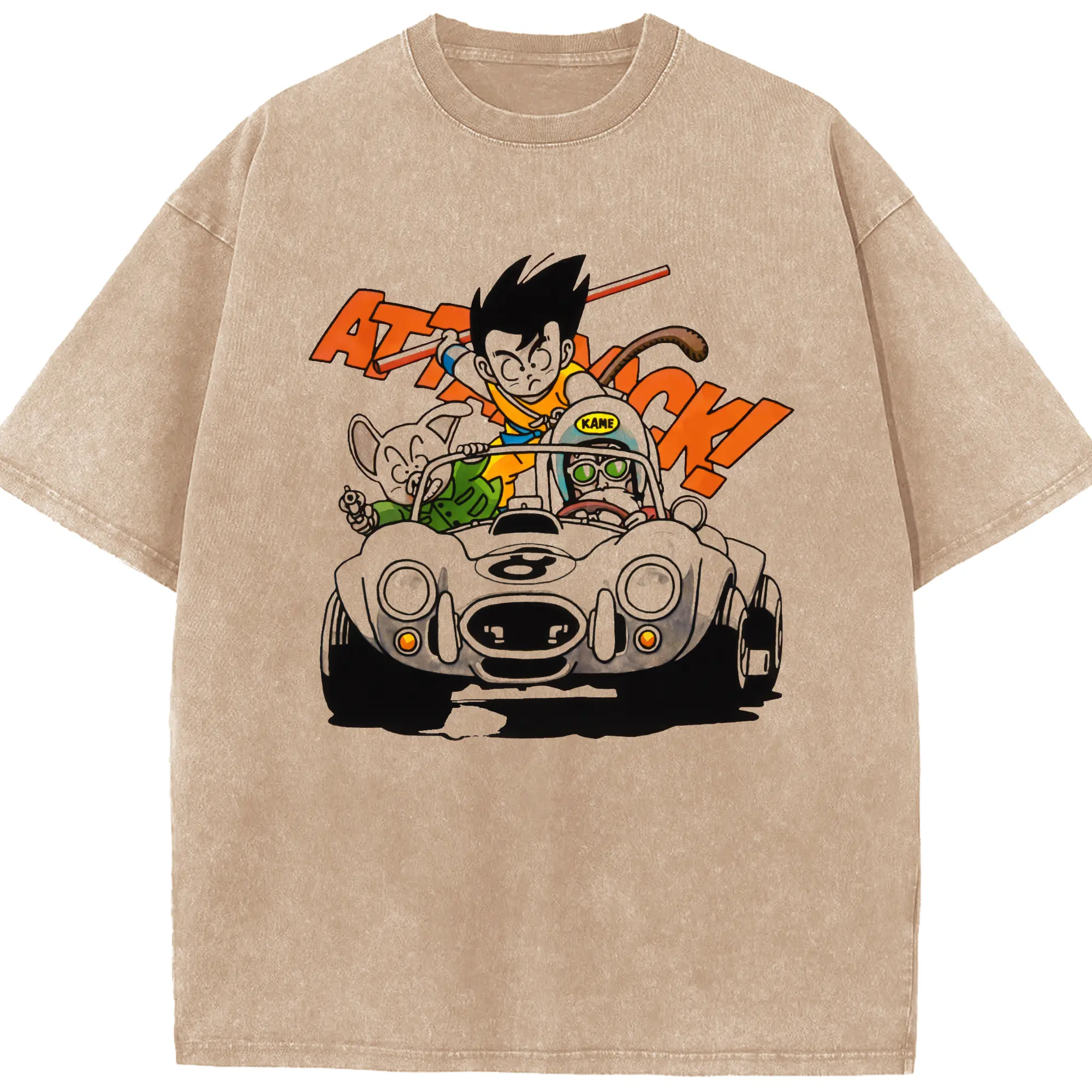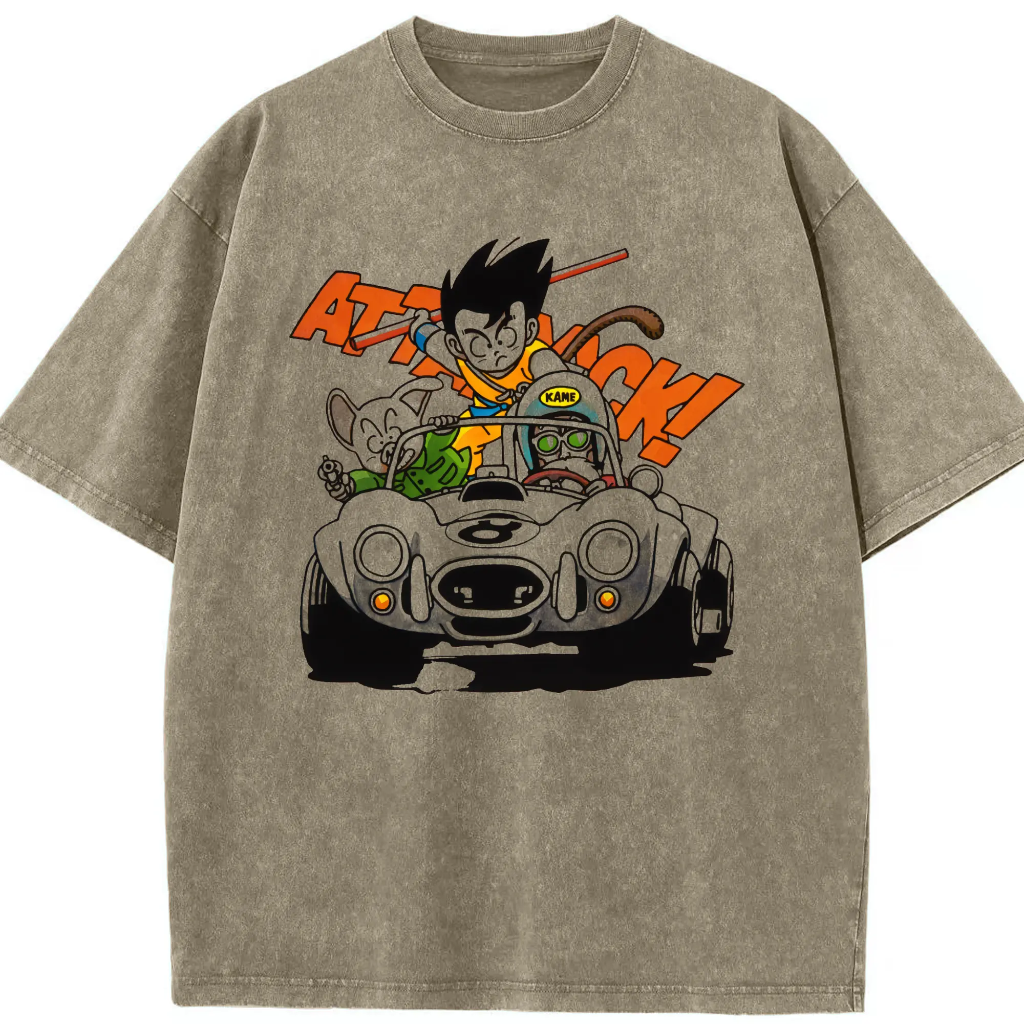 Men's dragon ball Son Goku graphic shirt - Washed Vintage Look 230g Cotton Oversized T-Shirt With Front Heat Transfer Print – Soft, Lightweight, Stylish Fit – Comfortable Casual Wear For Sports & Everyday Use