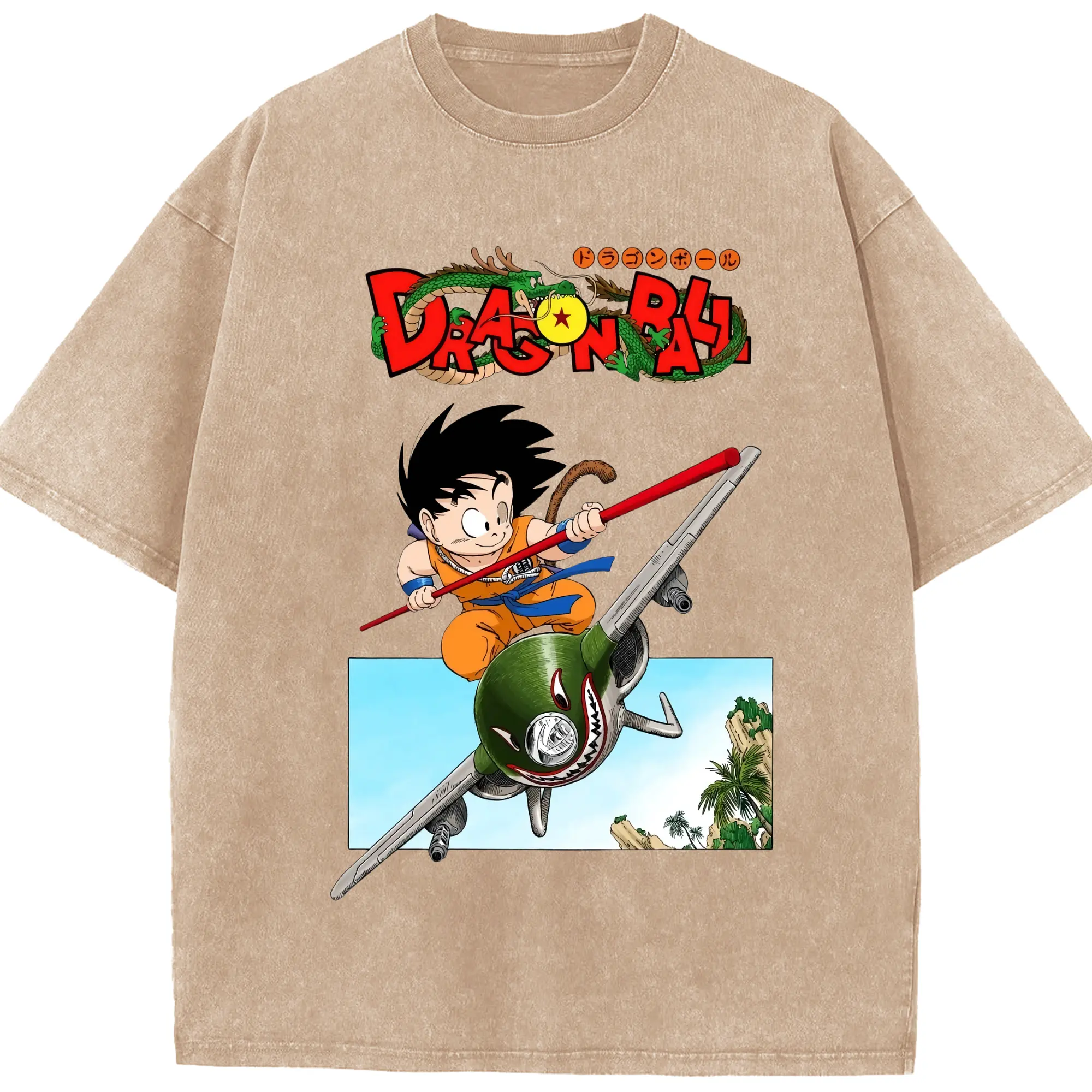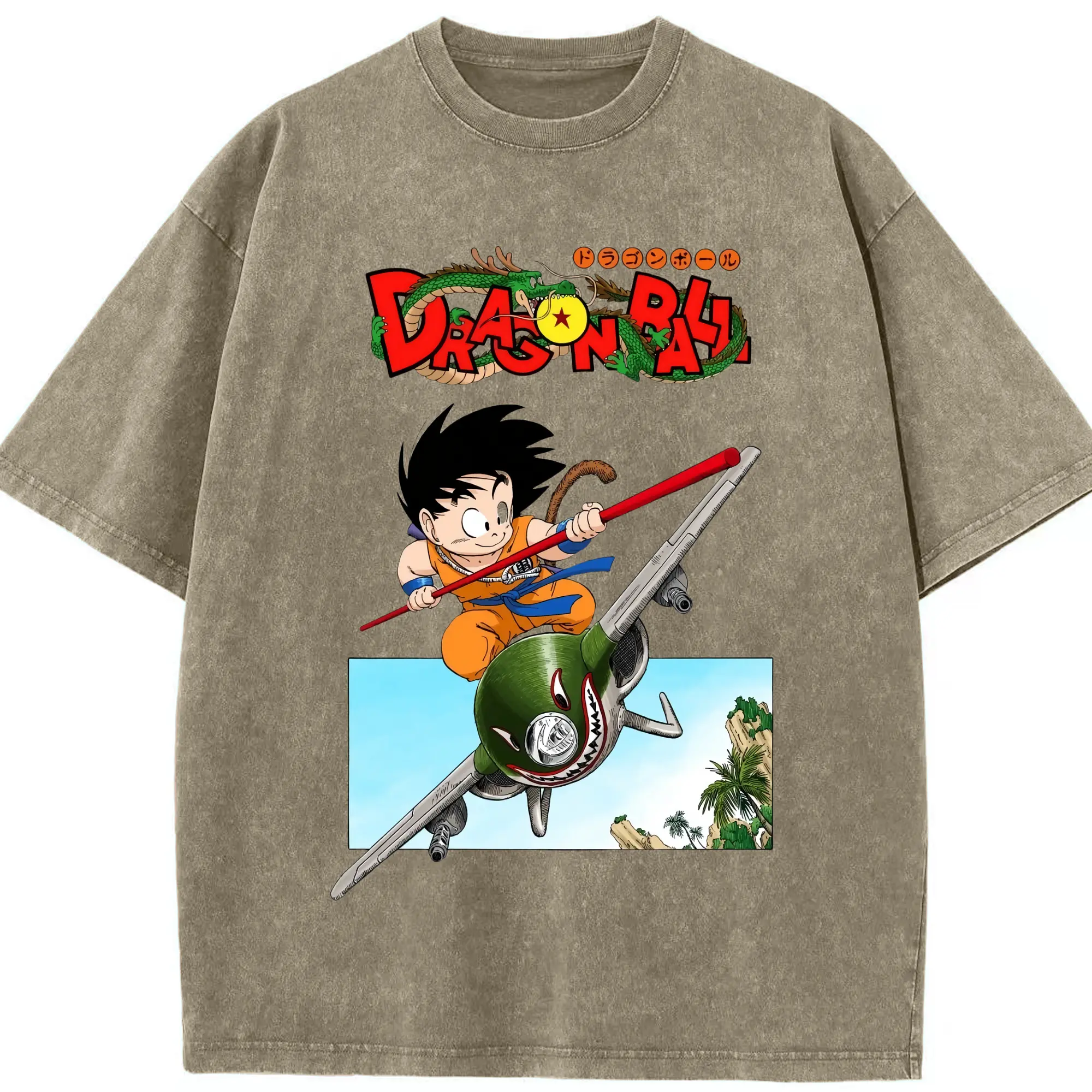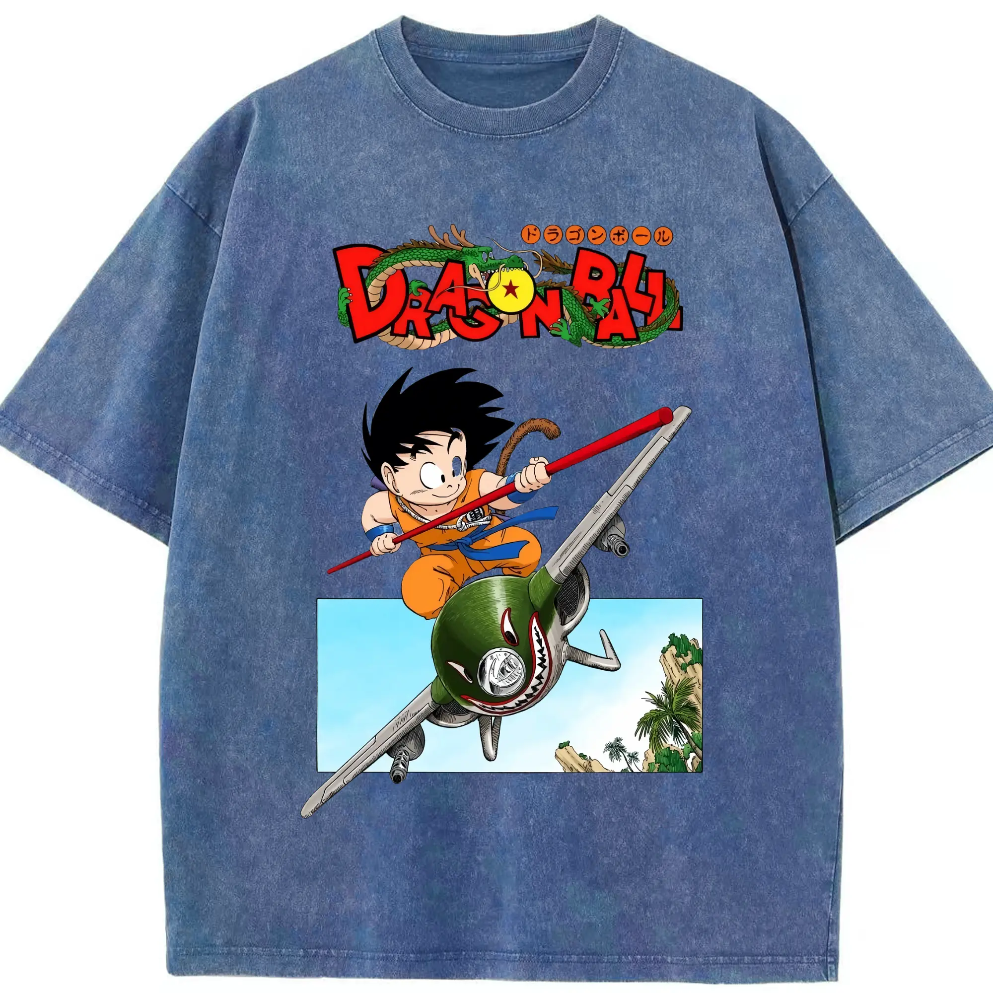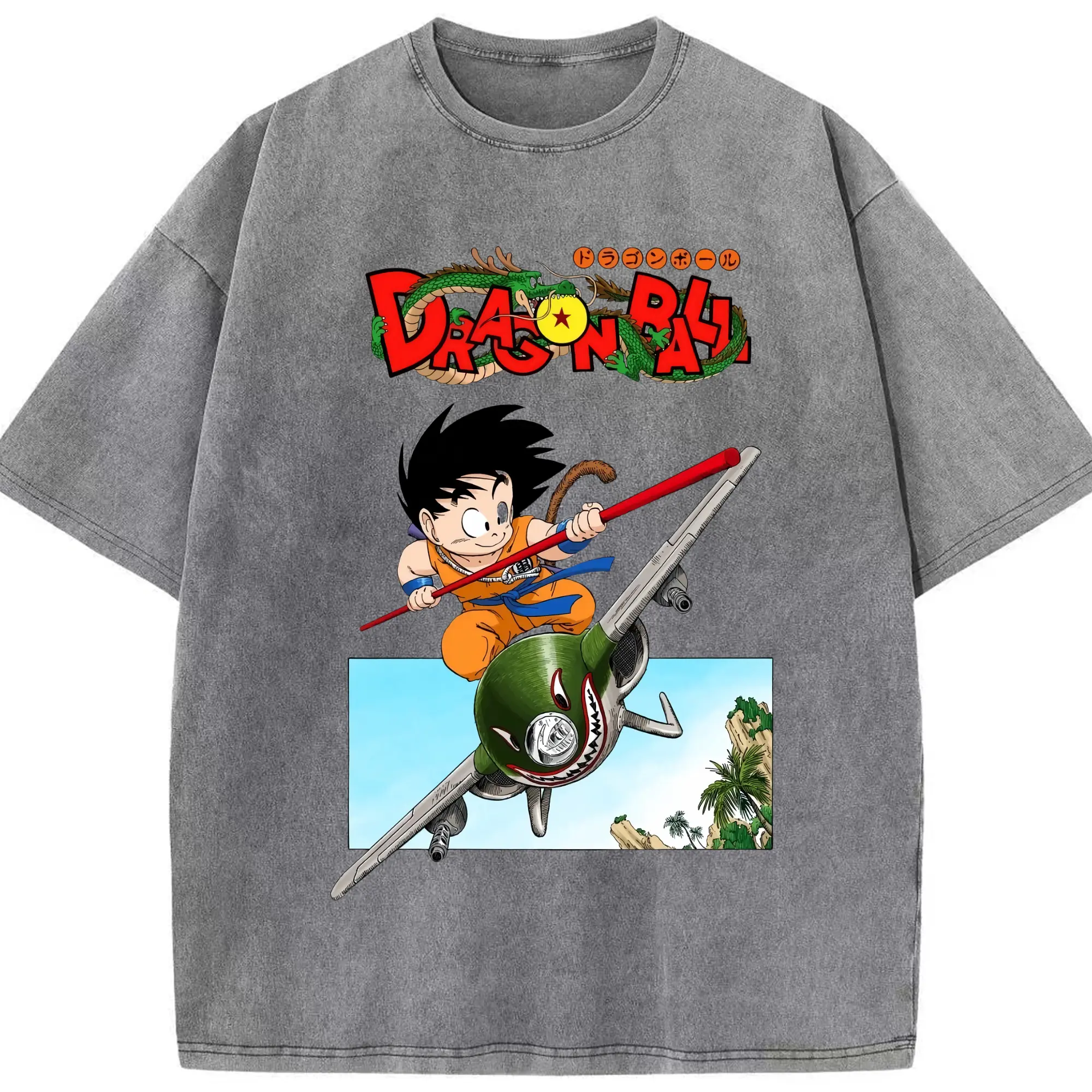 Men's dragon ball Son Goku t-shirt - Washed Vintage Look 230g Cotton Oversized T-Shirt With Front Heat Transfer Print – Soft, Lightweight, Stylish Fit – Comfortable Casual Wear For Sports & Everyday Use