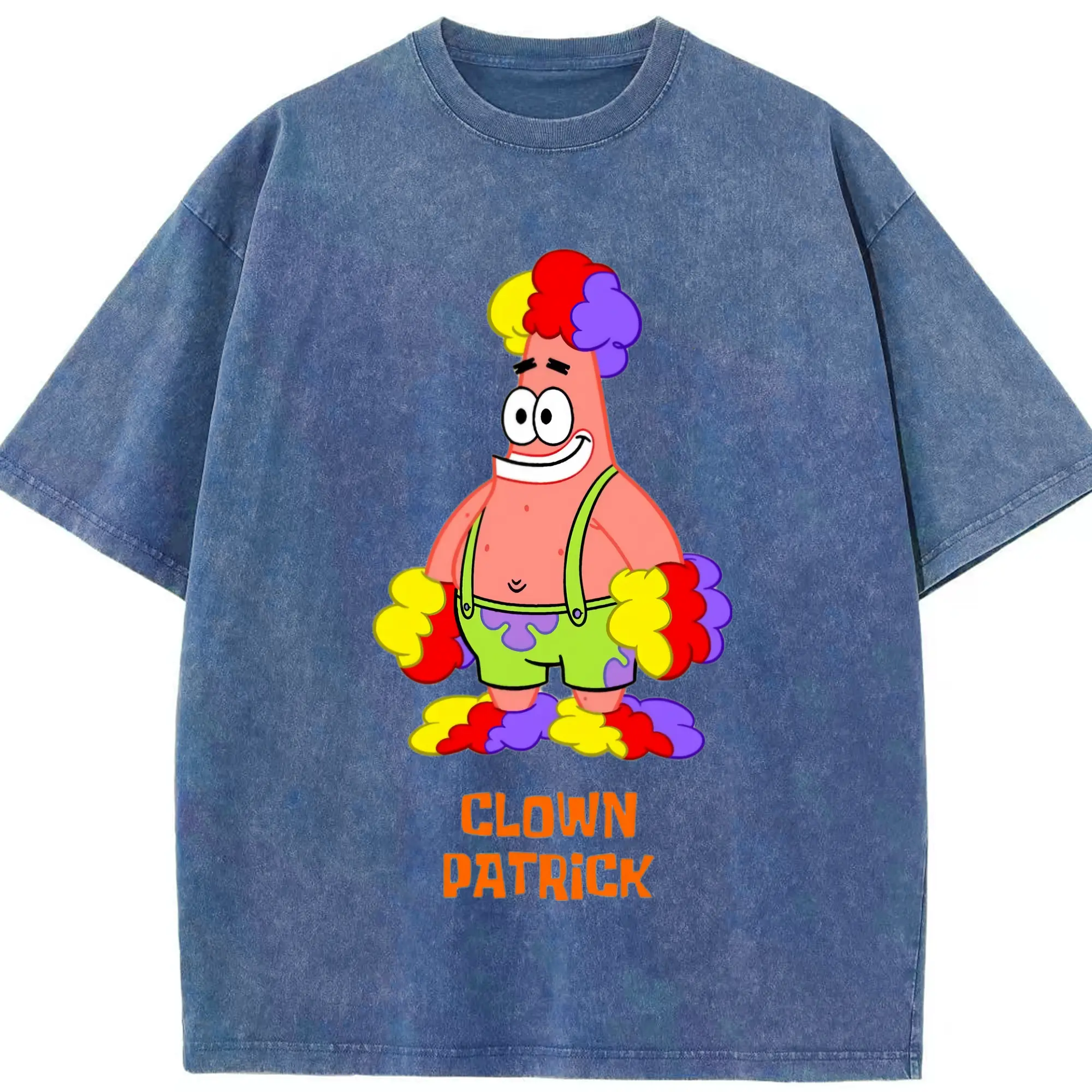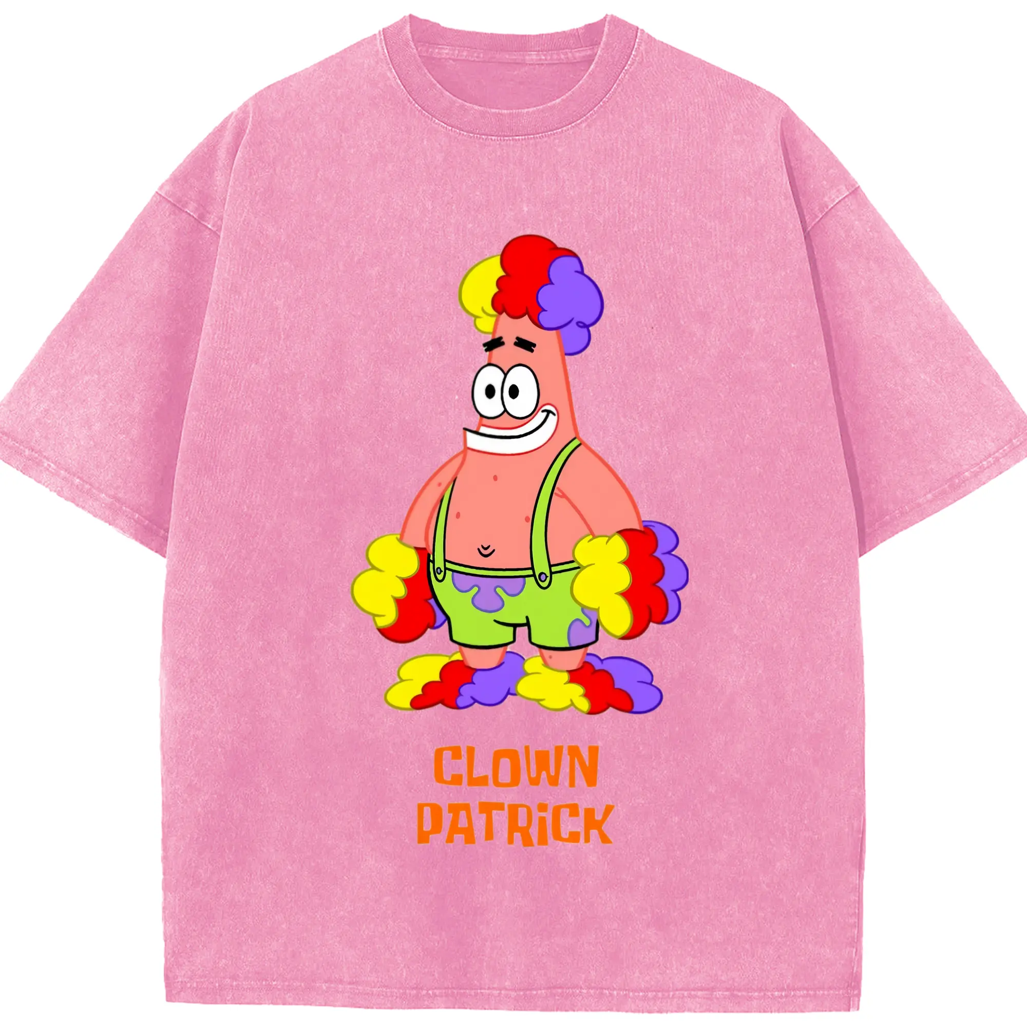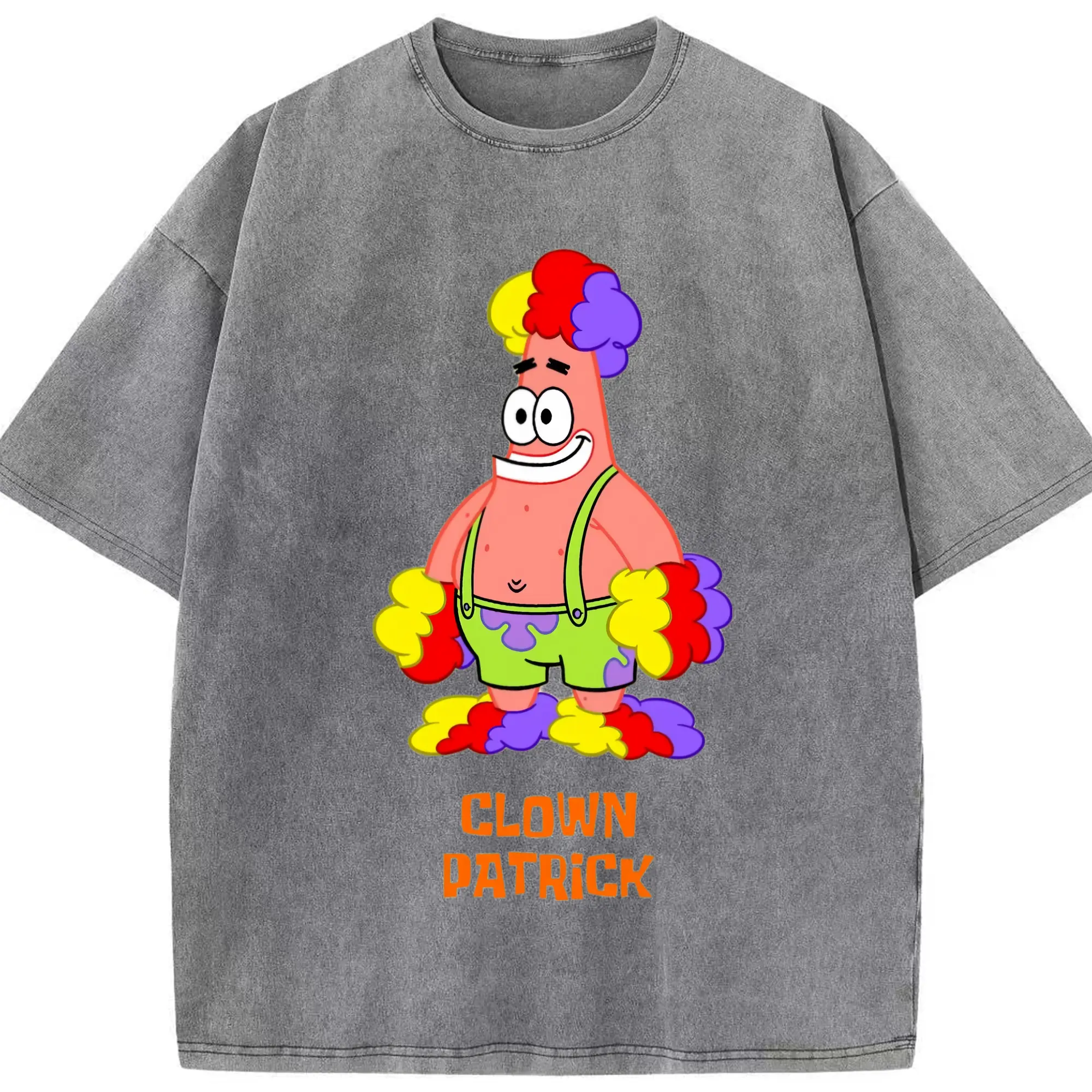 Mens Patrick Star clown funny Graphic T-Shirt - Washed Vintage Look 230g Cotton Oversized T-Shirt With Front Heat Transfer Print – Soft, Lightweight, Stylish Fit – Comfortable Casual Wear For Sports & Everyday Use