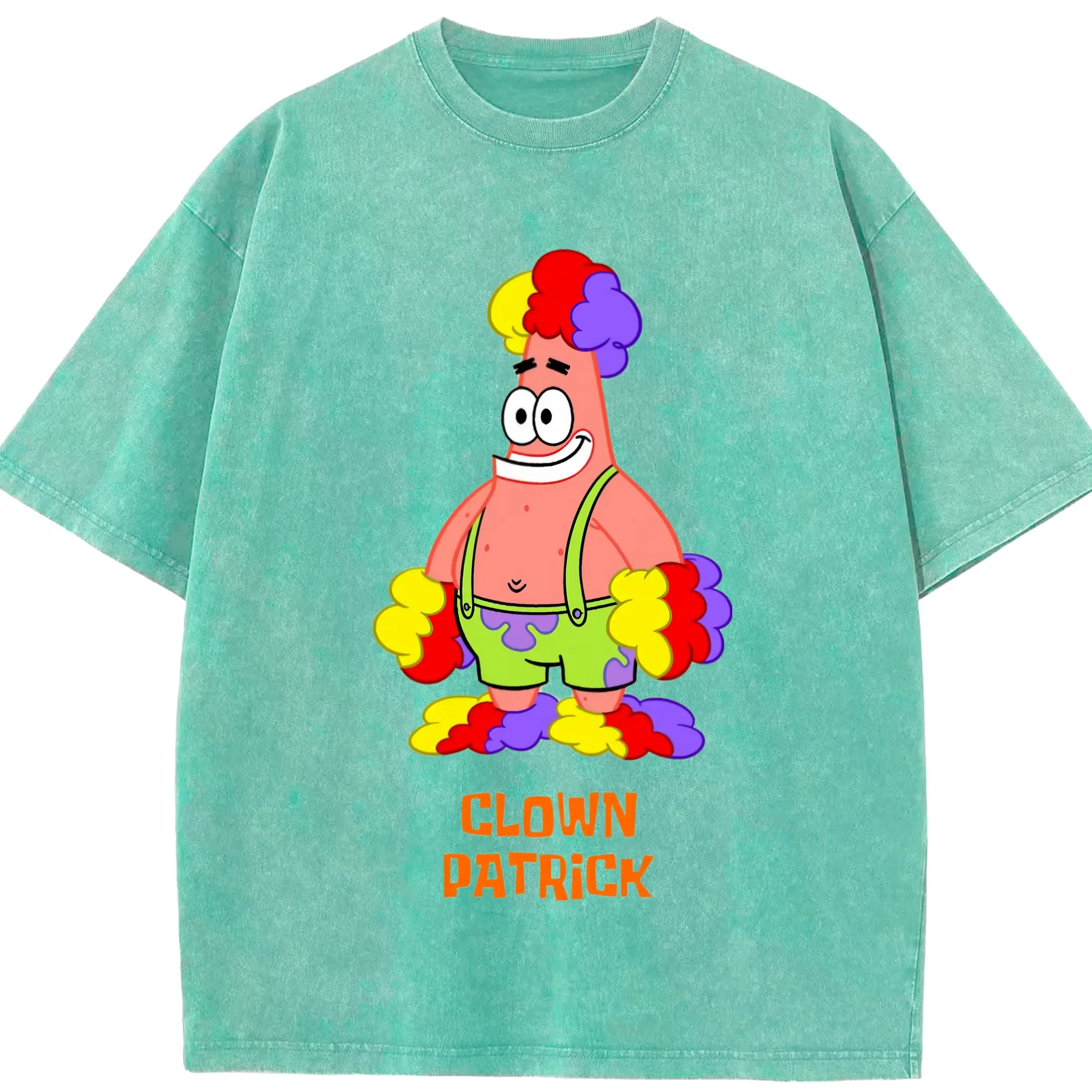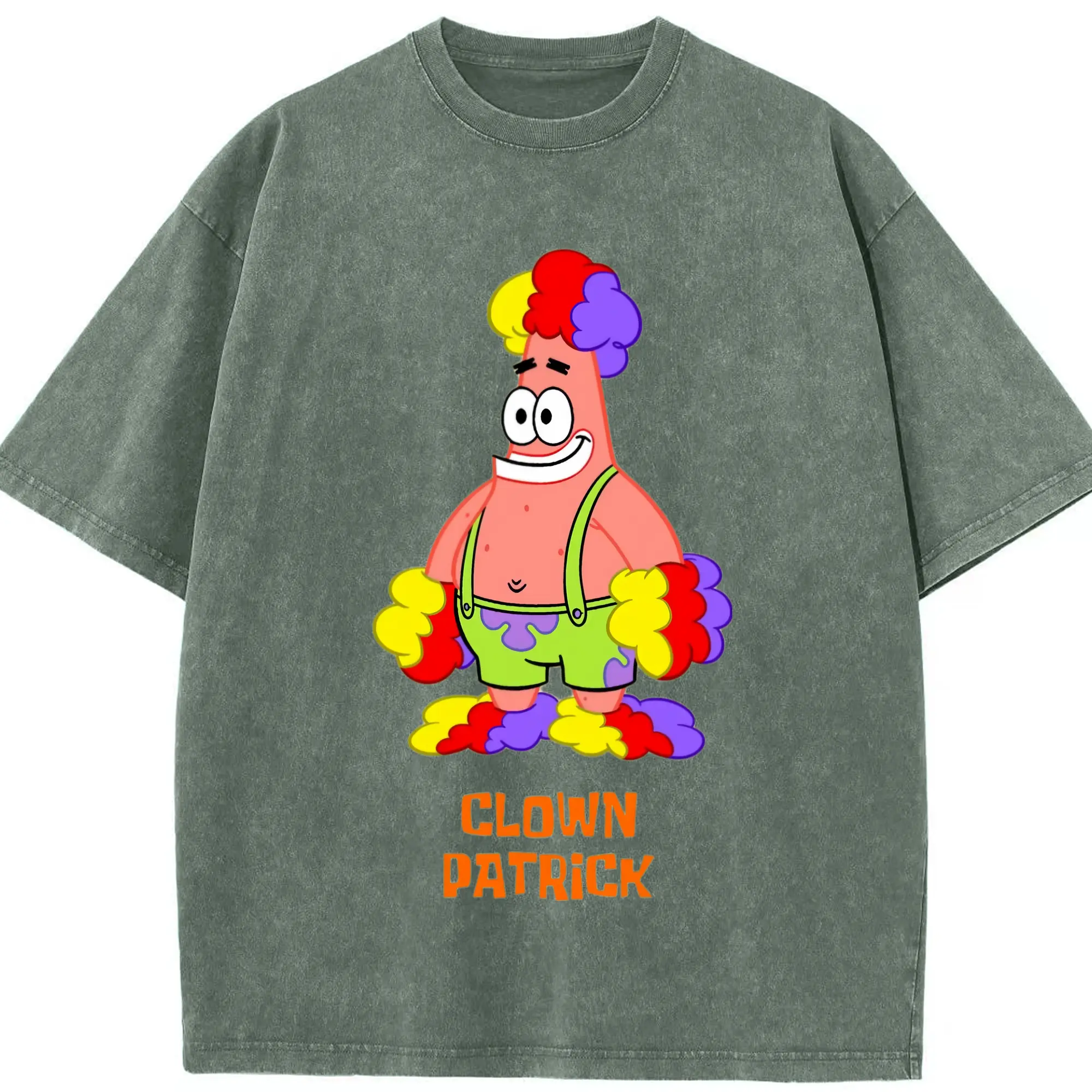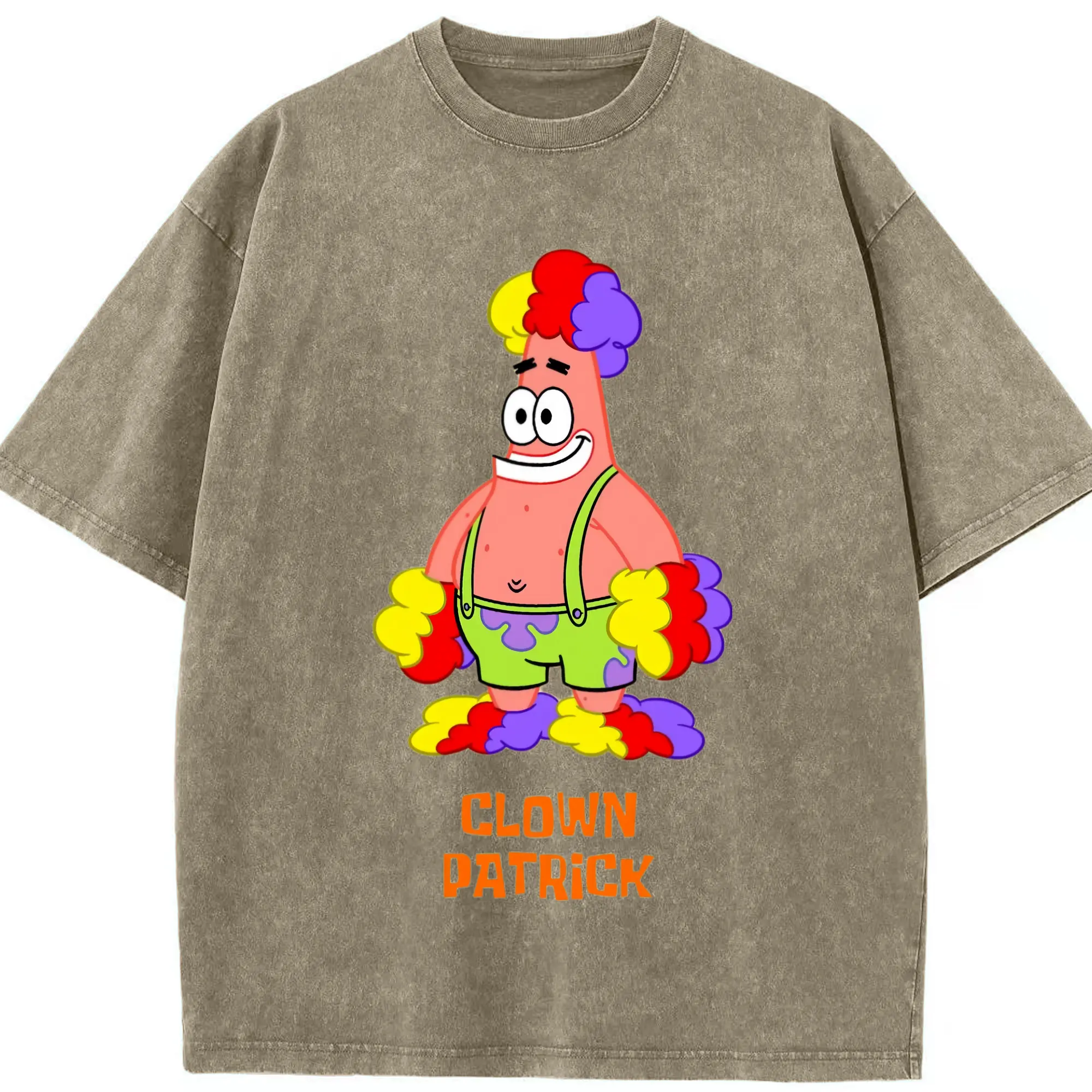 Mens Patrick Star clown funny Graphic T-Shirt - Washed Vintage Look 230g Cotton Oversized T-Shirt With Front Heat Transfer Print – Soft, Lightweight, Stylish Fit – Comfortable Casual Wear For Sports & Everyday Use