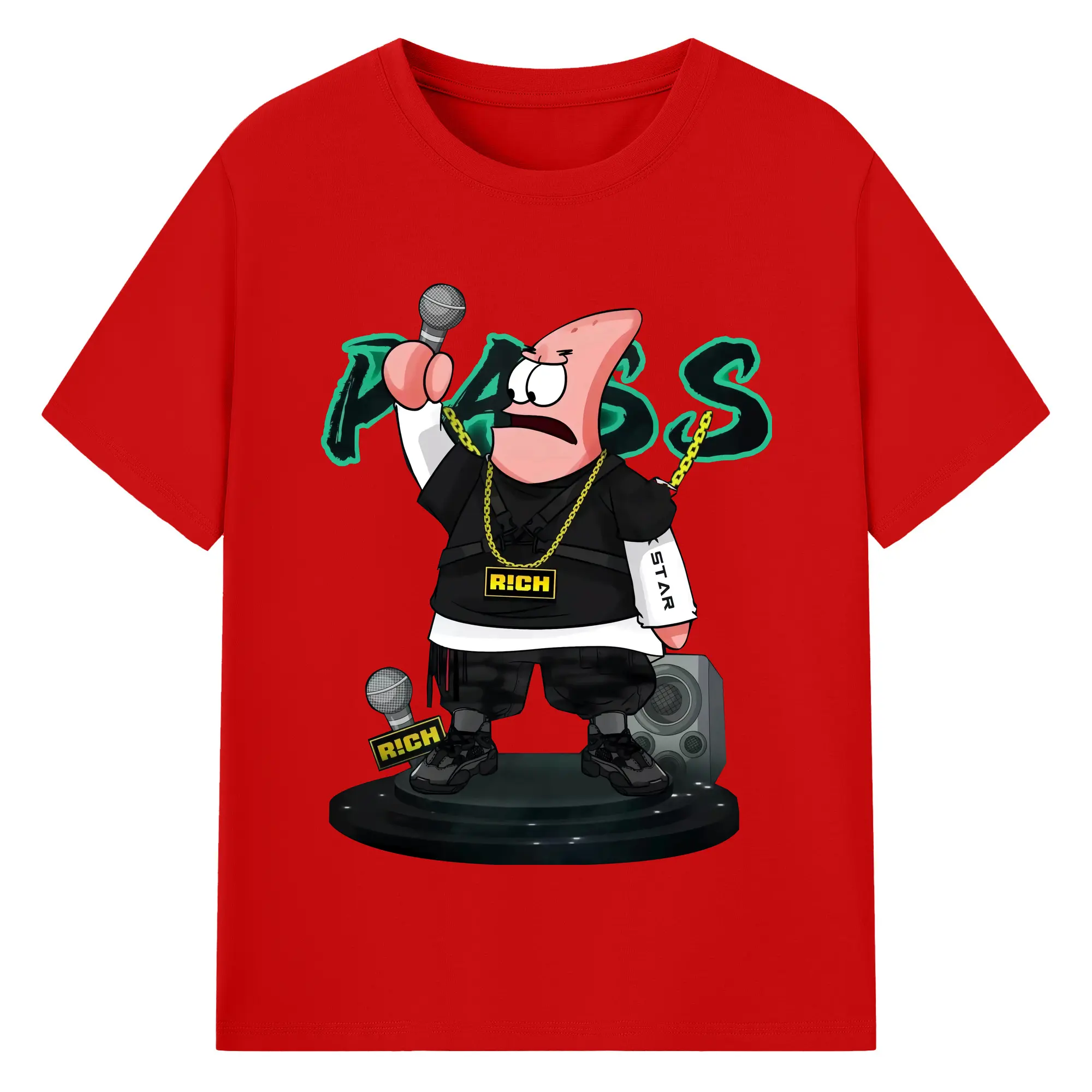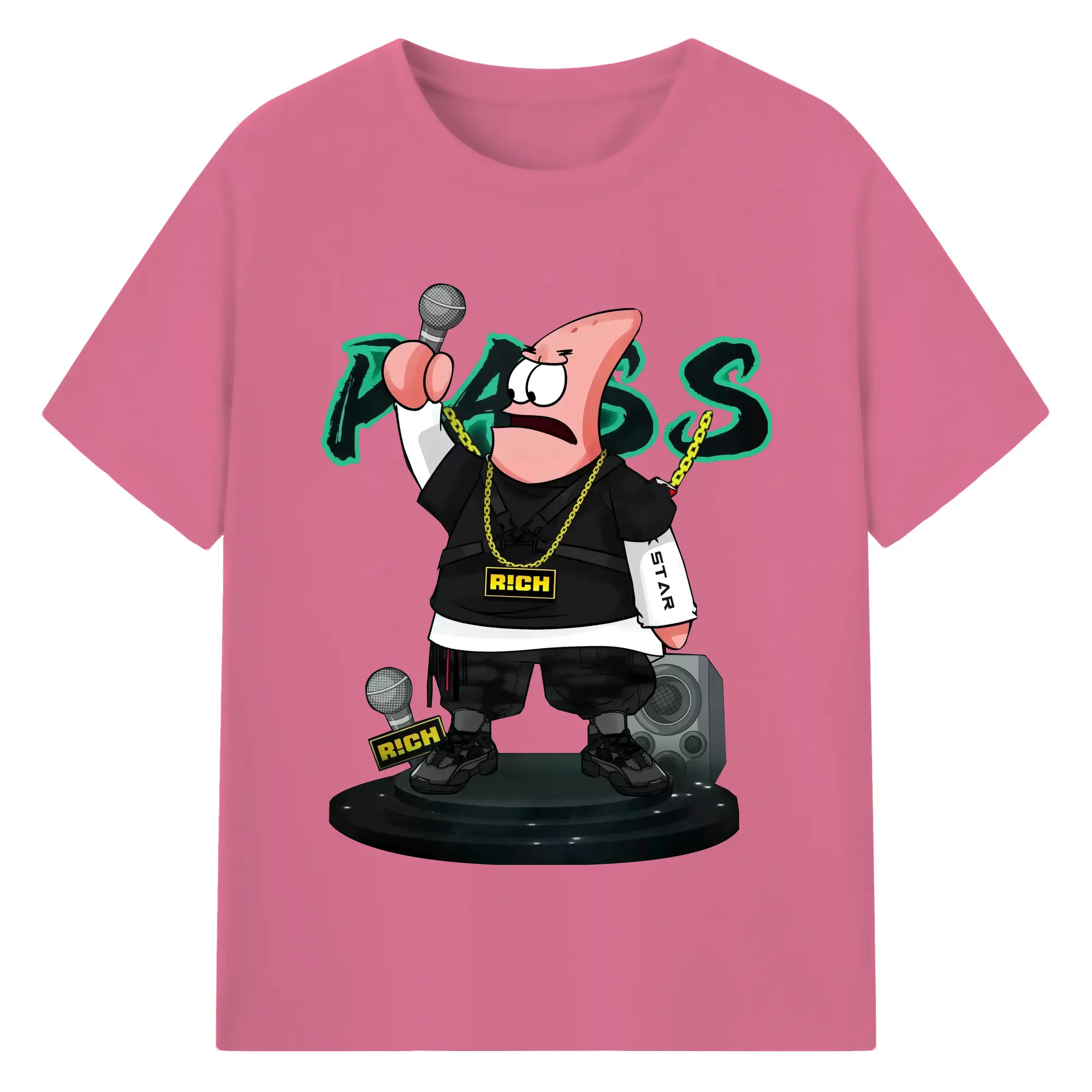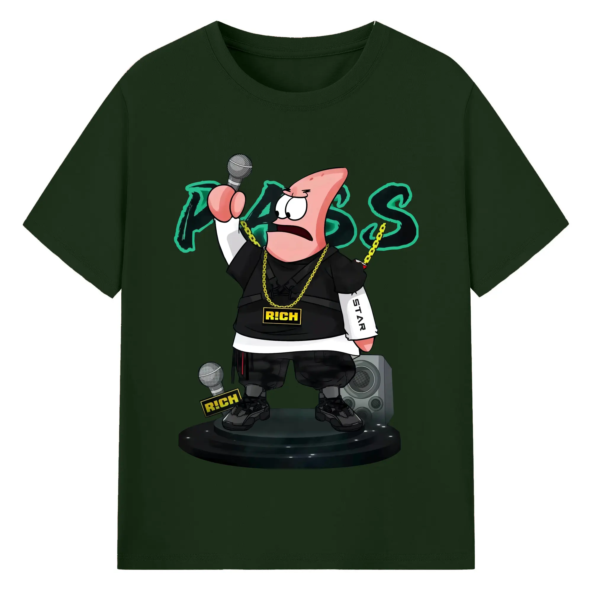 Mens Patrick Star hip hop Graphic T-Shirt - 180g Cotton T-Shirt With Front Heat Transfer Print – Soft, Lightweight, Fitted Design – Comfortable Casual Wear For Sports & Everyday Use