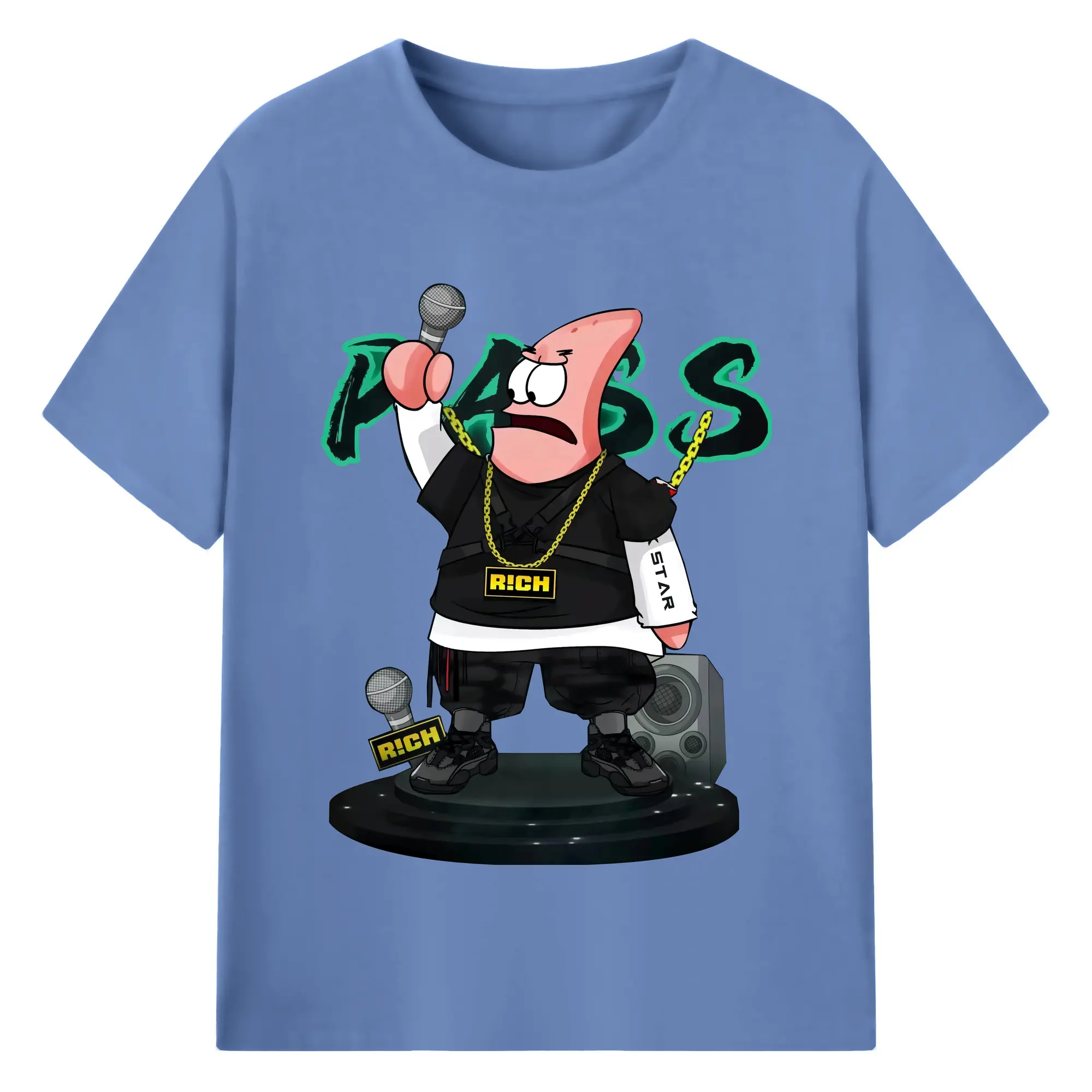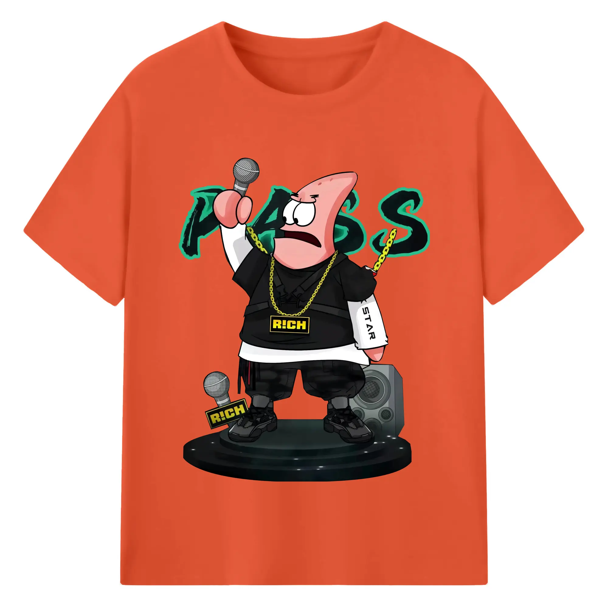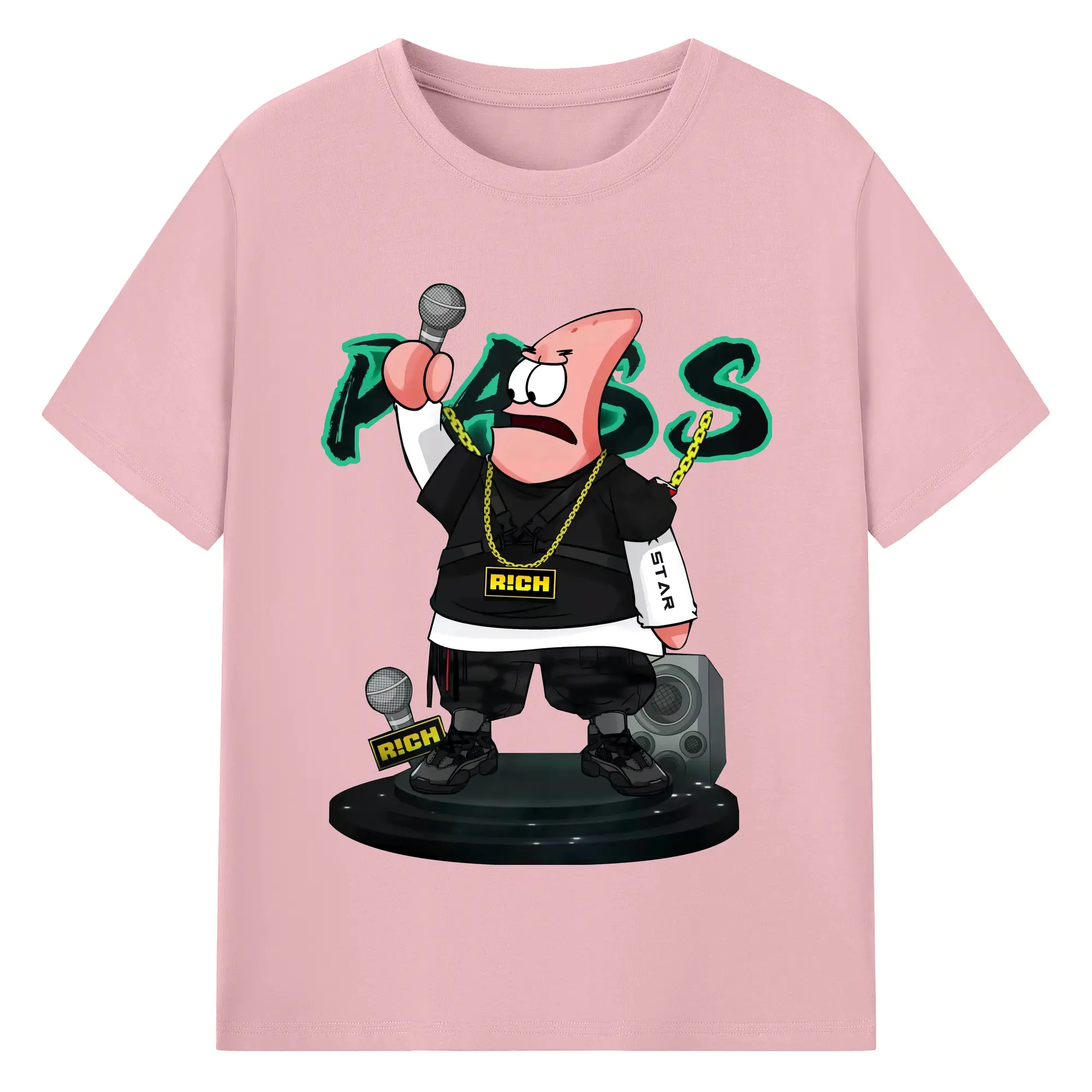 Mens Patrick Star hip hop Graphic T-Shirt - 180g Cotton T-Shirt With Front Heat Transfer Print – Soft, Lightweight, Fitted Design – Comfortable Casual Wear For Sports & Everyday Use